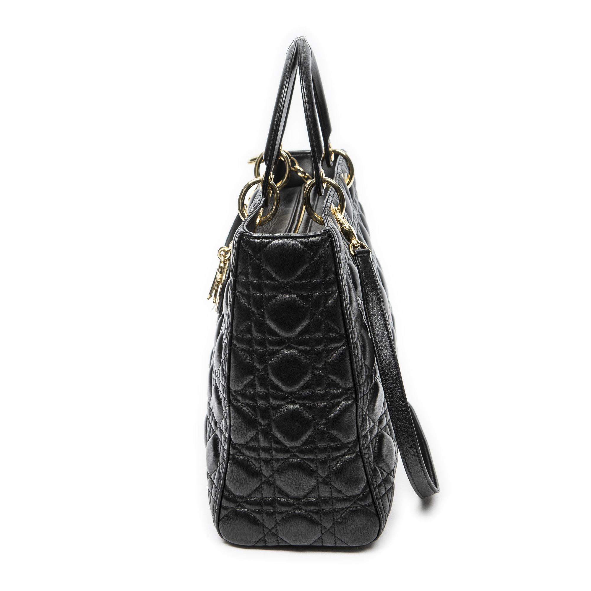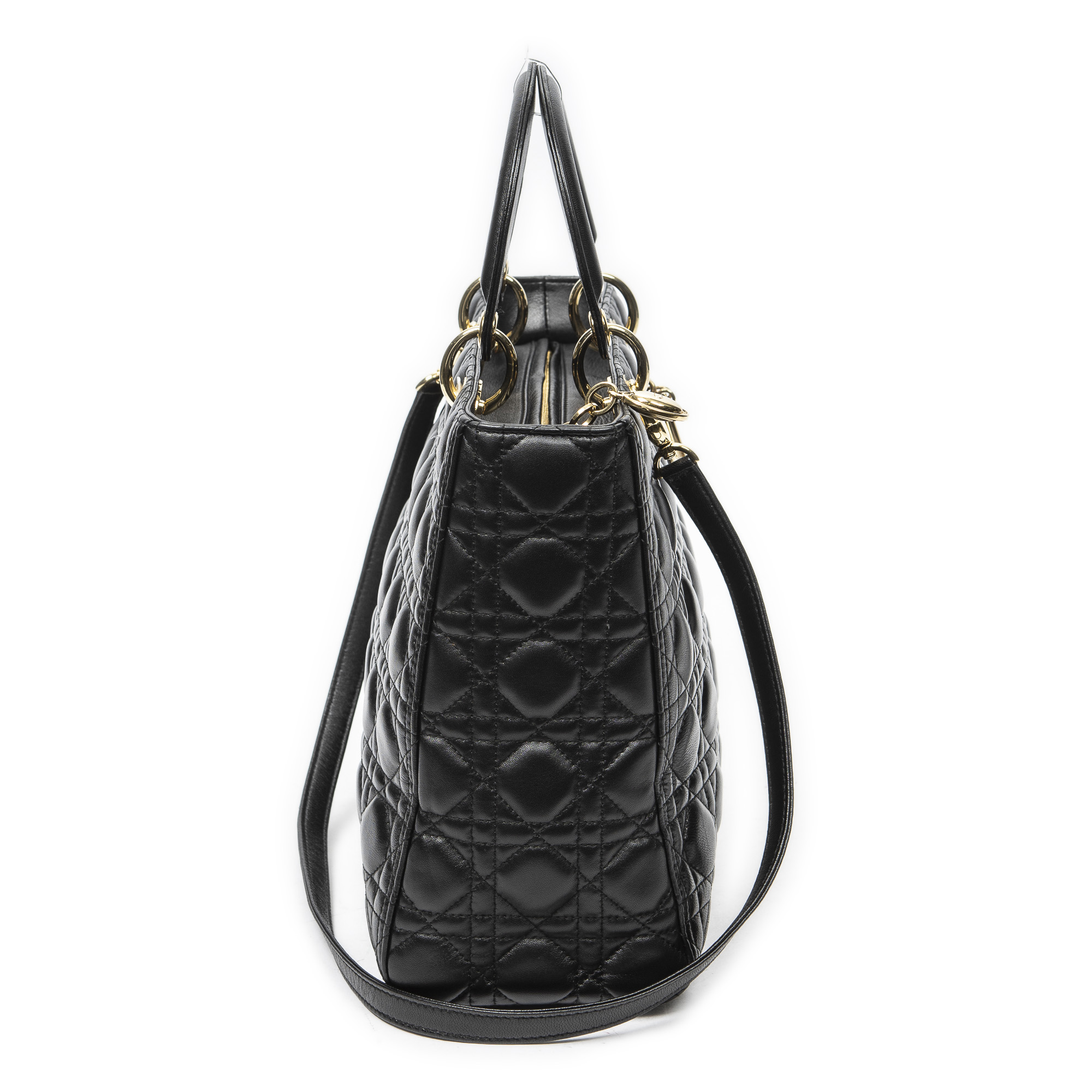 Dior Sac à bandoulière Large Lady Dior Zip en Noir et Gold. Le produit est en Parfait état (AA).