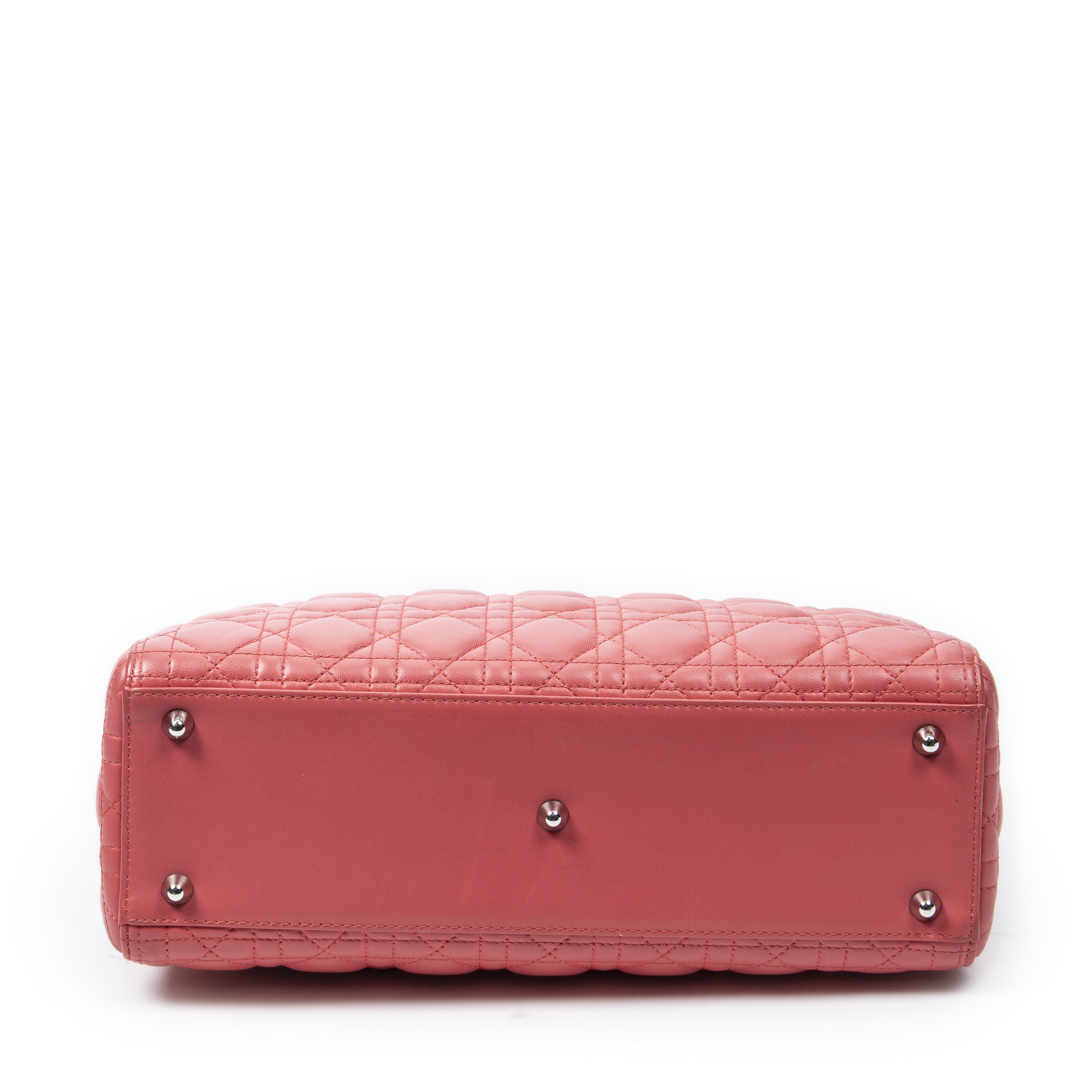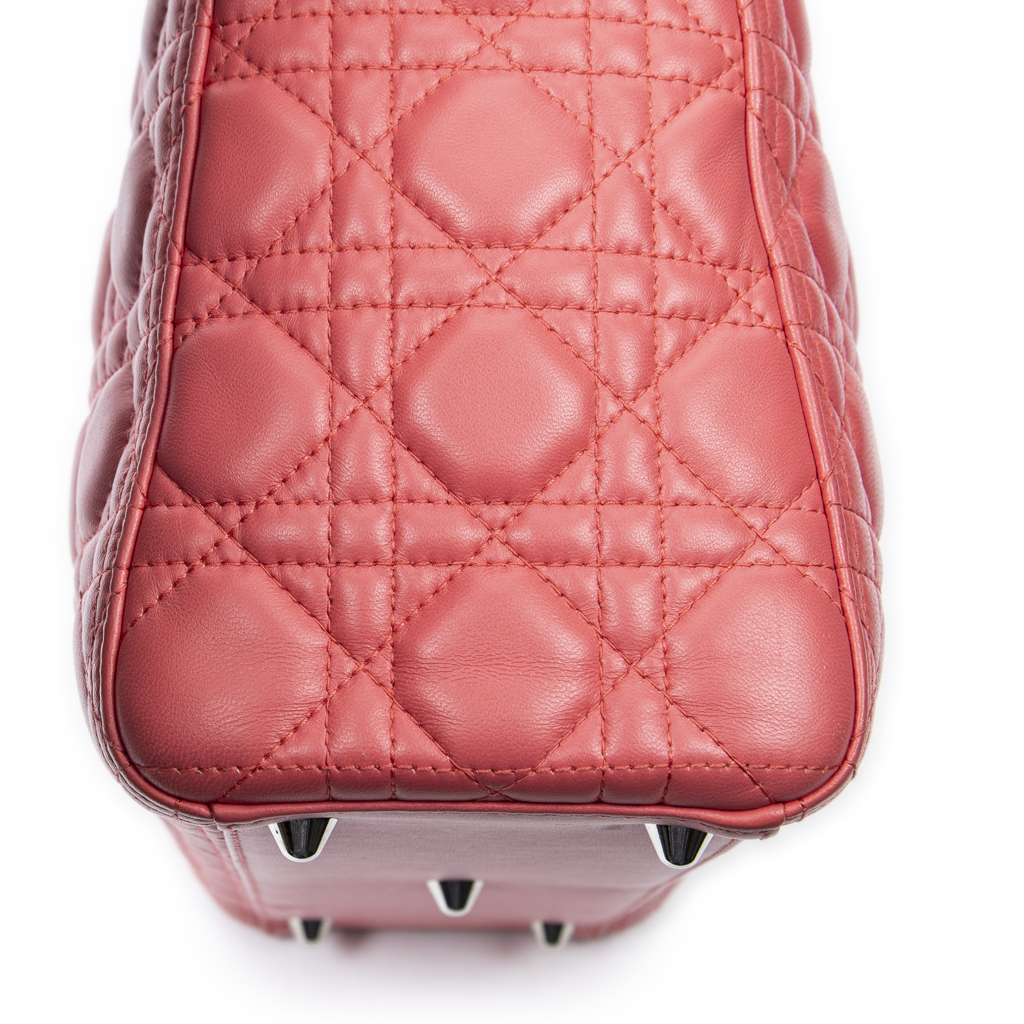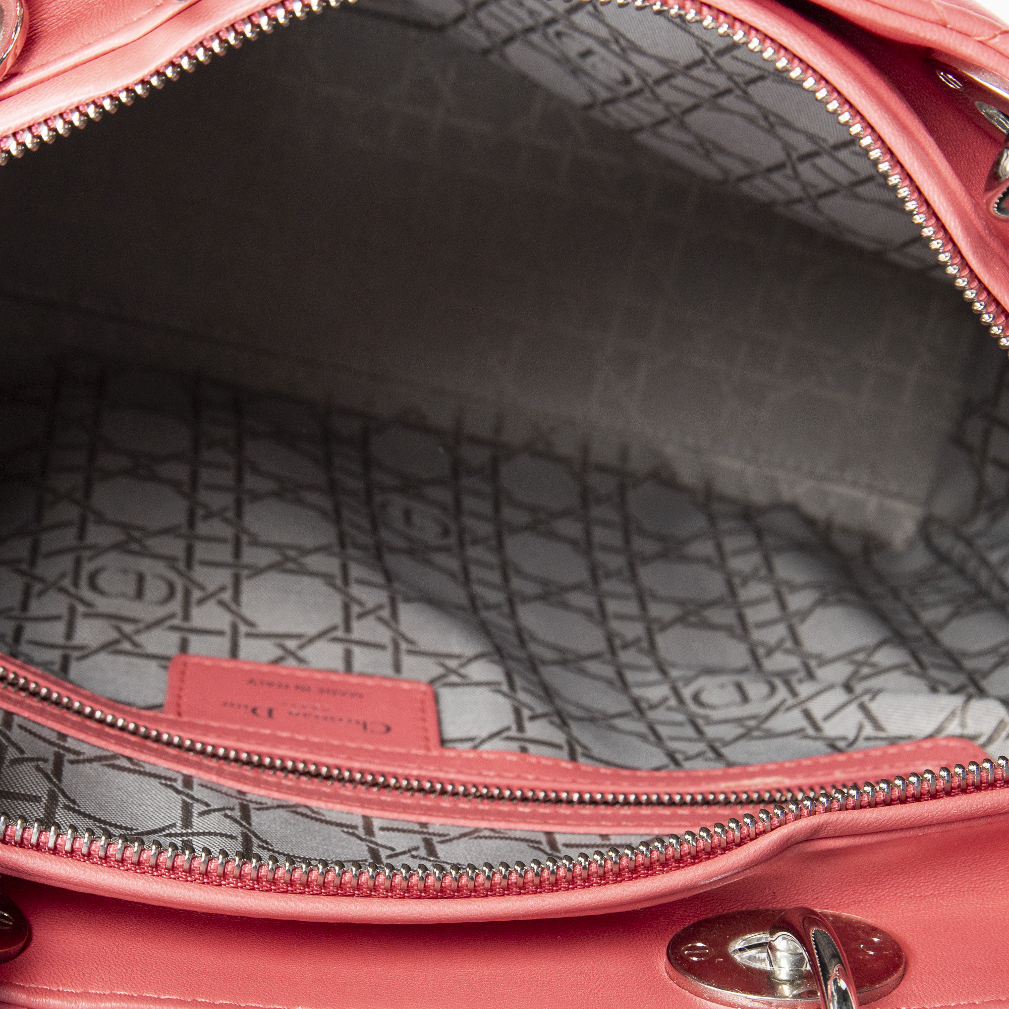 Dior sac à bandoulière Large Lady Dior Zip en rose et argent. Le produit est en Excellent état (A).