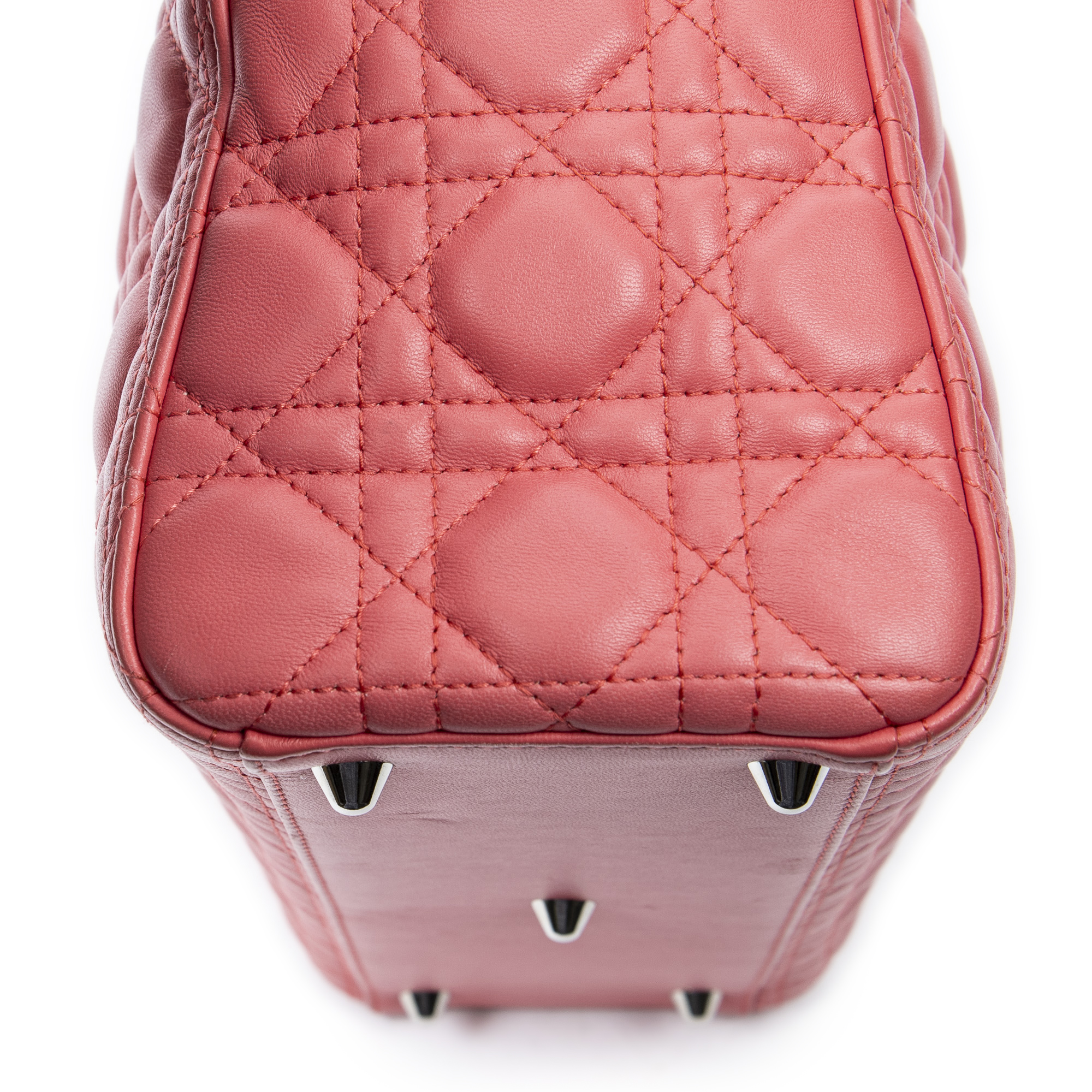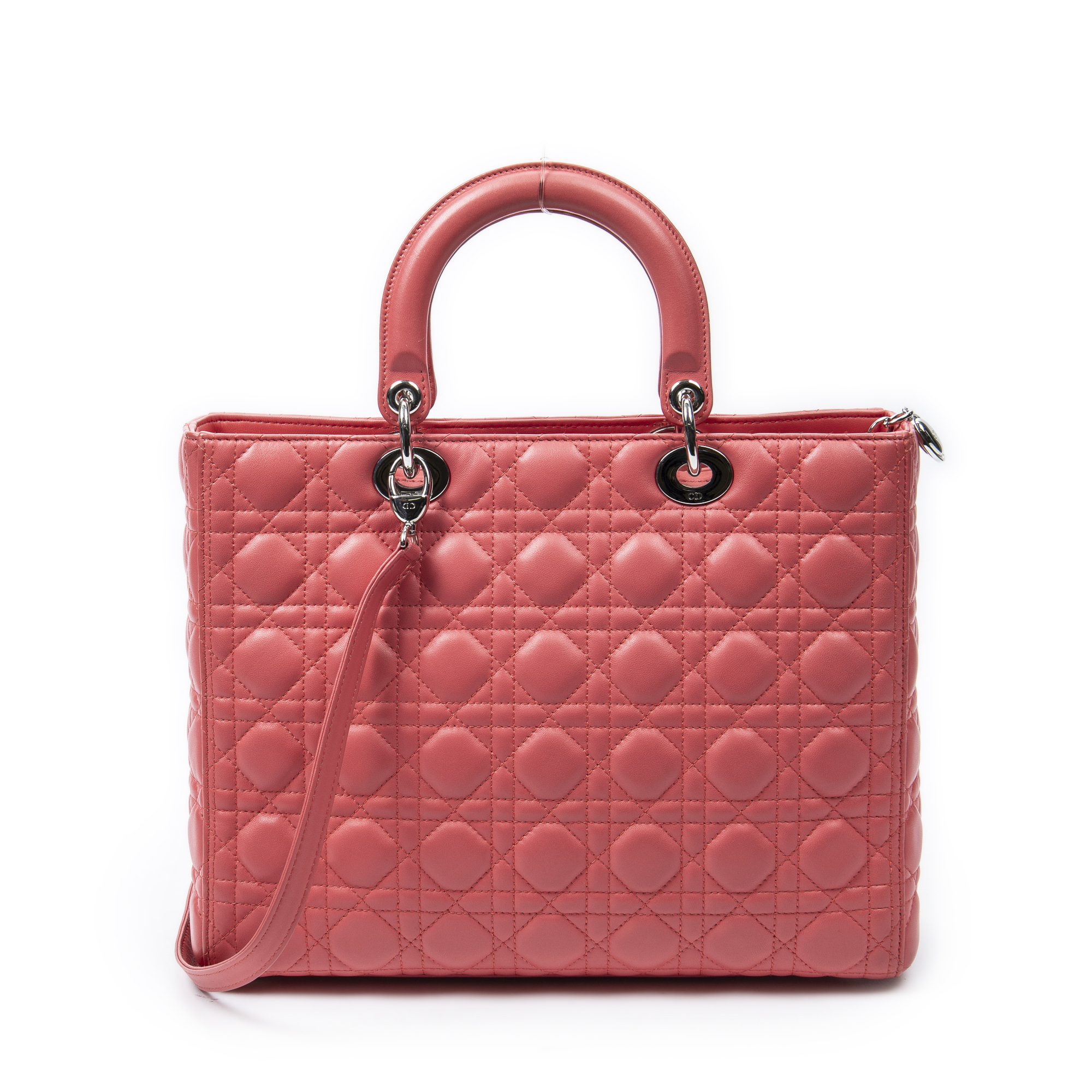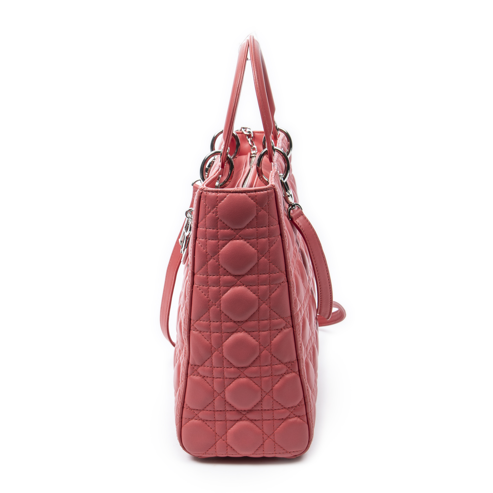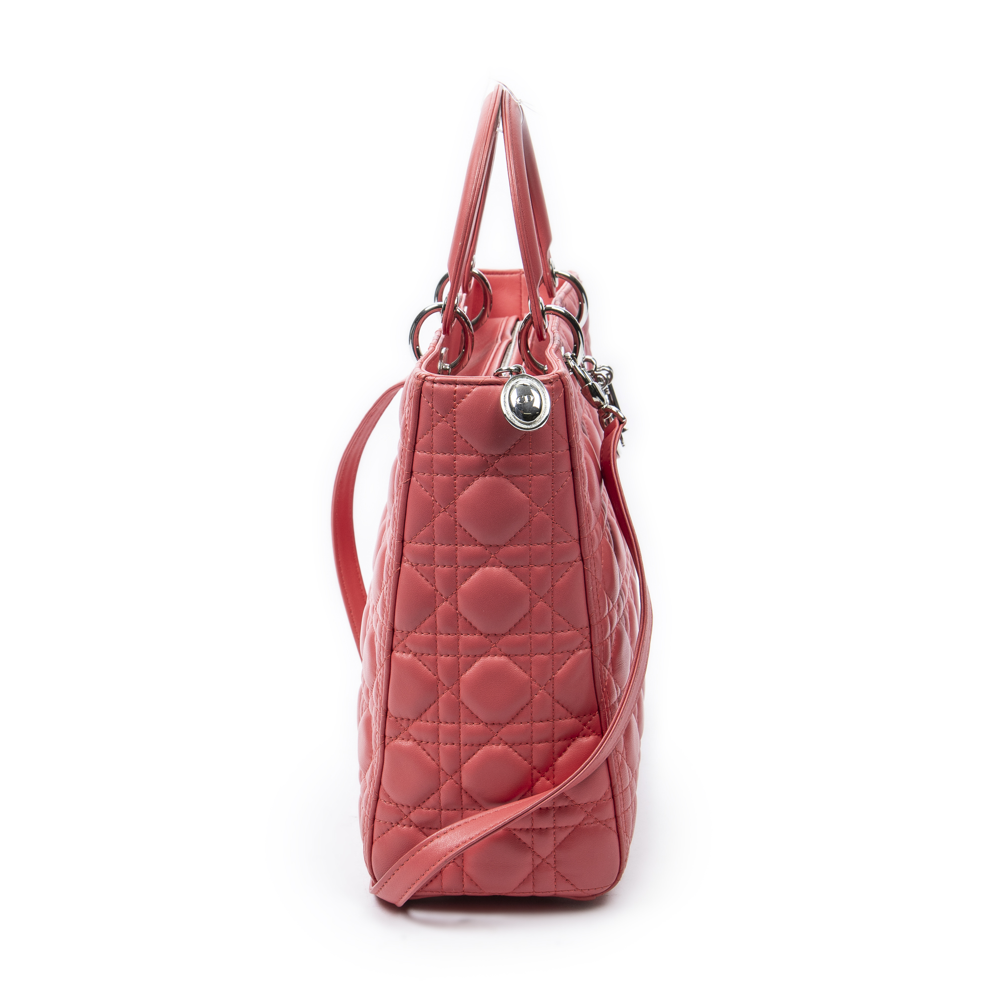 Dior sac à bandoulière Large Lady Dior Zip en rose et argent. Le produit est en Excellent état (A).