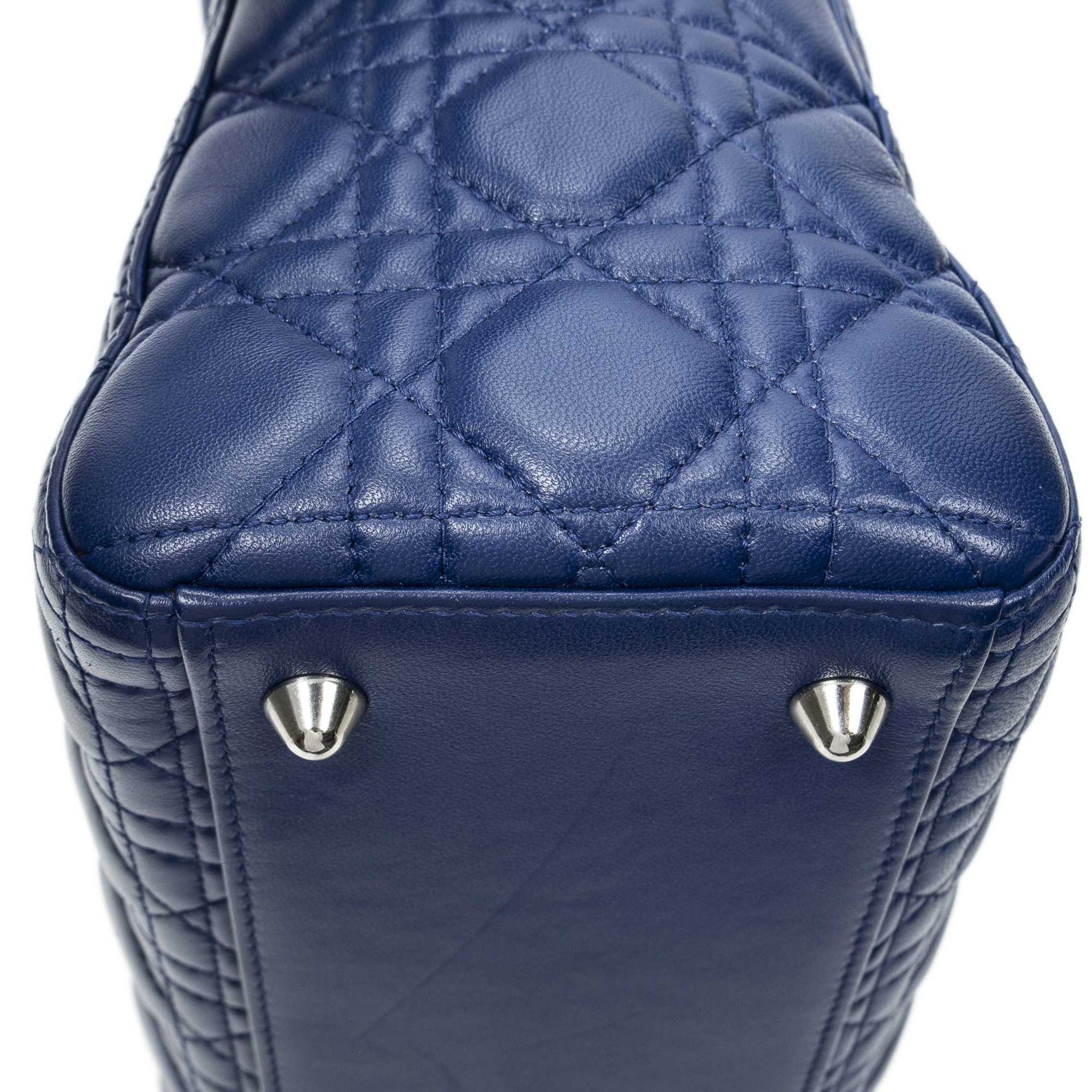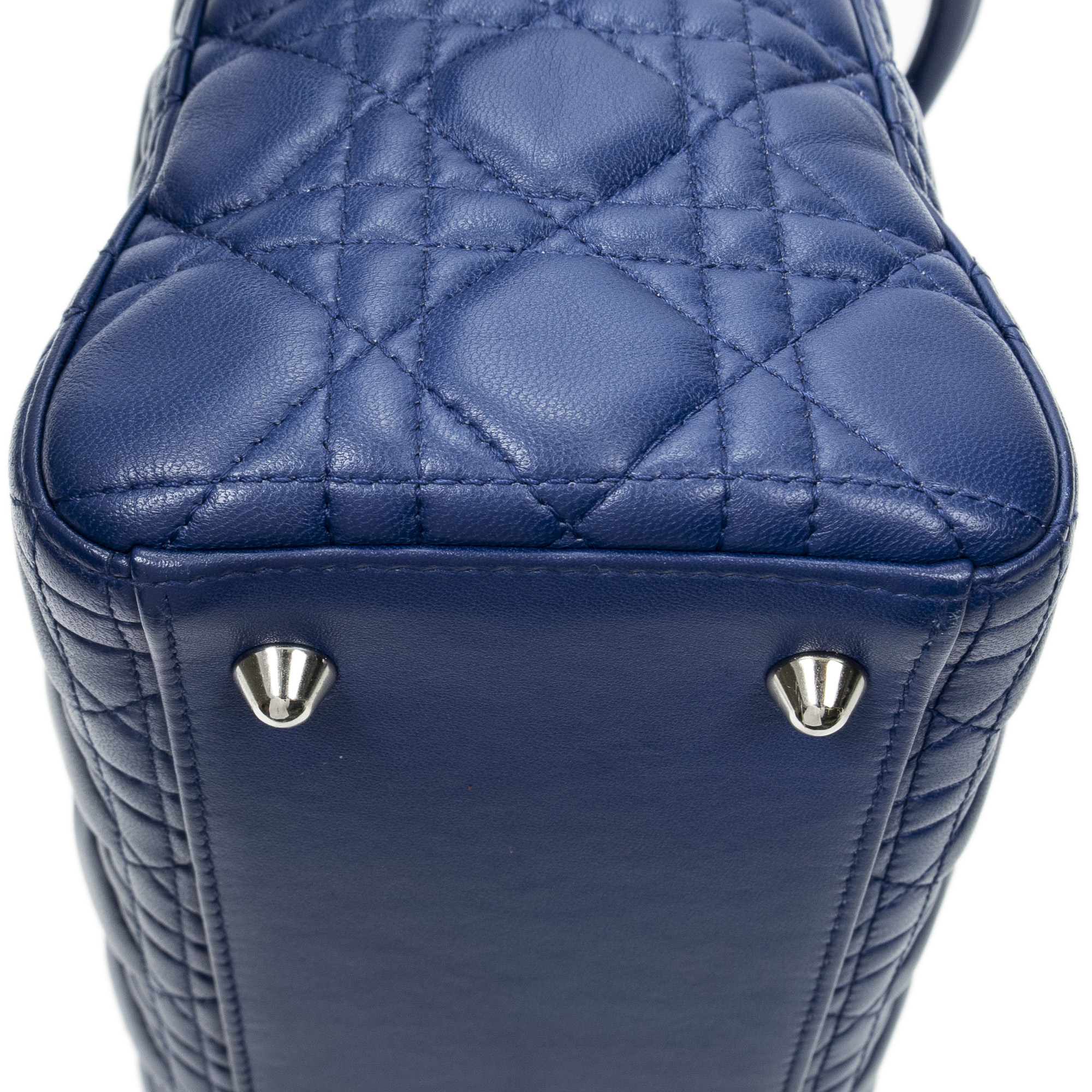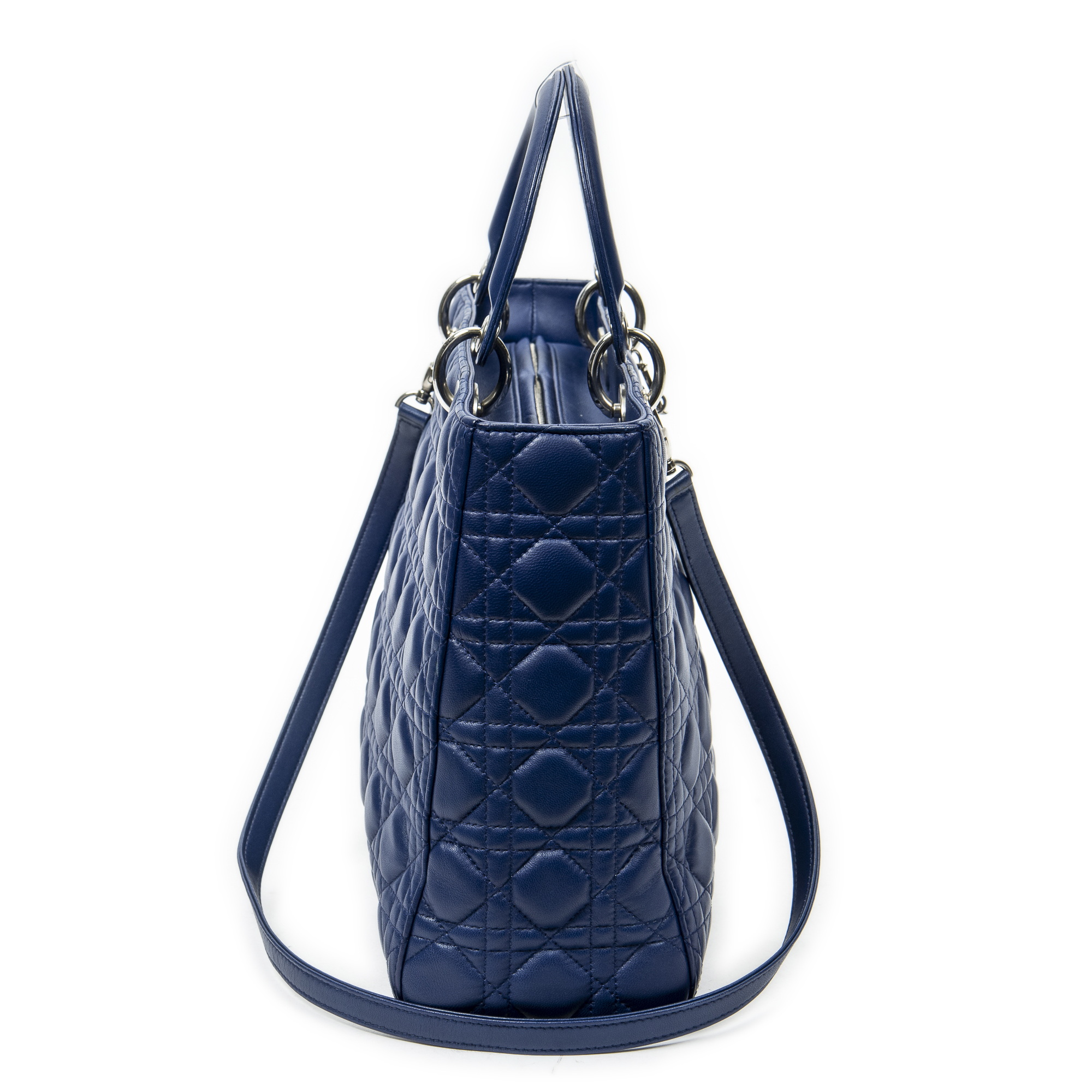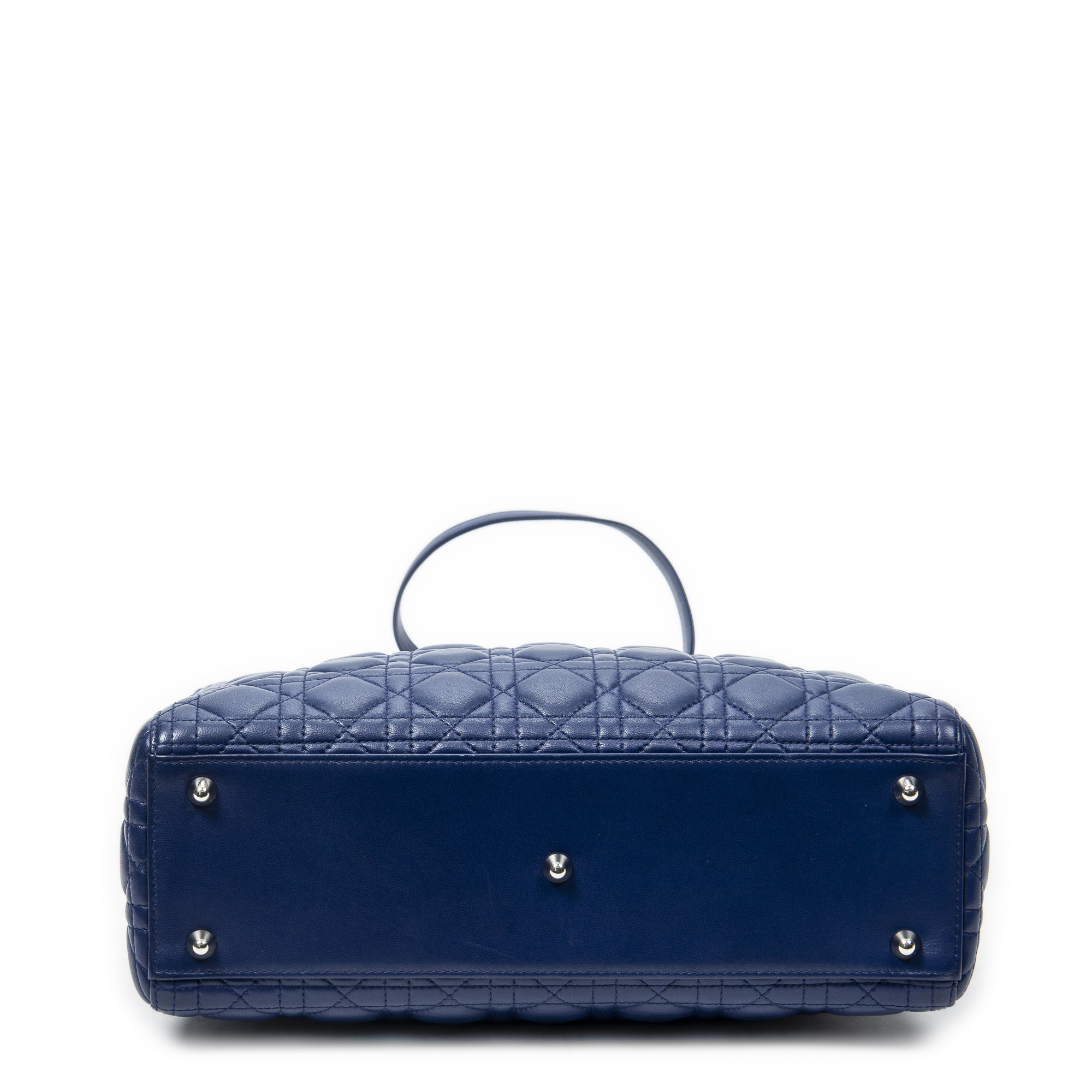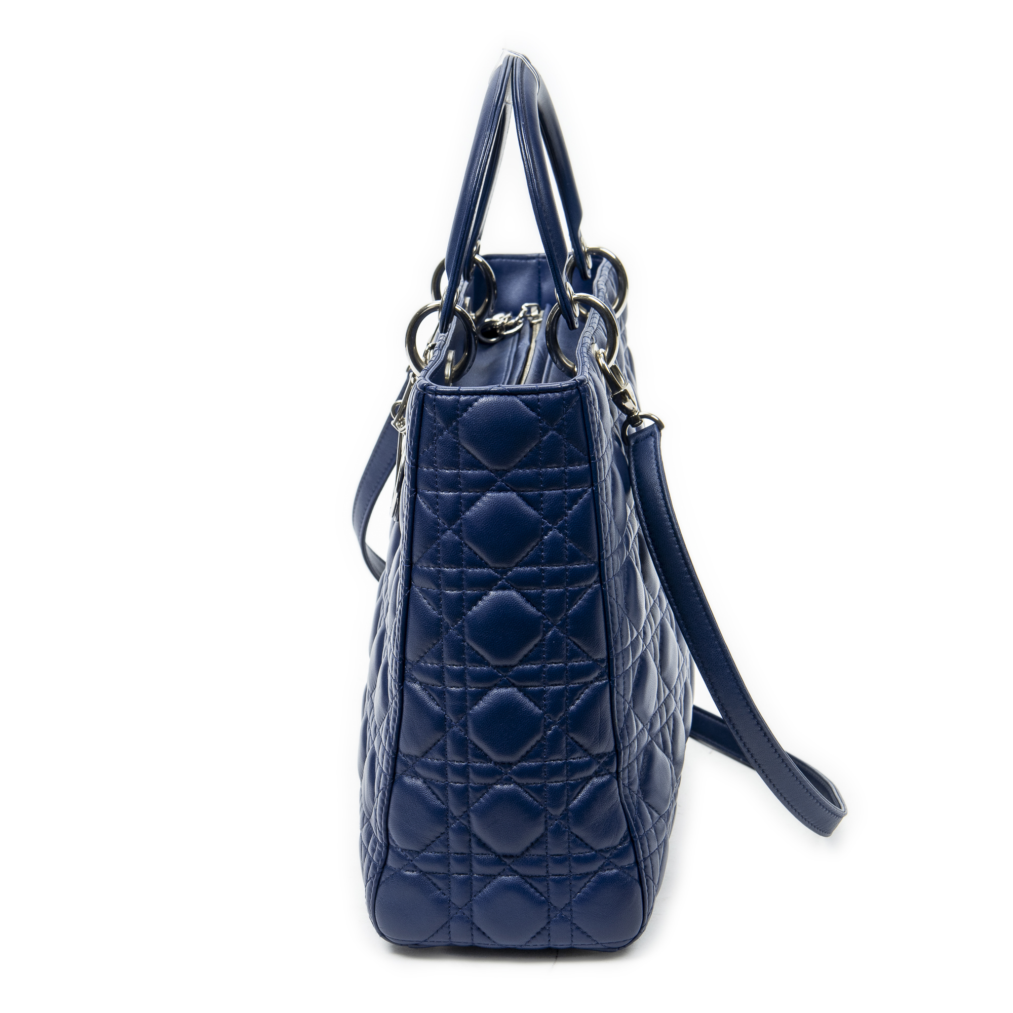 Dior Sac à bandoulière Large Lady Dior Zip en Royal Blue et Argent. Le produit est en Excellent état (A).