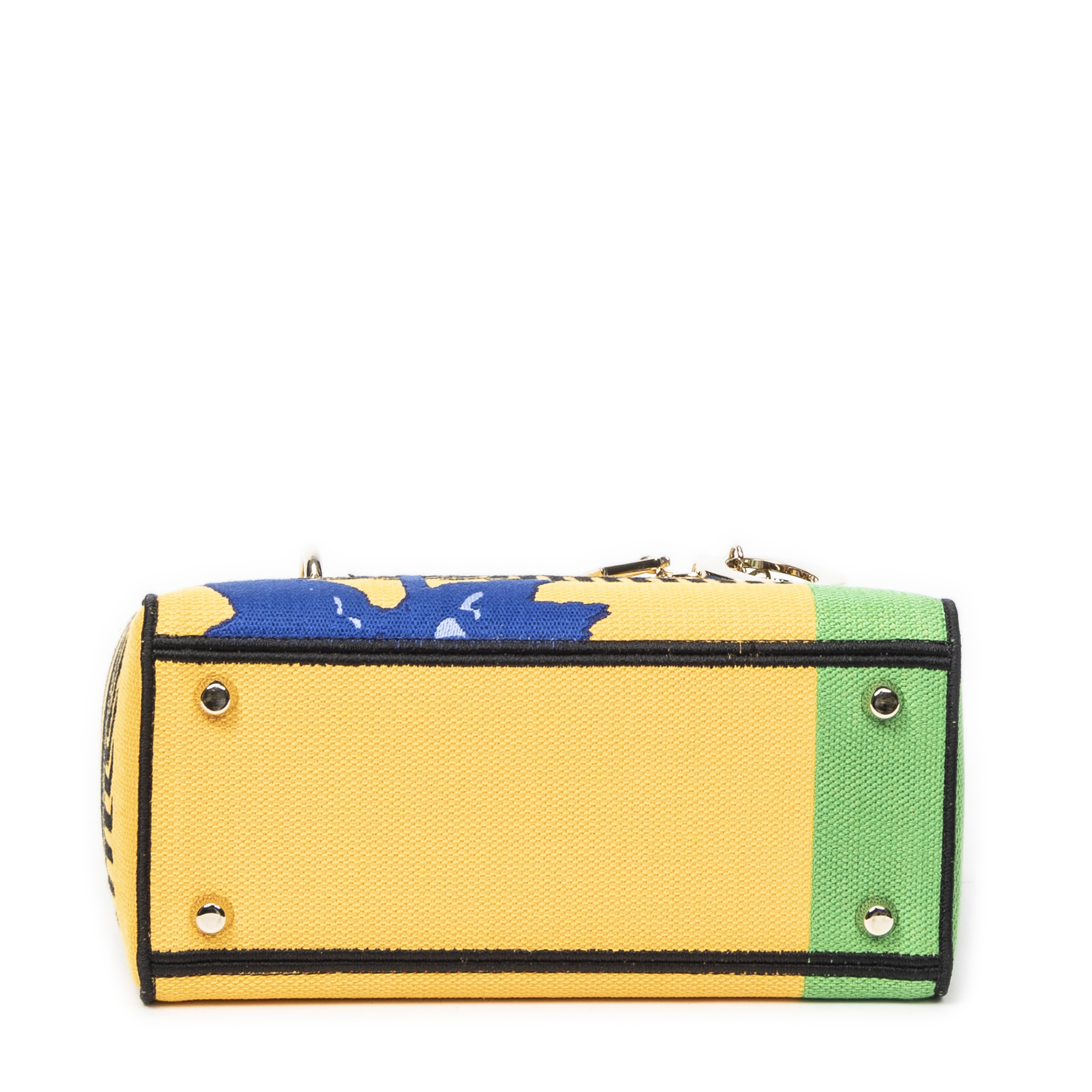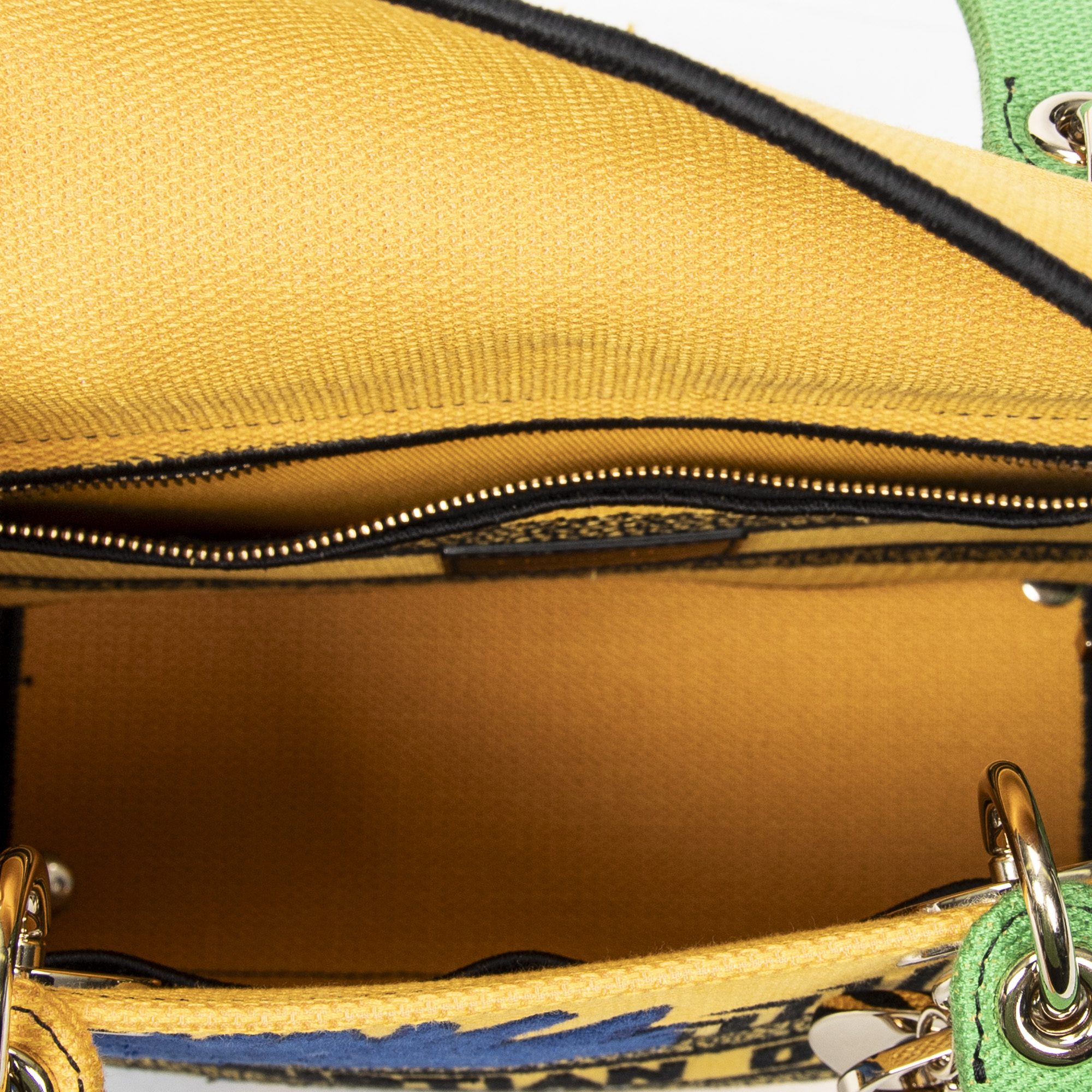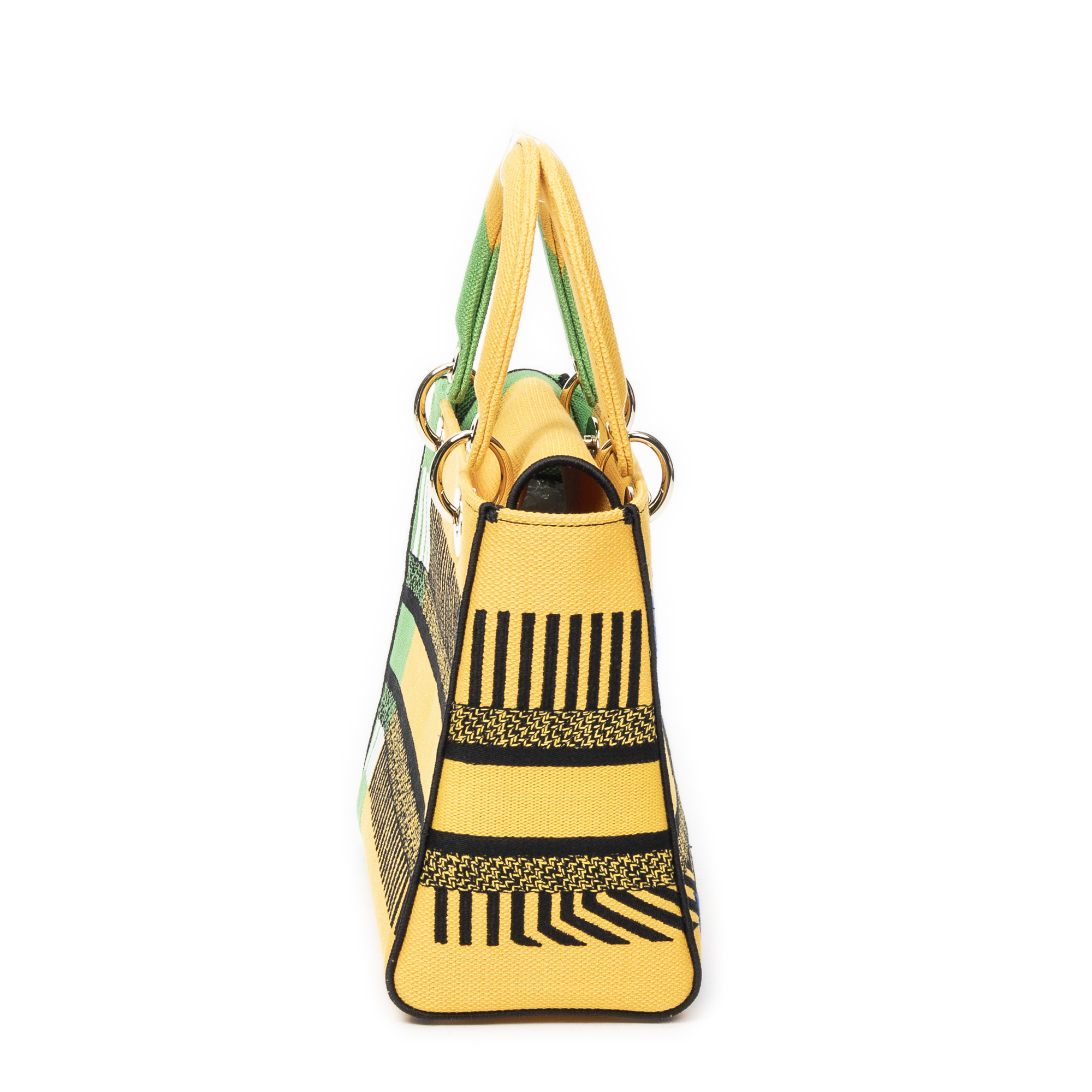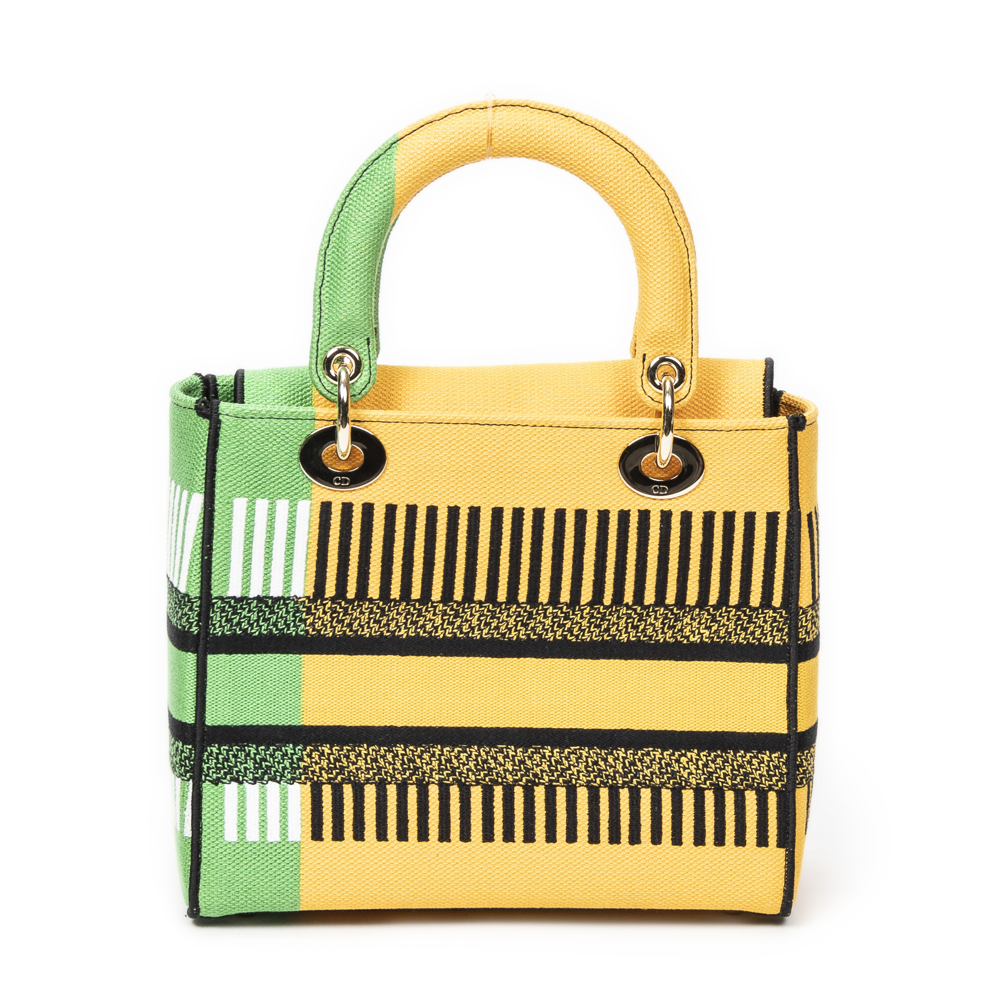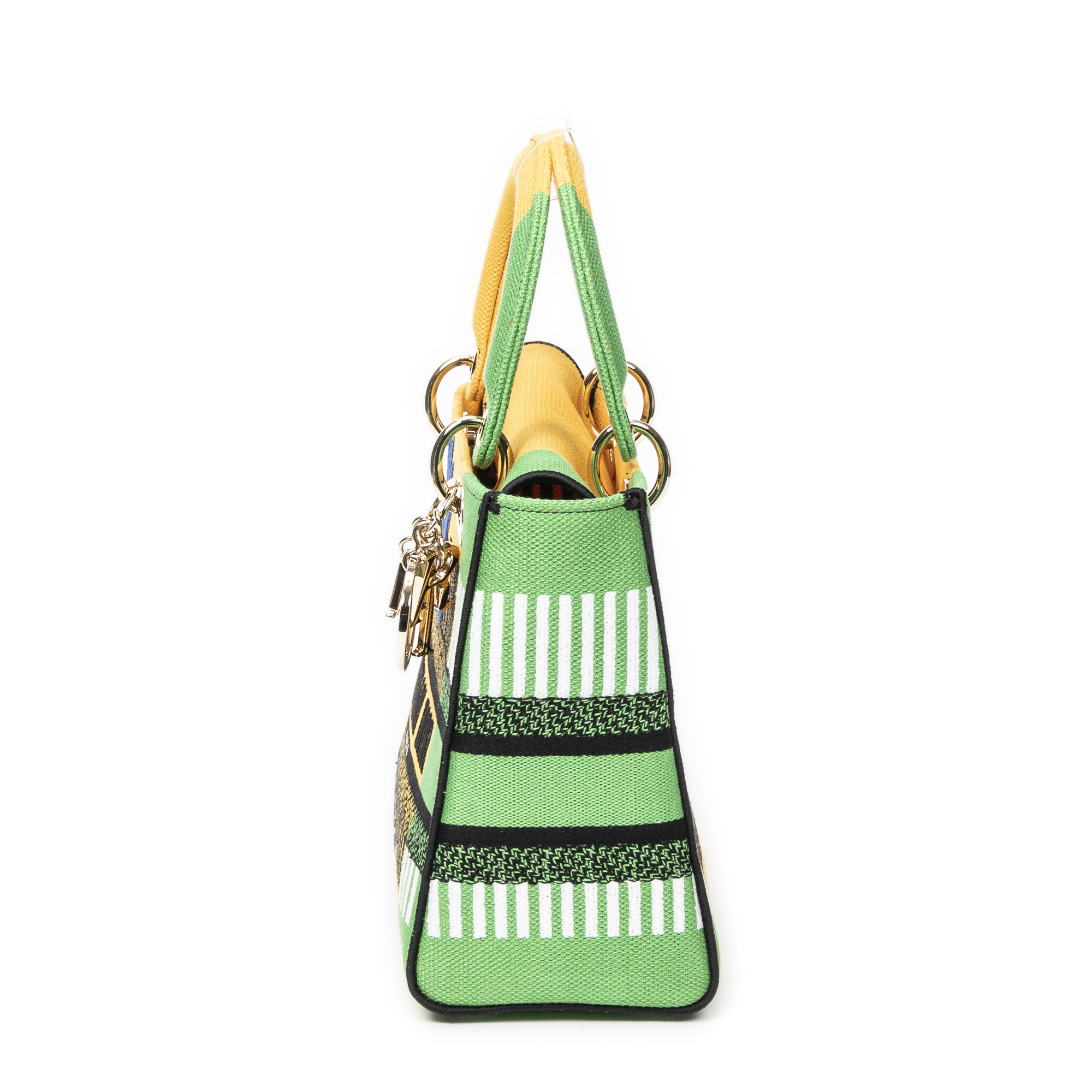 Dior Sac à bandoulière Medium Lady D-Lite en Jaune/Vert et Gold. Le produit est en Parfait état (AA).