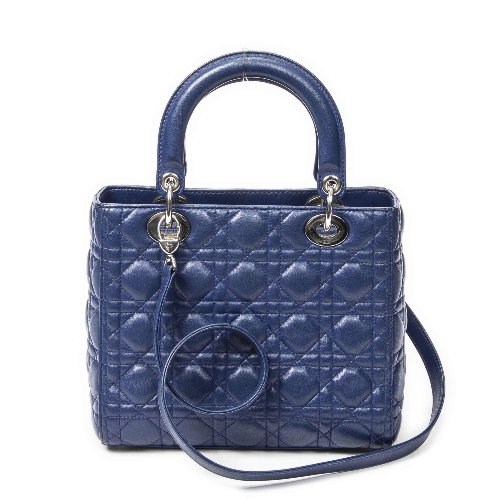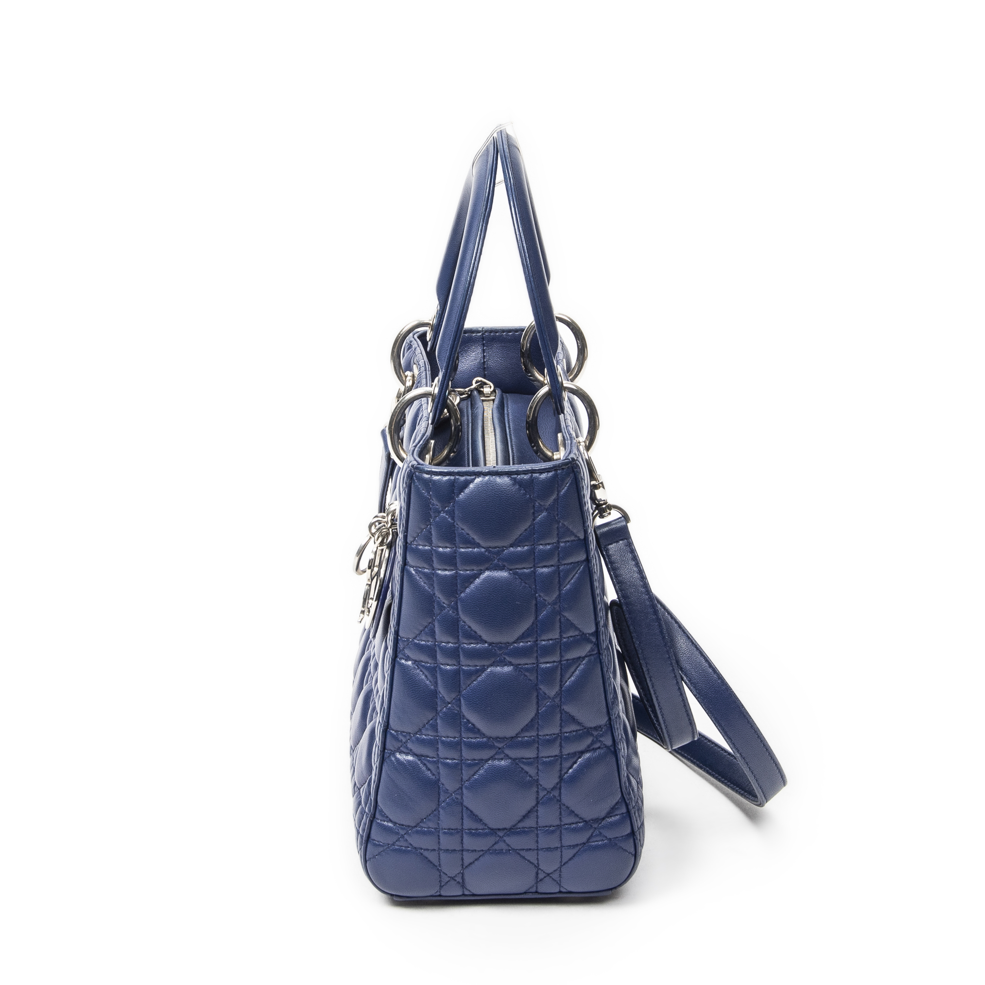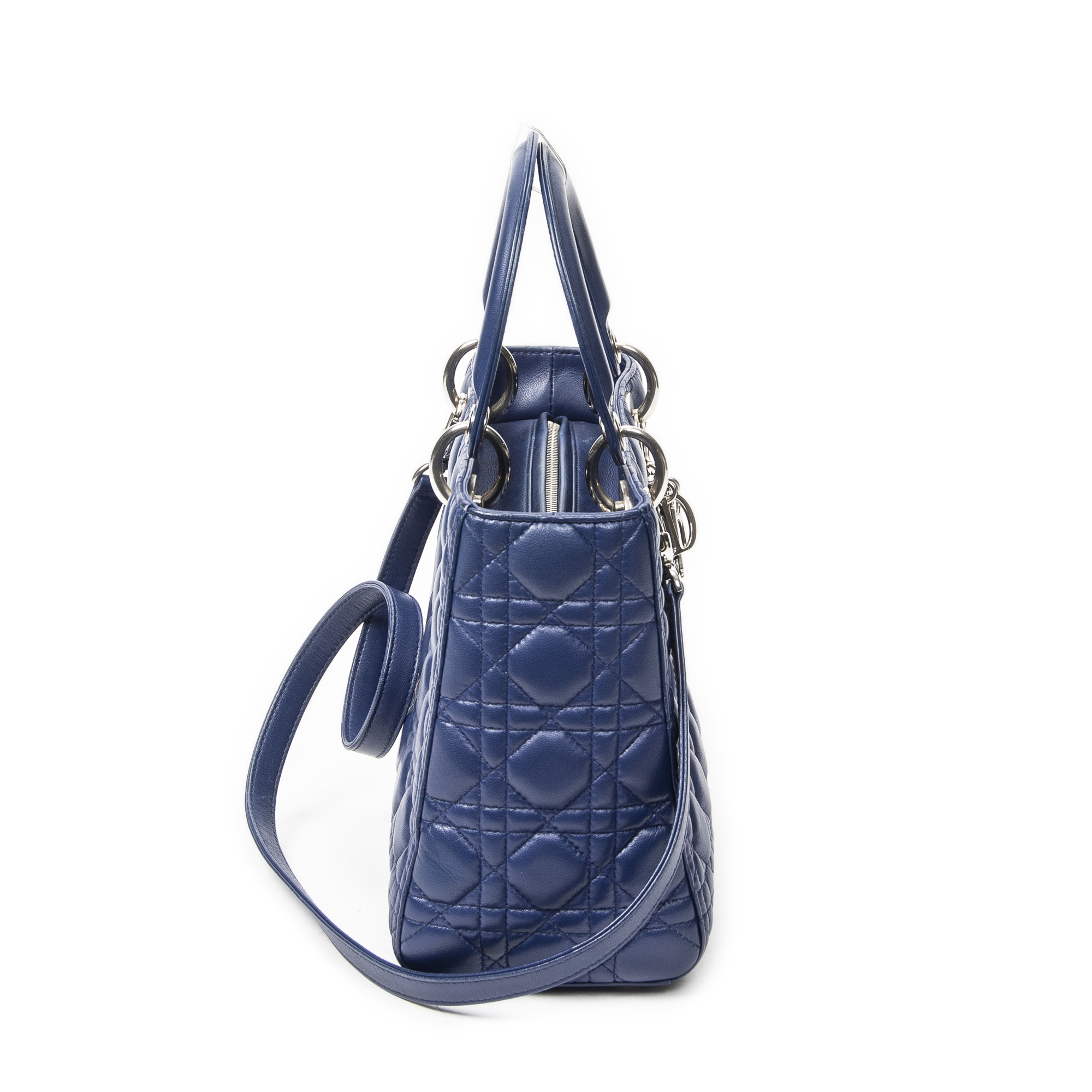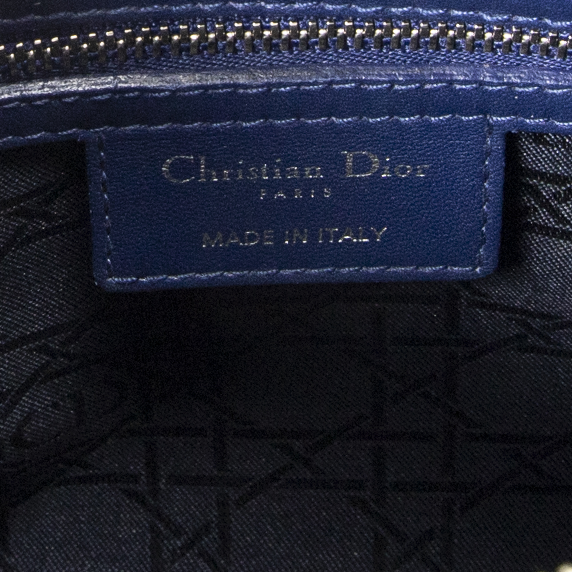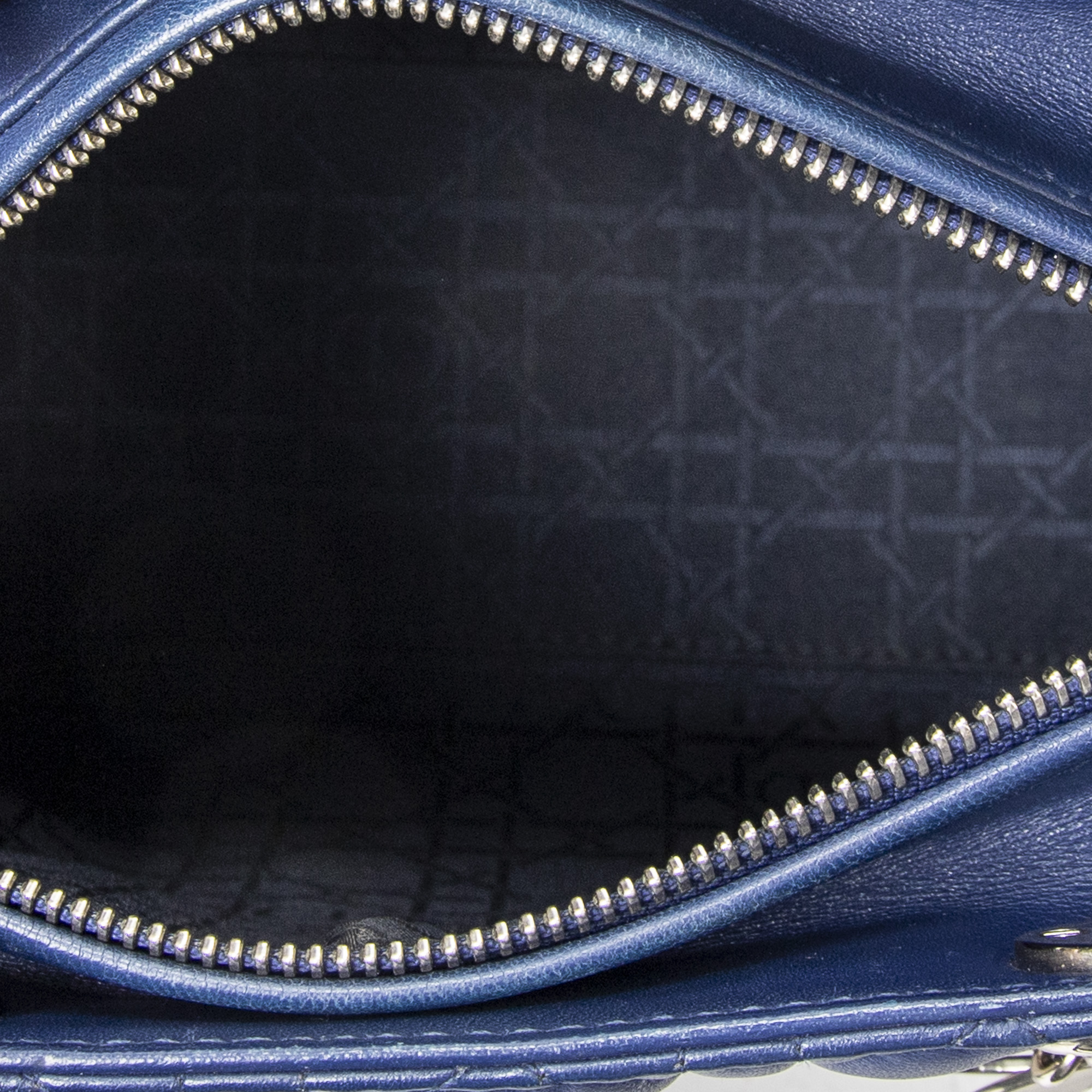 Dior Sac à bandoulière Medium Lady Dior Zip en Blue et Argent. Le produit est en Excellent état (A).