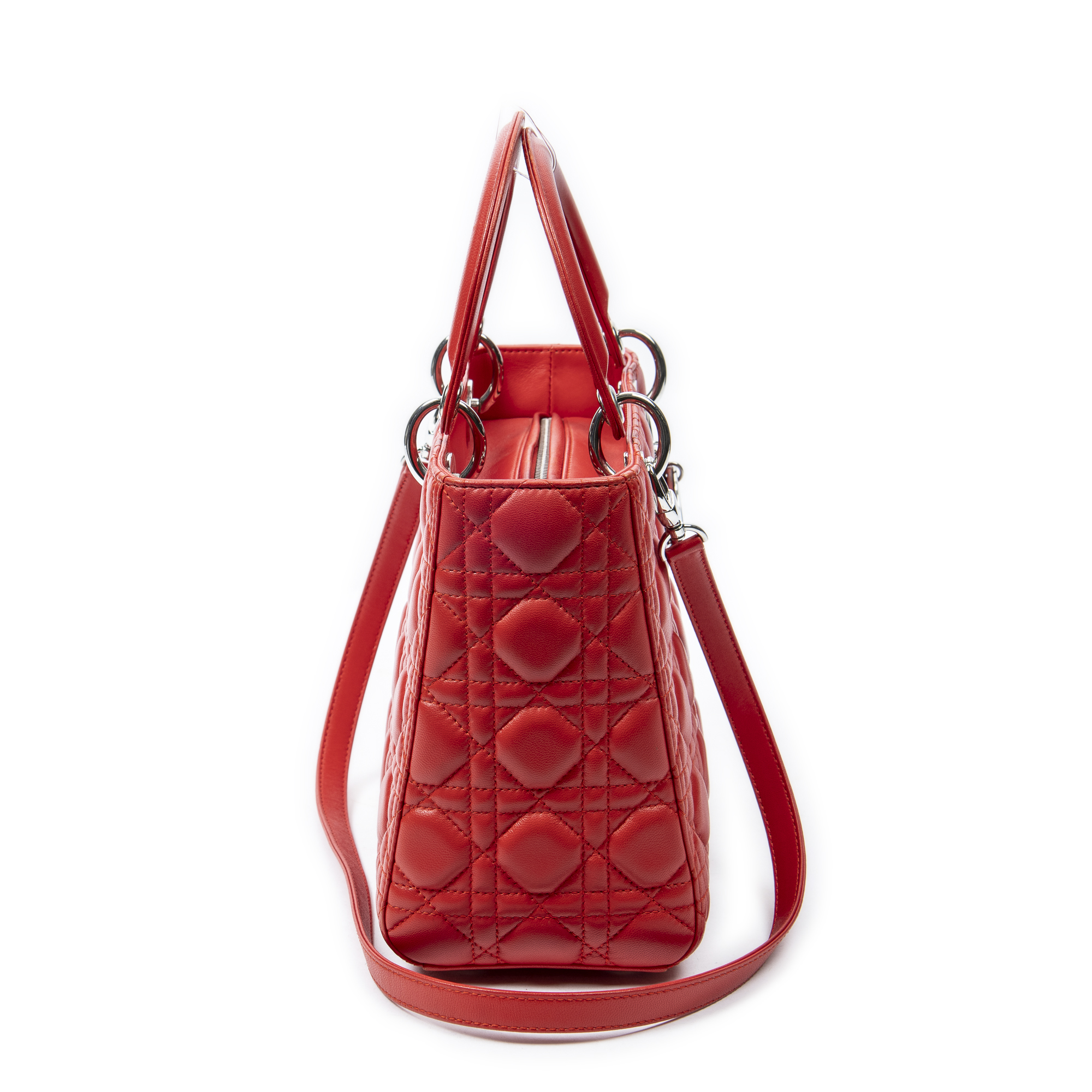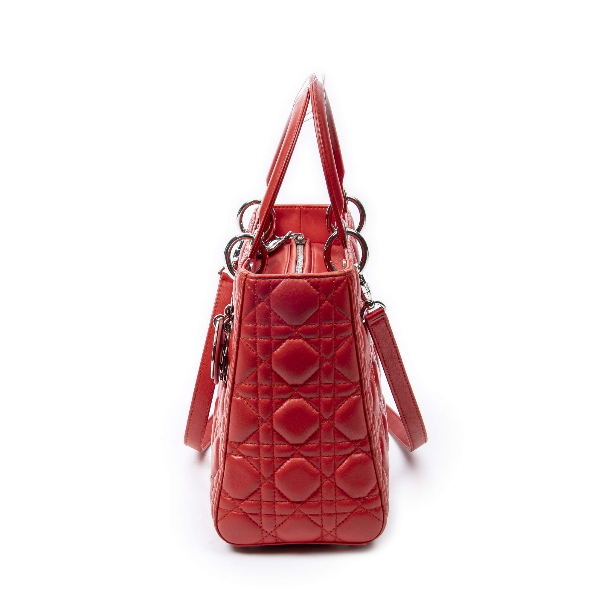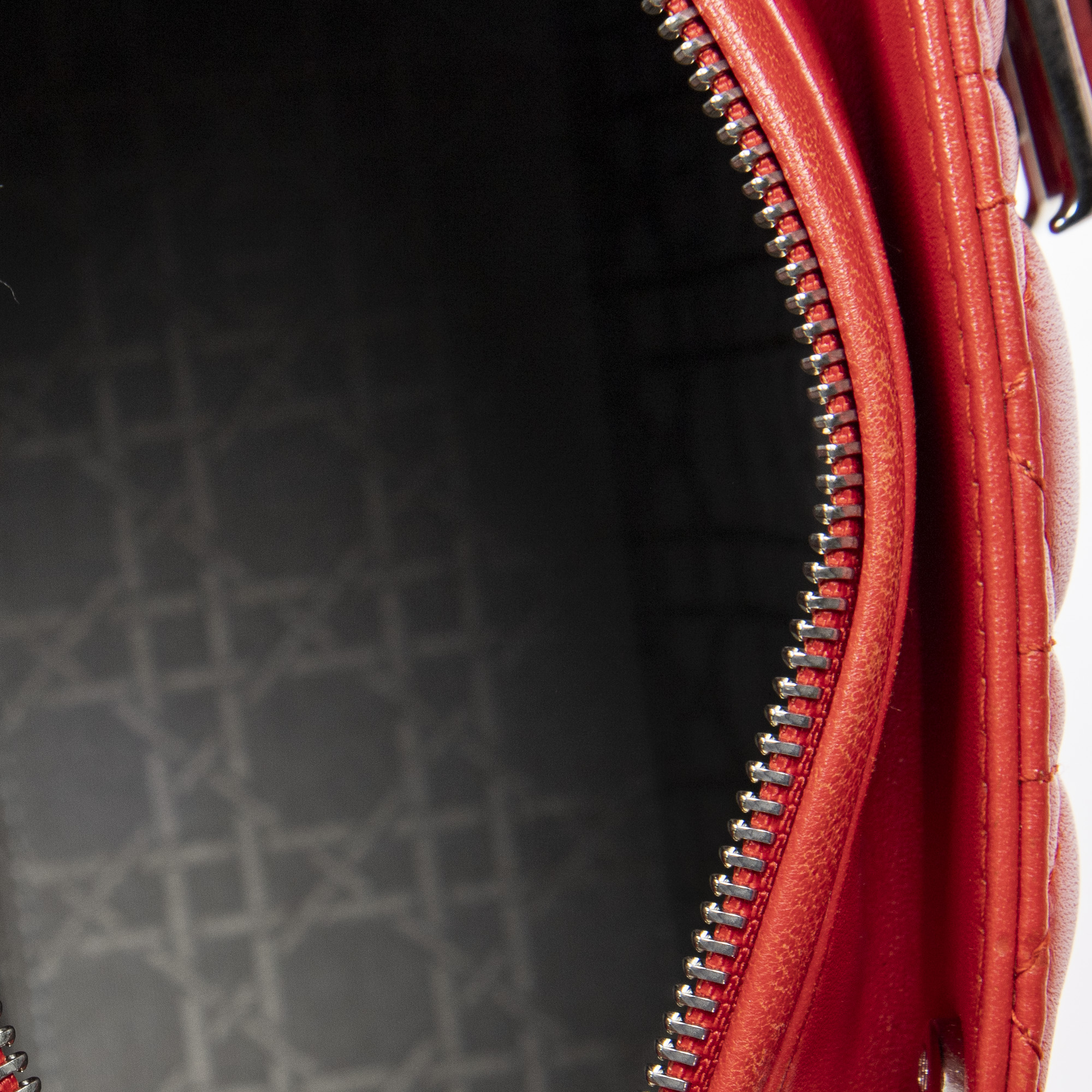 Dior sac à bandoulière Medium Lady Dior Zip en Red et argent. Le produit est en Excellent état (A).