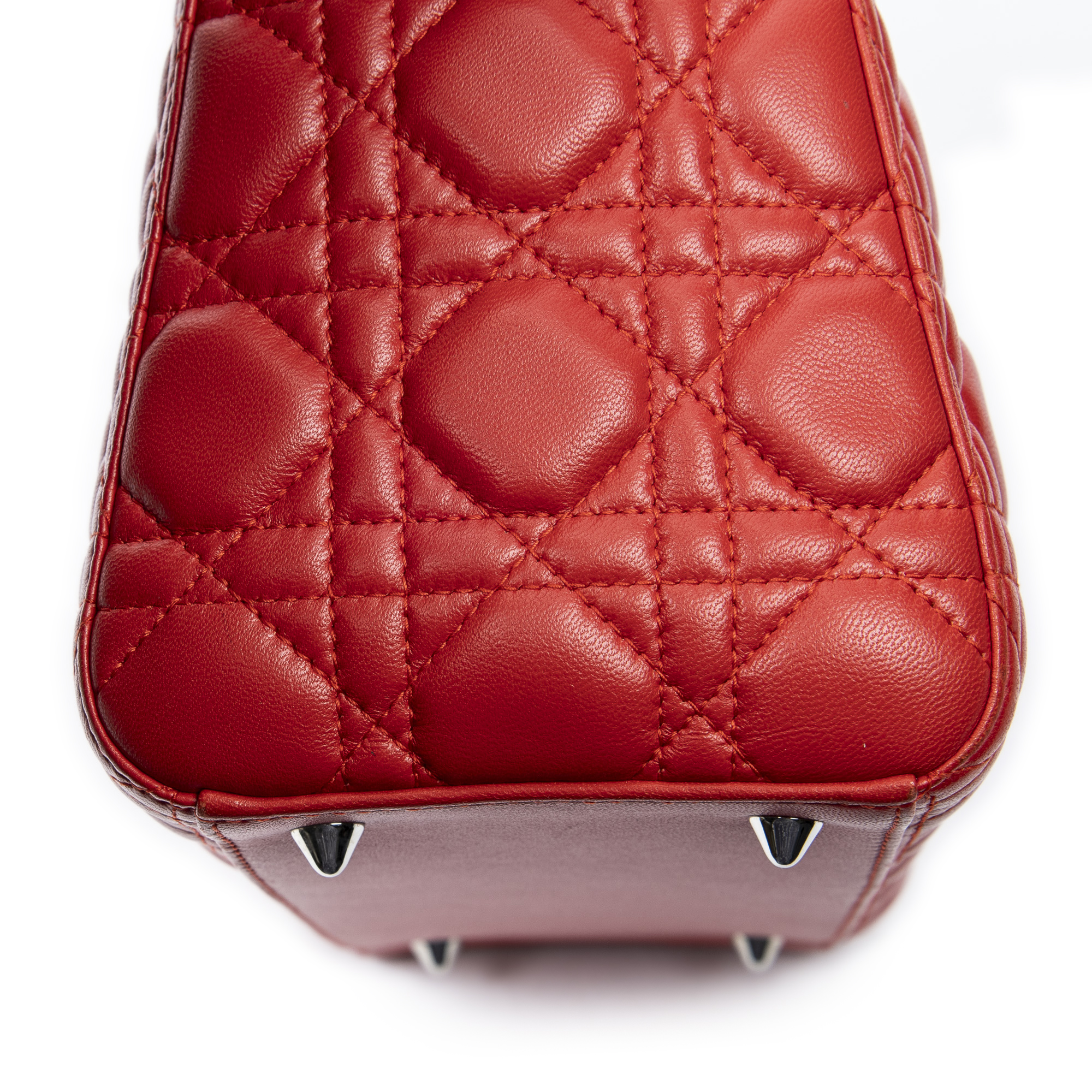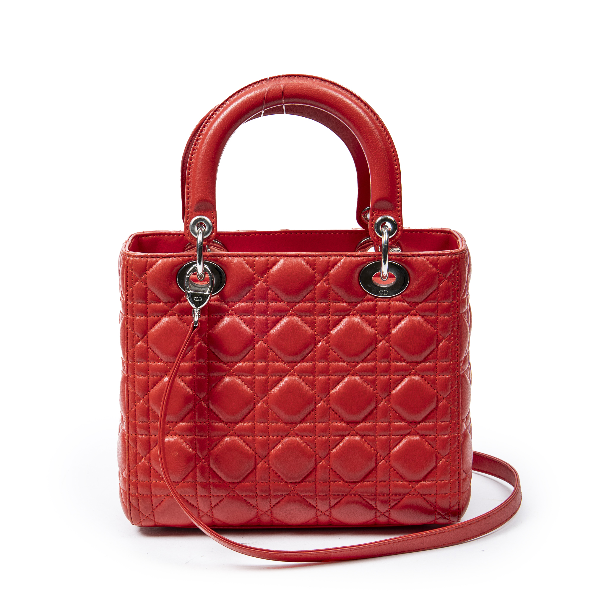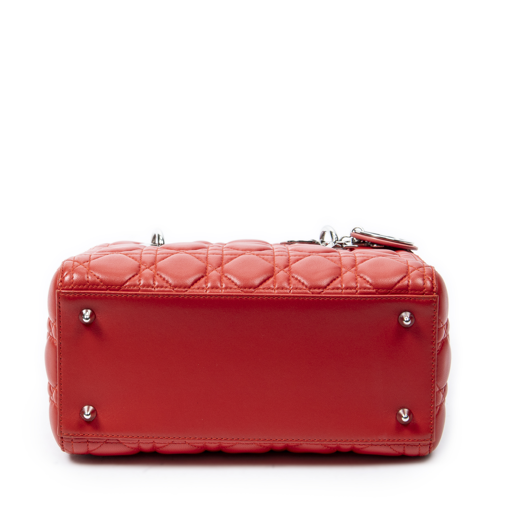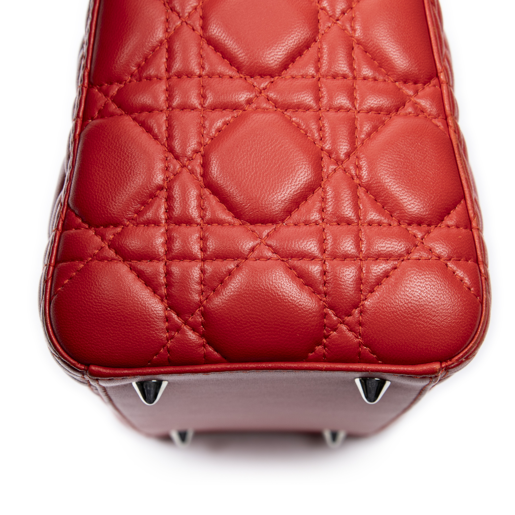 Dior sac à bandoulière Medium Lady Dior Zip en Red et argent. Le produit est en Excellent état (A).