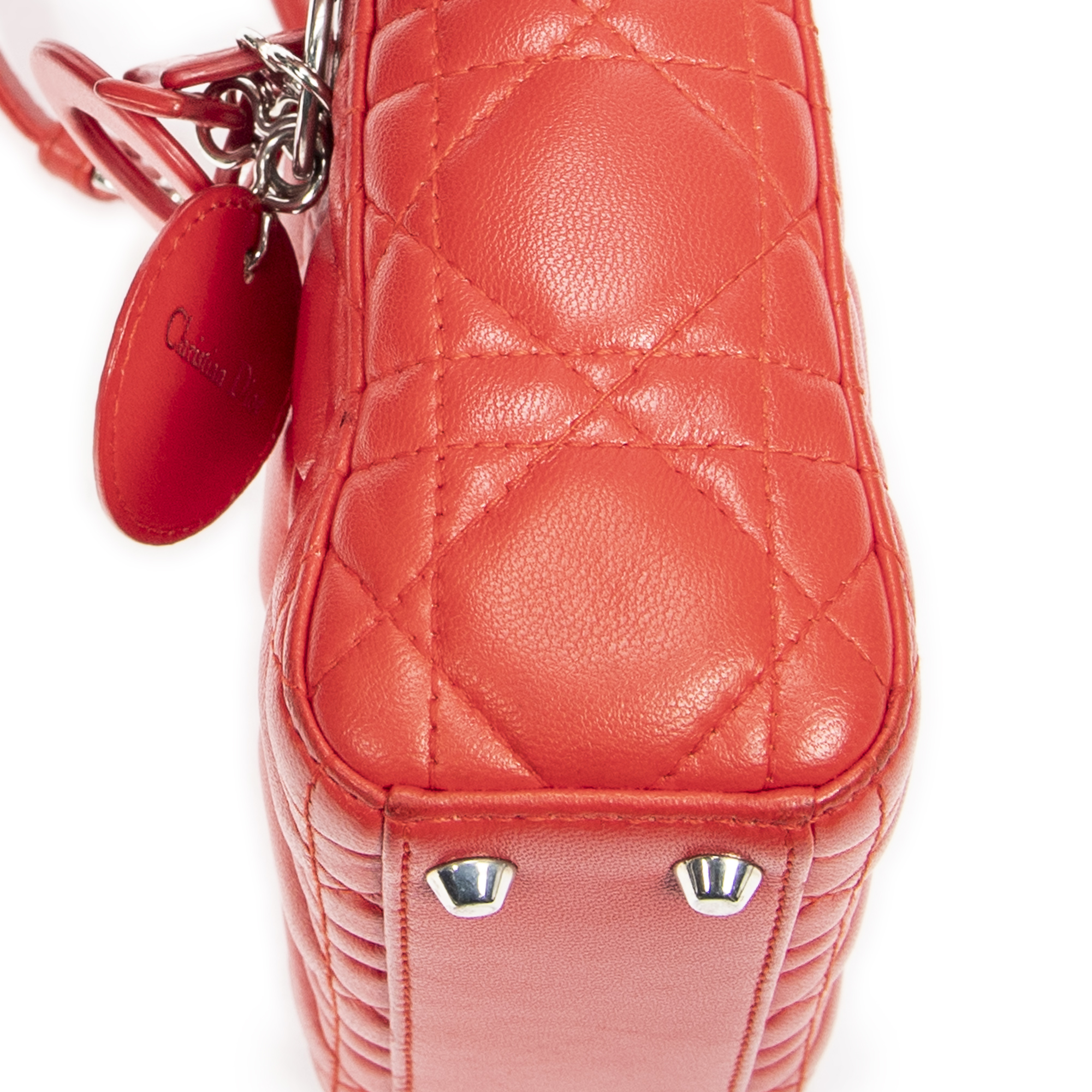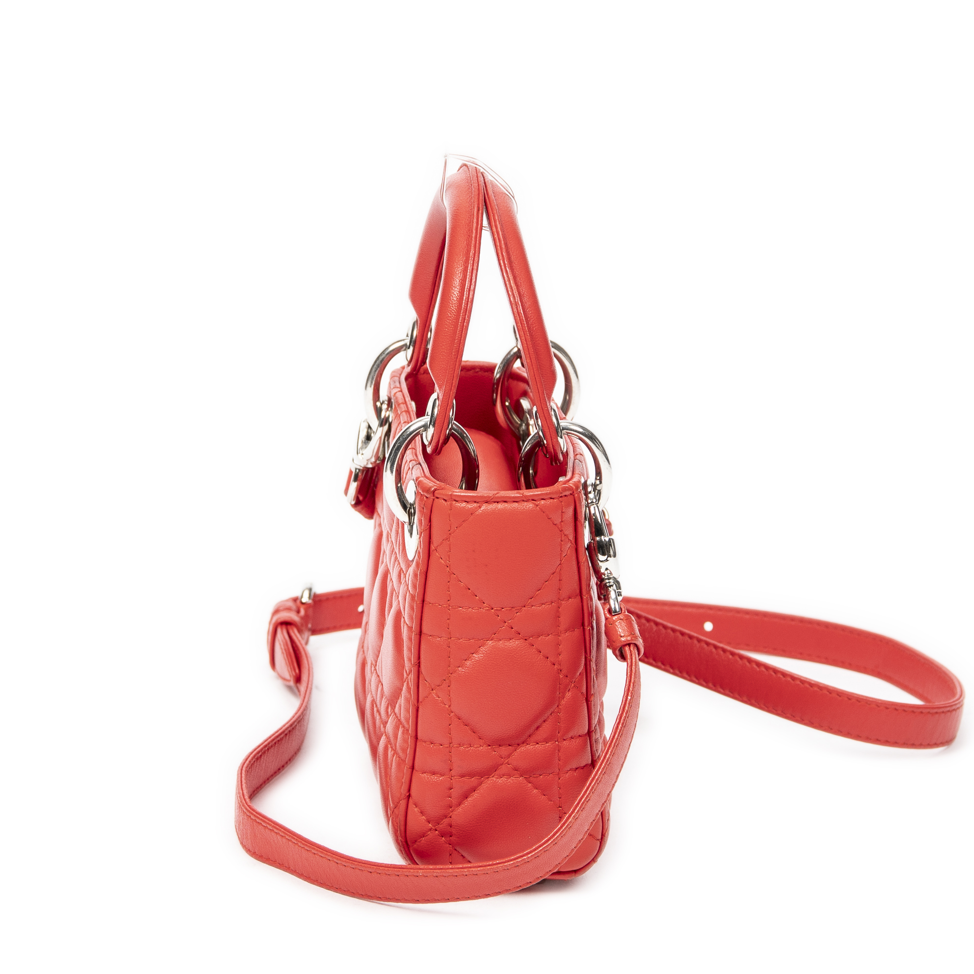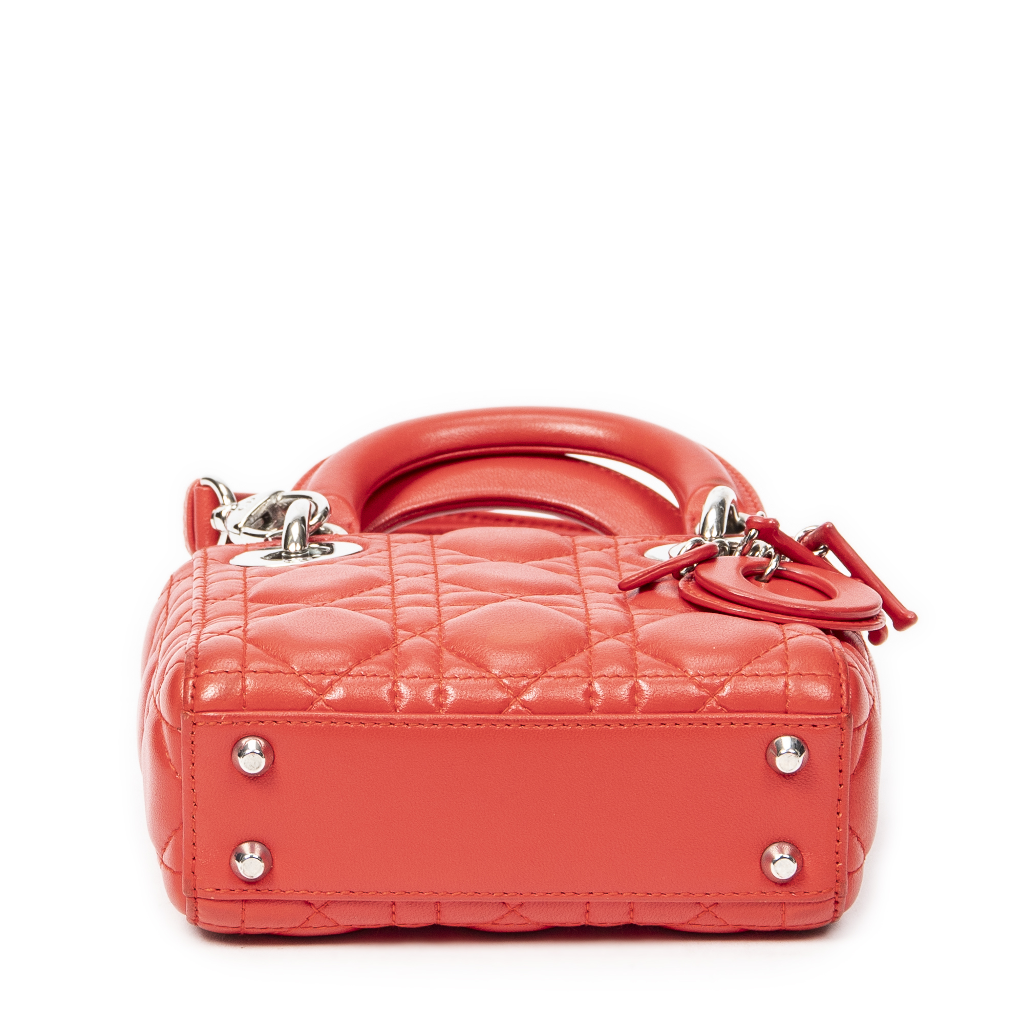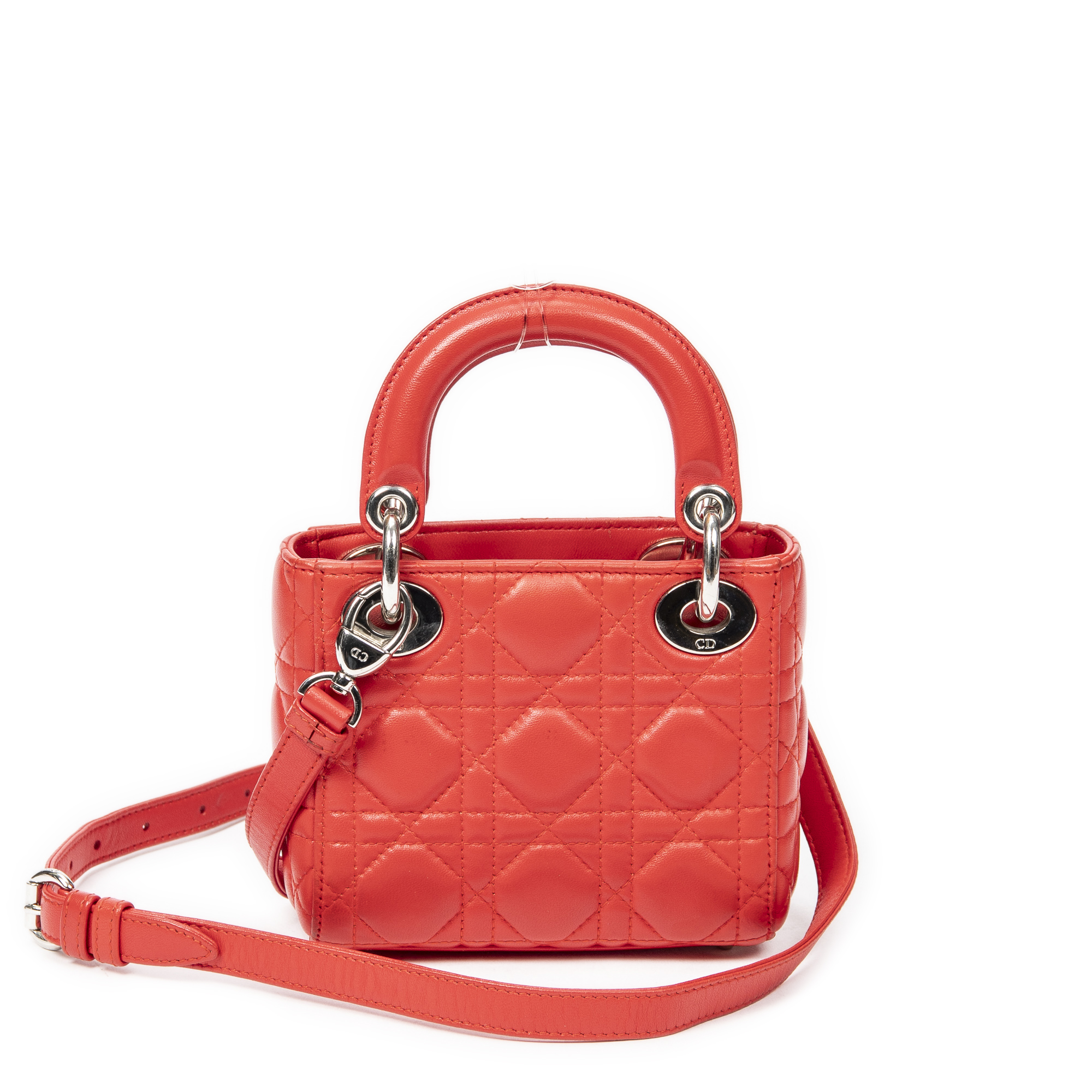 Dior Sac à bandoulière Micro Lady Dior en Red et Argent. Le produit est en Excellent état (A).