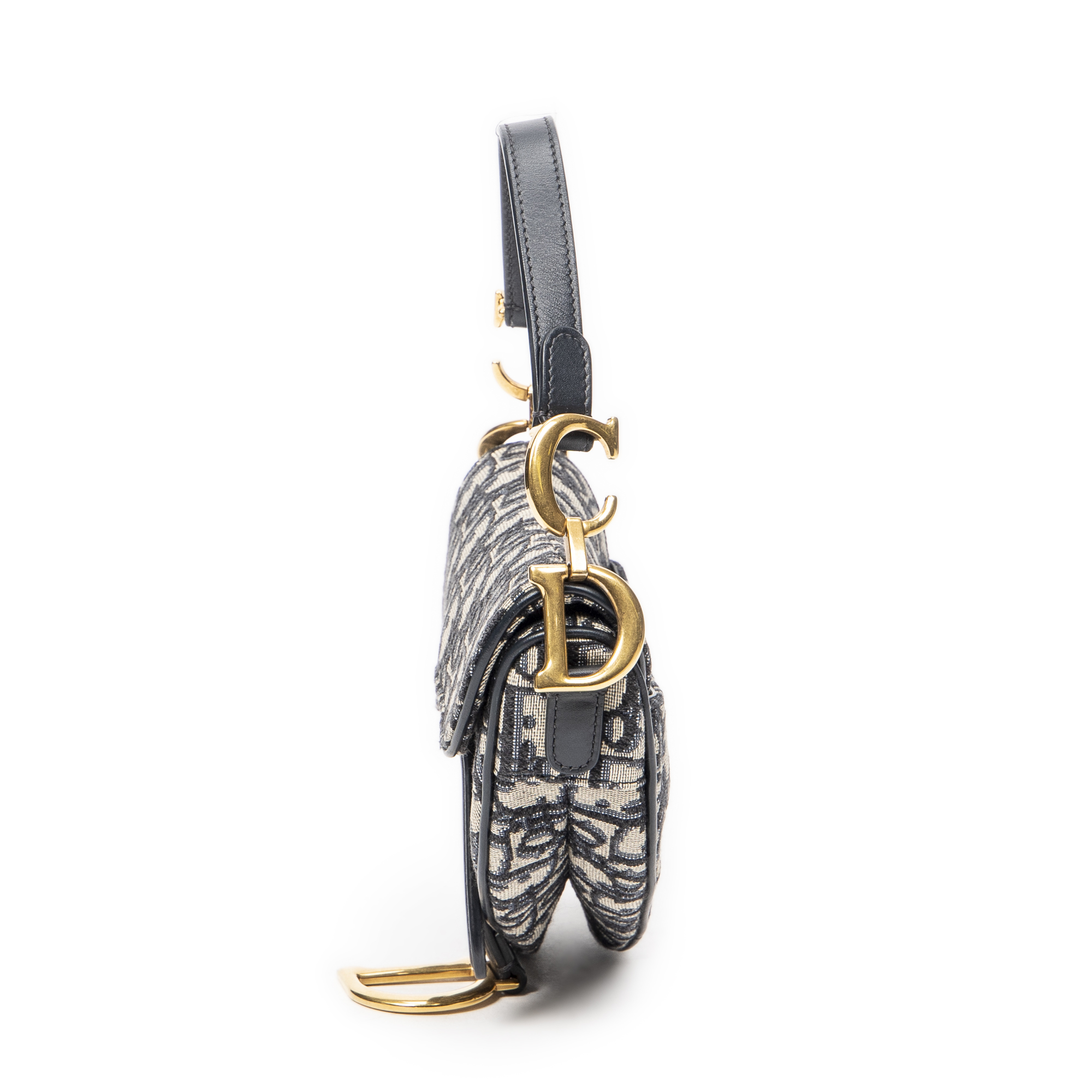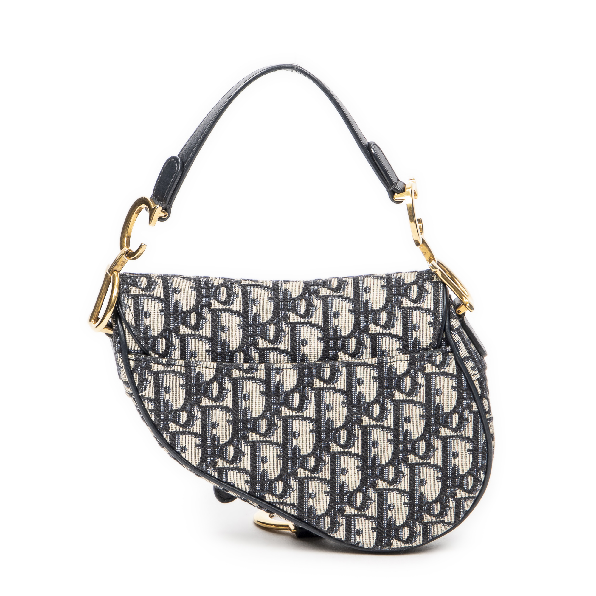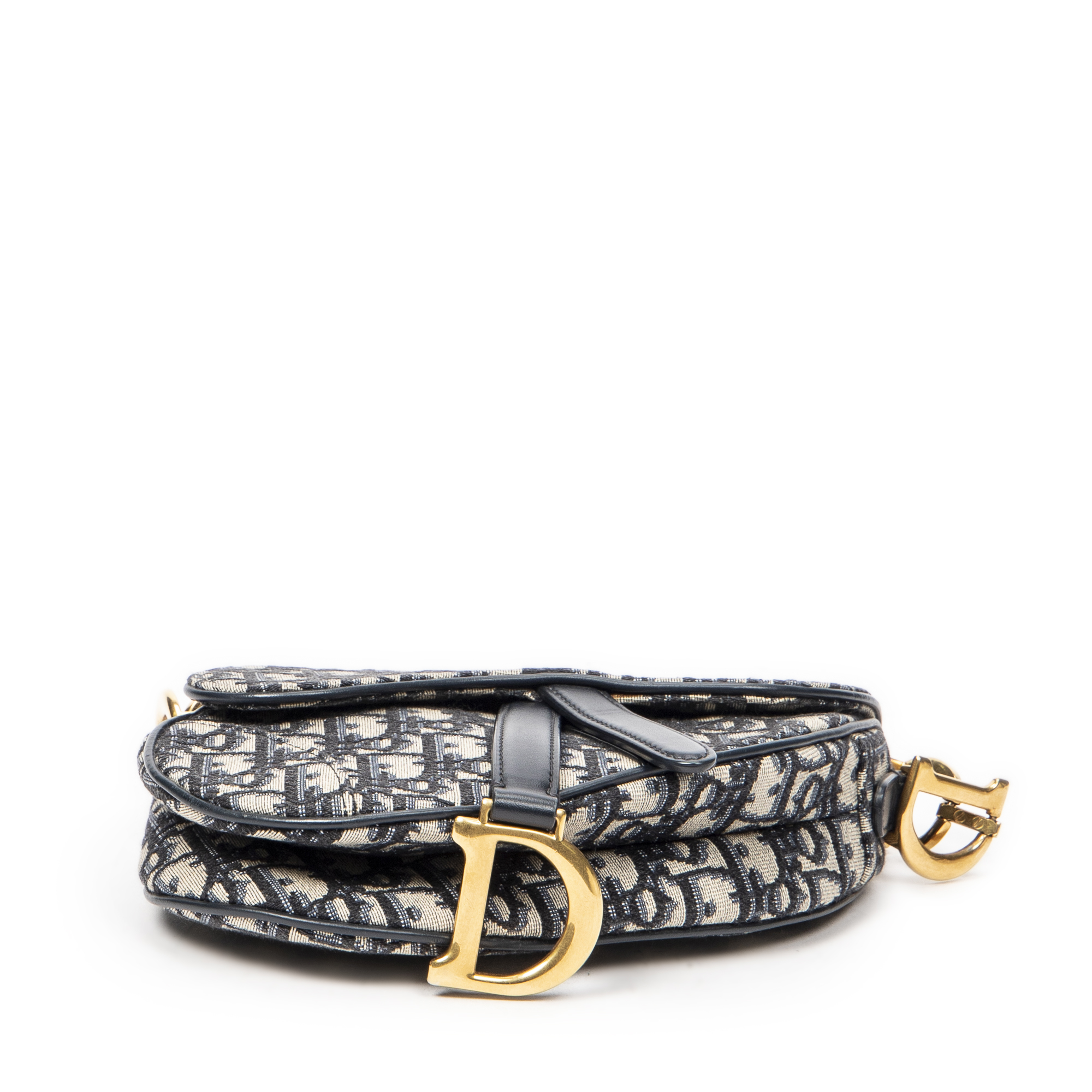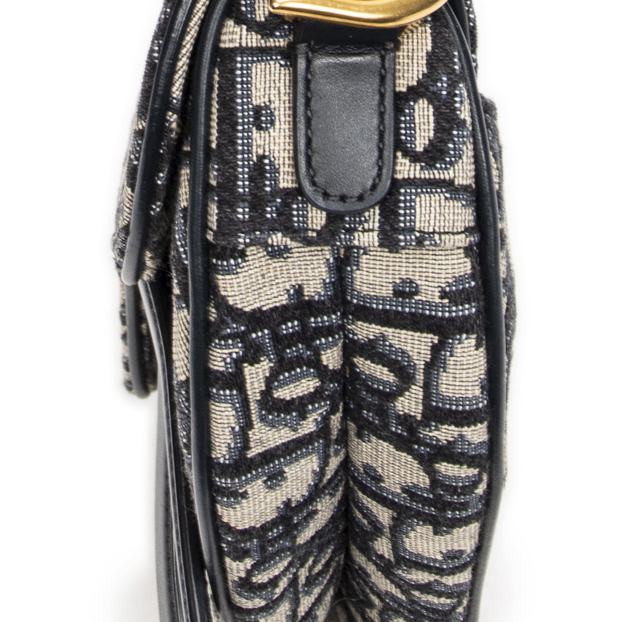 Dior Sac à bandoulière Mini Saddle Bag en Bleu marine/Beige et Or. Le produit est en Excellent état (A).