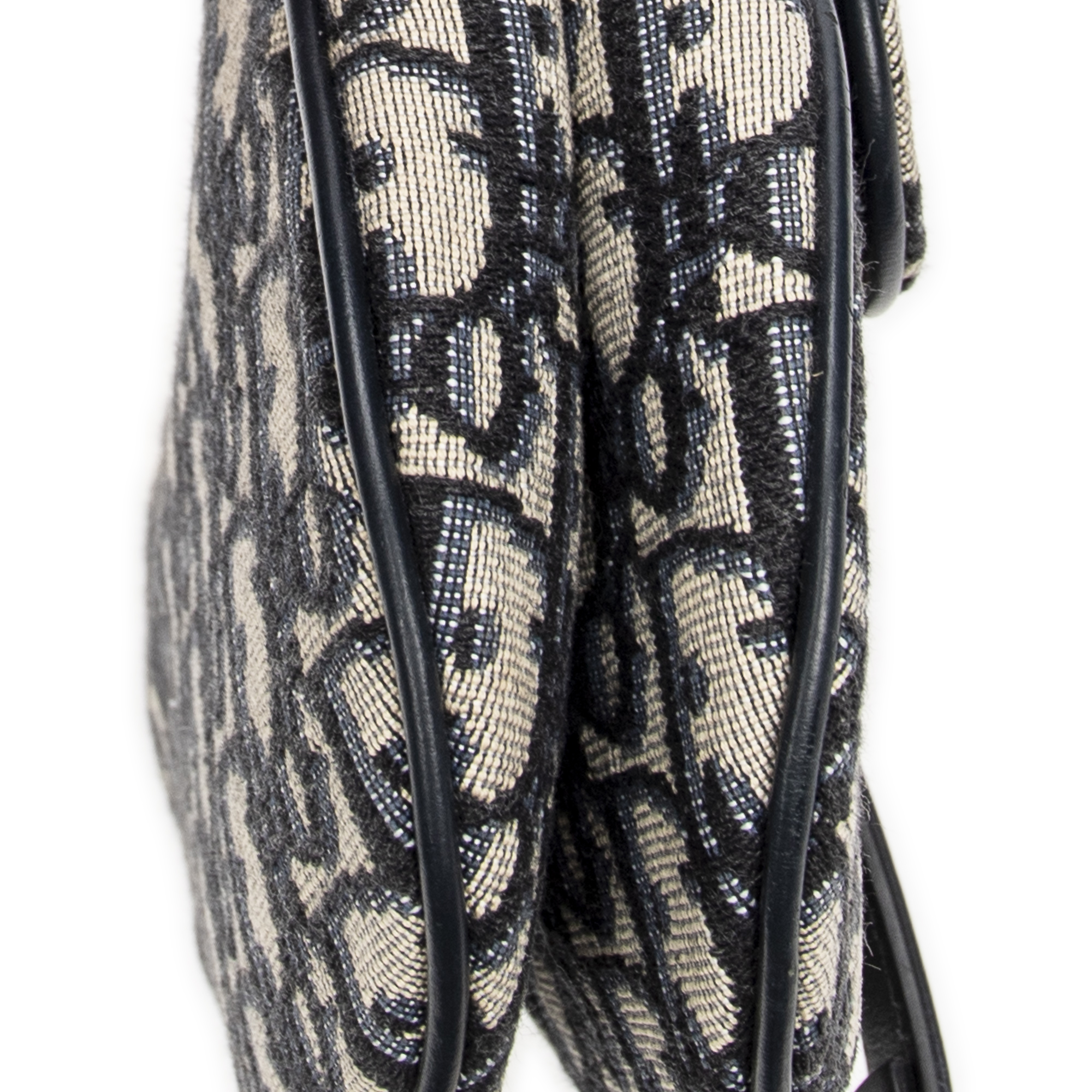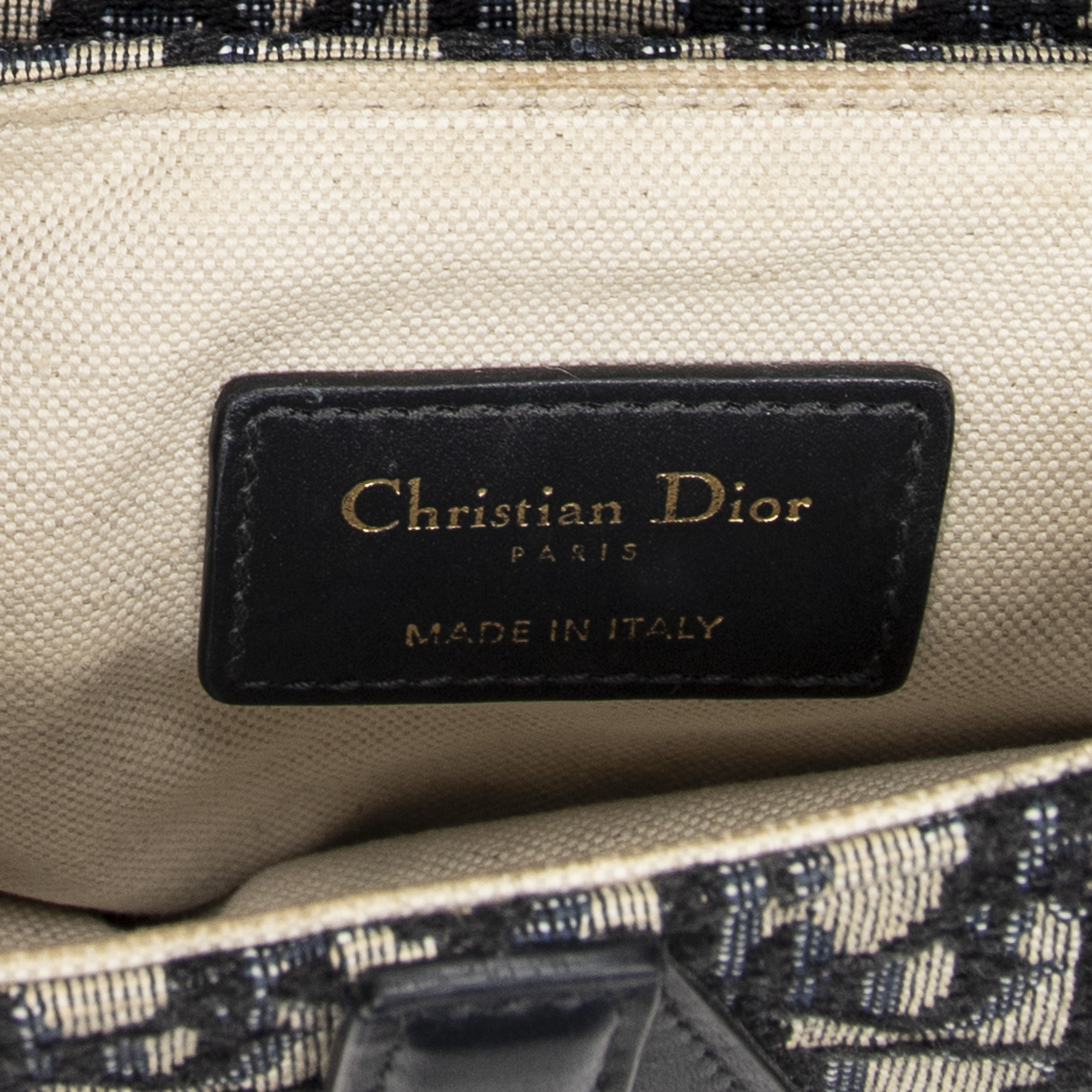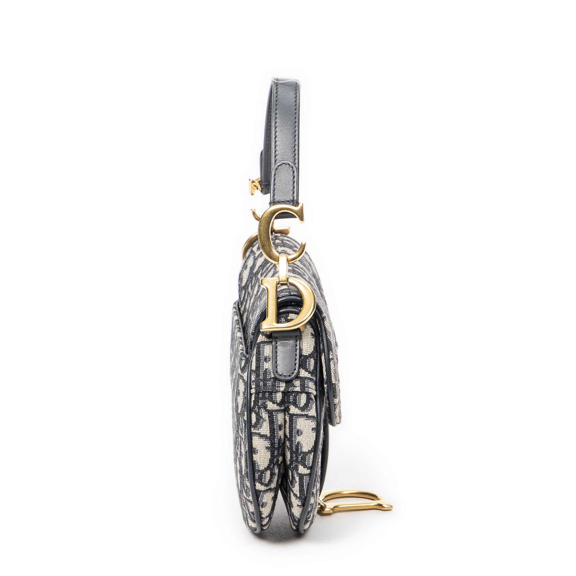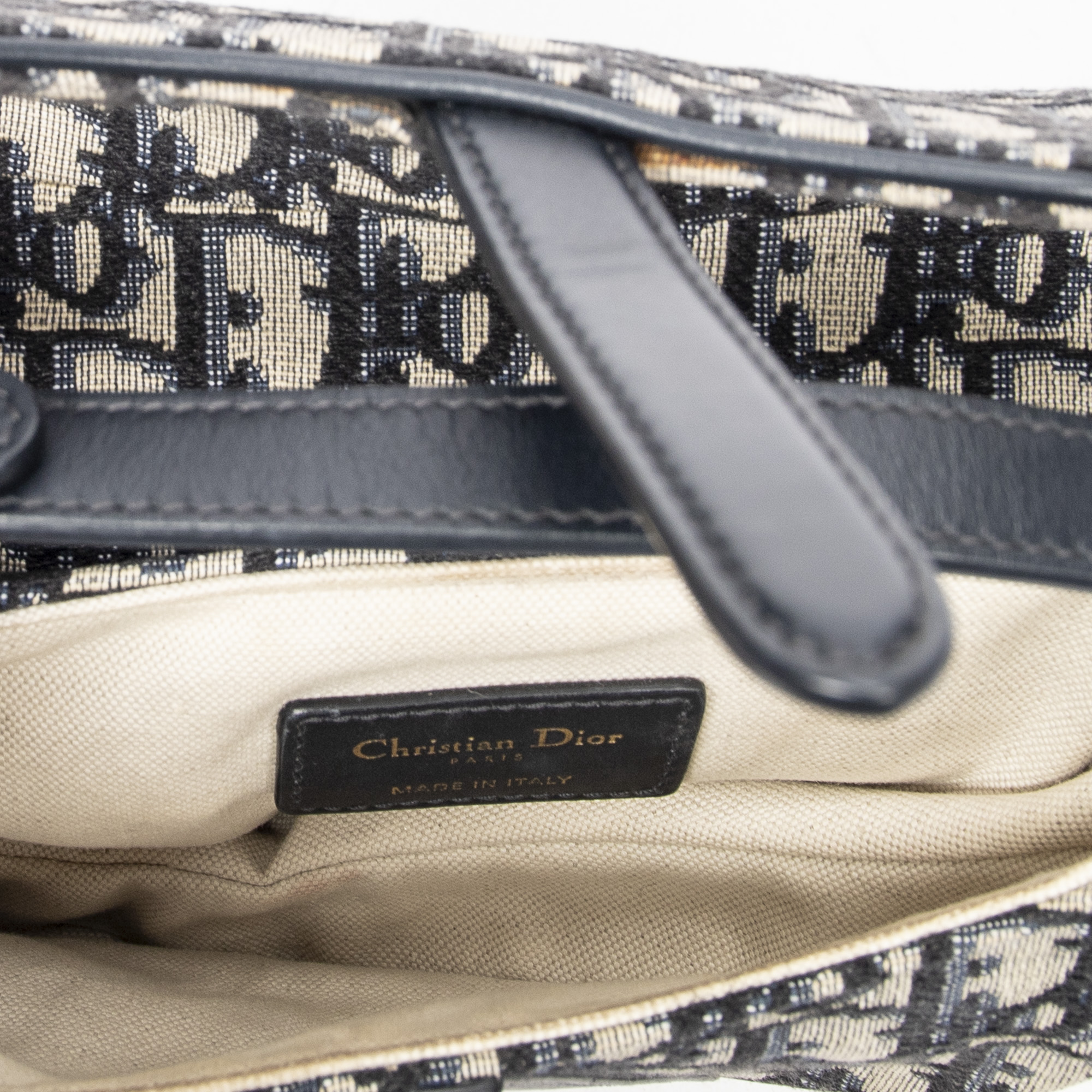 Dior Sac à bandoulière Mini Saddle Bag en Bleu marine/Beige et Or. Le produit est en Excellent état (A).