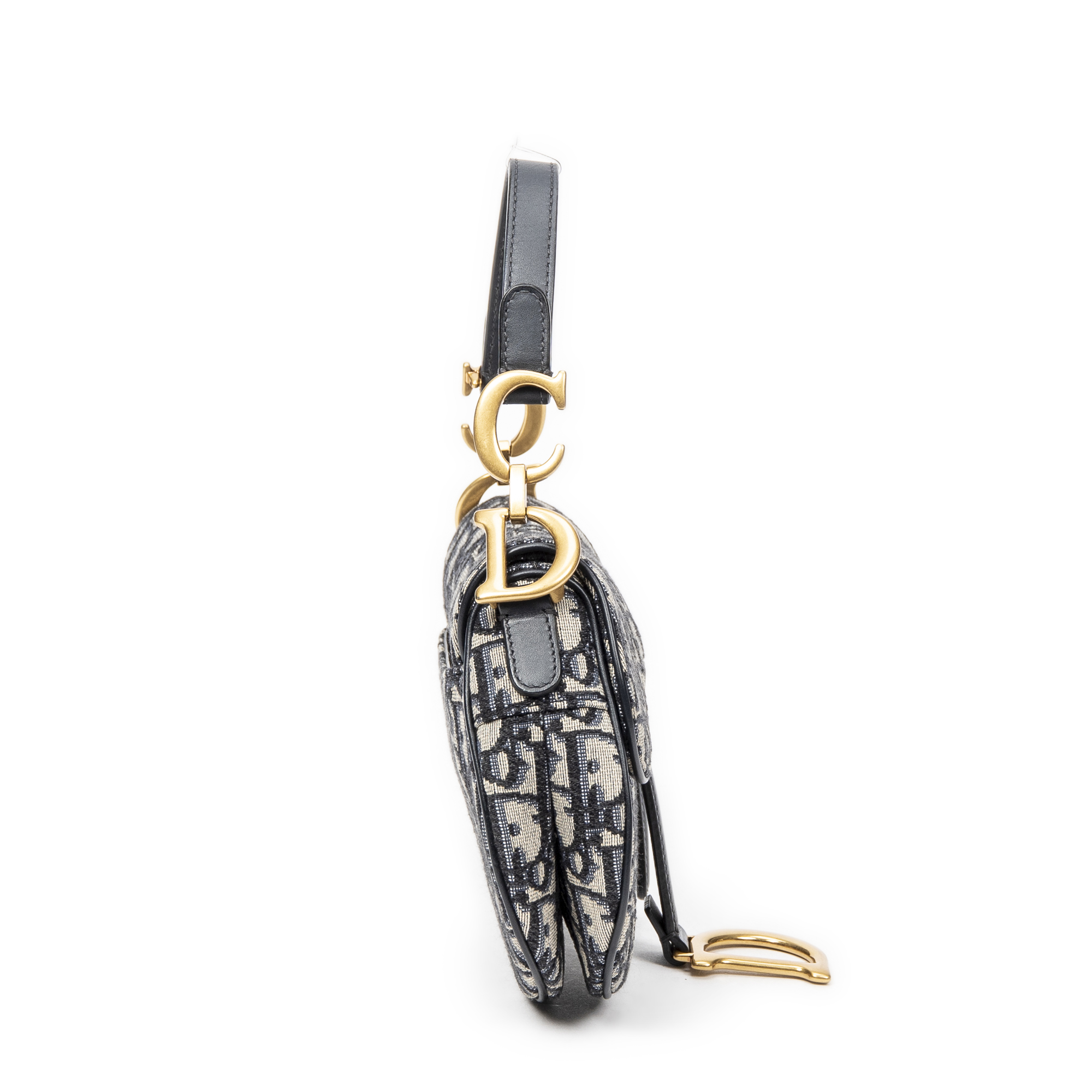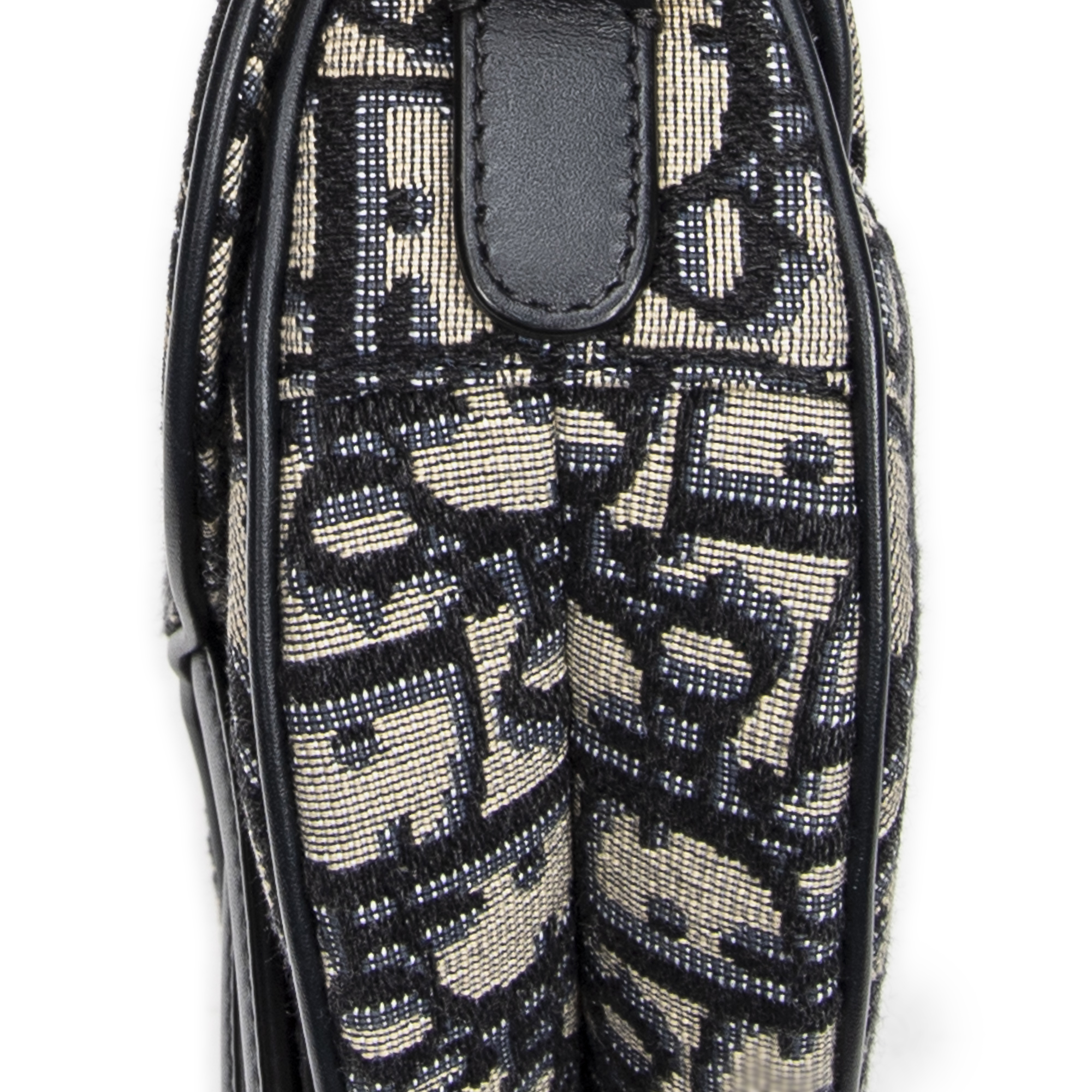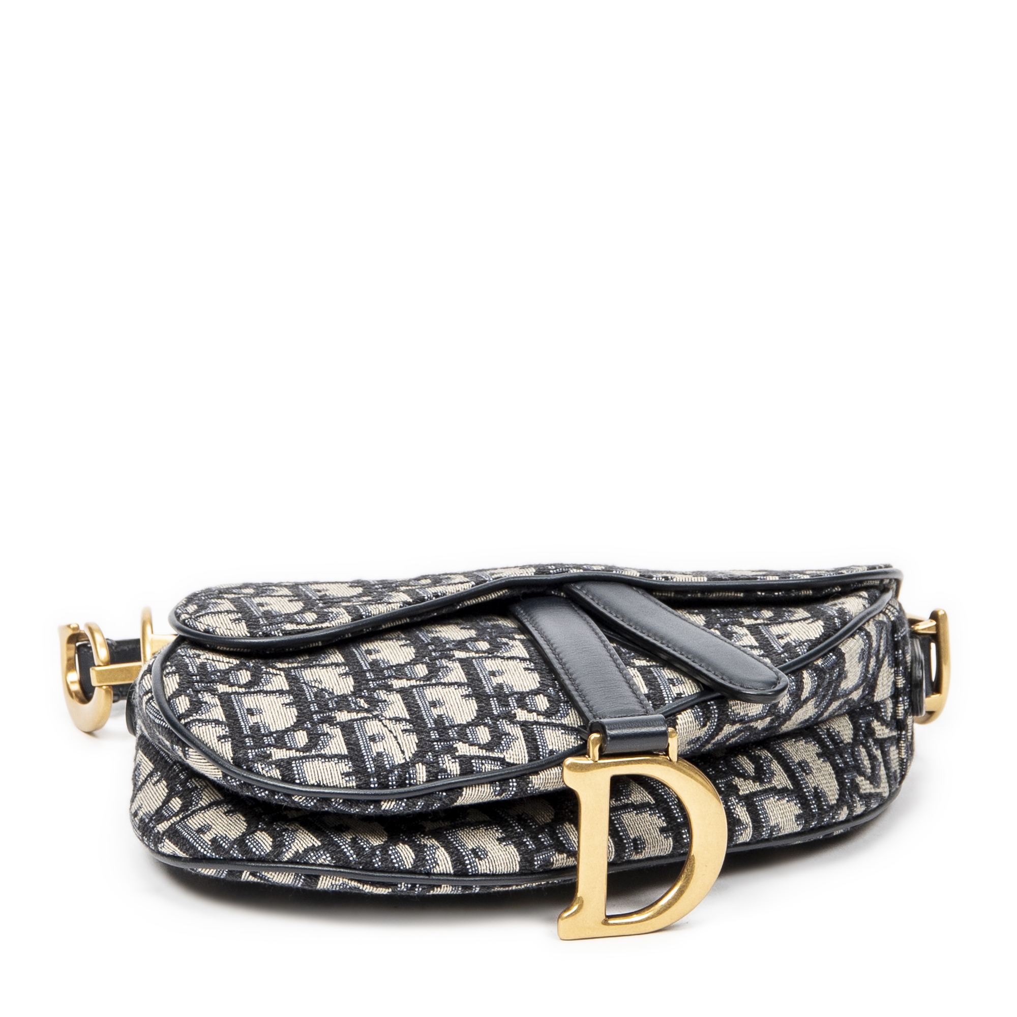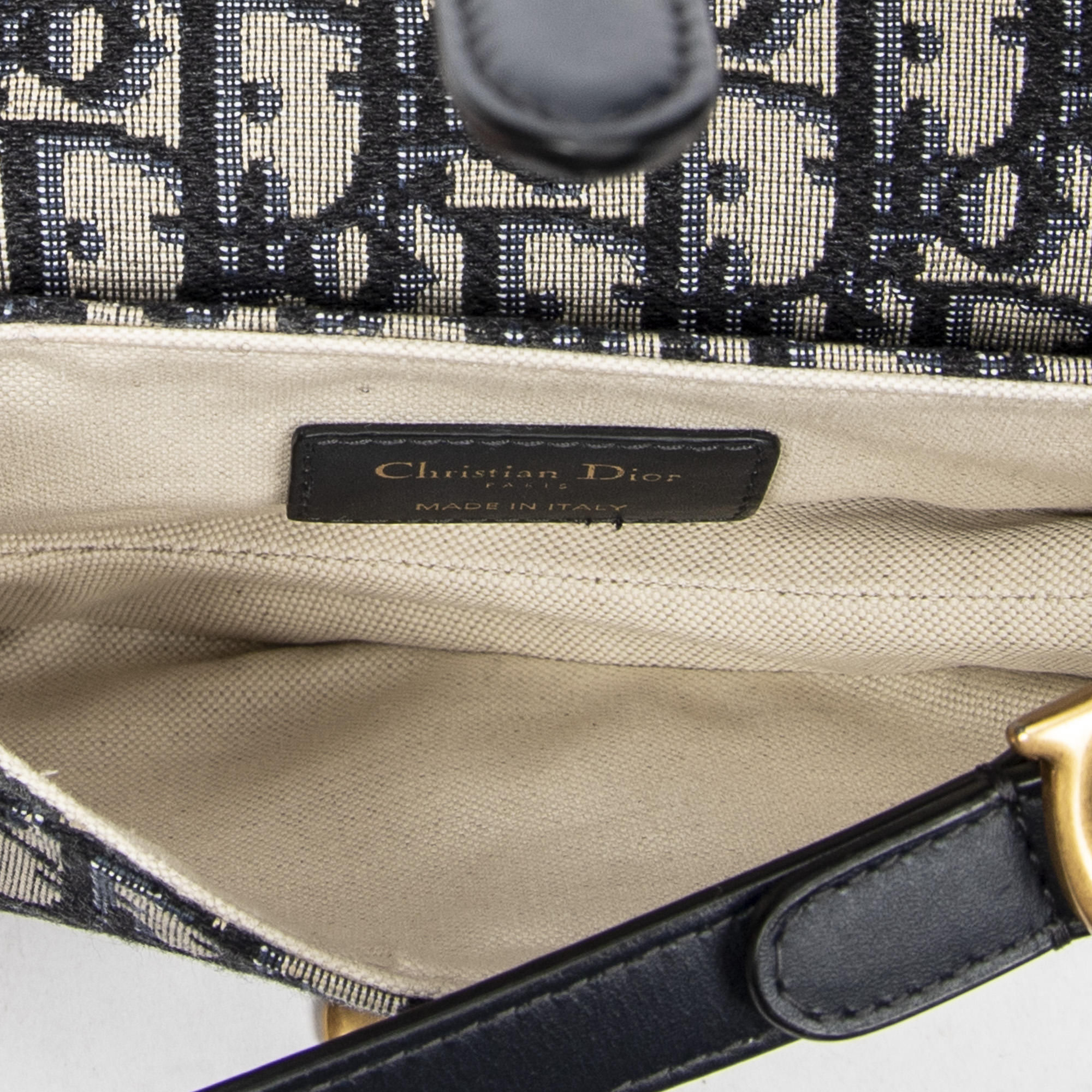 Dior Sac à bandoulière Mini Saddle Bag en Bleu marine/Beige et Gold. Le produit est en Parfait état (AA).