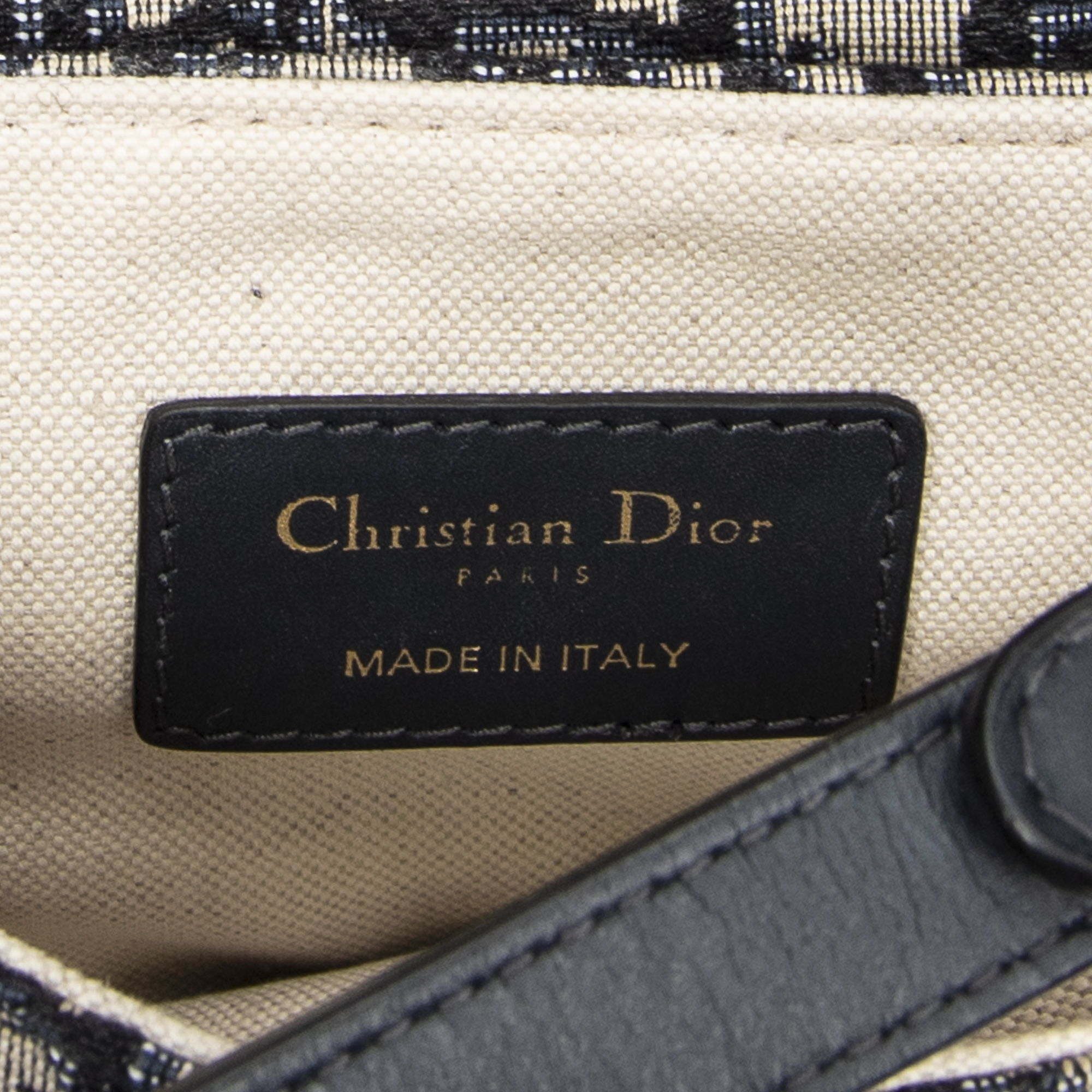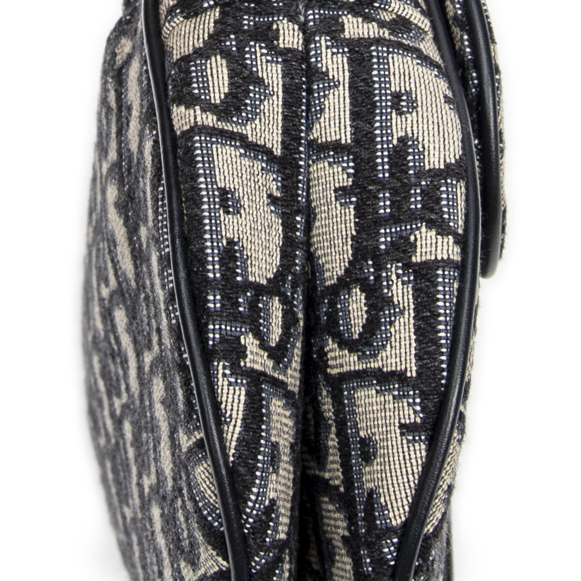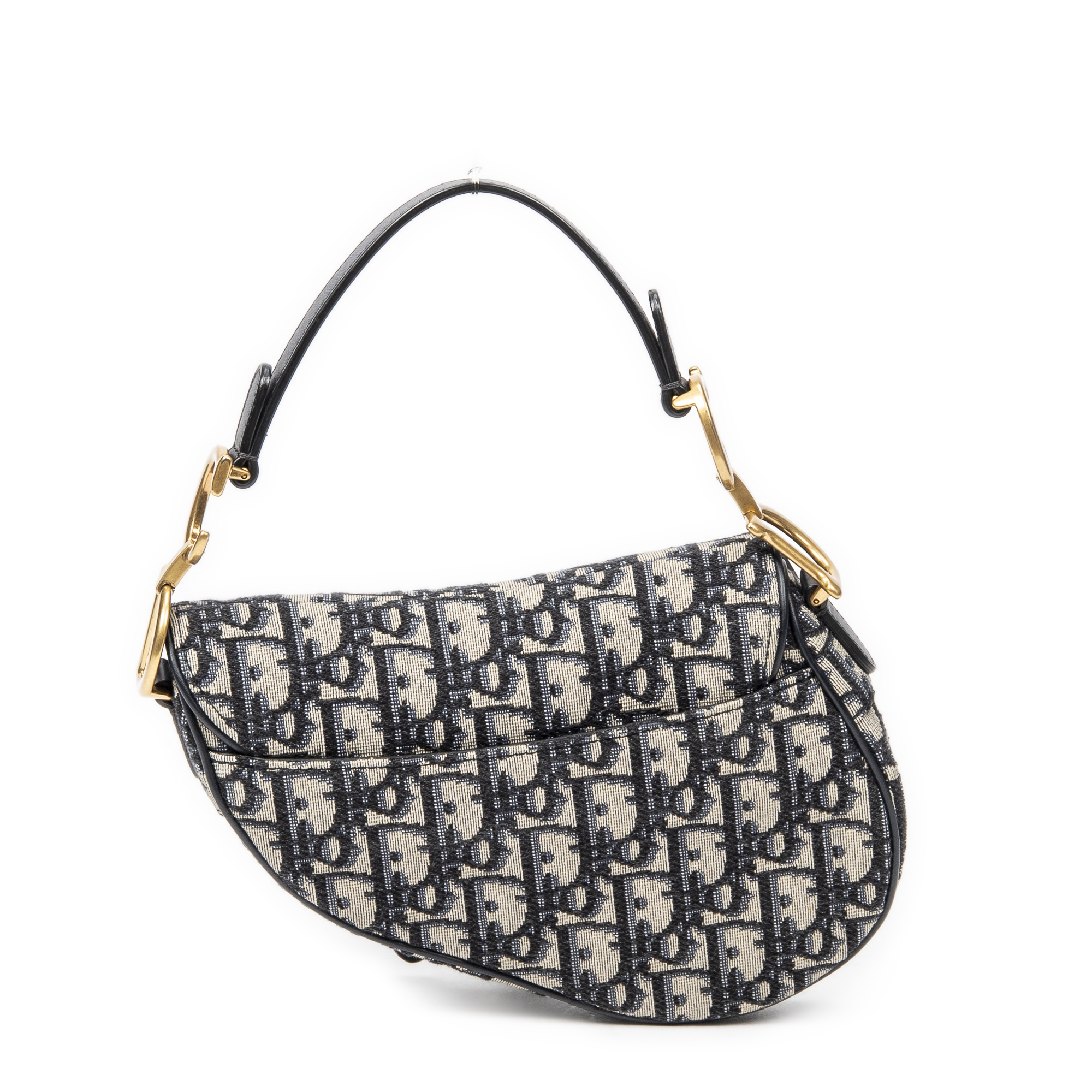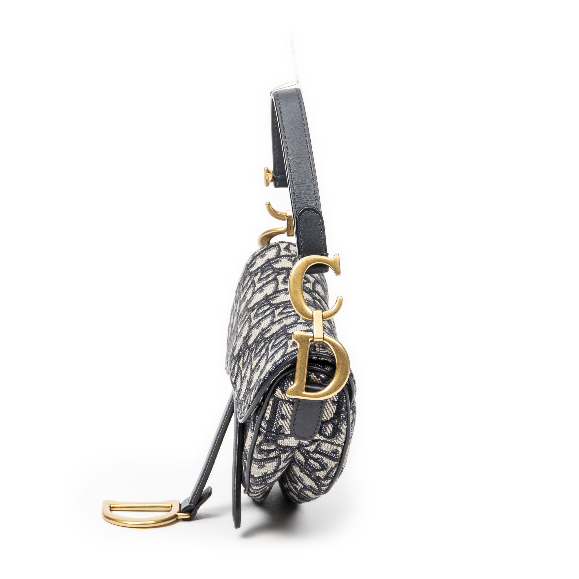 Dior Sac à bandoulière Mini Saddle Bag en Bleu marine/Beige et Gold. Le produit est en Parfait état (AA).