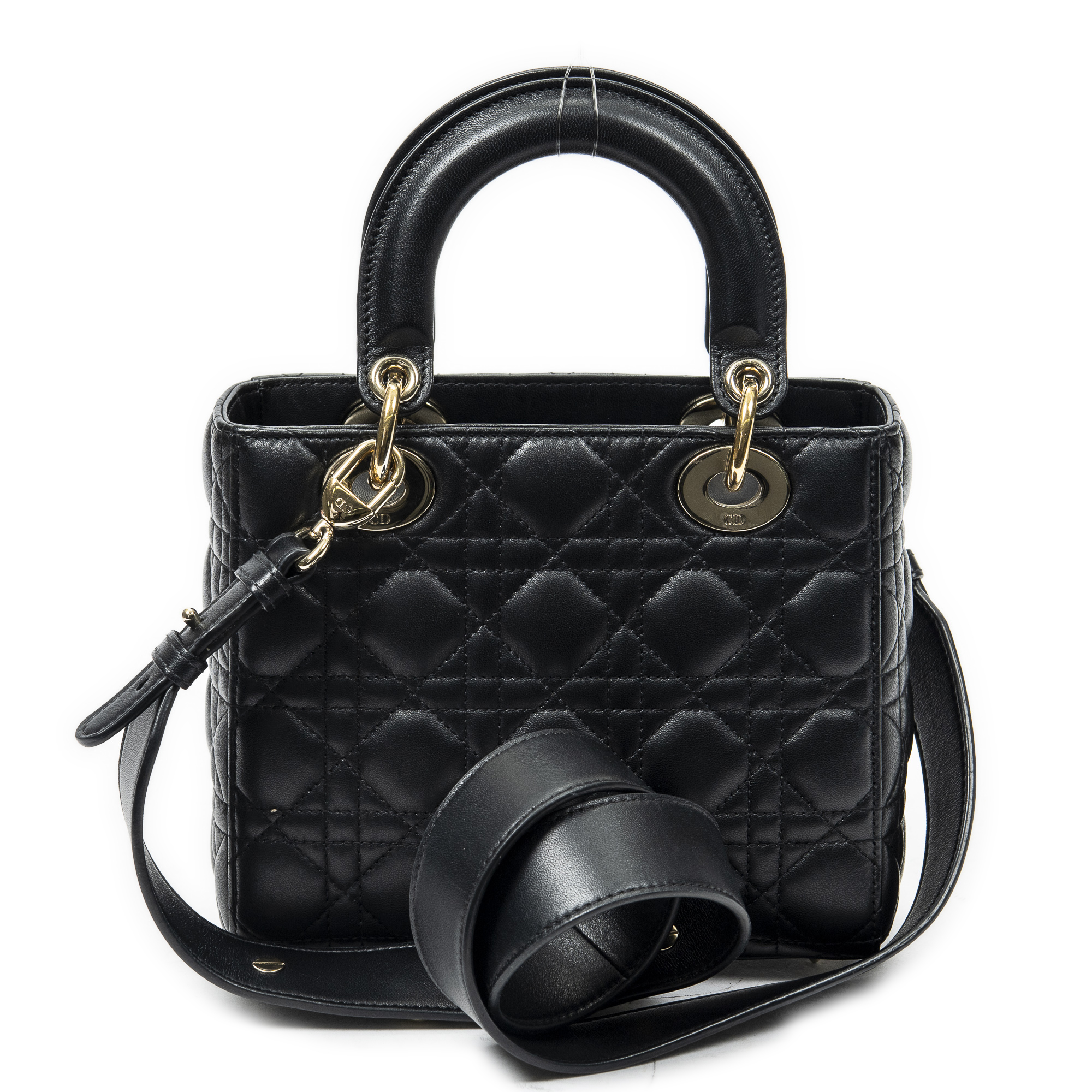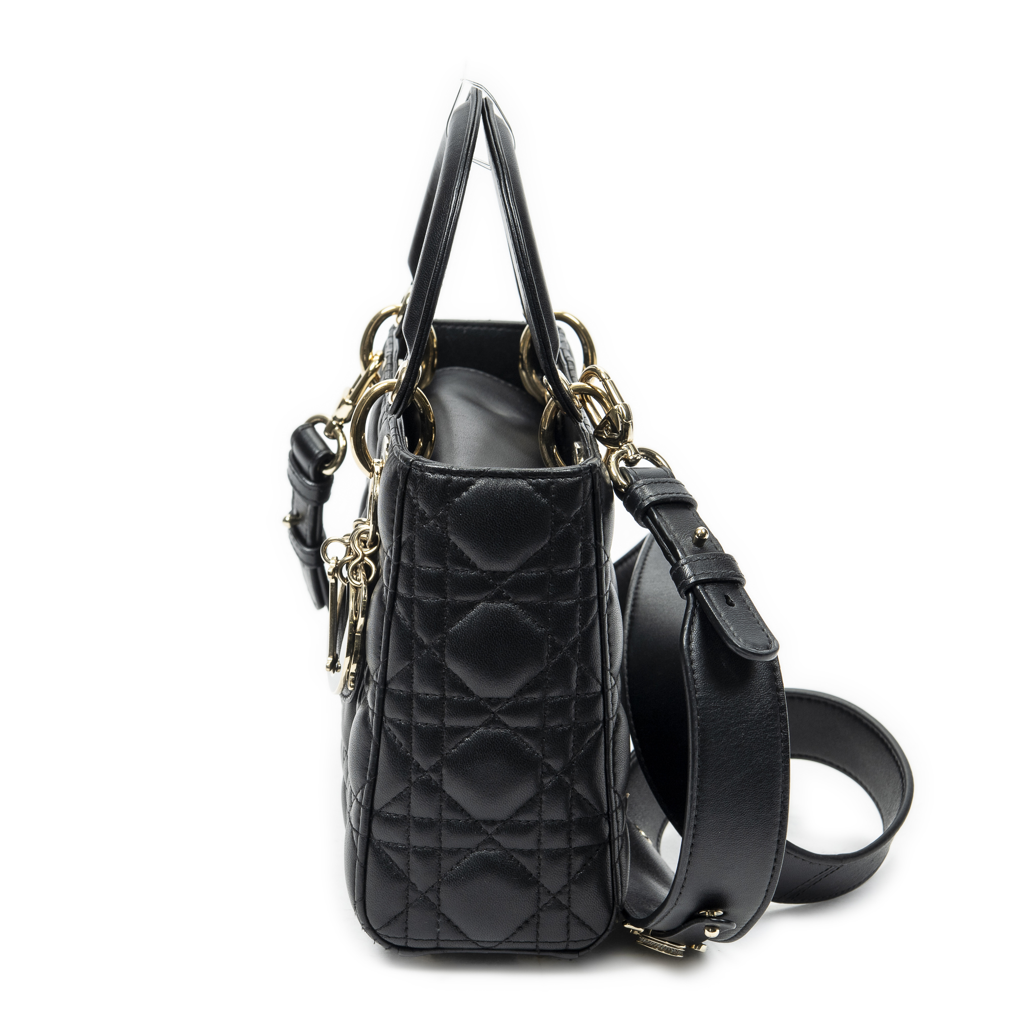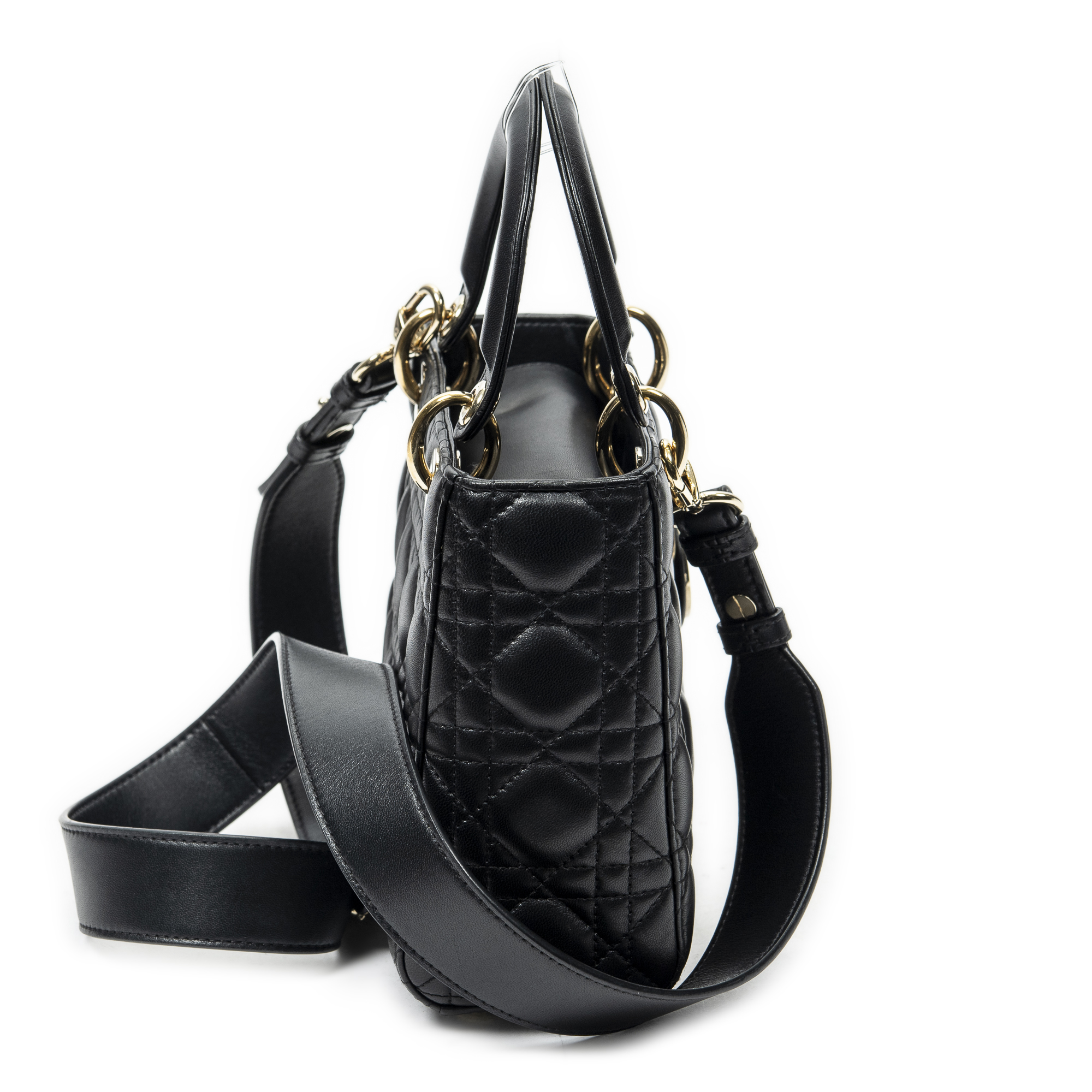 Dior Sac à bandoulière Small Lady Dior Flap en Black et Gold. Le produit est en Excellent état (A).