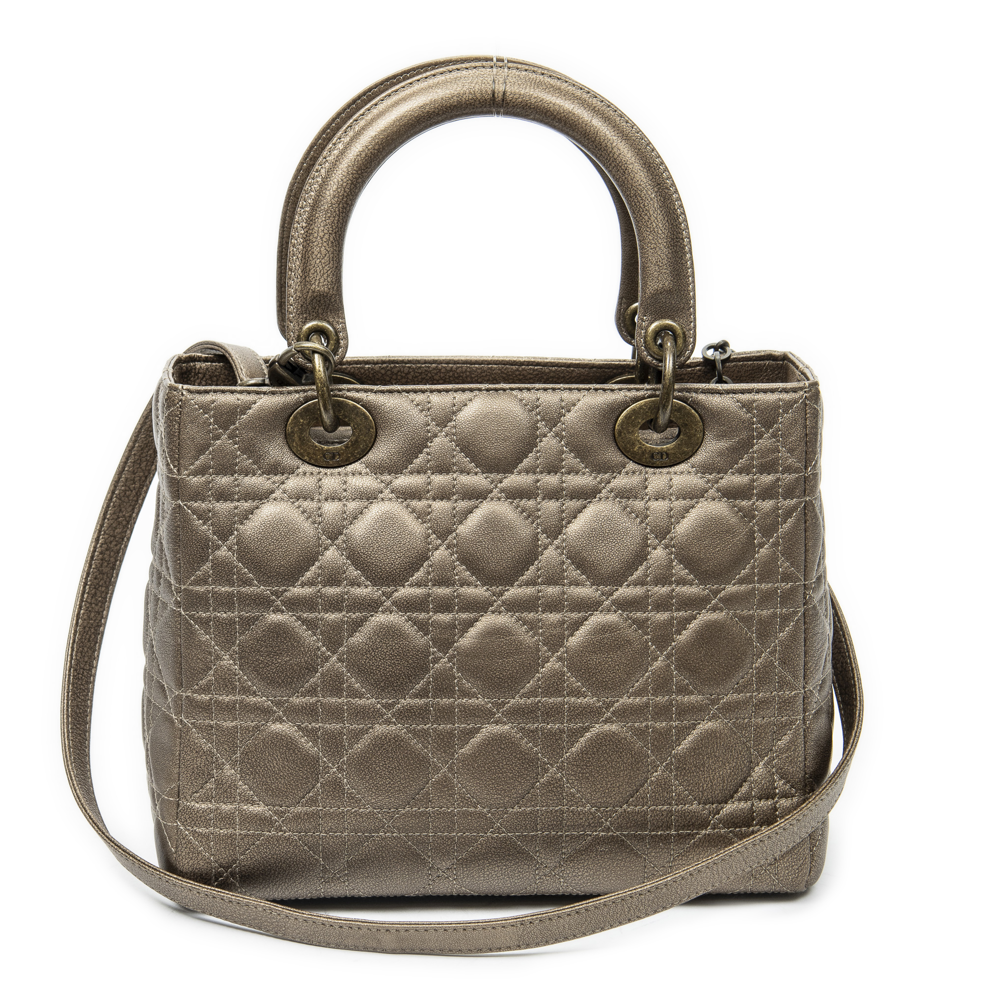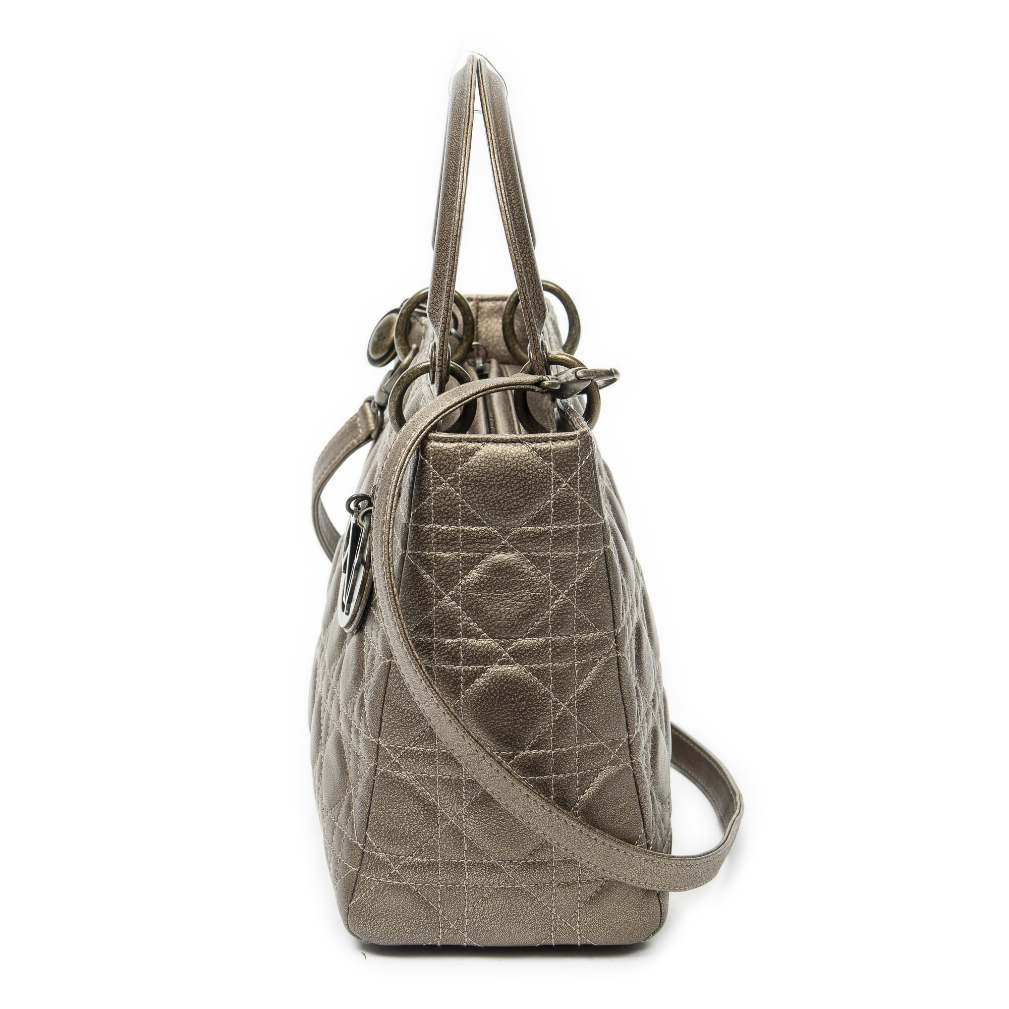 Dior Sac à bandoulière Small Lady Dior Zip en Bronze et Cuivre d’Or. Le produit est en Excellent état (A).