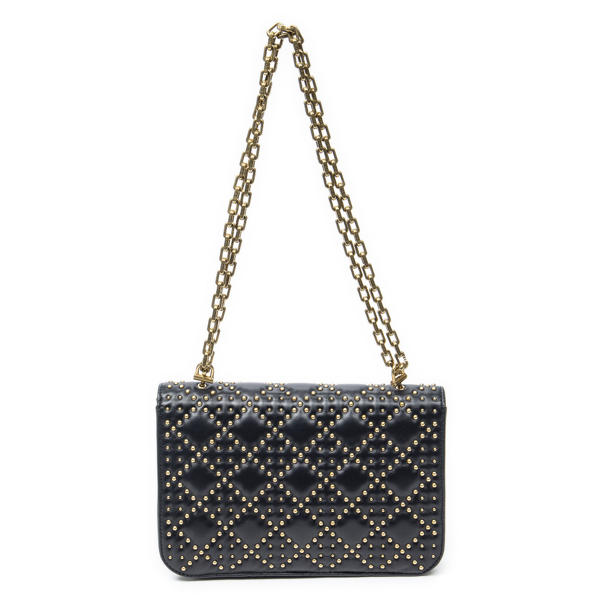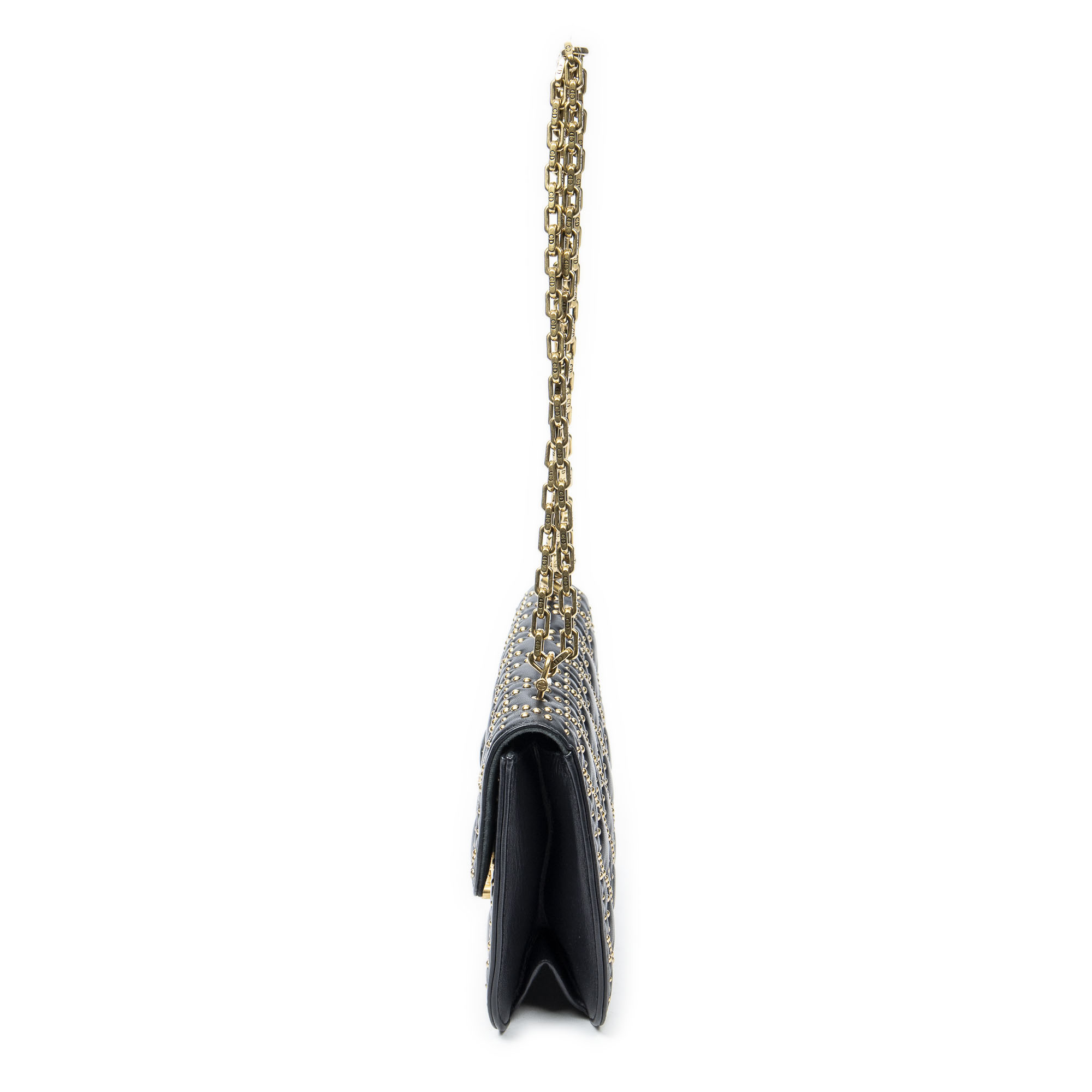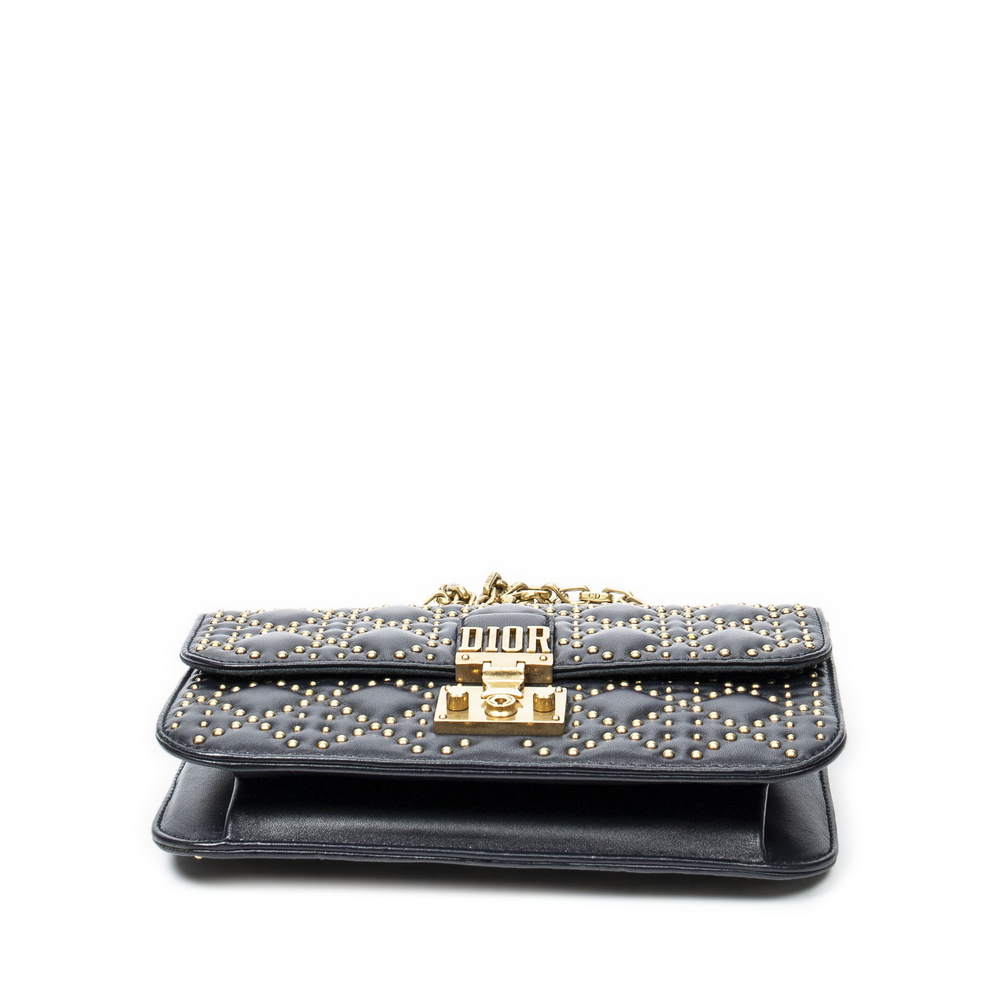 Dior Sac à bandoulière Small Studded Dioraddict Flap en Marine et Gold. Le produit est en Excellent état (A).