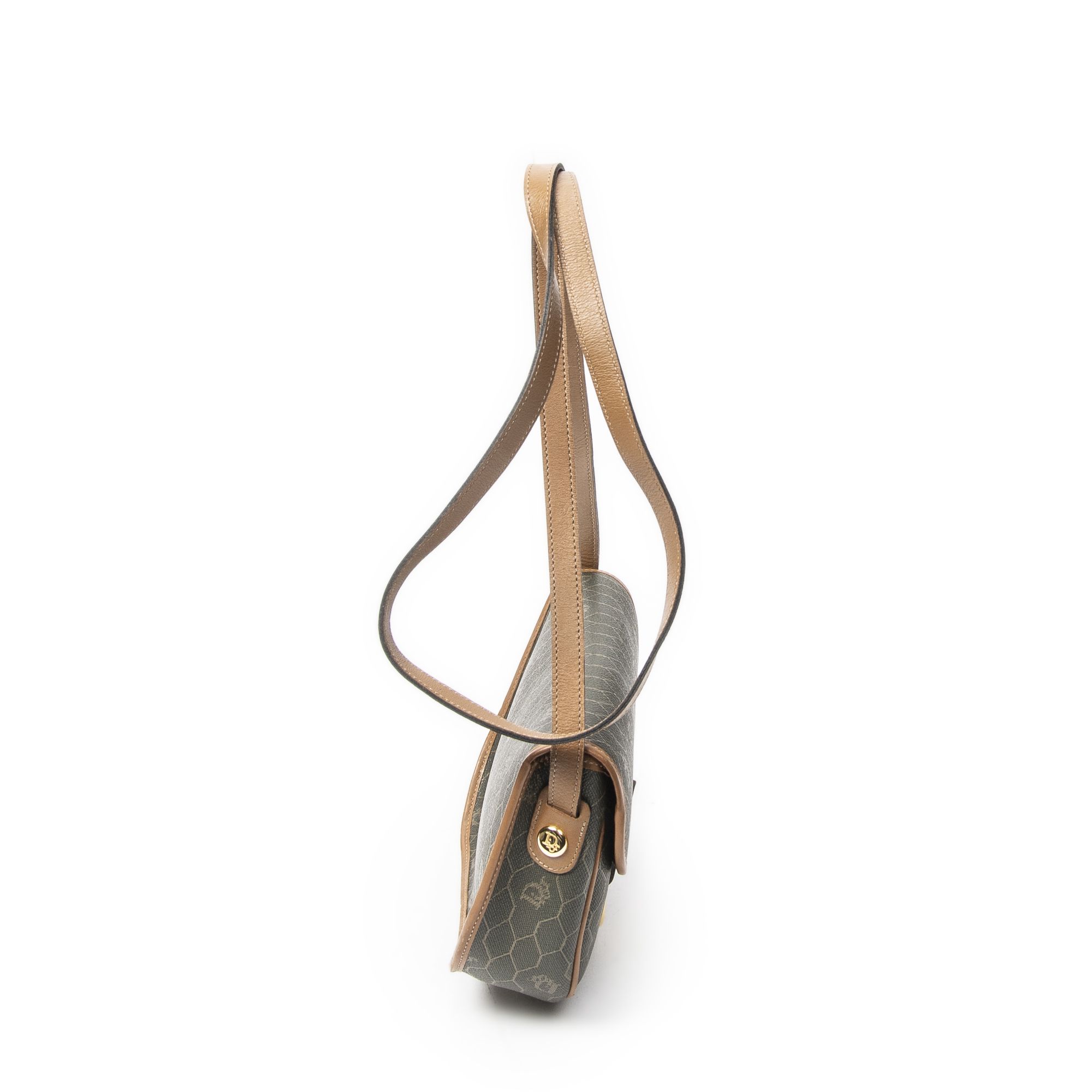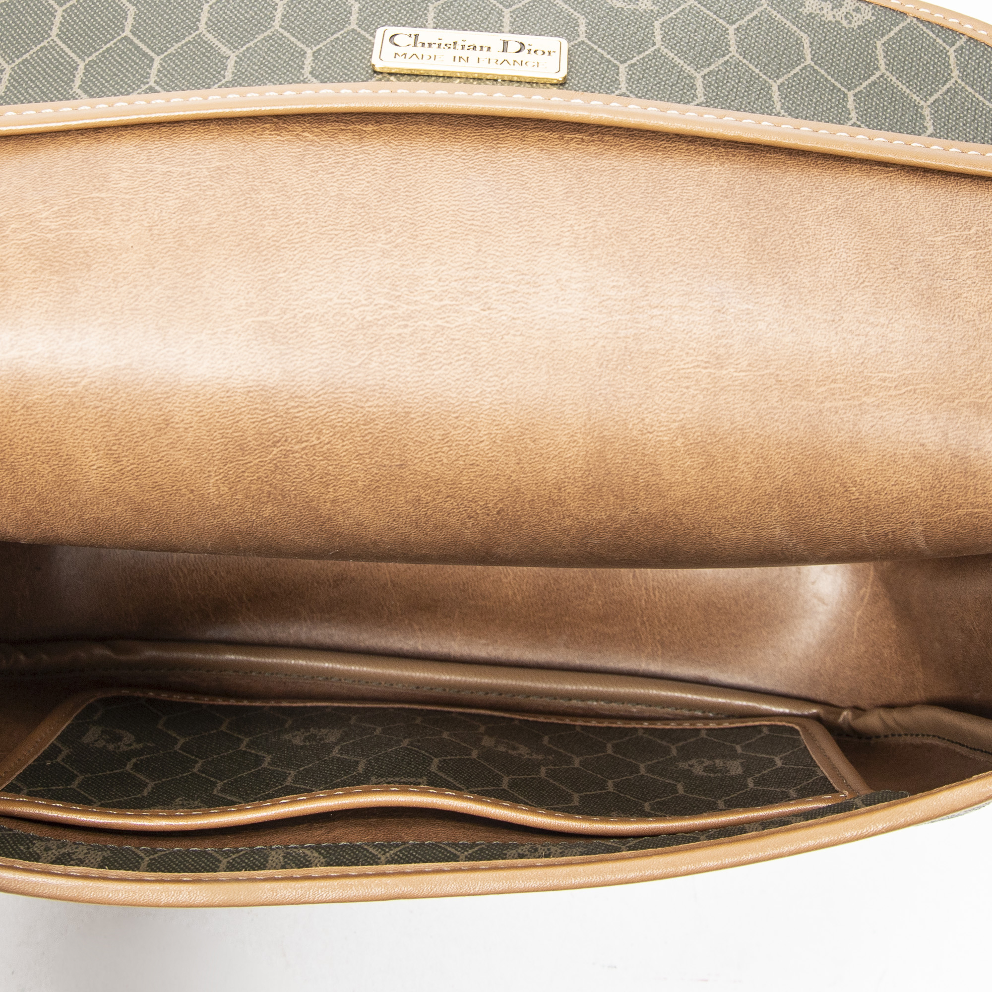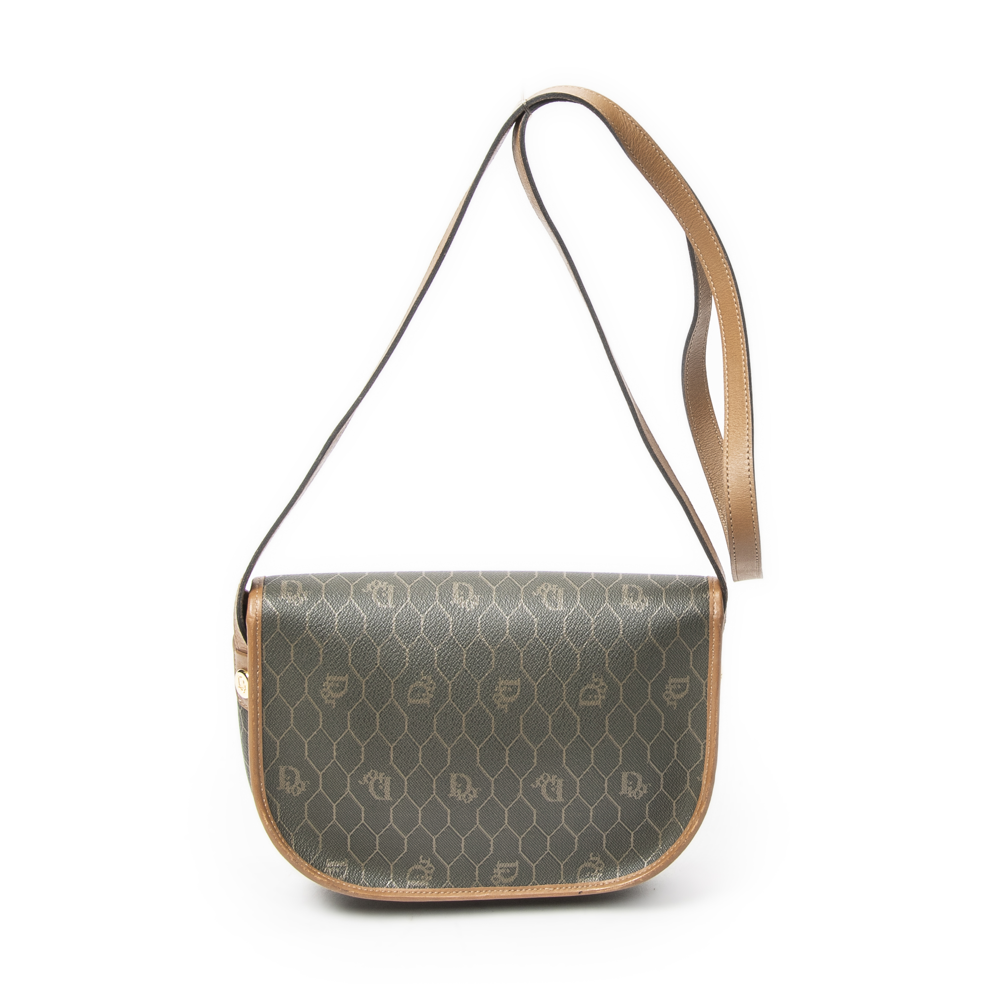 Dior Sac à bandoulière Small Vintage Flap Crossbody en Vert/Marron et Gold. Le produit est en Excellent état (A).
