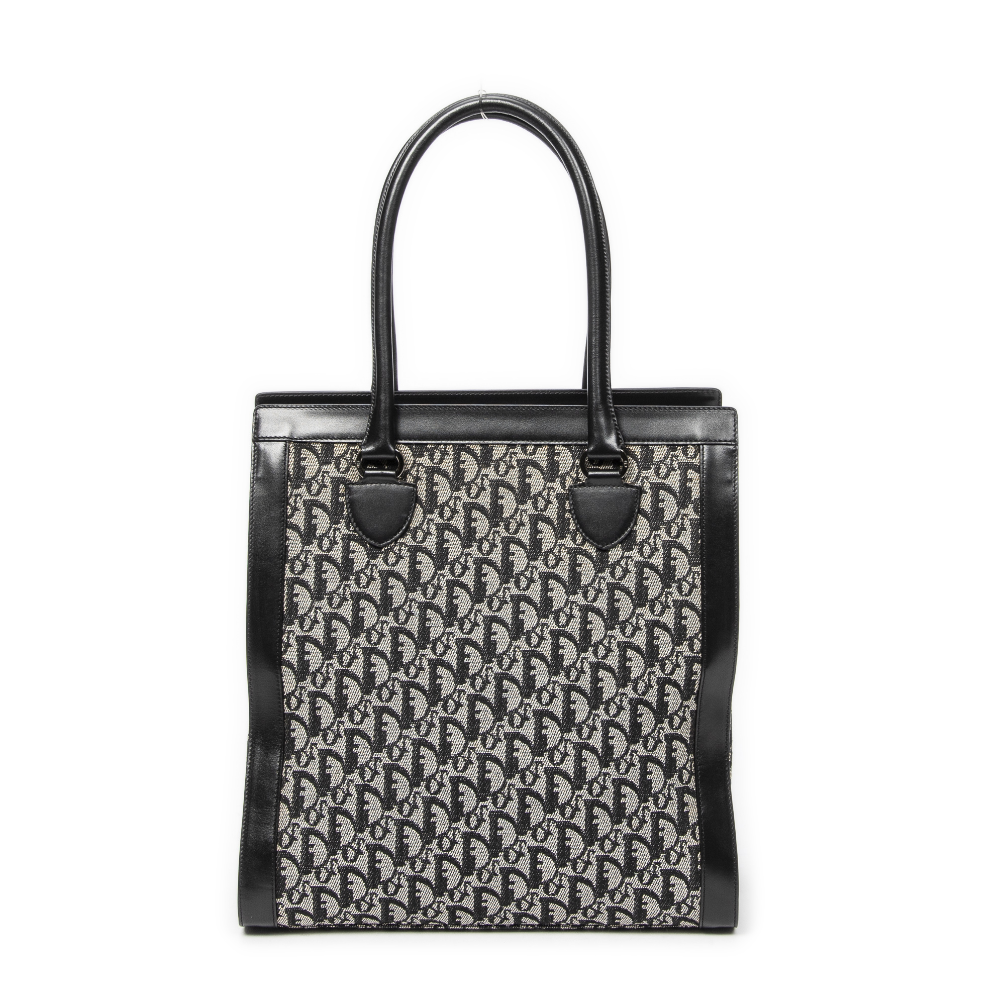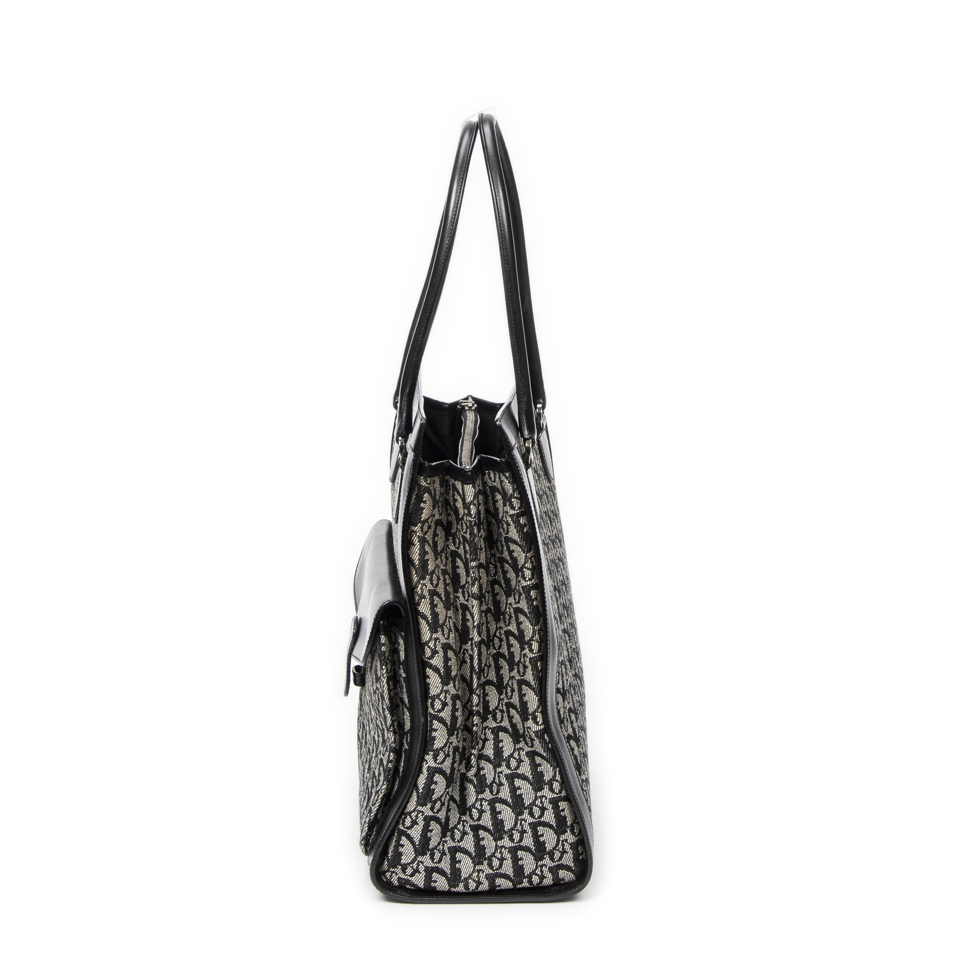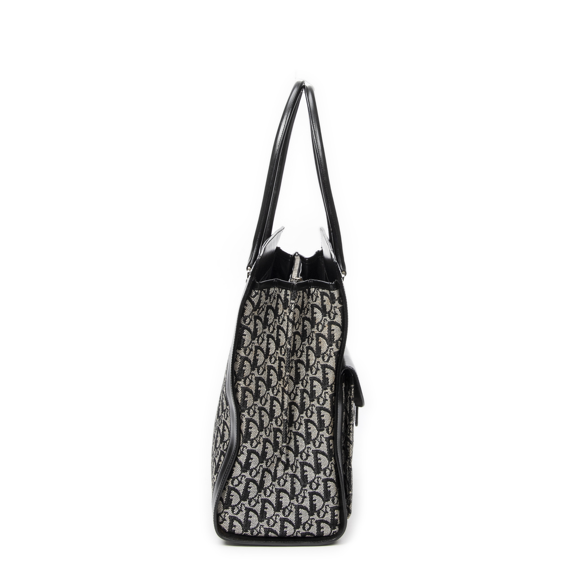 Dior Sac à bandoulière Tall Front Pocket Tote en Marine/Gris et Argent. Le produit est en Excellent état (A).