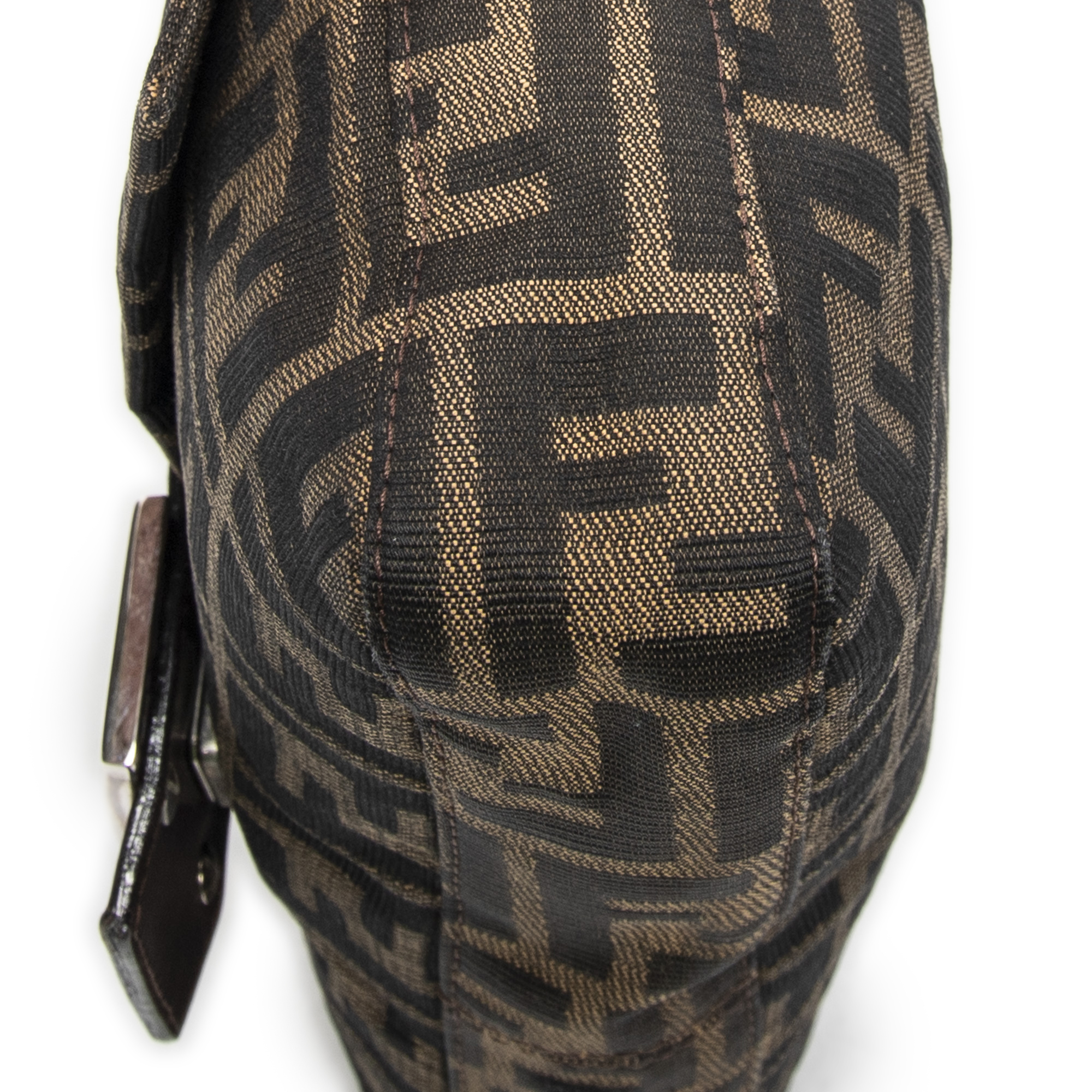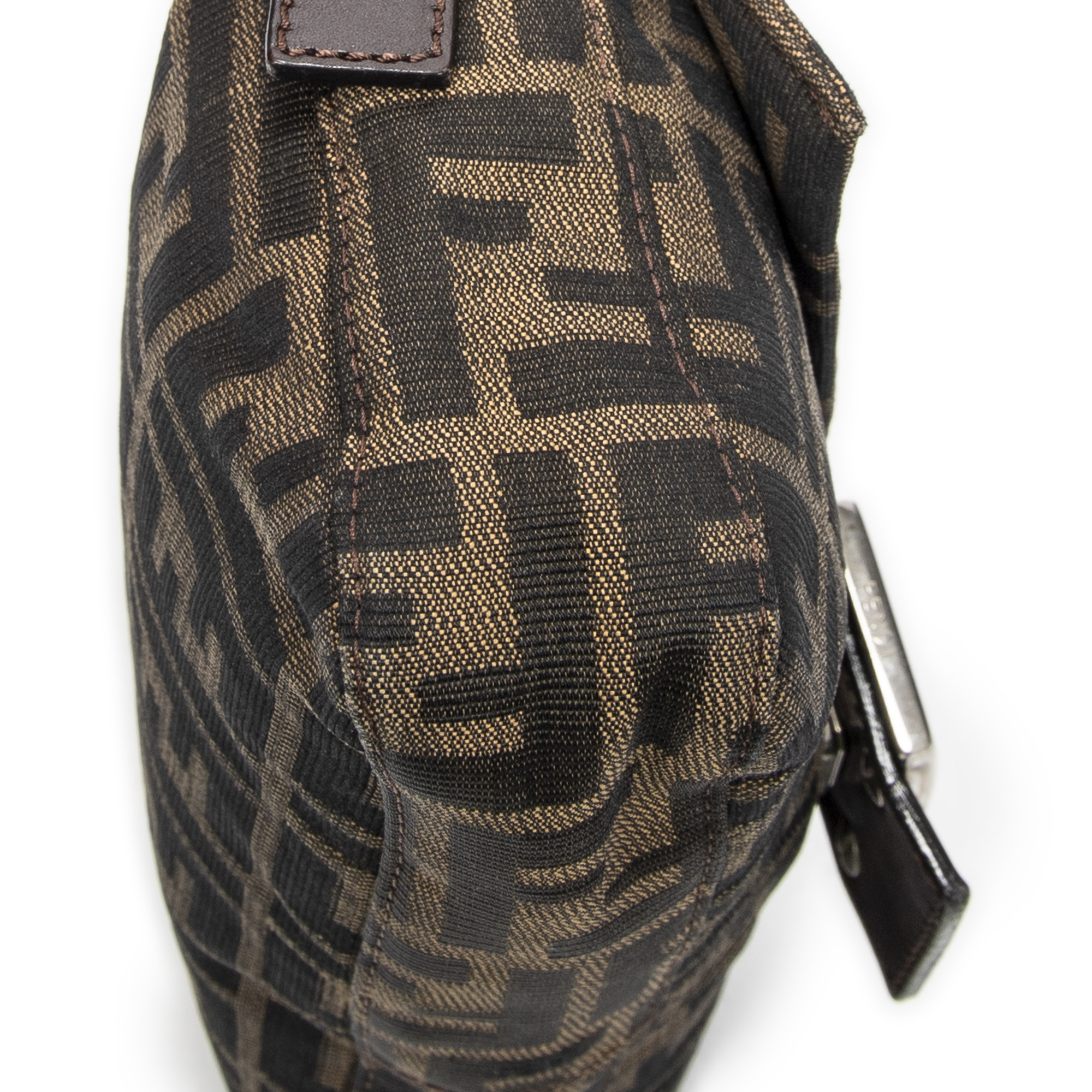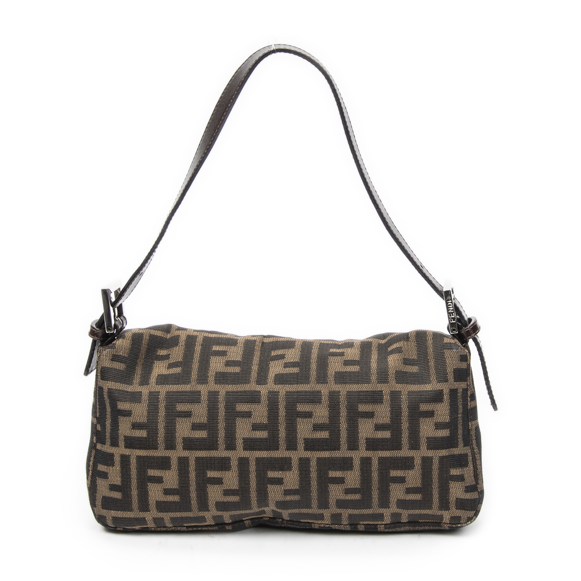 Fendi Sac à bandoulière Baguette en Beige/Brun foncé et Argent. Le produit est en Excellent état (A).