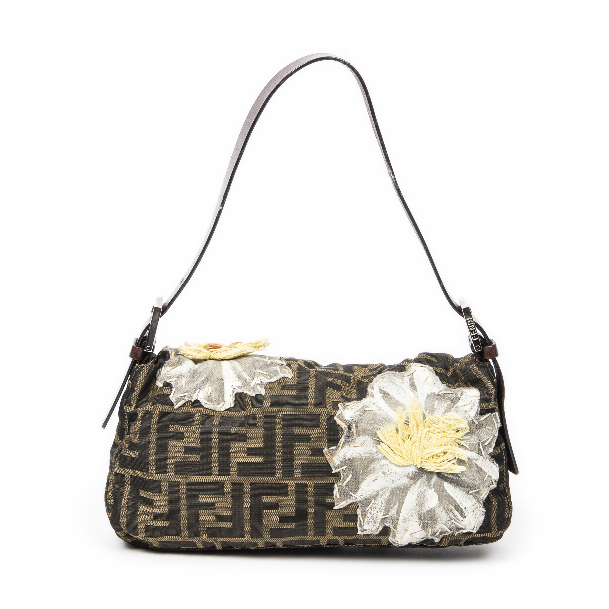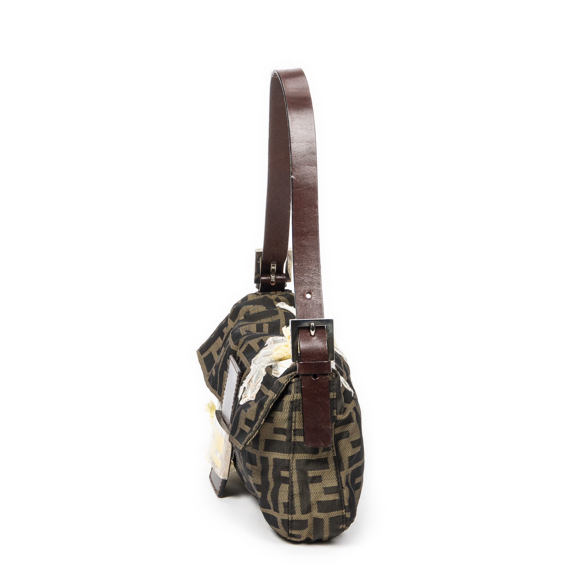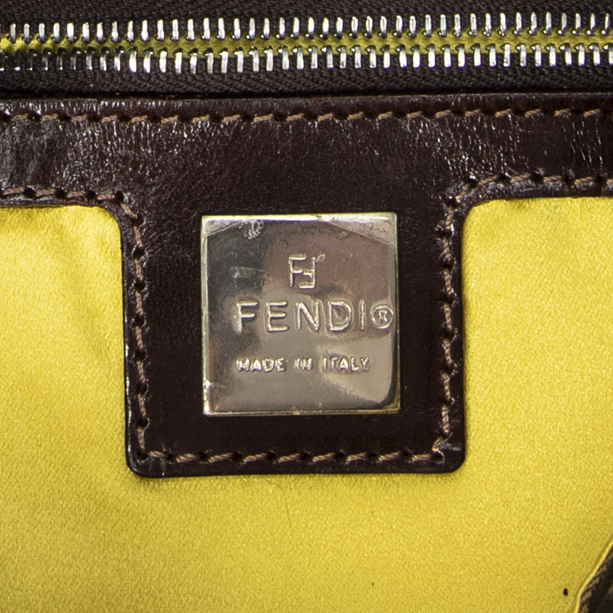 Fendi Sac à bandoulière Baguette en Marron/Beige/Jaune et Argent. Le produit est en Excellent état (A).