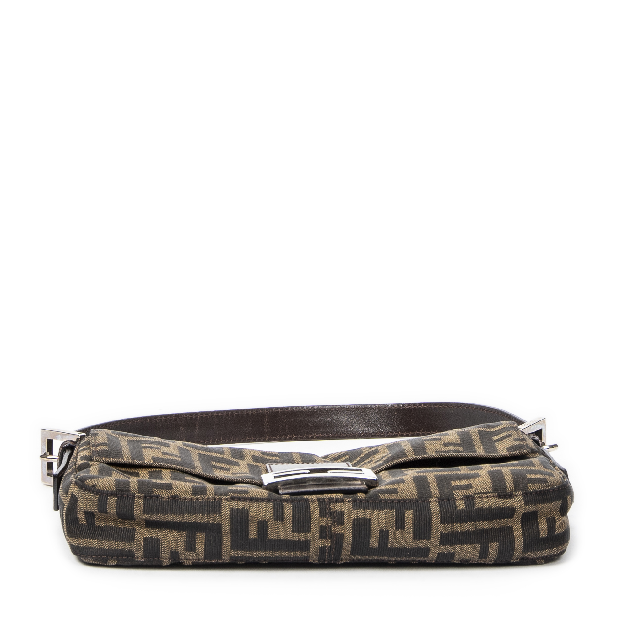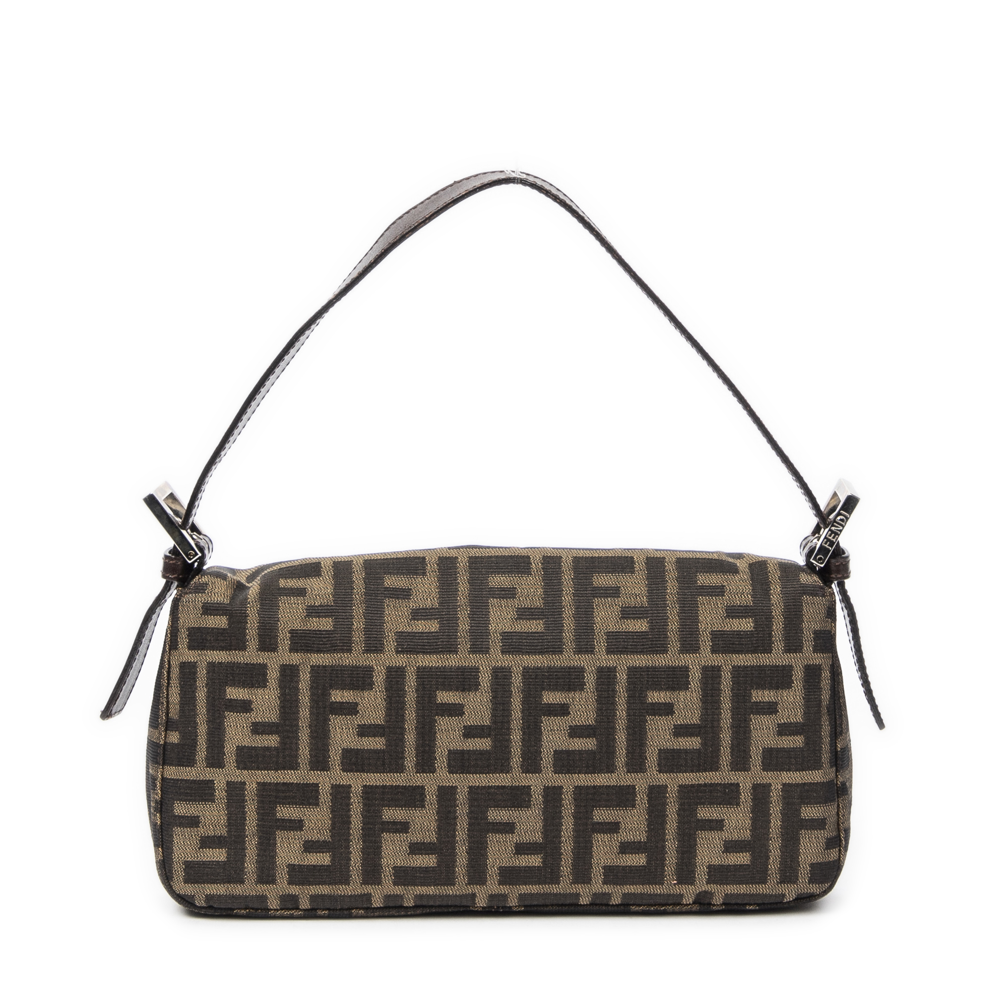 Fendi Sac à bandoulière Baguette en Marron/Noir et Argent. Le produit est en Excellent état (A).