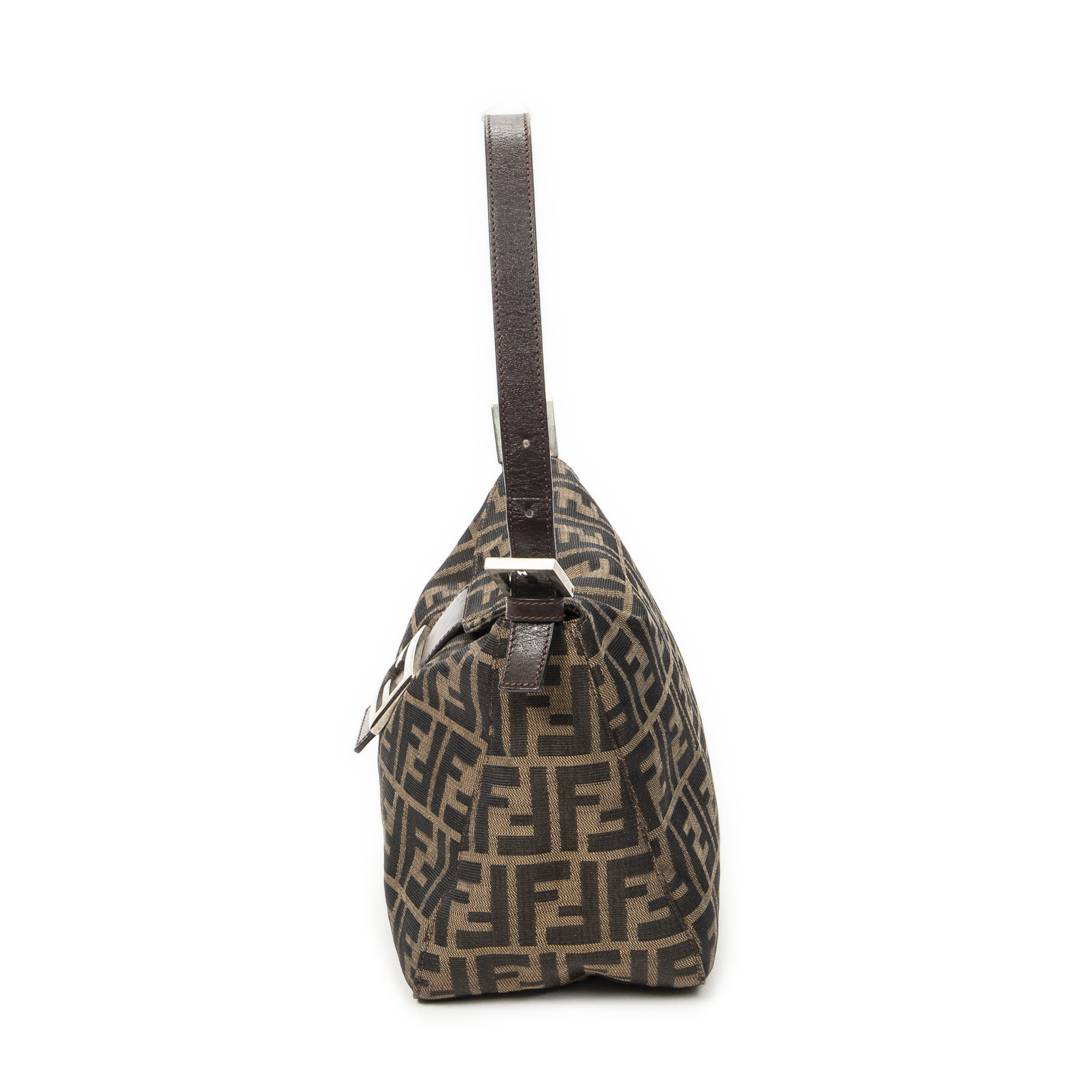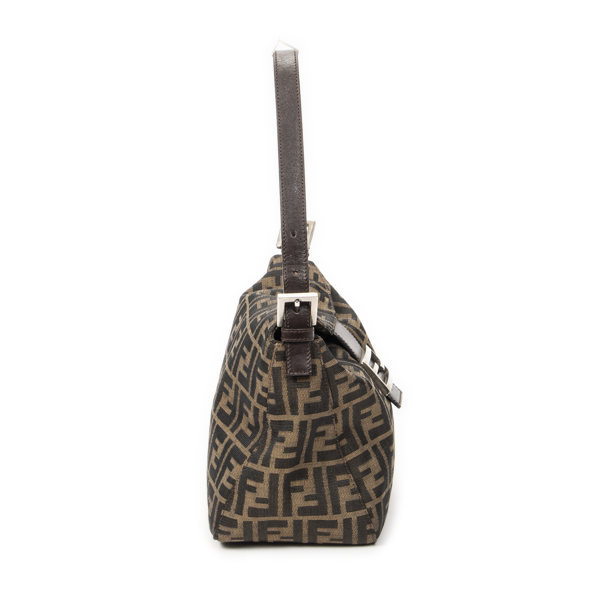 Fendi Sac à bandoulière Fold Over Baguette en Brown et Argent. Le produit est en Excellent état (A).