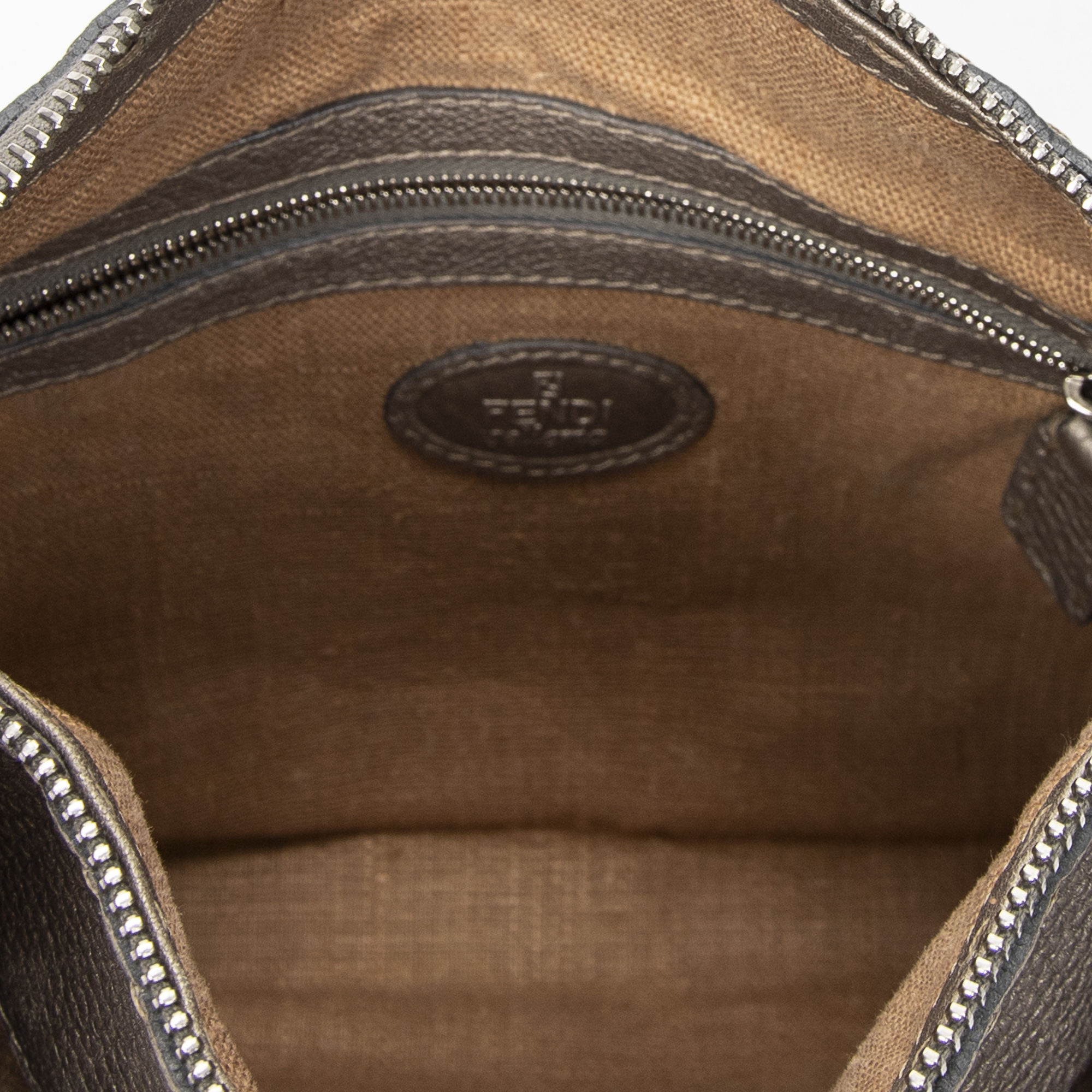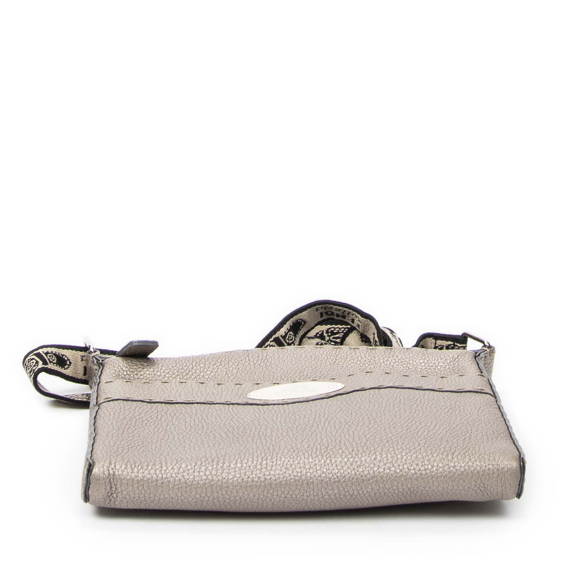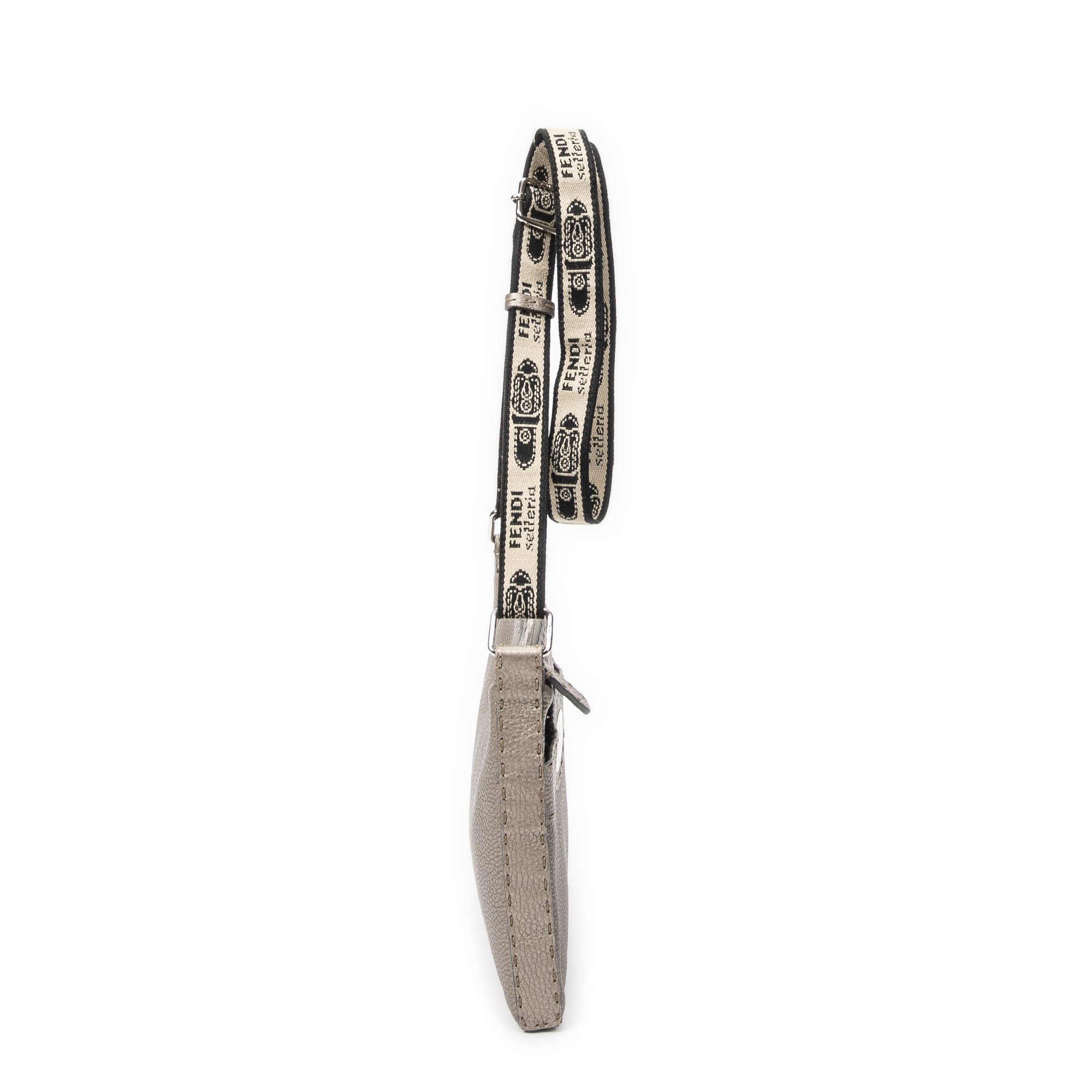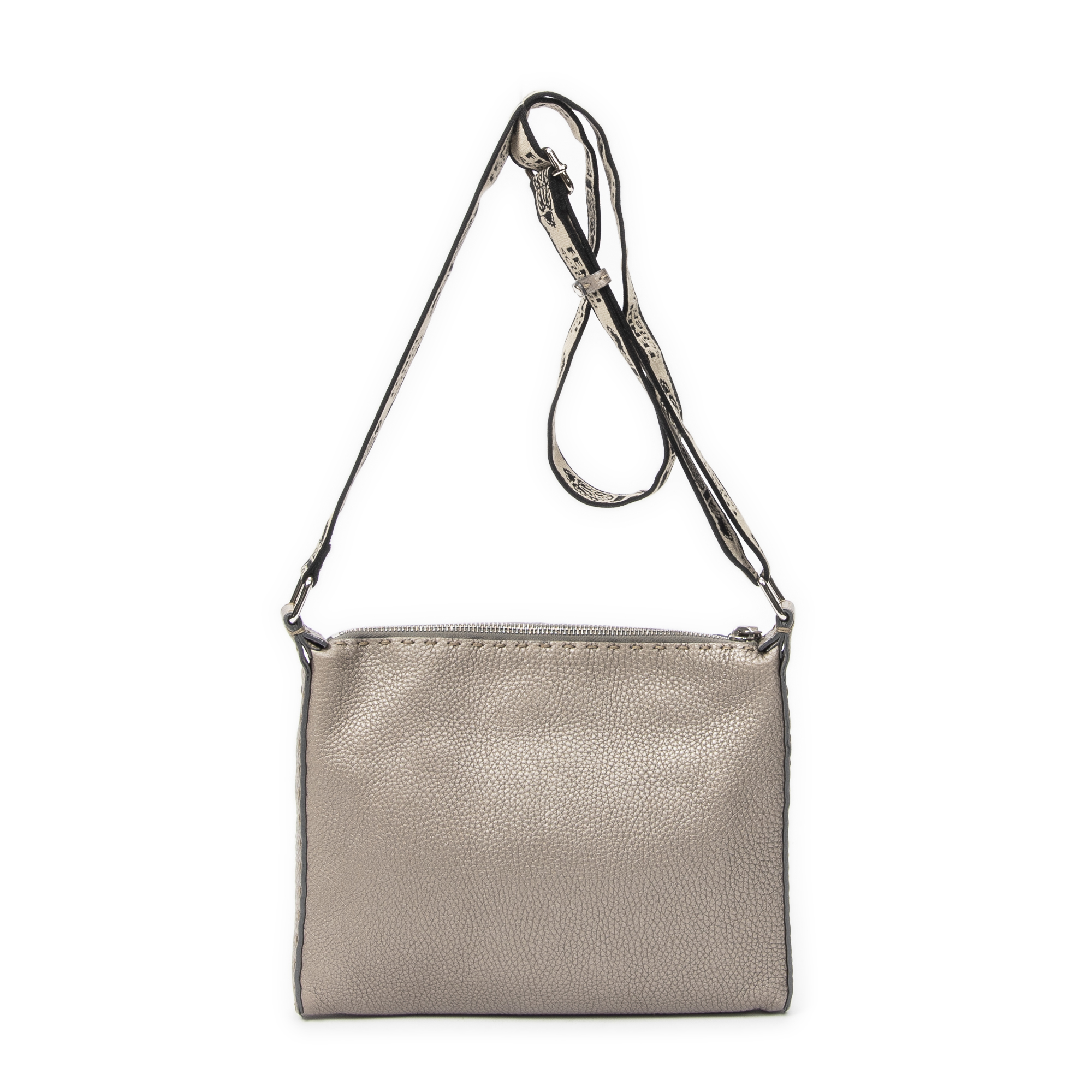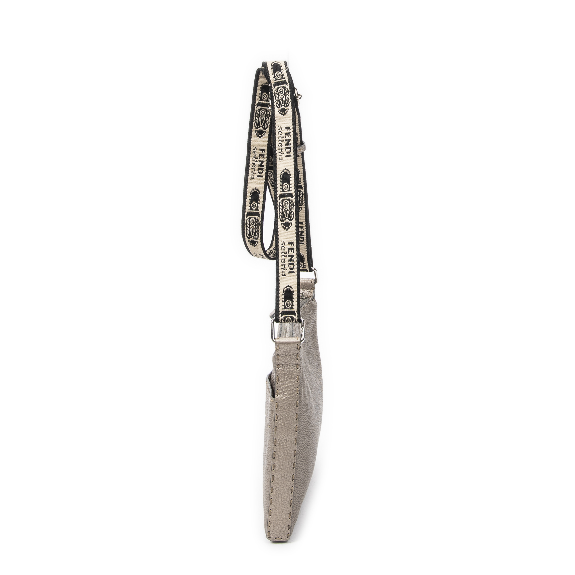 Fendi Sac à bandoulière Front Pocket Crossbody en Greige et Argent. Le produit est en Excellent état (A).