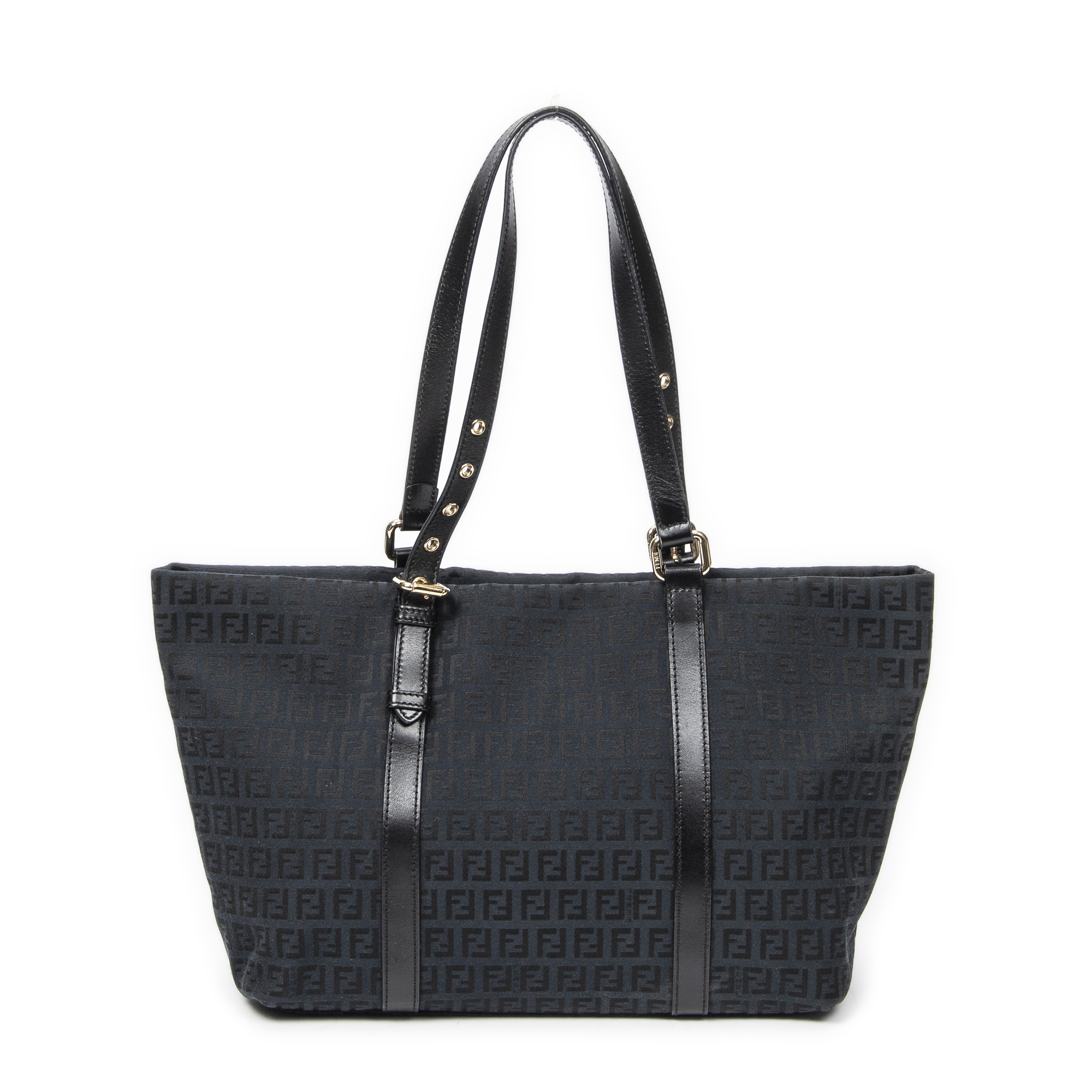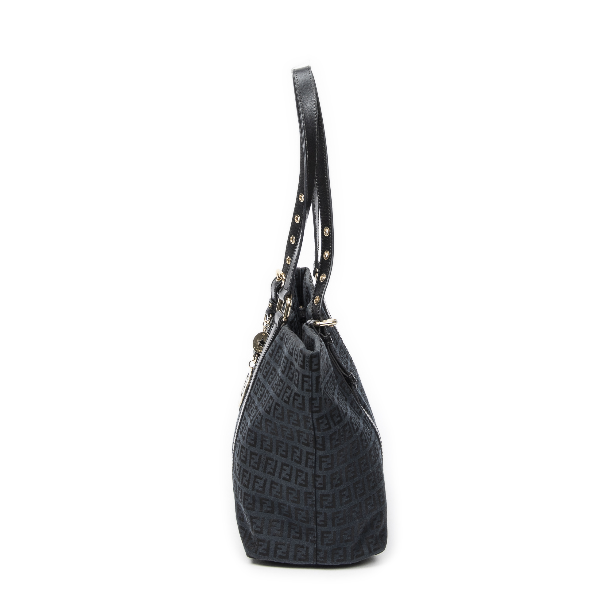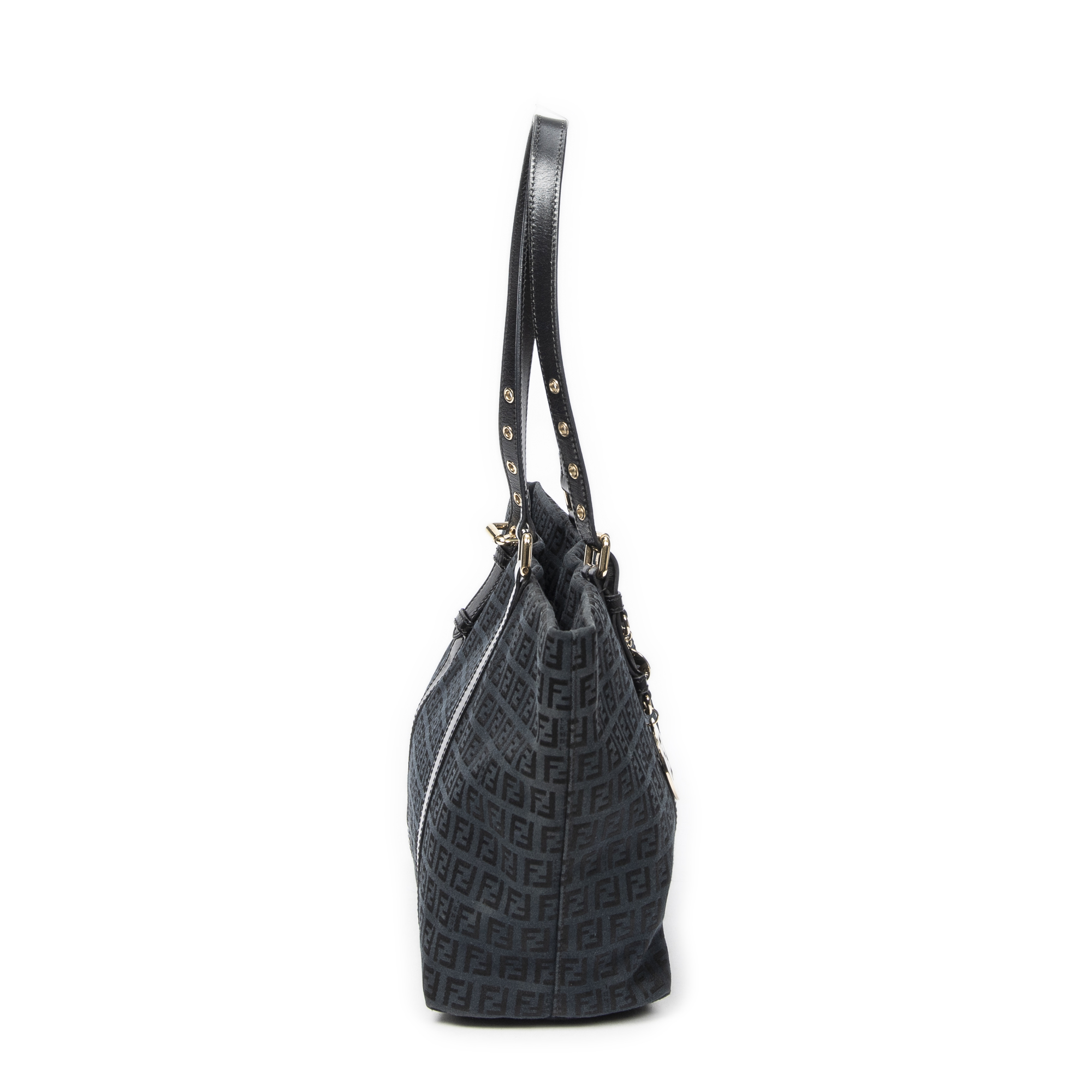 Fendi Sac à bandoulière Large Charm Shopper en Black et Gold. Le produit est en Excellent état (A).