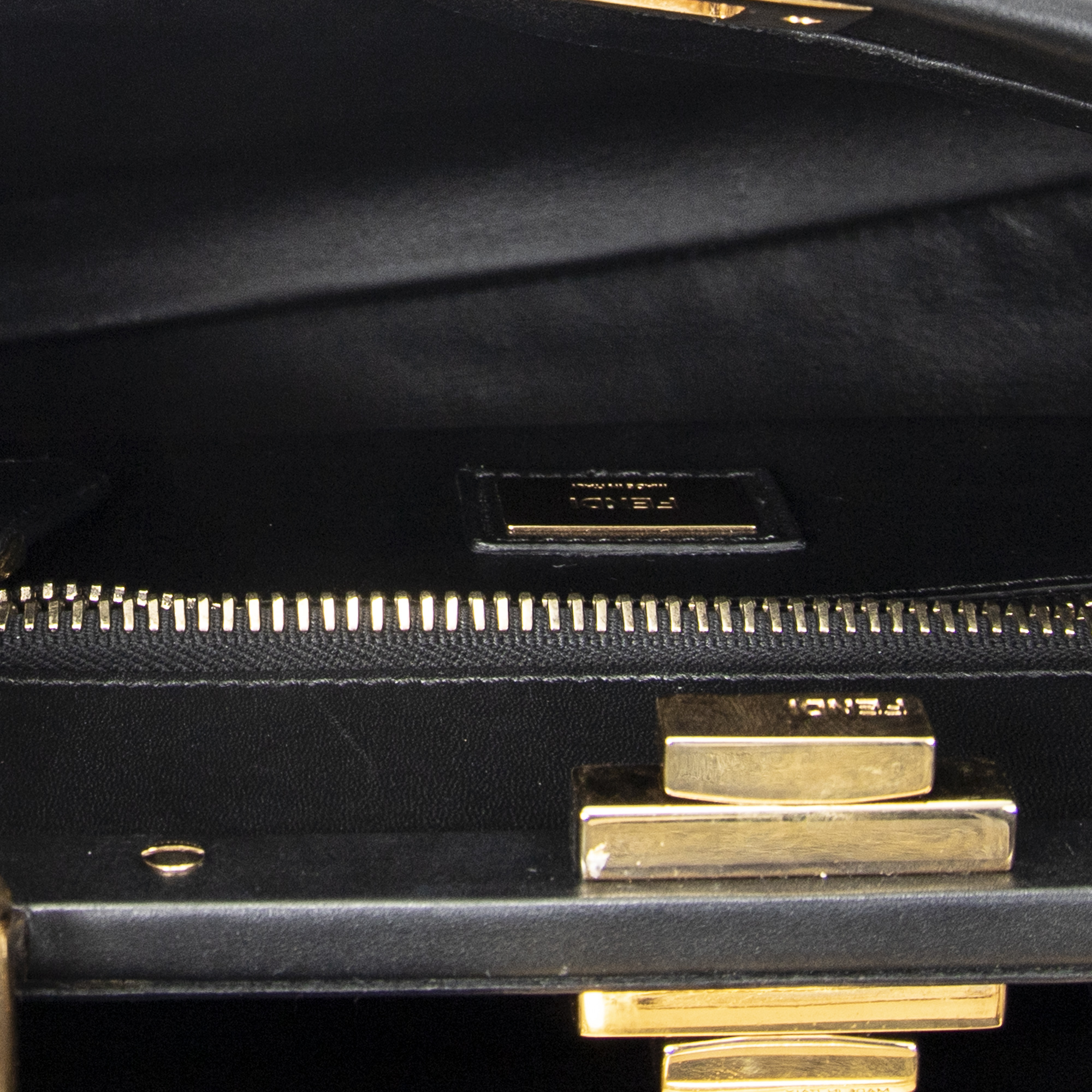 Fendi Sac à bandoulière Medium Peekaboo en Black et Gold. Le produit est en Excellent état (A).