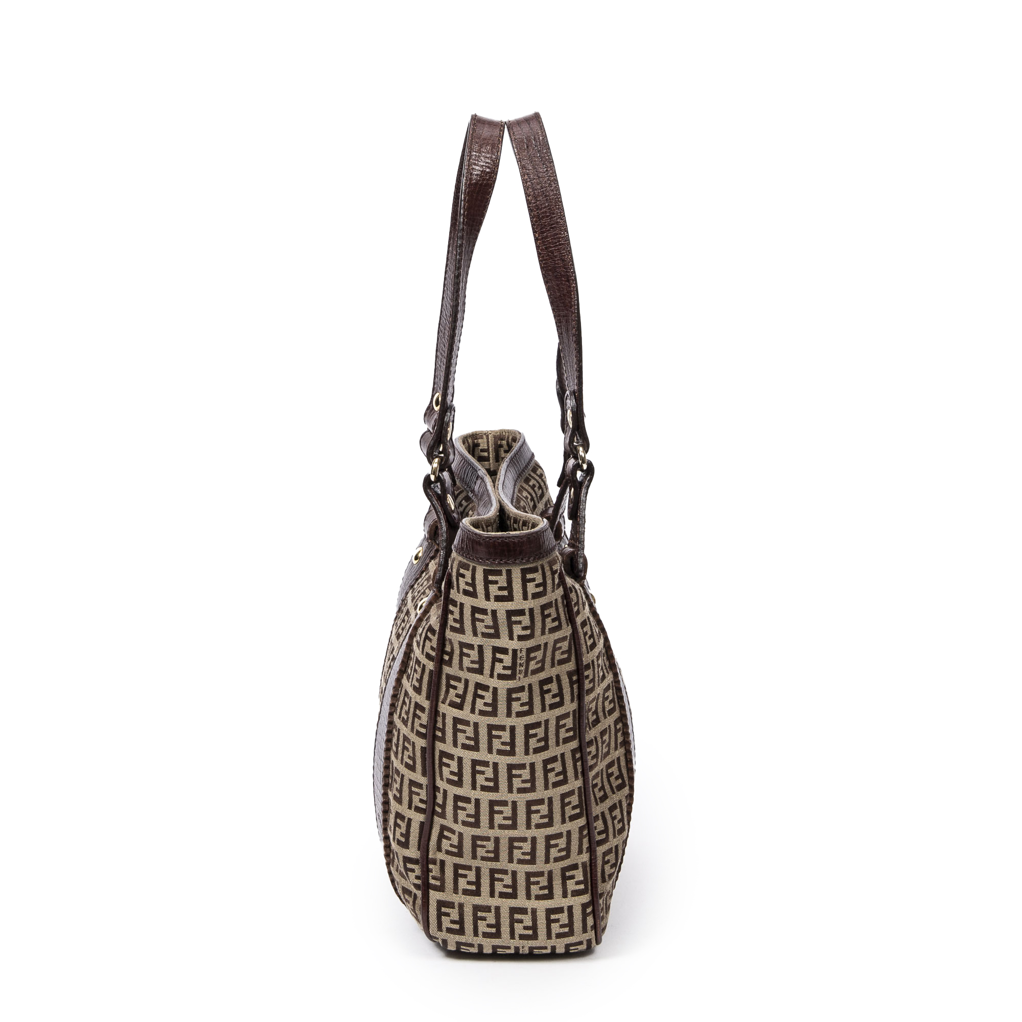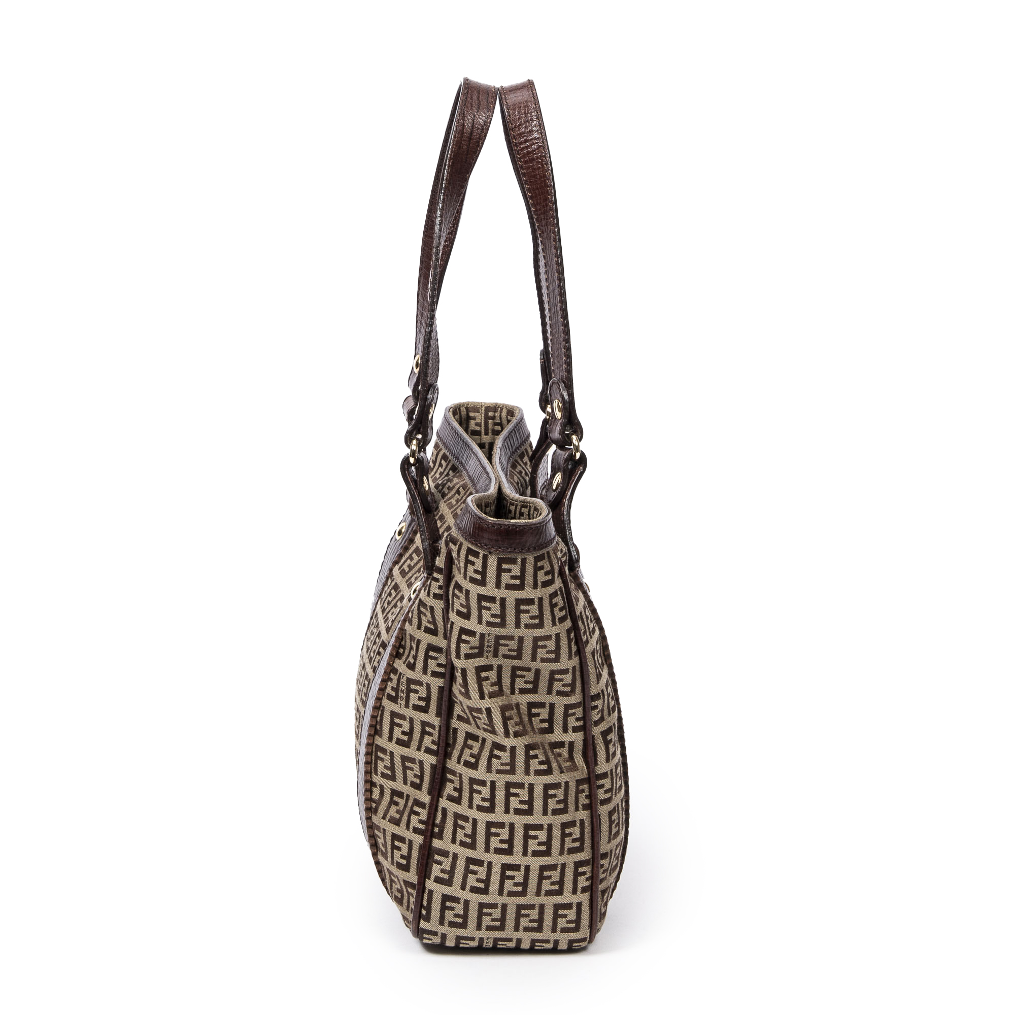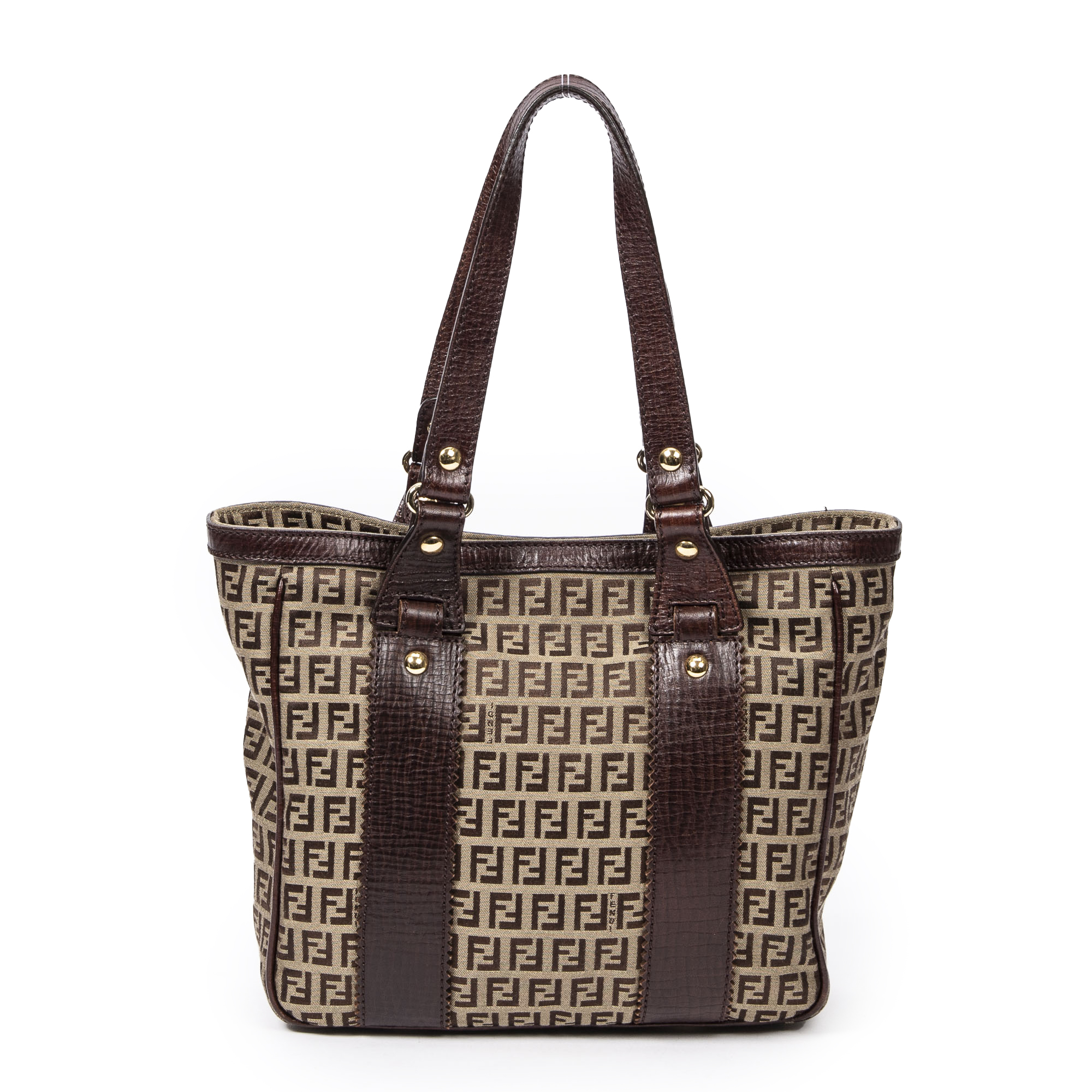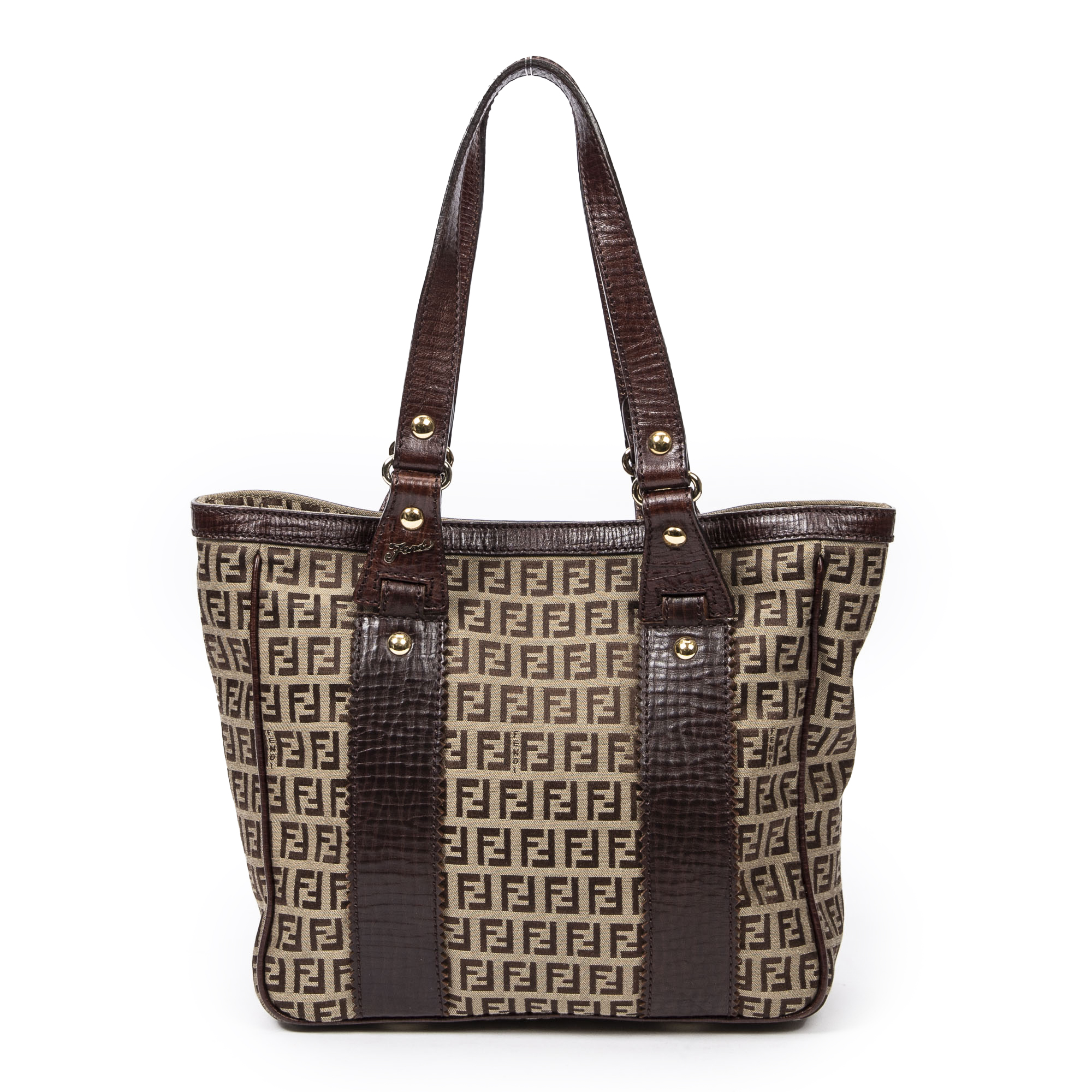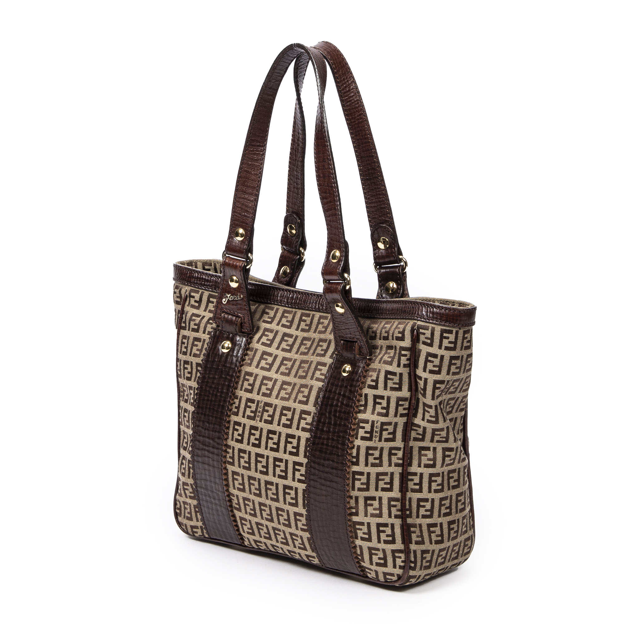 Fendi Sac à bandoulière Medium Square Tote en Tan/Brown et Gold. Le produit est en Excellent état (A).