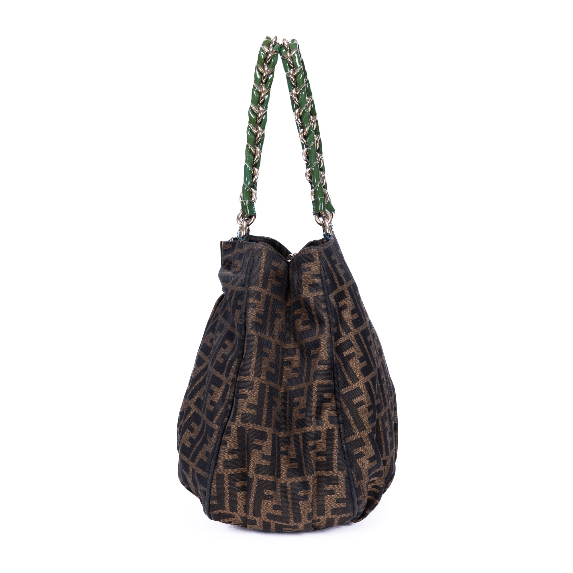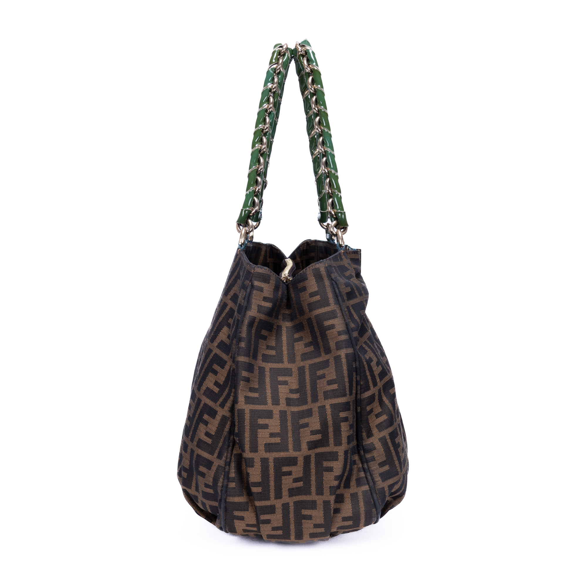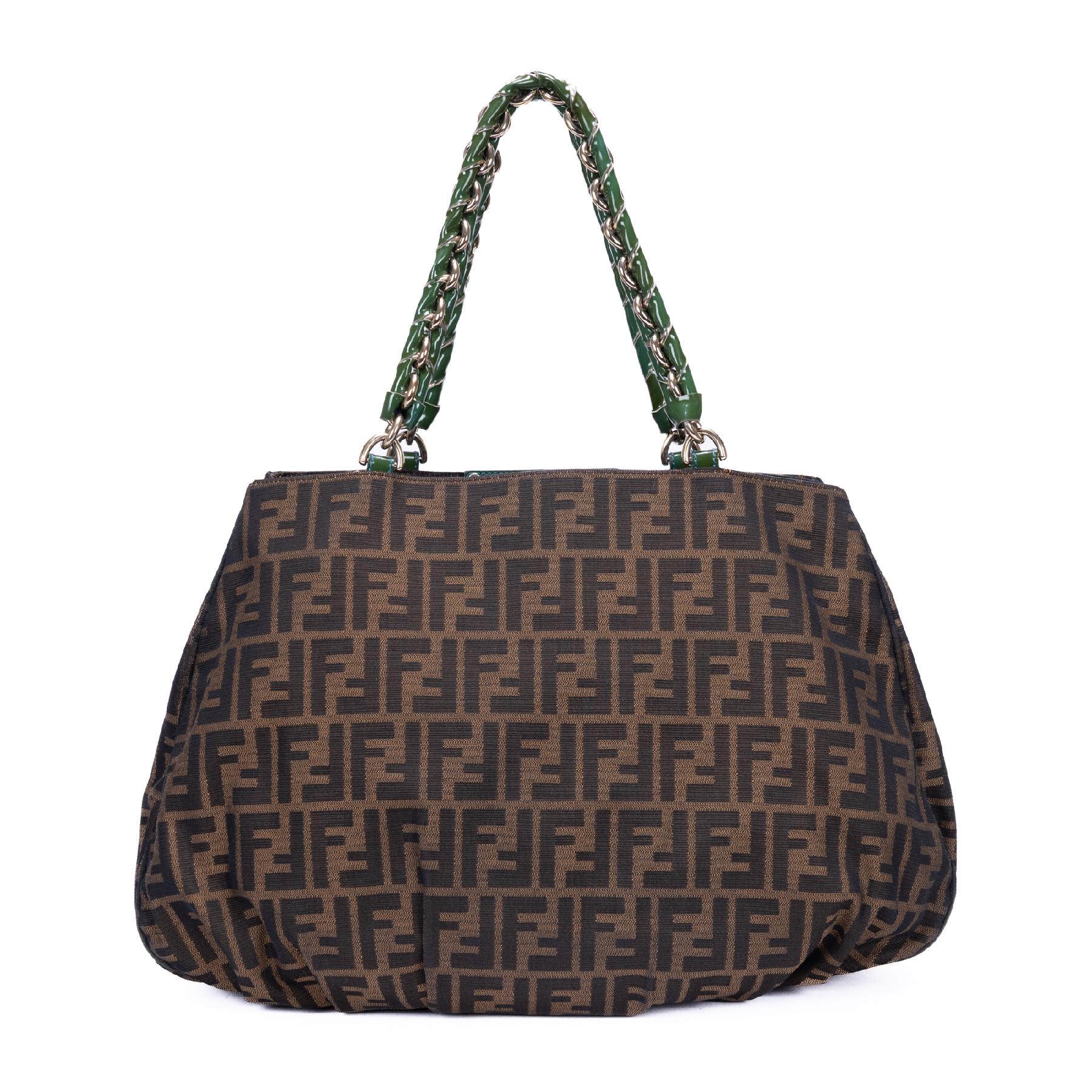 Fendi Sac à bandoulière Mia Large en Marron/Vert et Champagne Gold. Le produit est en Excellent état (A).