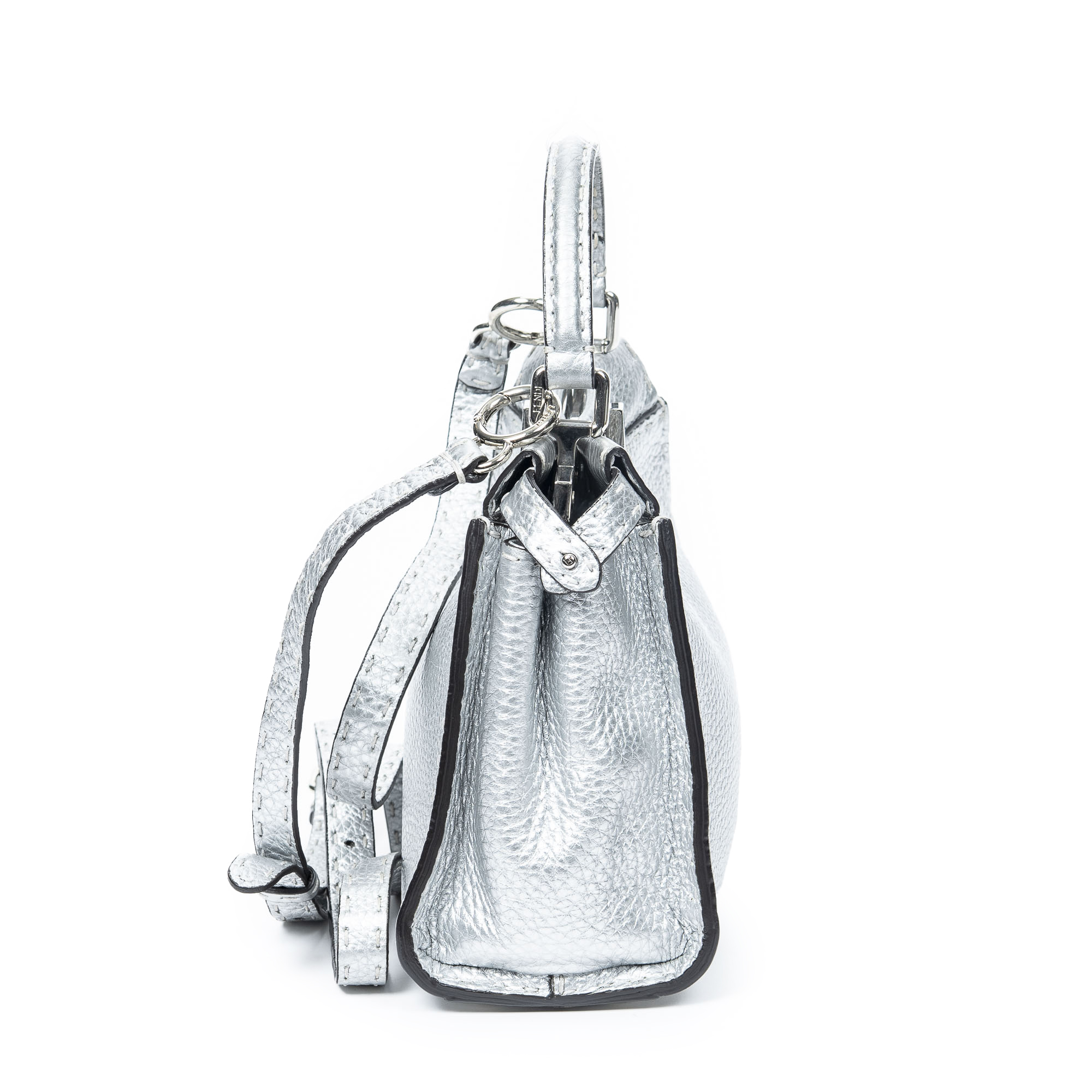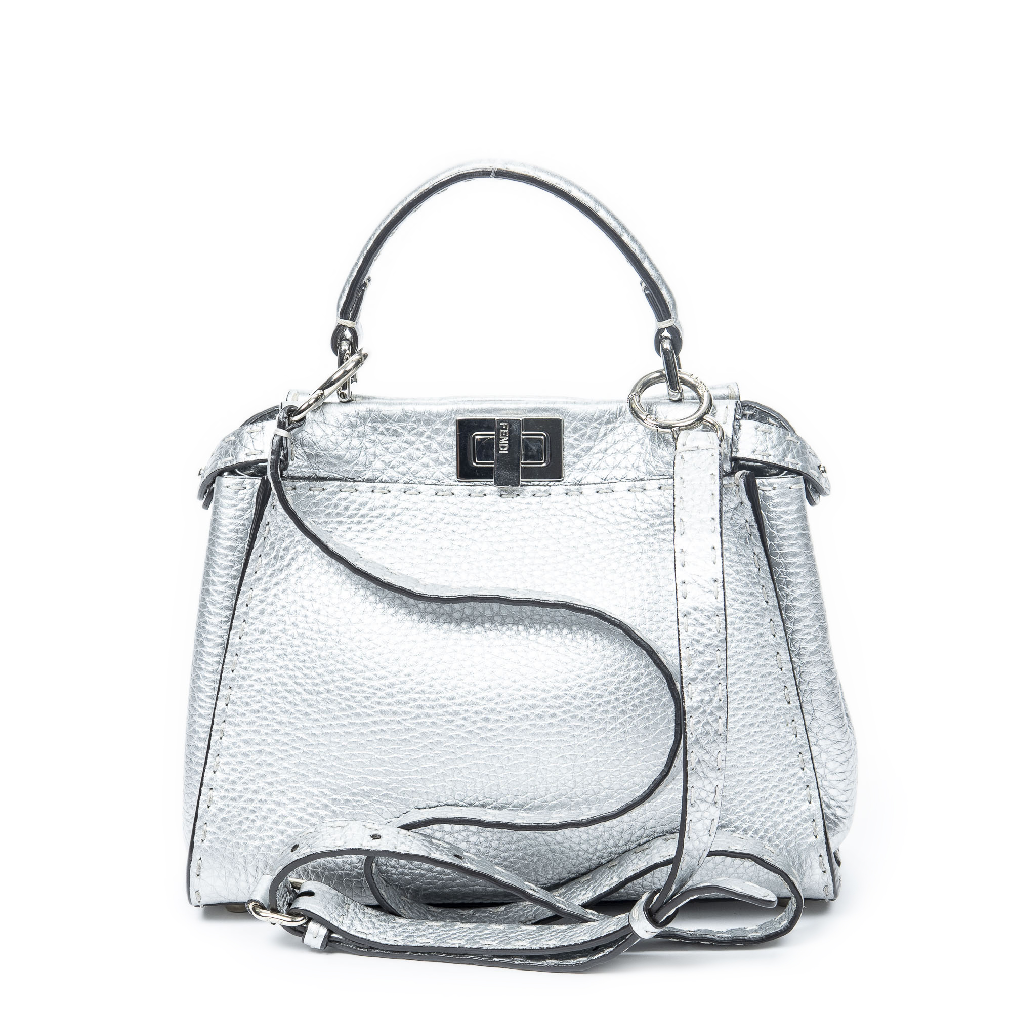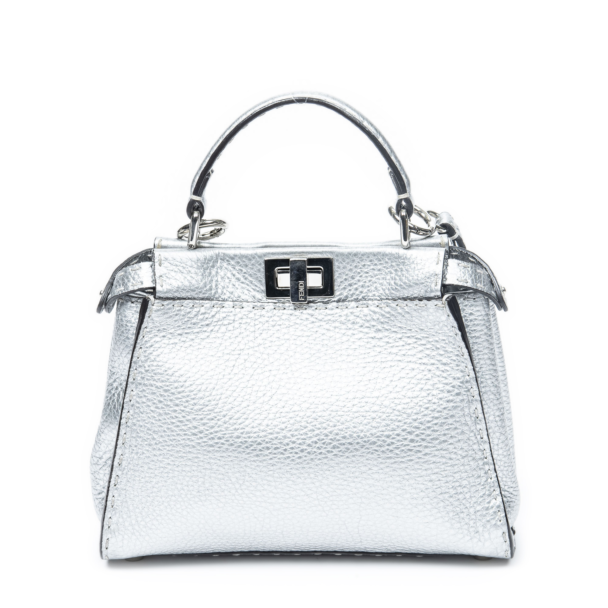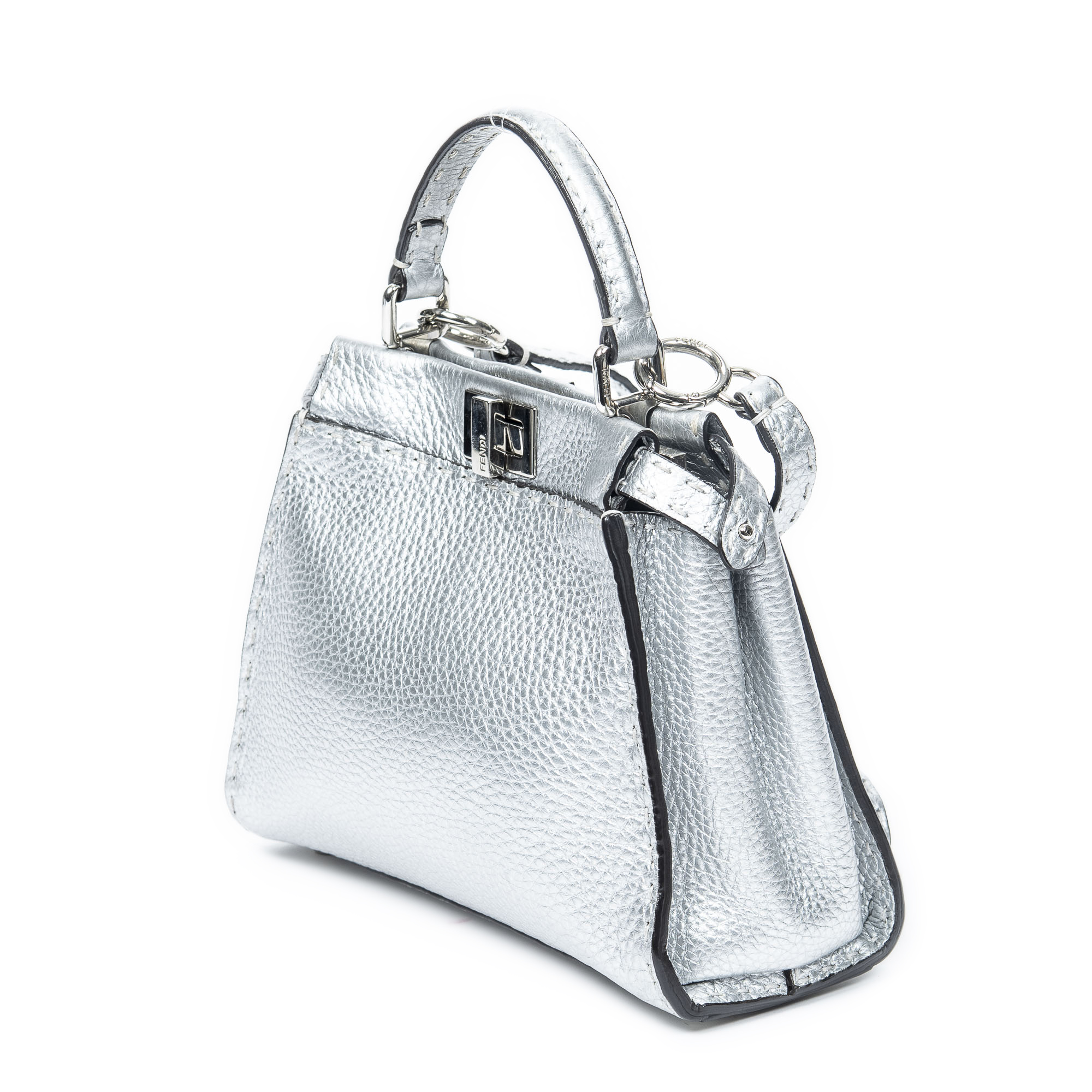 Fendi sac à bandoulière Mini Selleria Peekaboo en argent et argent. Le produit est en Parfait état (AA).