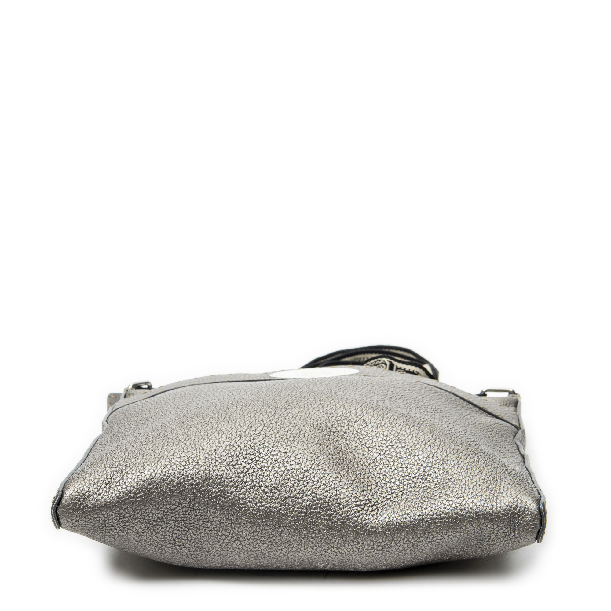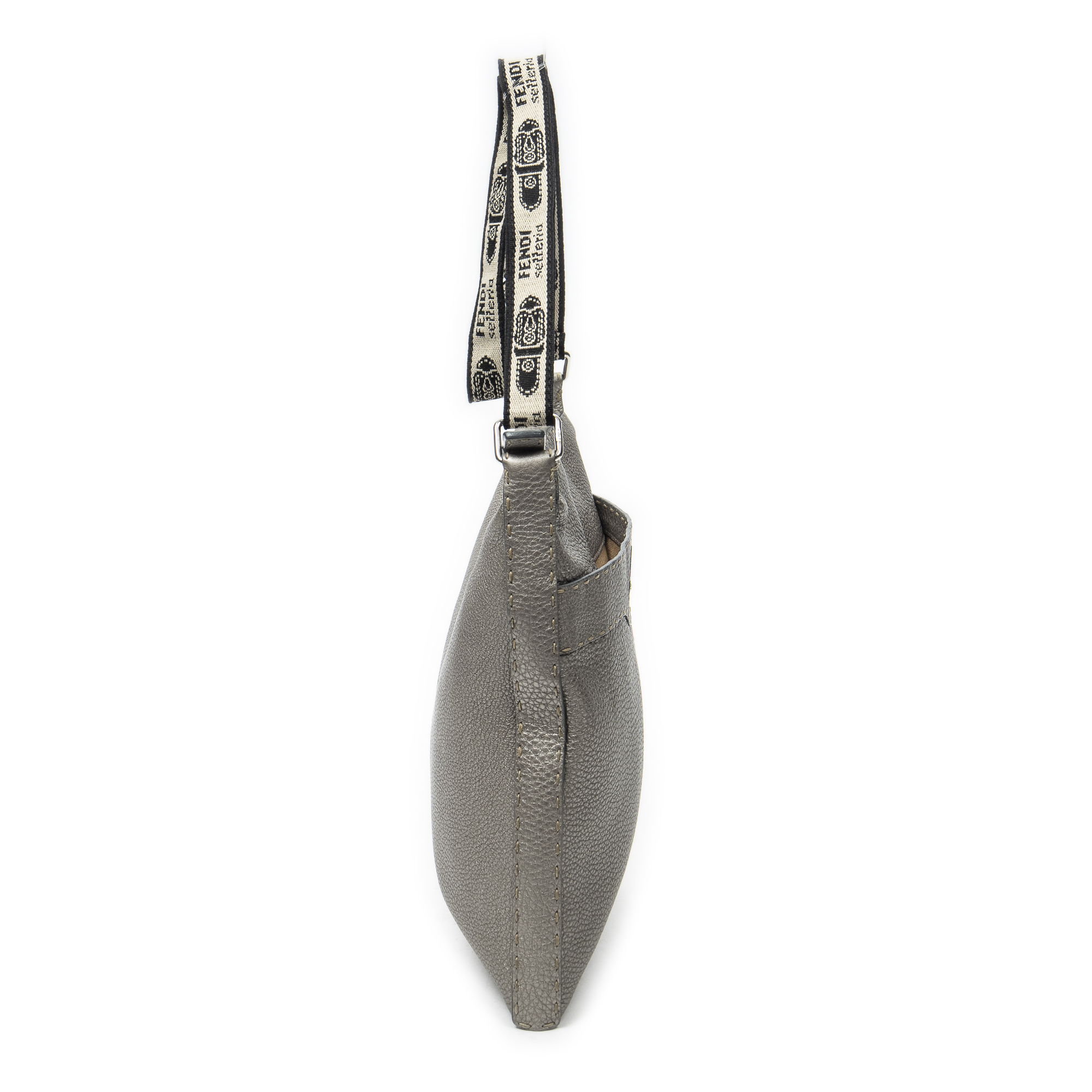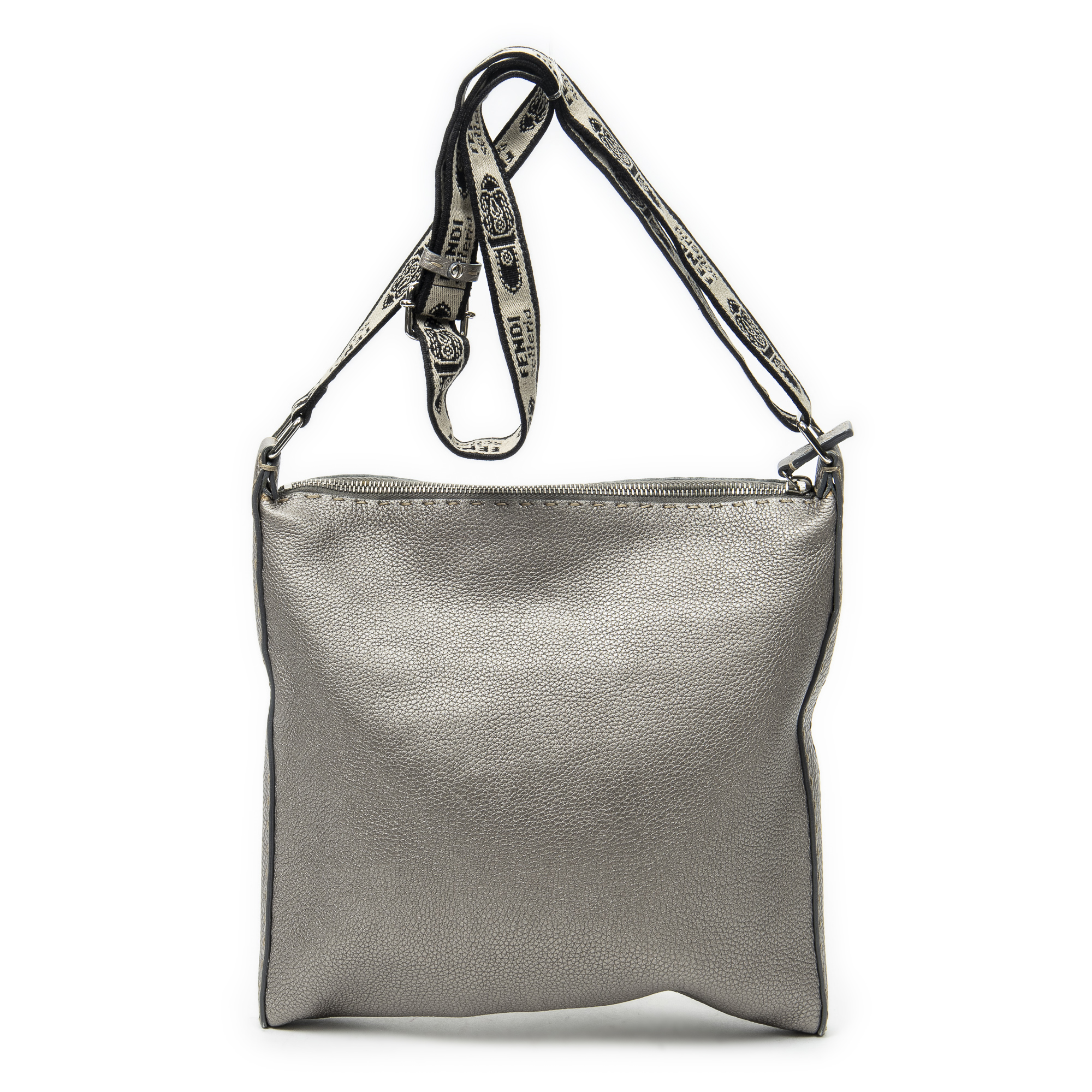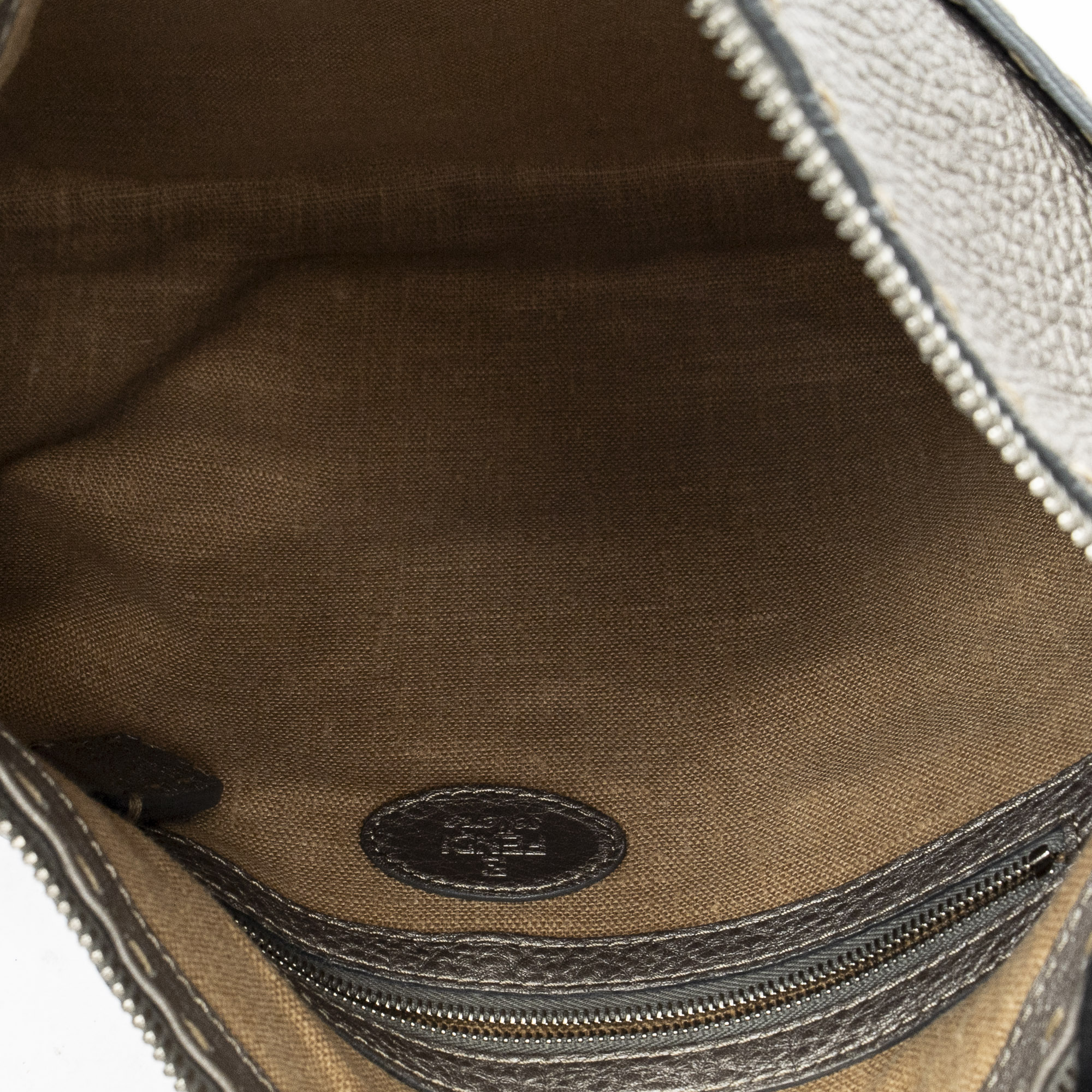 Fendi Sac à bandoulière Selleria Zip Messenger en Greige et Argent. Le produit est en Excellent état (A).