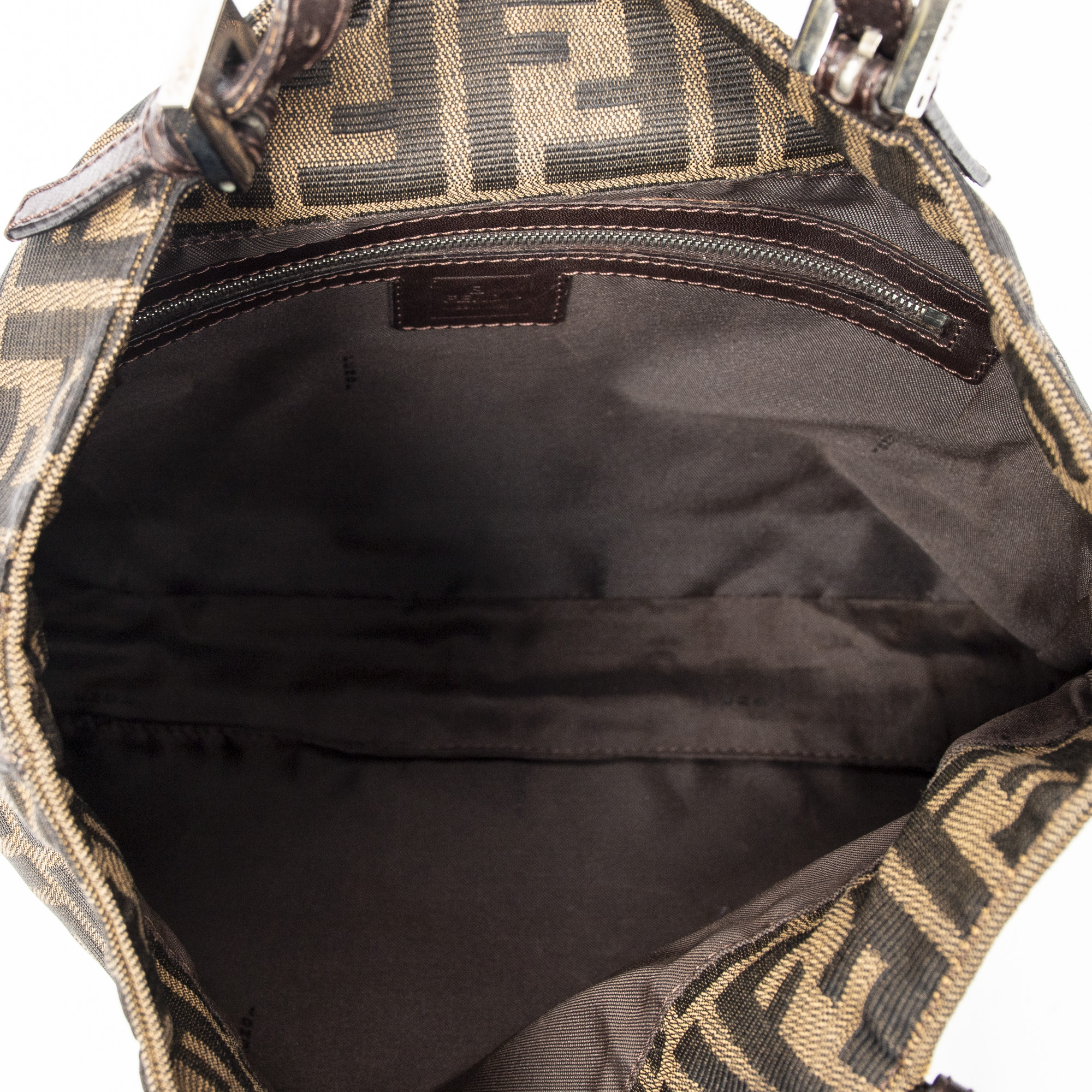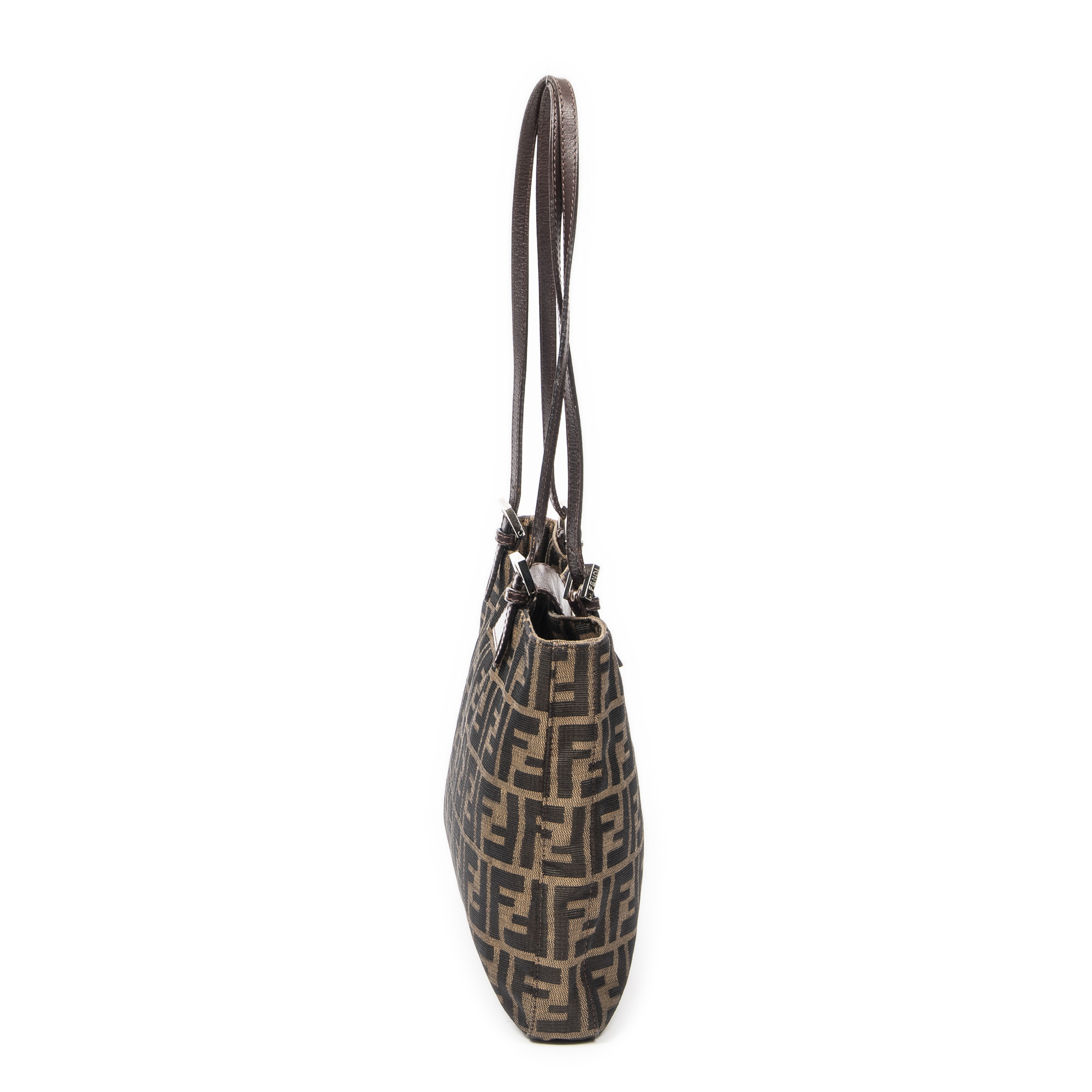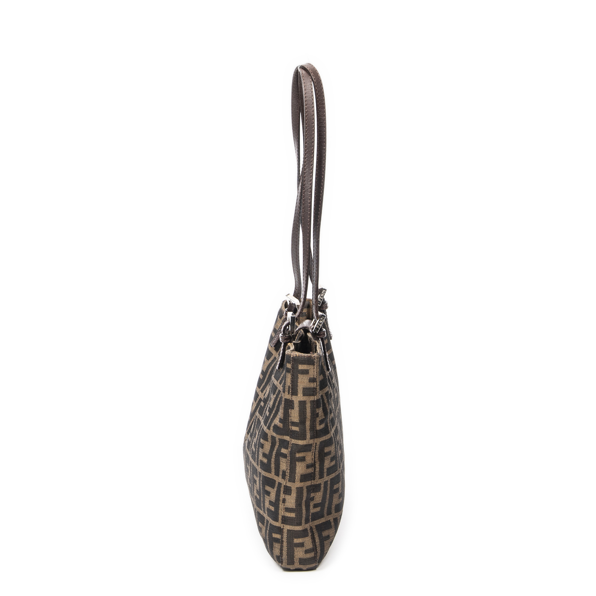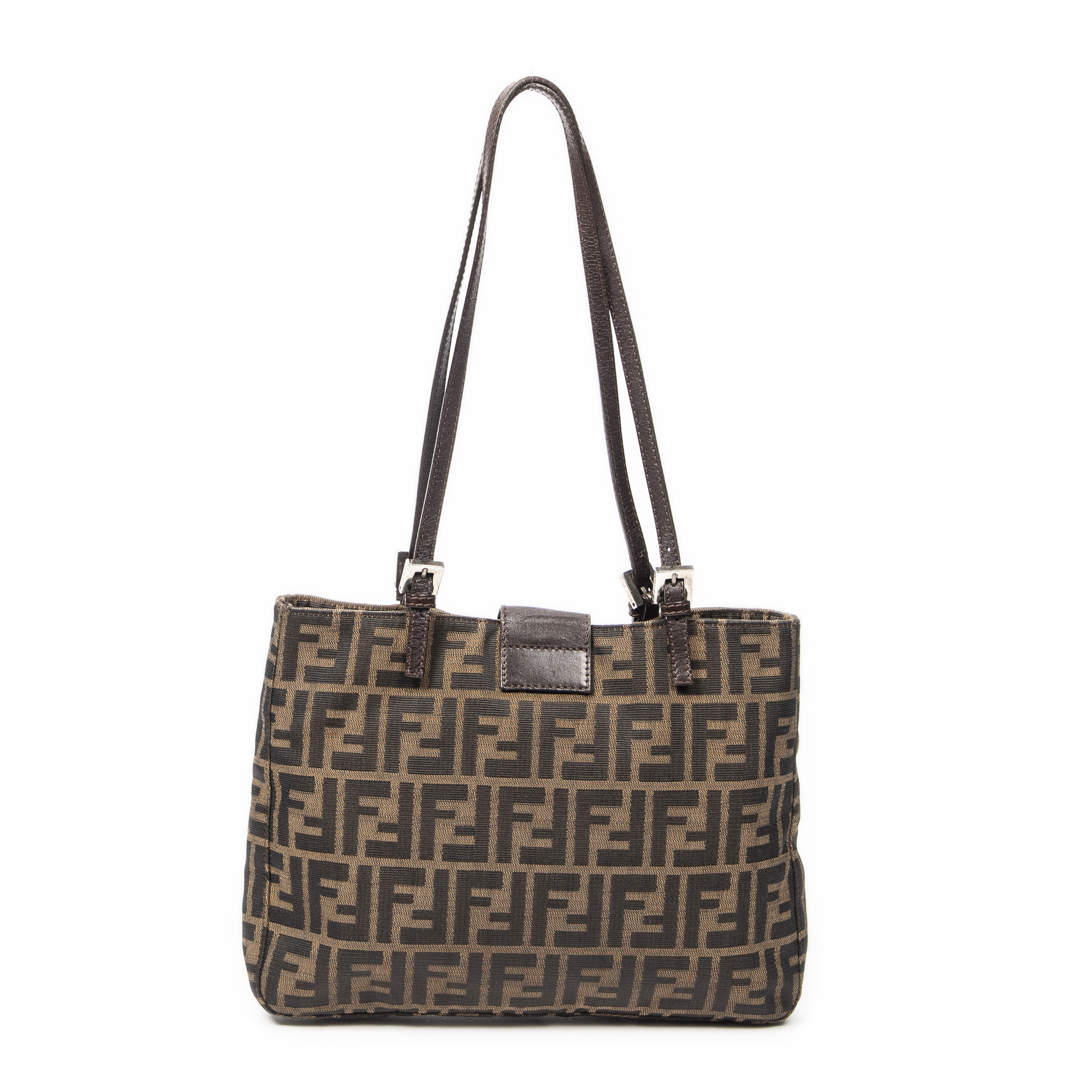 Fendi Sac à bandoulière Square Tote en Tan/Brun foncé et Argent. Le produit est en Excellent état (A).