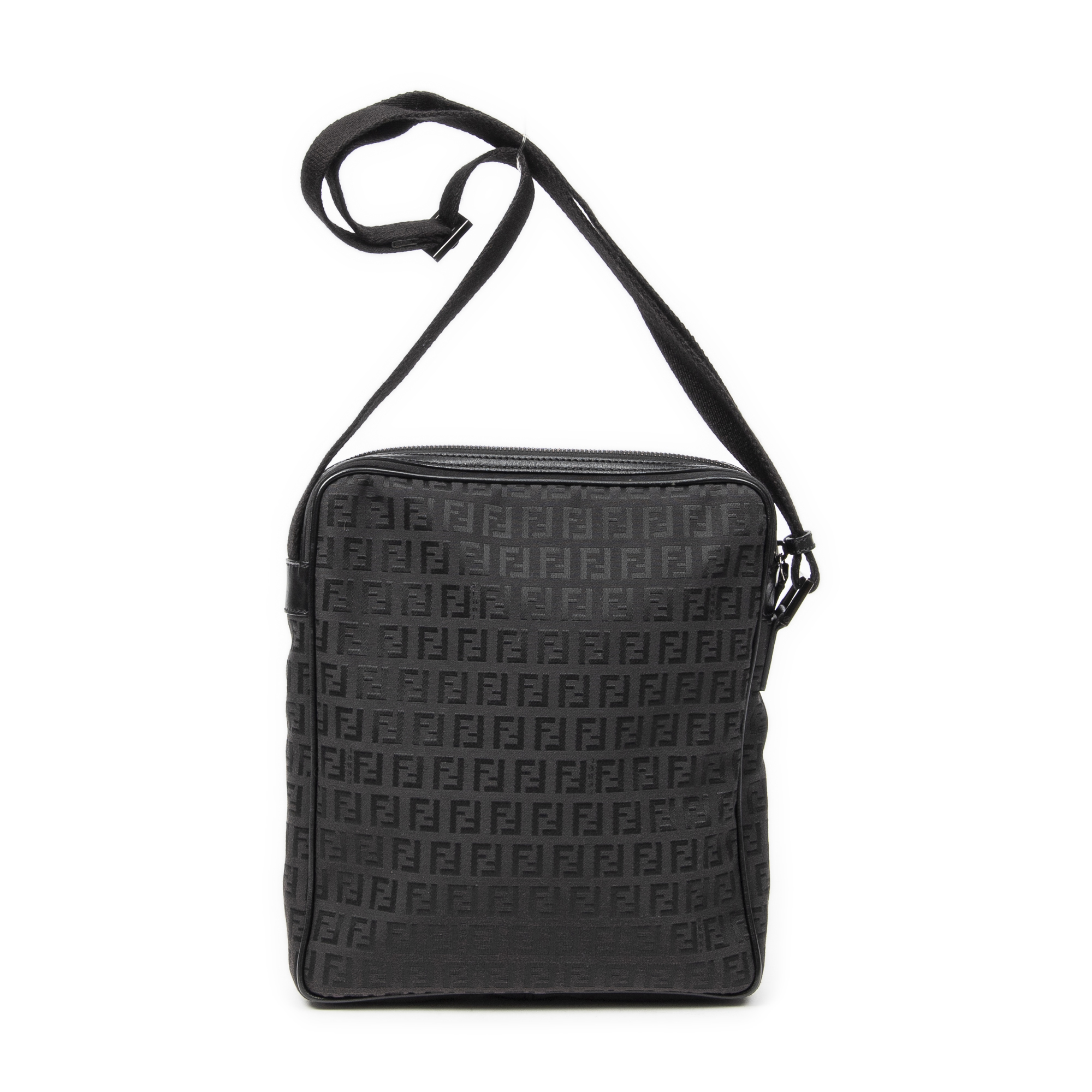 Fendi Sac à bandoulière Zip Messenger Crossbody en Black et Argent. Le produit est en Excellent état (A).