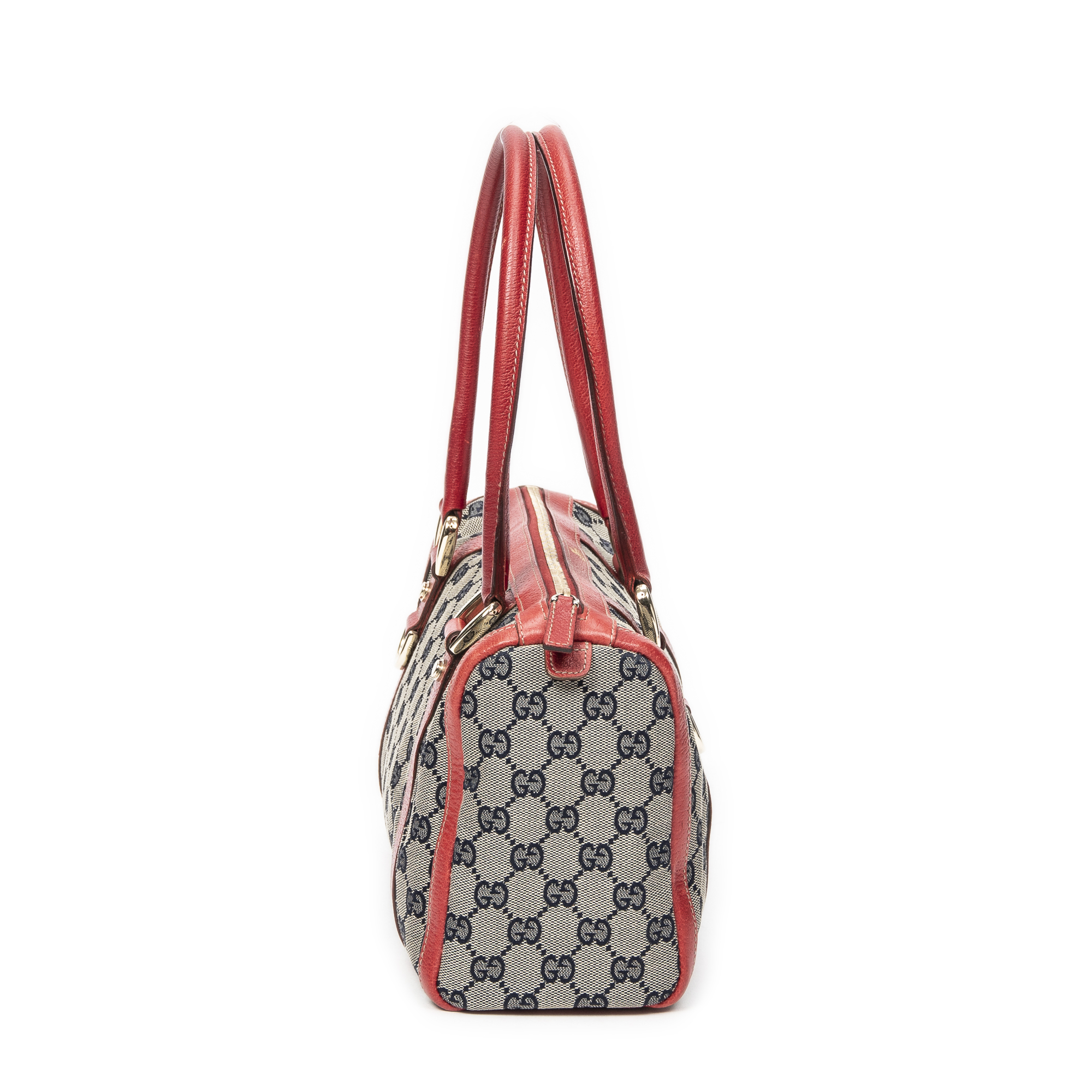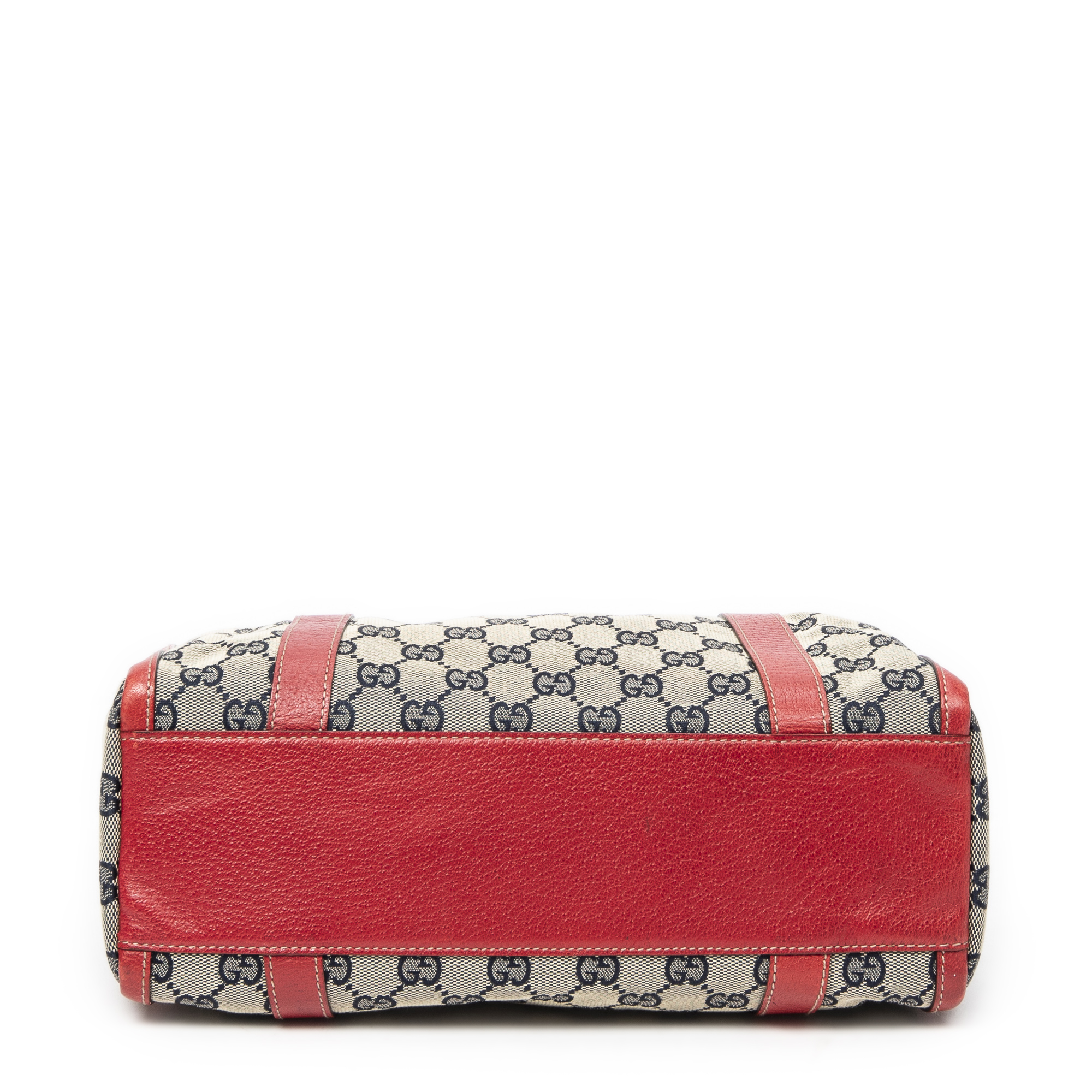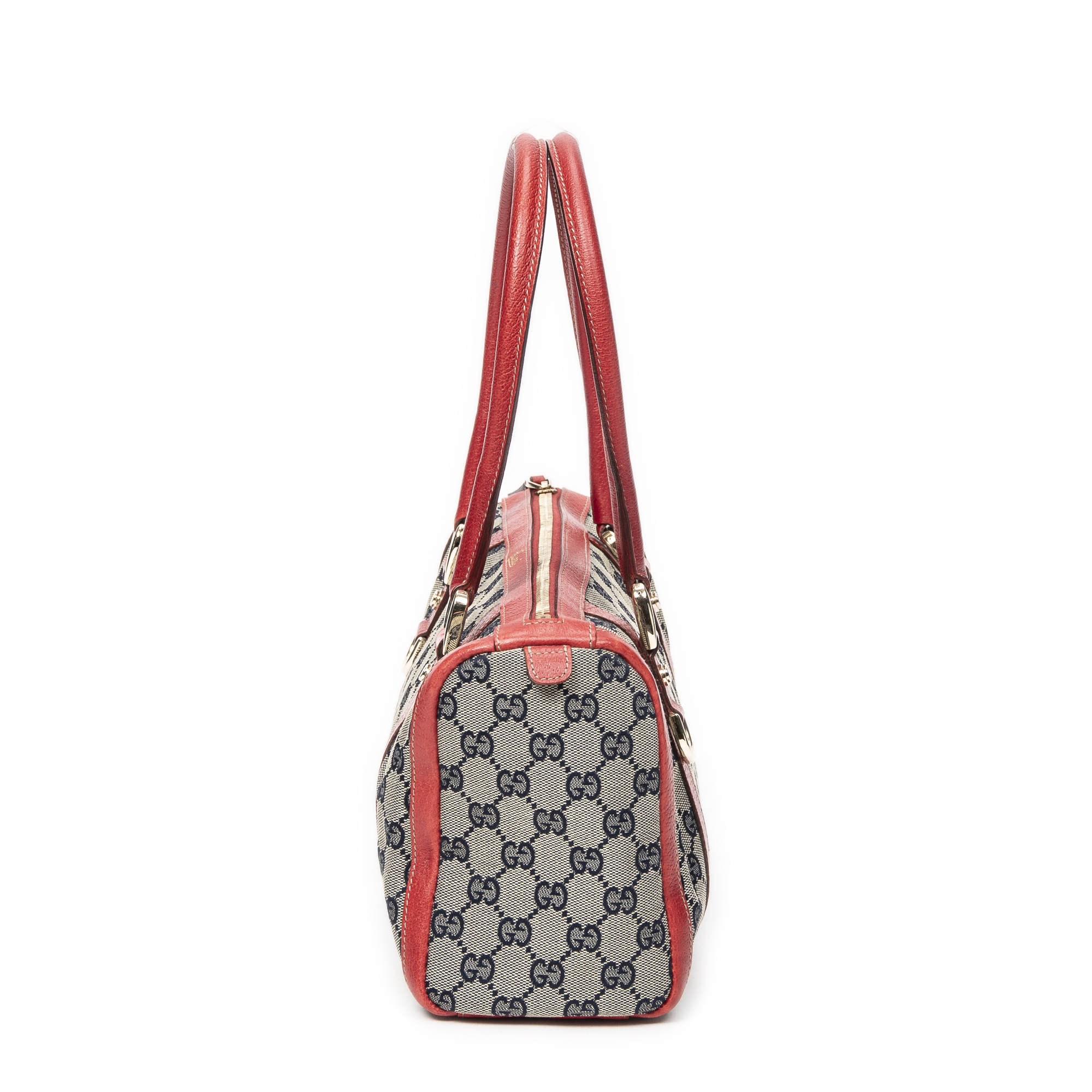 Gucci Sac à bandoulière Abbey Boston  en  Beige/Marine/Rouge et Or. Le produit est en Excellent état (A).