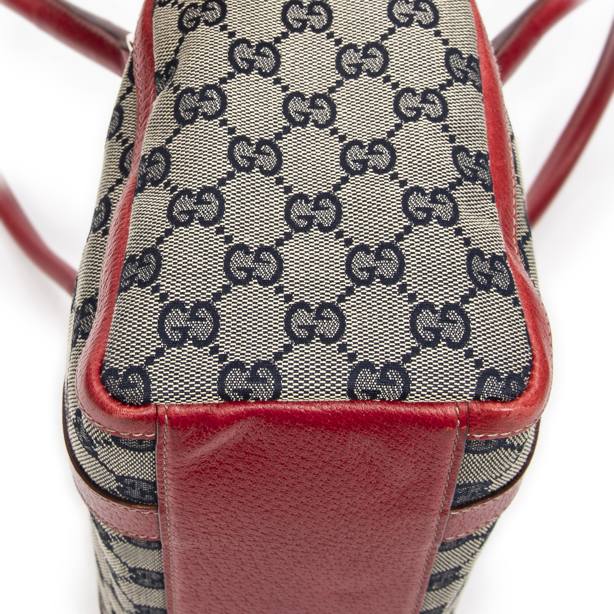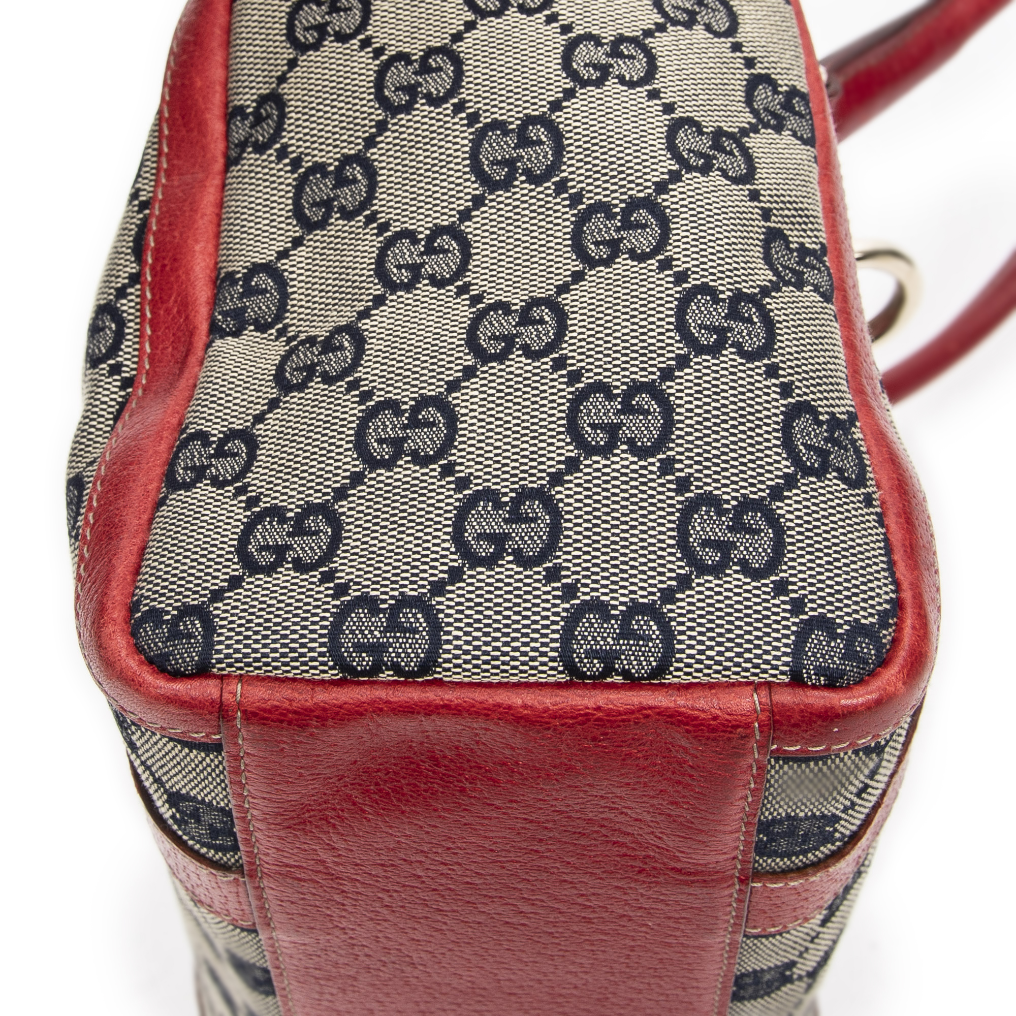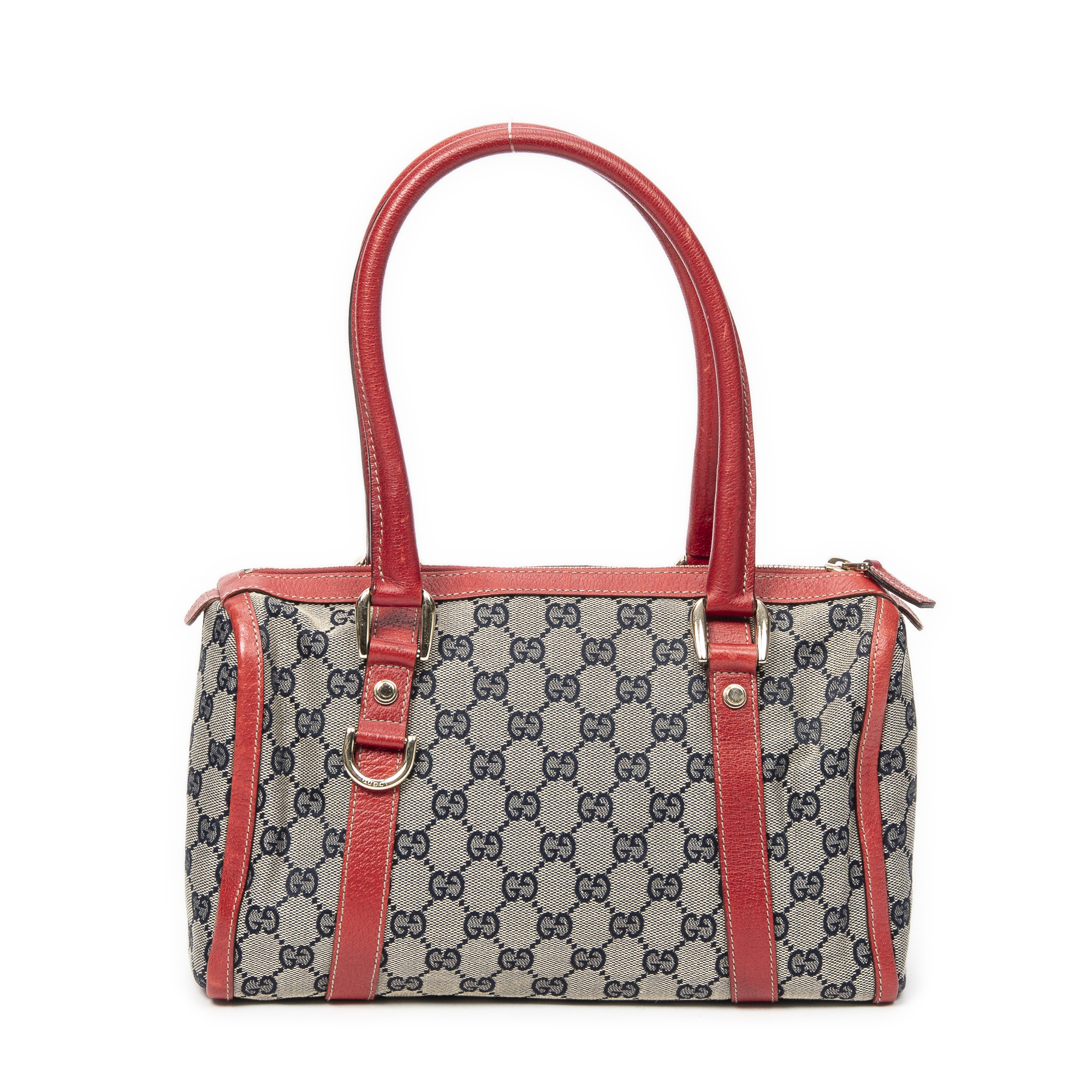 Gucci Sac à bandoulière Abbey Boston  en  Beige/Marine/Rouge et Or. Le produit est en Excellent état (A).