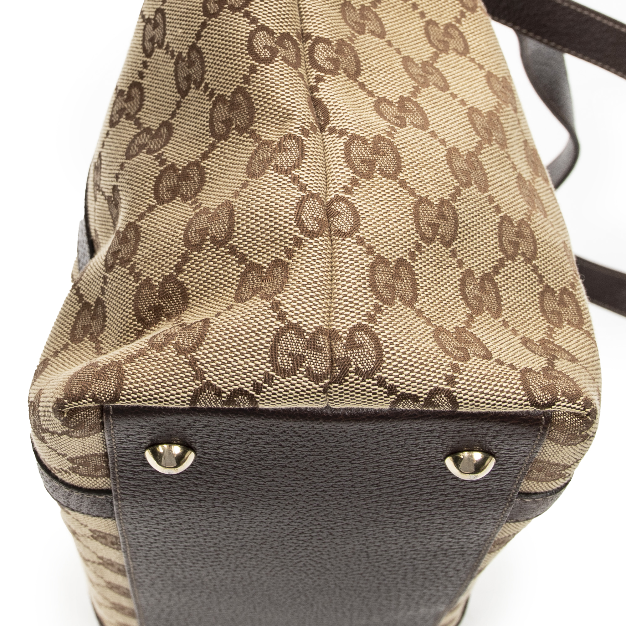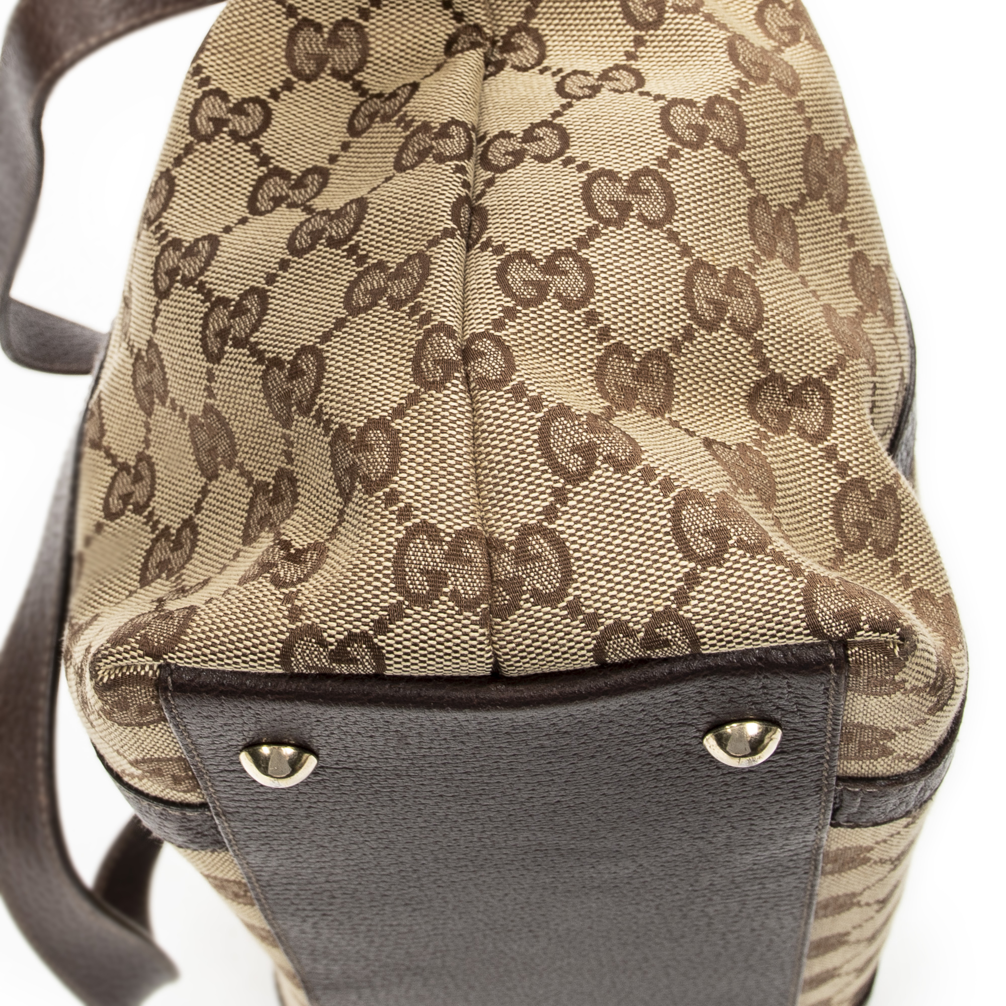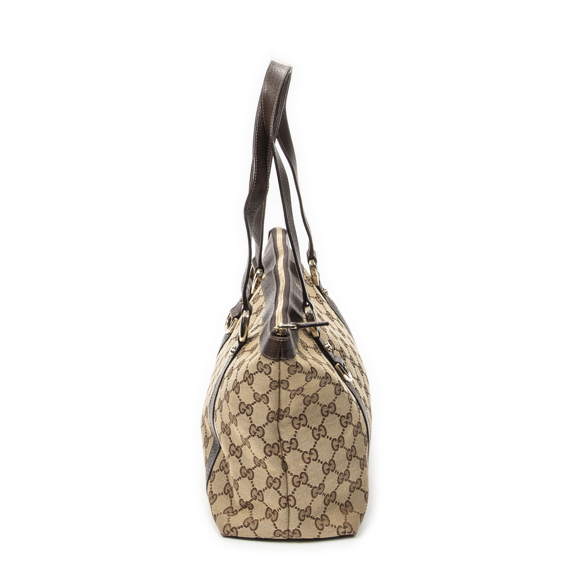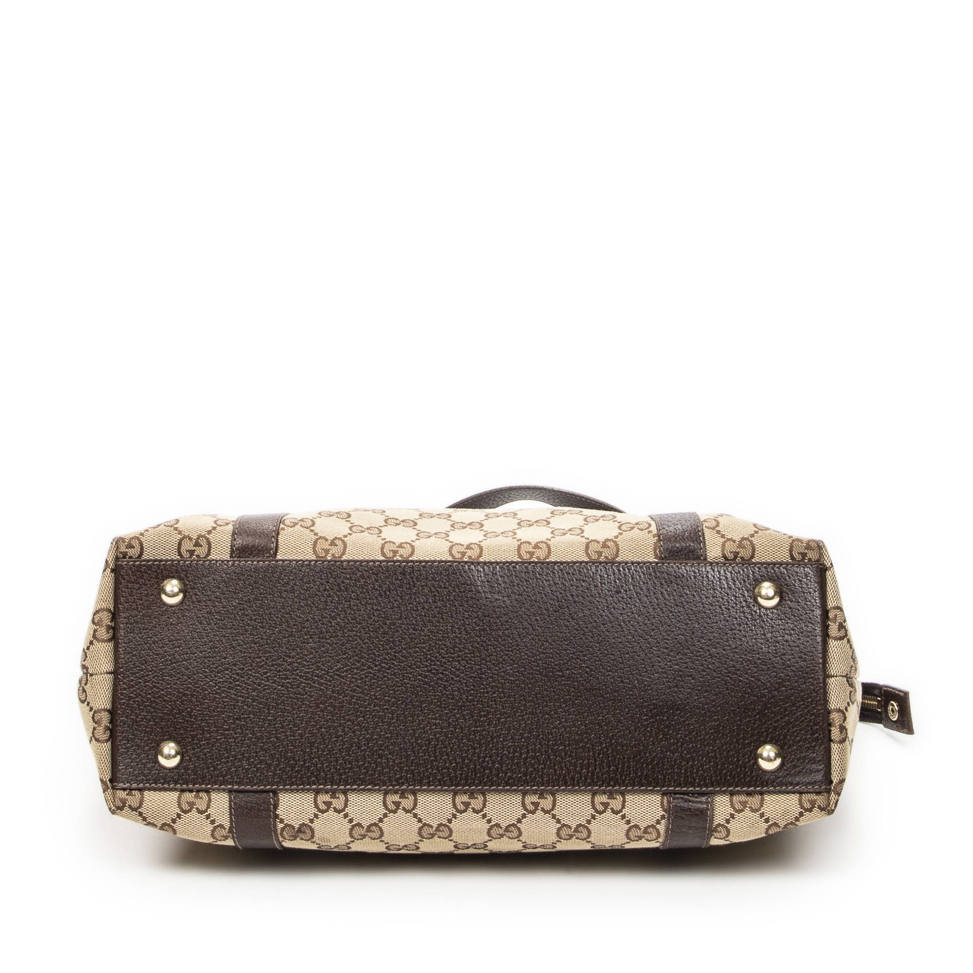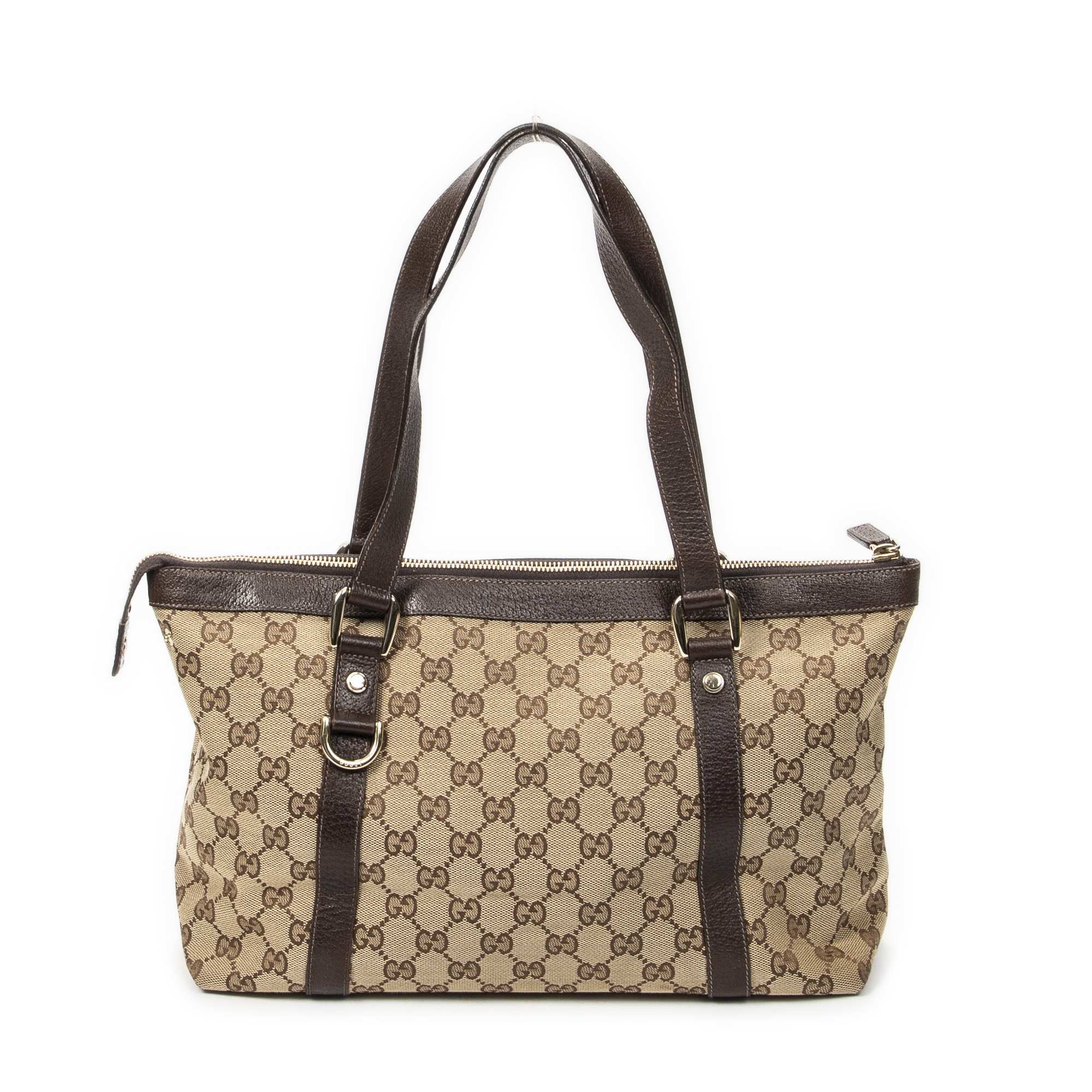 Gucci Sac à bandoulière Abbey Zip Tote en Beige et Gold. Le produit est en Excellent état (A).