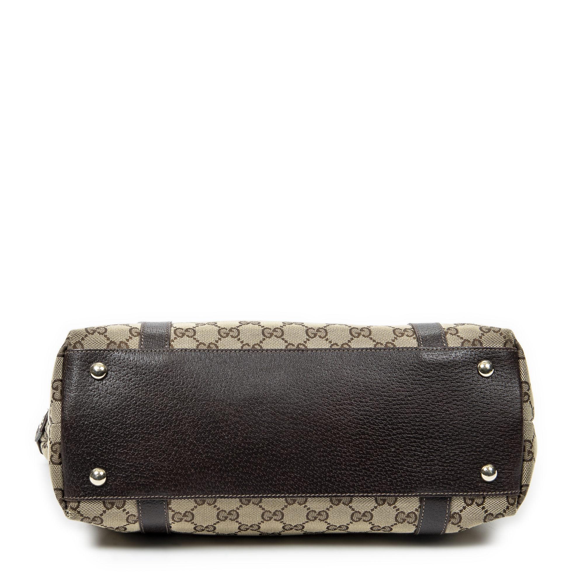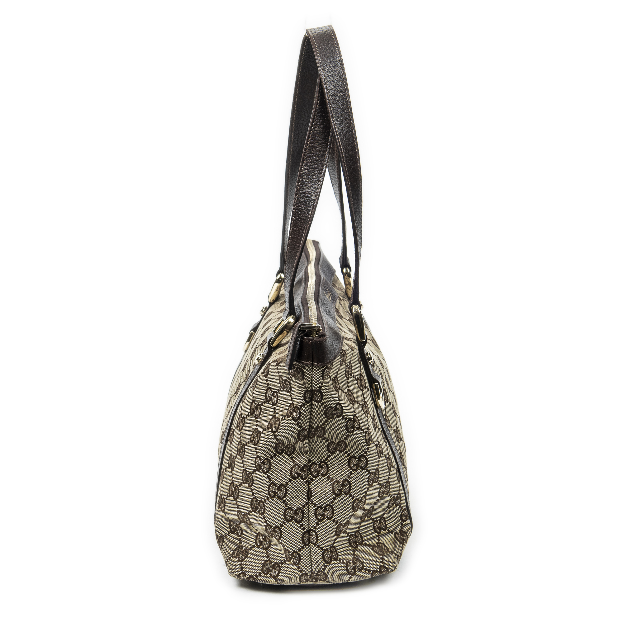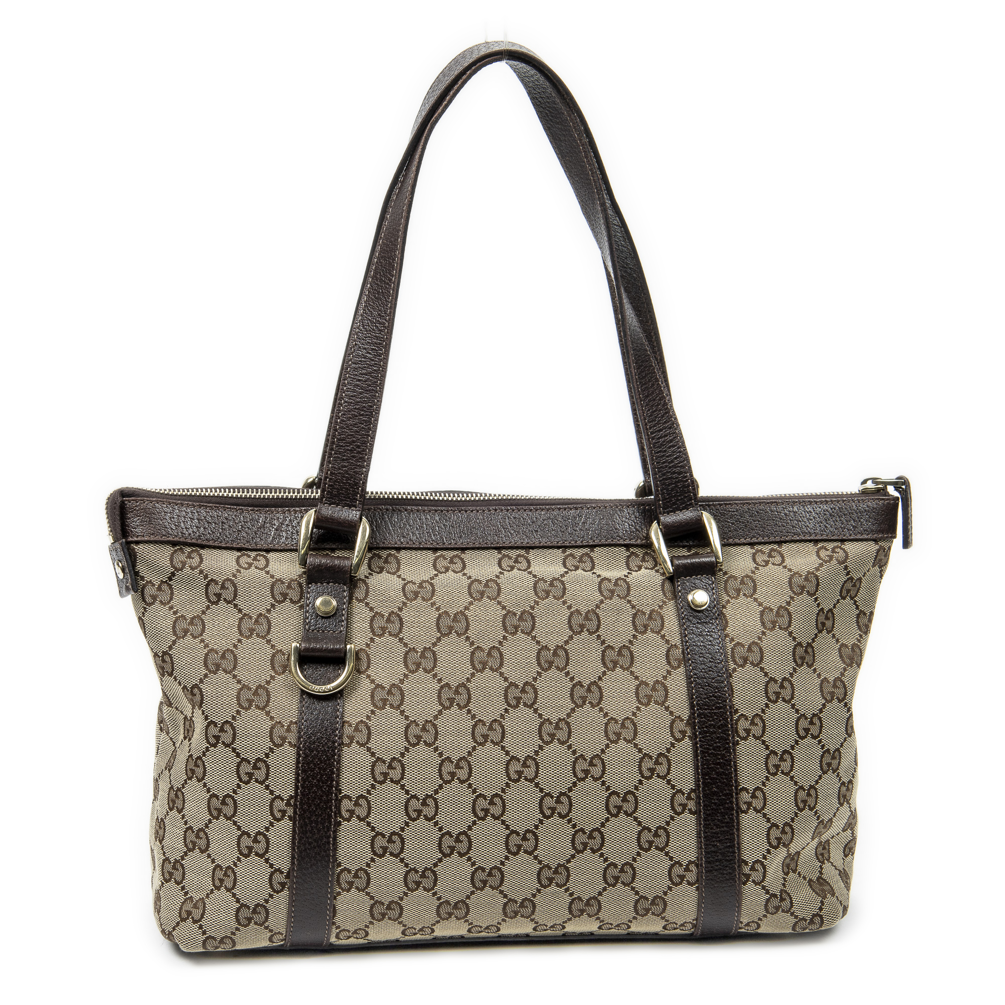 Gucci Sac à bandoulière Abbey Zip Tote en Beige/Marron et Gold. Le produit est en Excellent état (A).