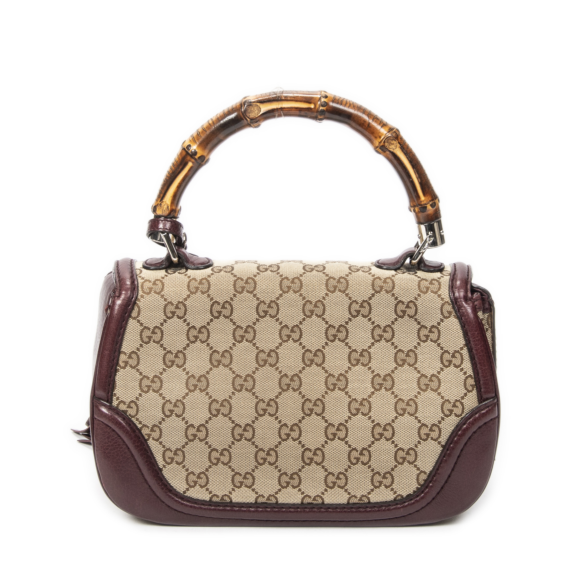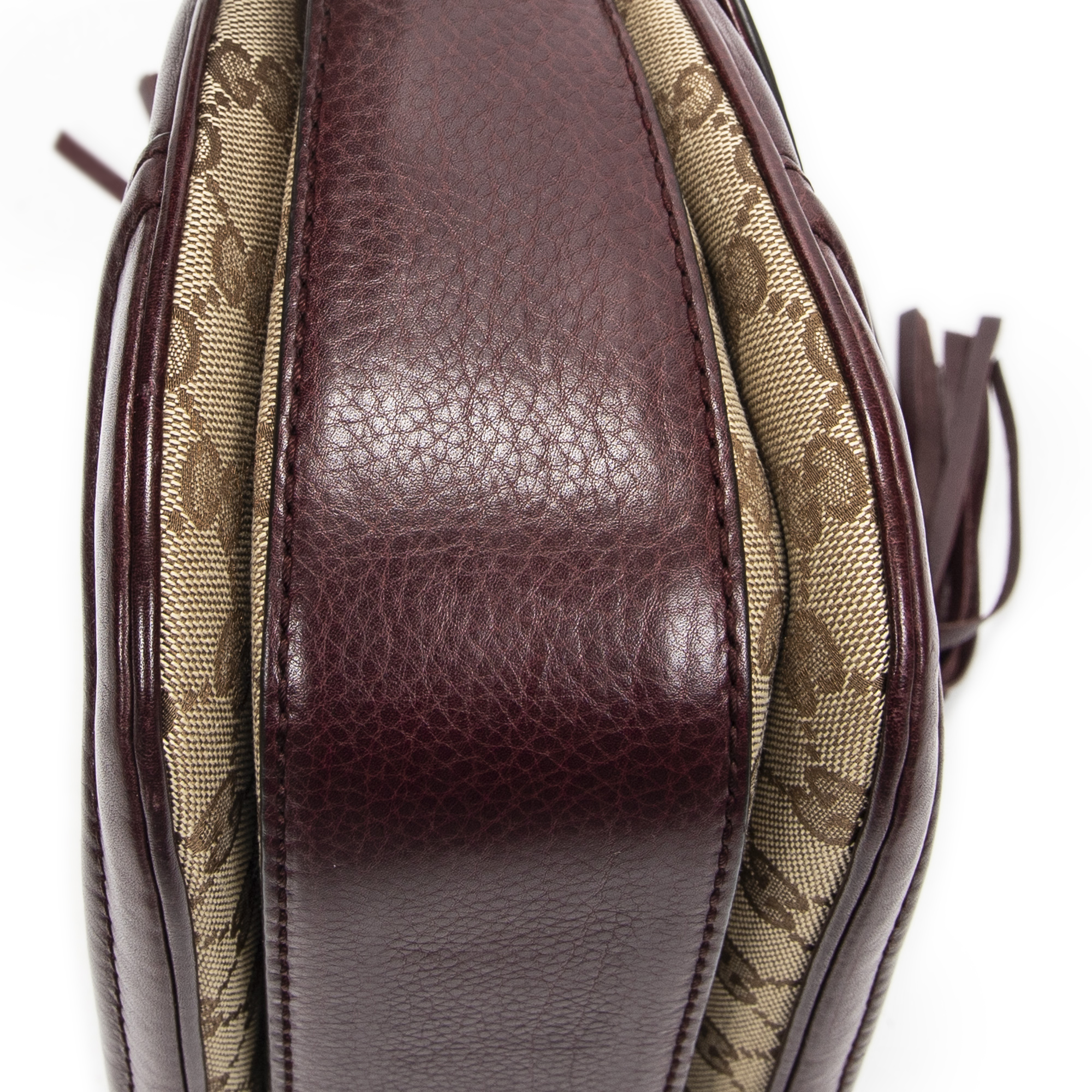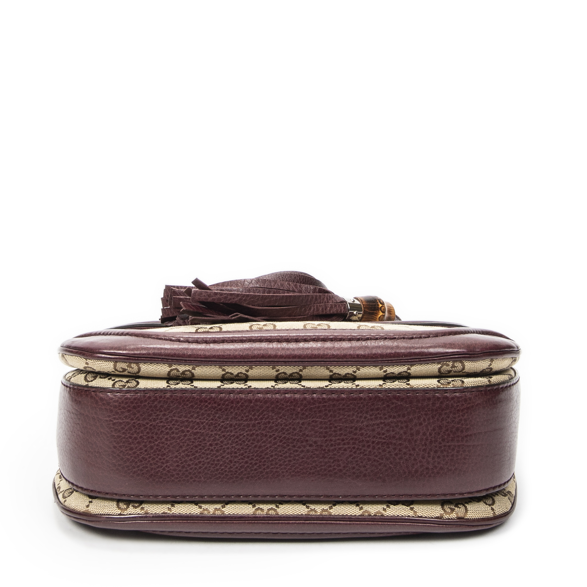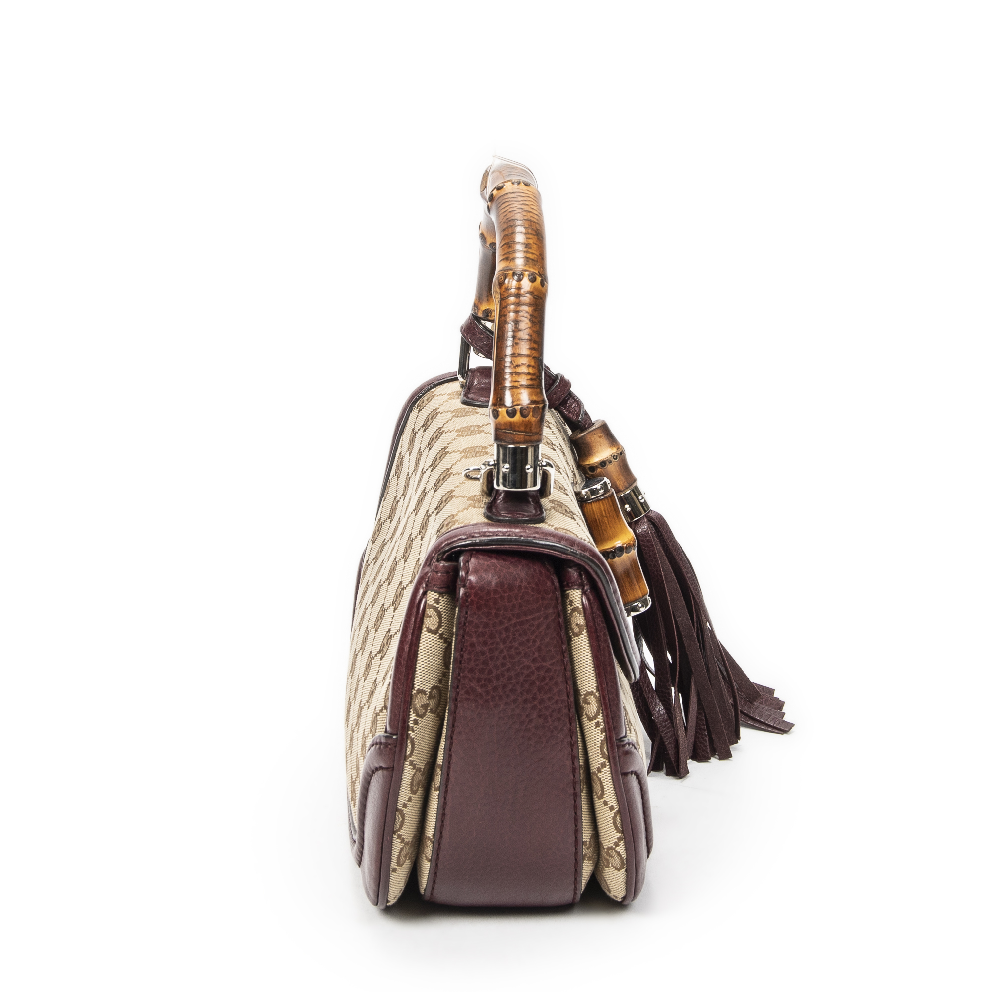 Gucci Sac à bandoulière Bamboo Tassel Top Handle en Bordeaux/Beige et Gold. Le produit est en Excellent état (A).