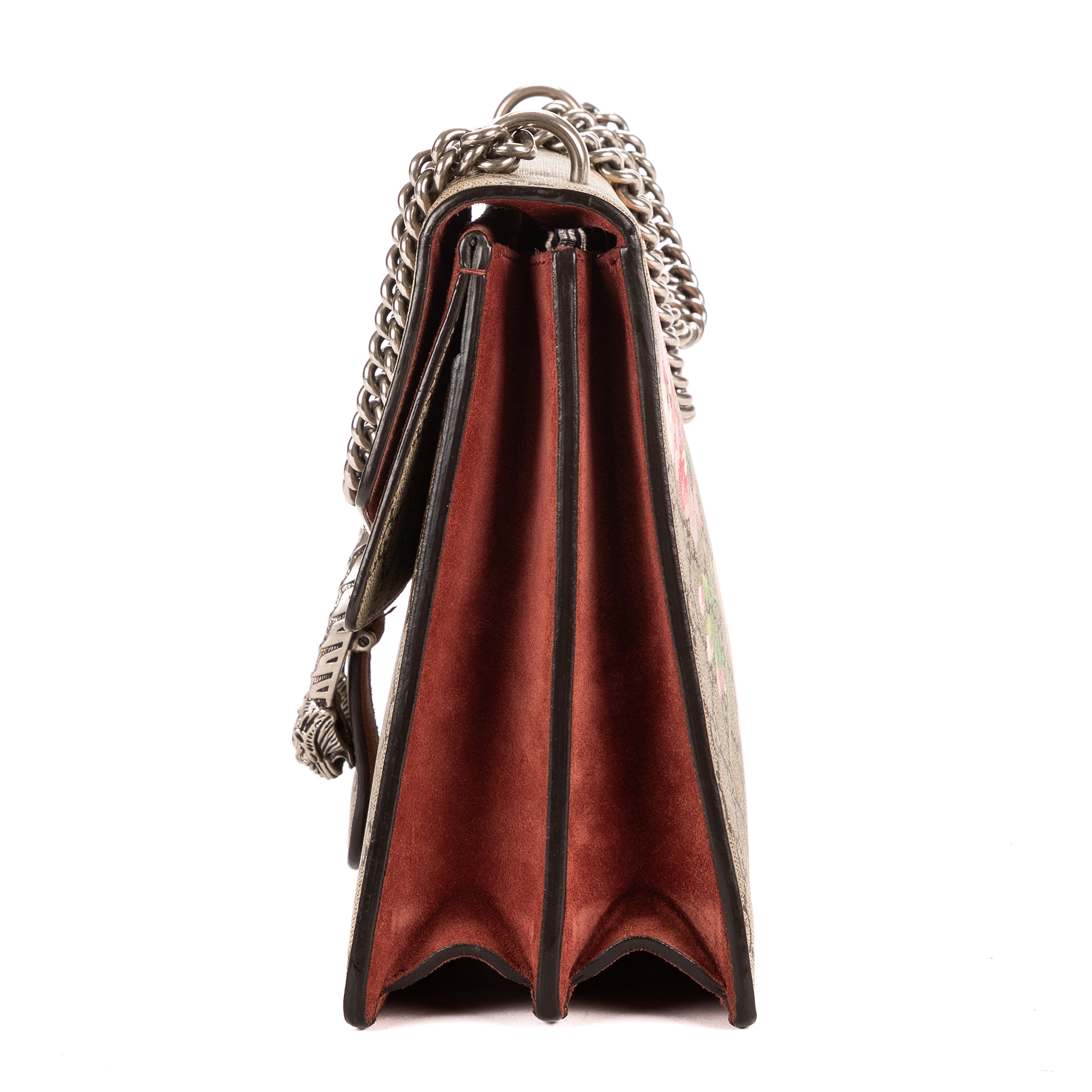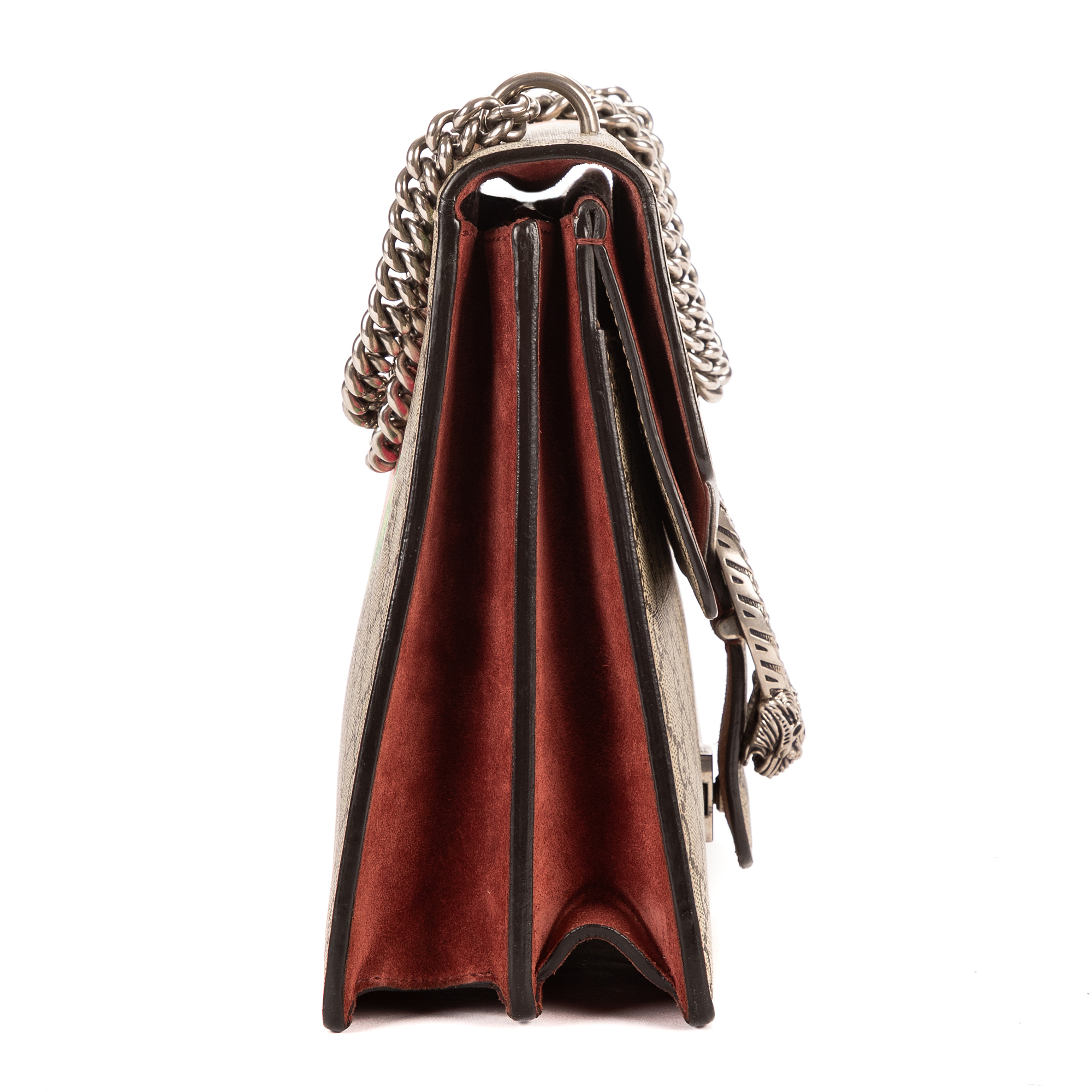 Gucci Sac à bandoulière Blooms Dionysus Medium en Beige/Bourgogne et Argent. Le produit est en Excellent état (A).