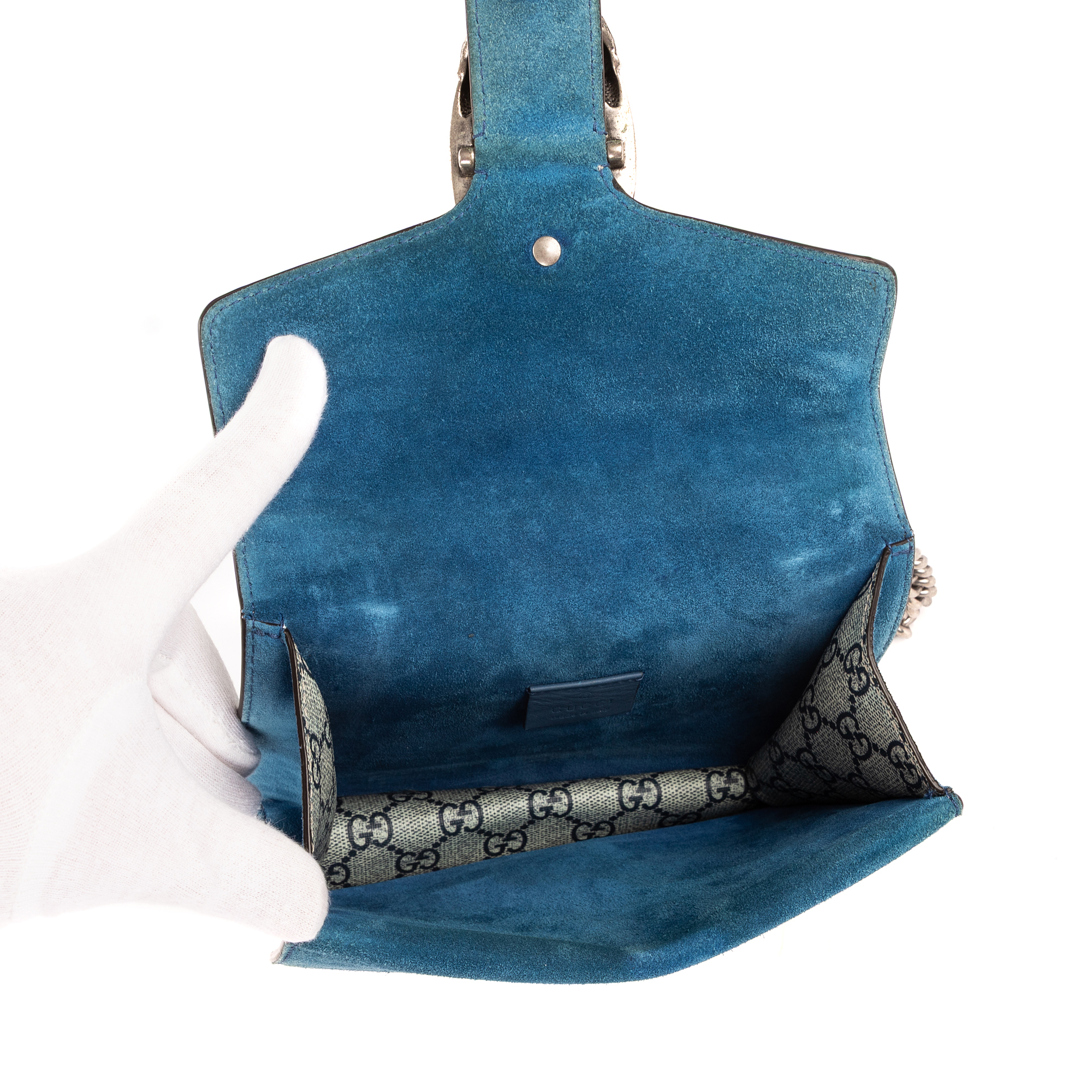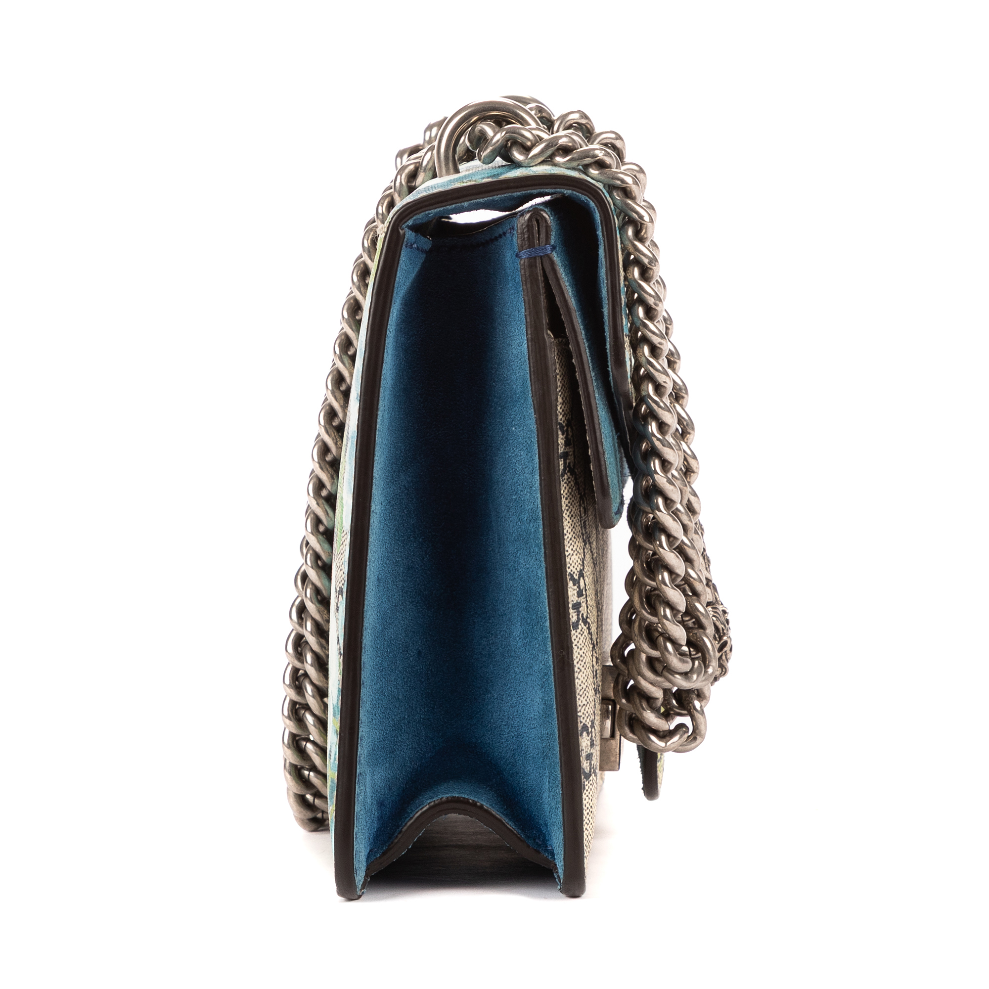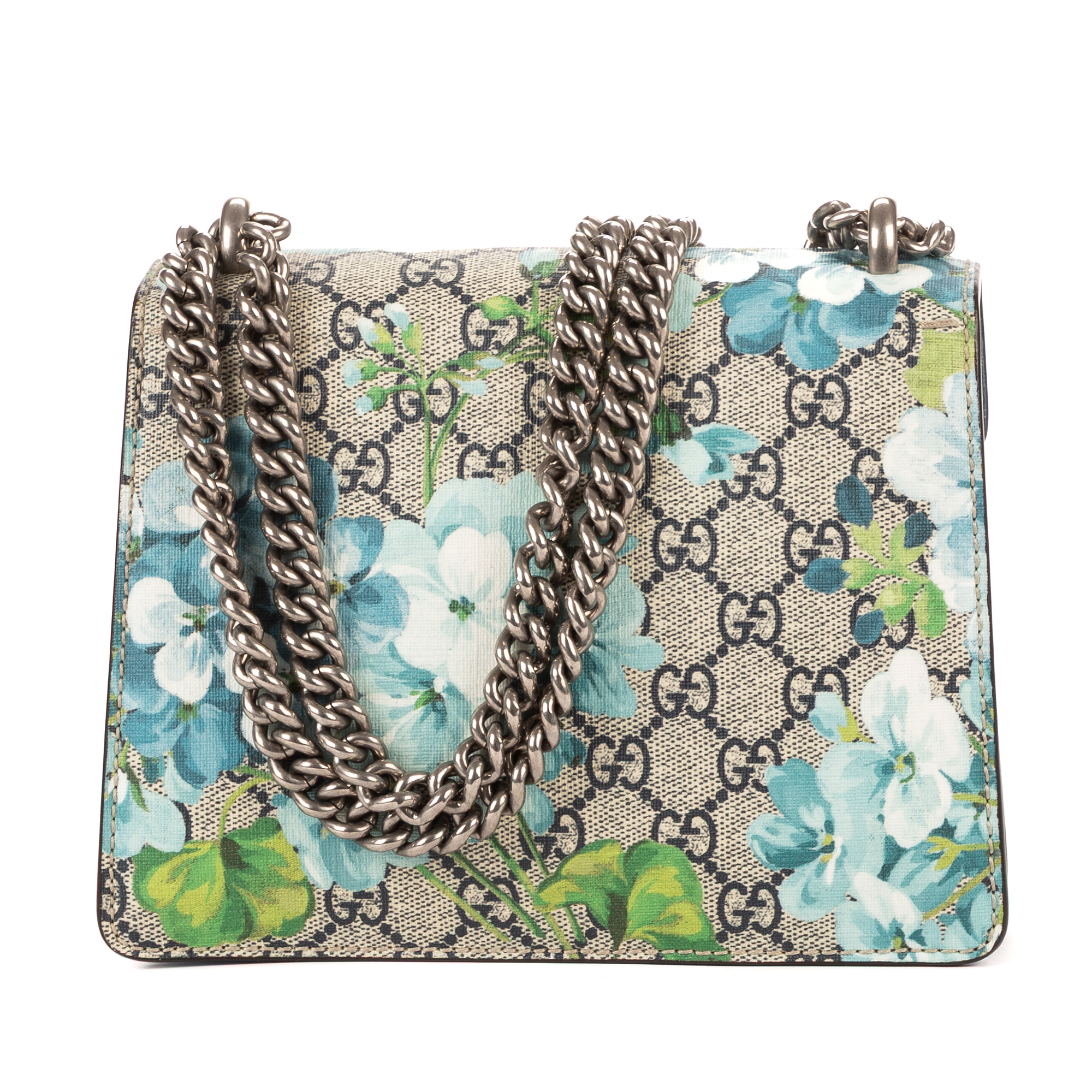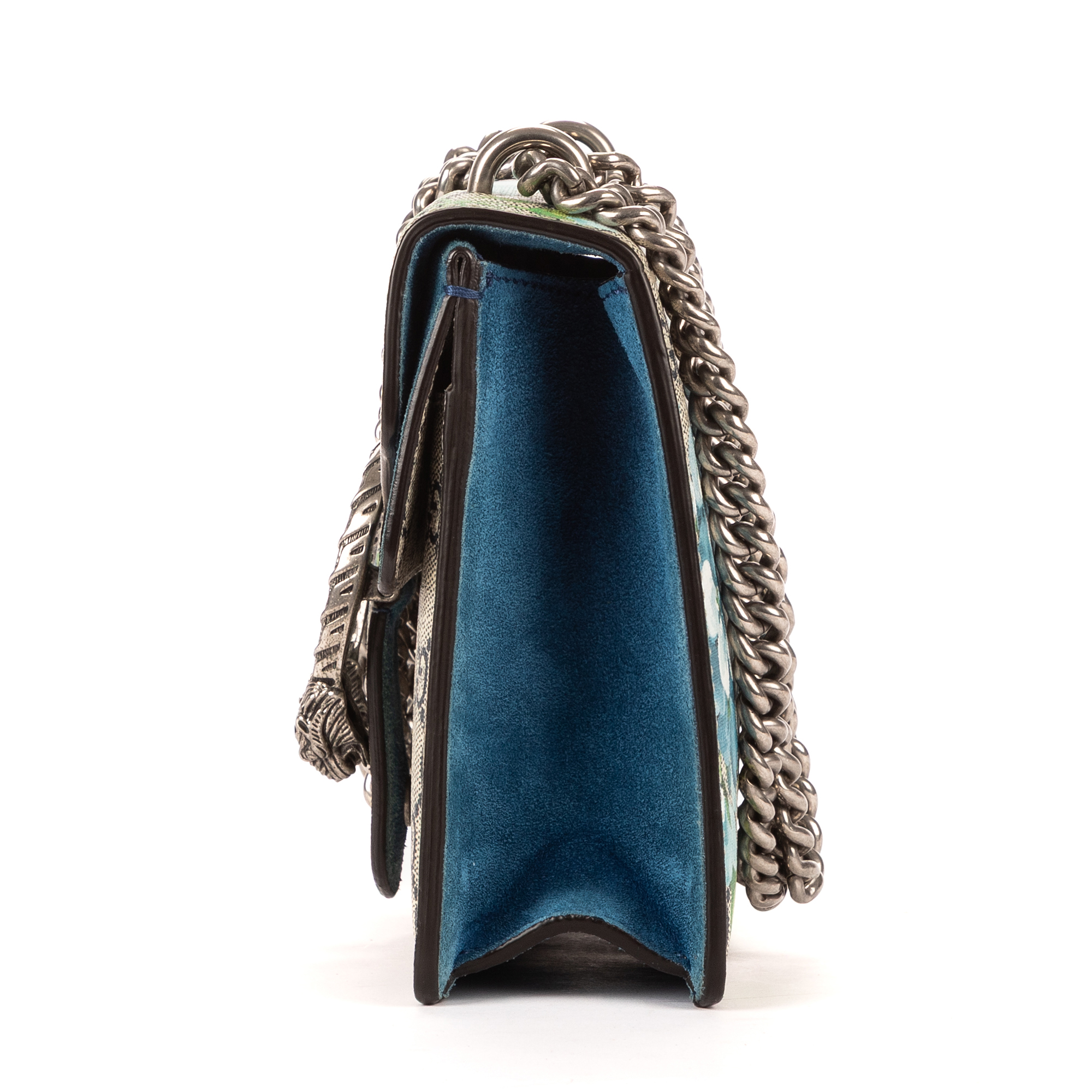 Gucci Sac à bandoulière Blooms Dionysus Mini en Beige/Bleu et Argent. Le produit est en Excellent état (A).