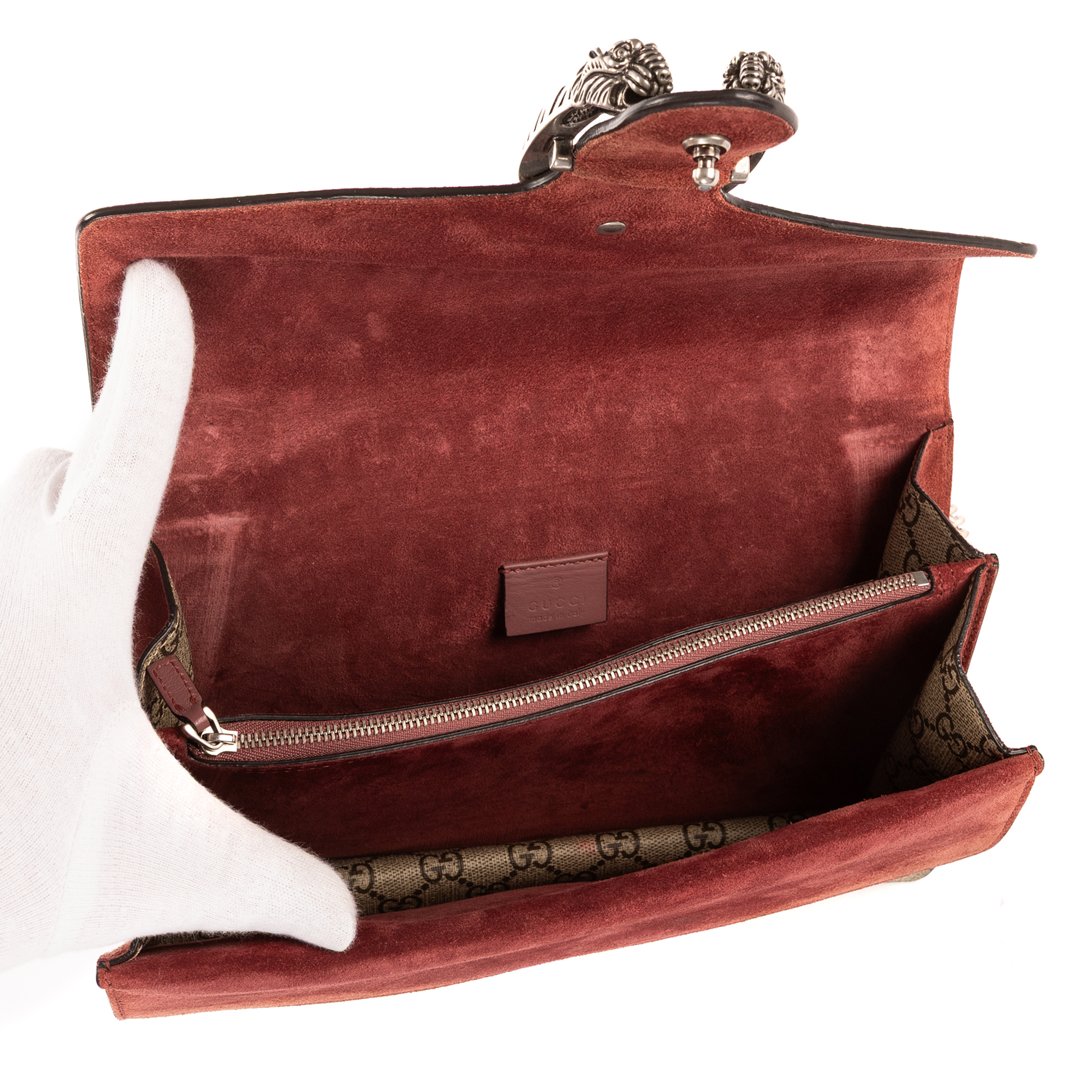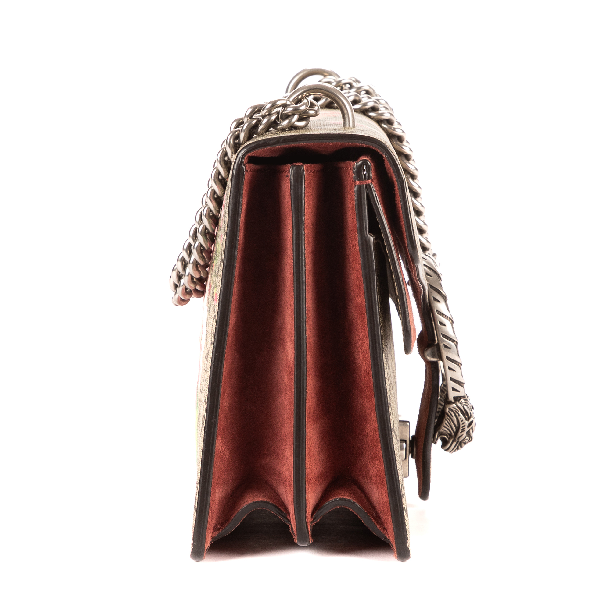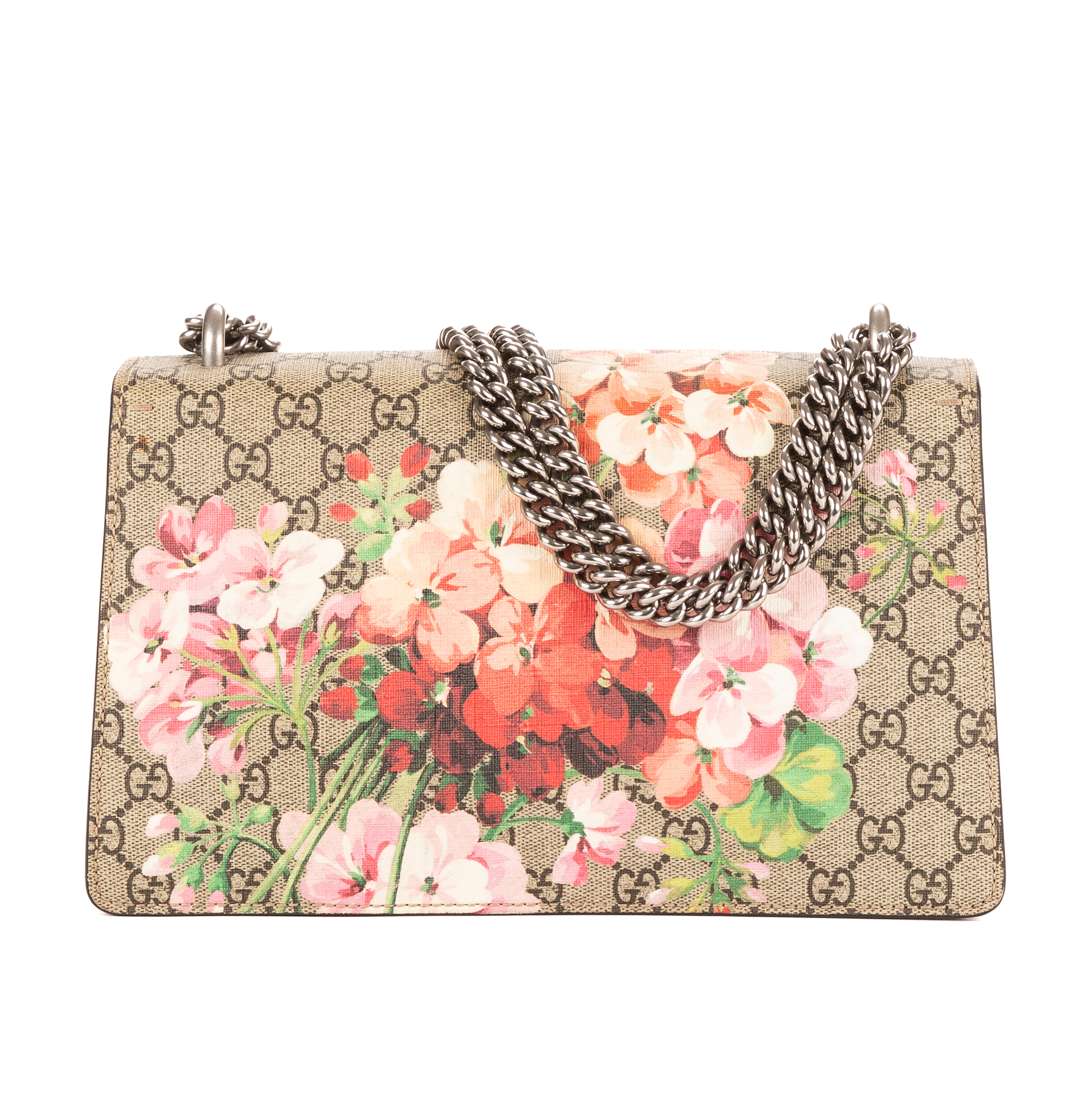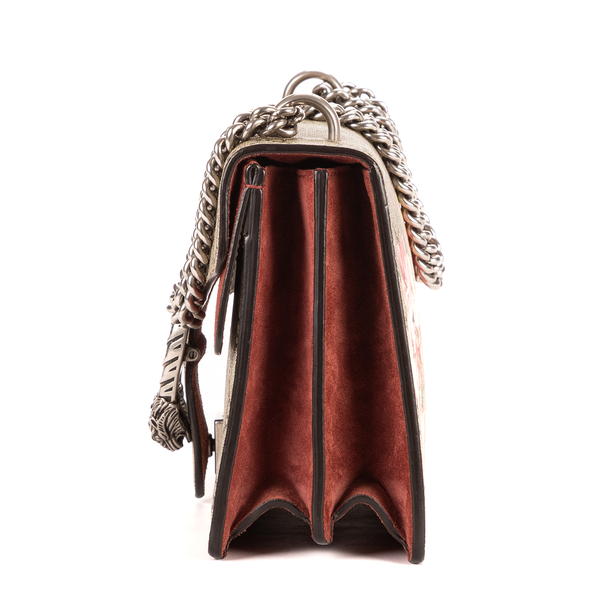 Gucci Sac à bandoulière Blooms Dionysus Small en Beige/Bourgogne et Argent. Le produit est en Excellent état (A).