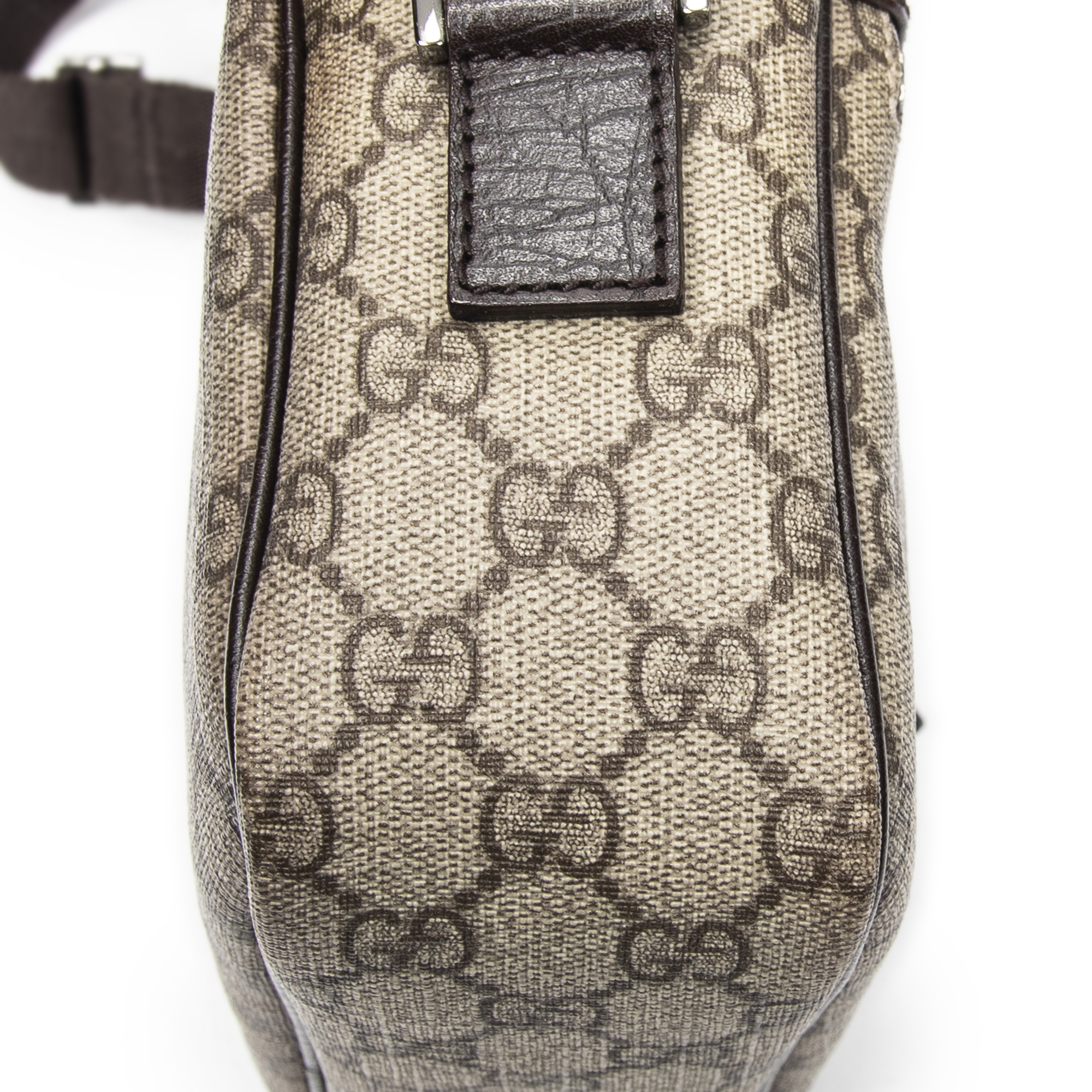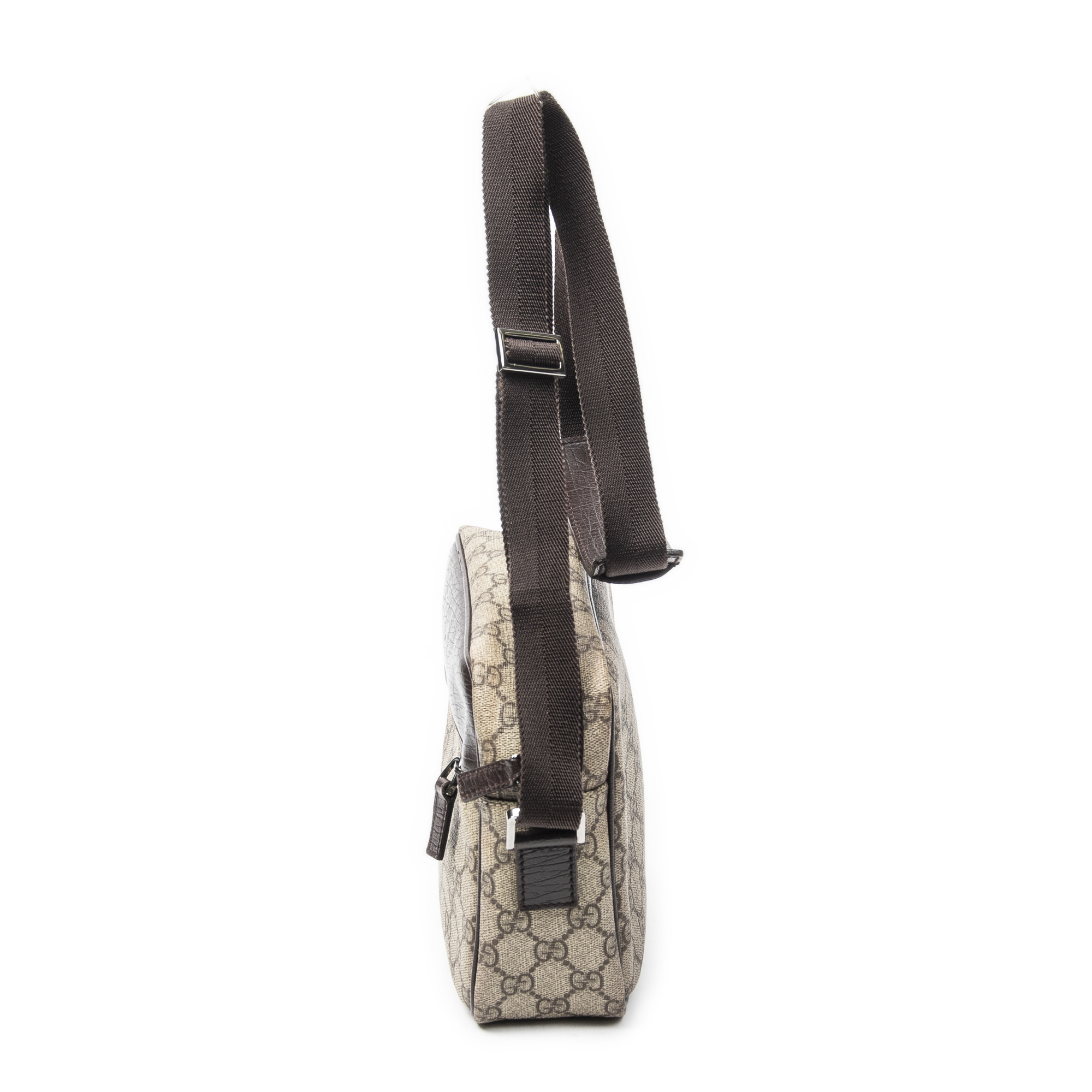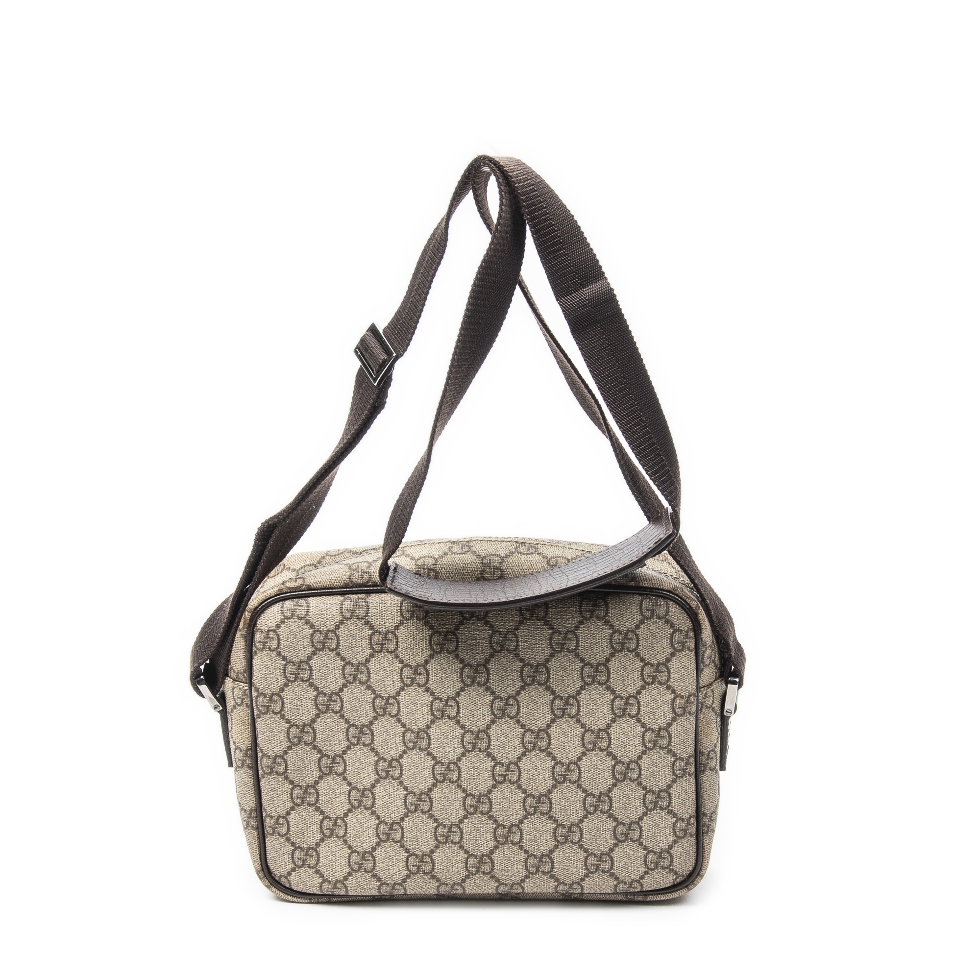 Gucci Sac à bandoulière Camera Crossbody en Marron foncé/Beige et Argent. Le produit est en Parfait état (AA).