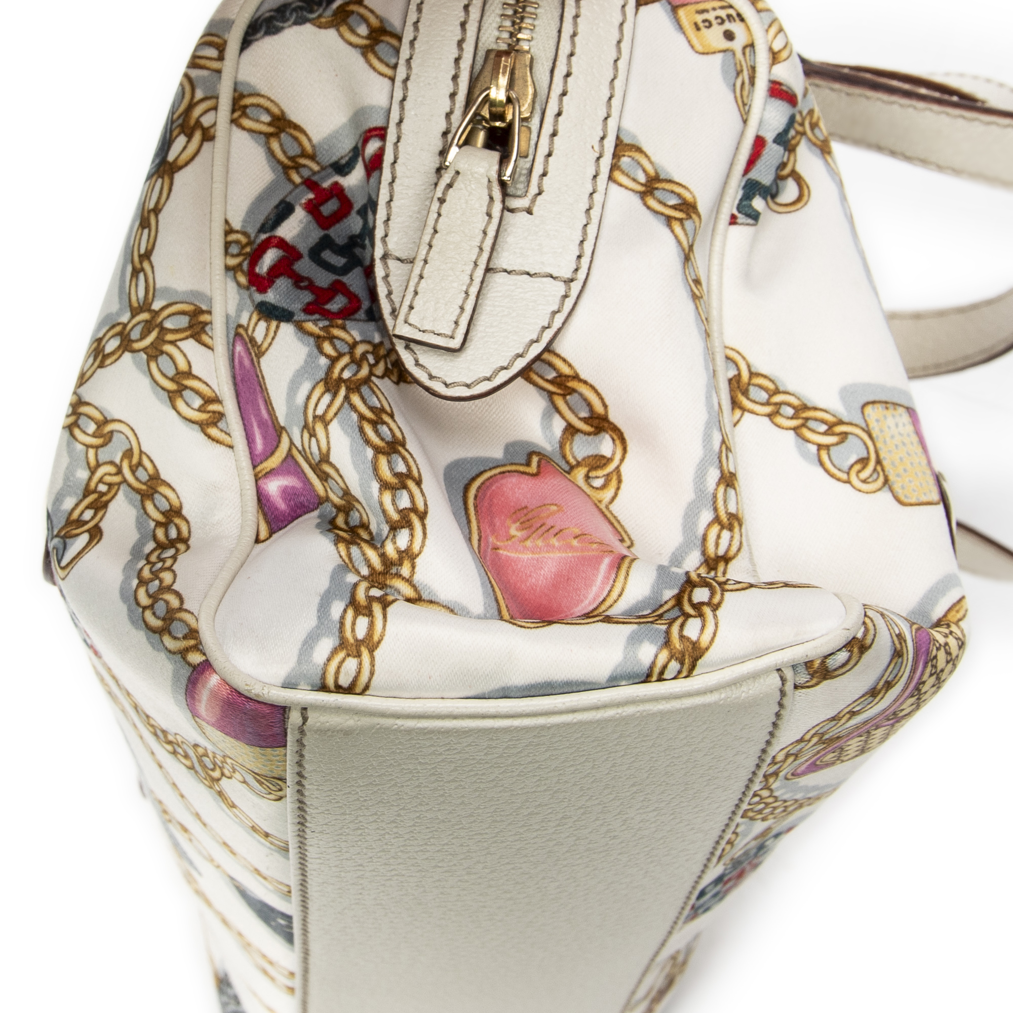 Gucci Sac à bandoulière Charmy Boston en Ivory et Gold. Le produit est en Excellent état (A).