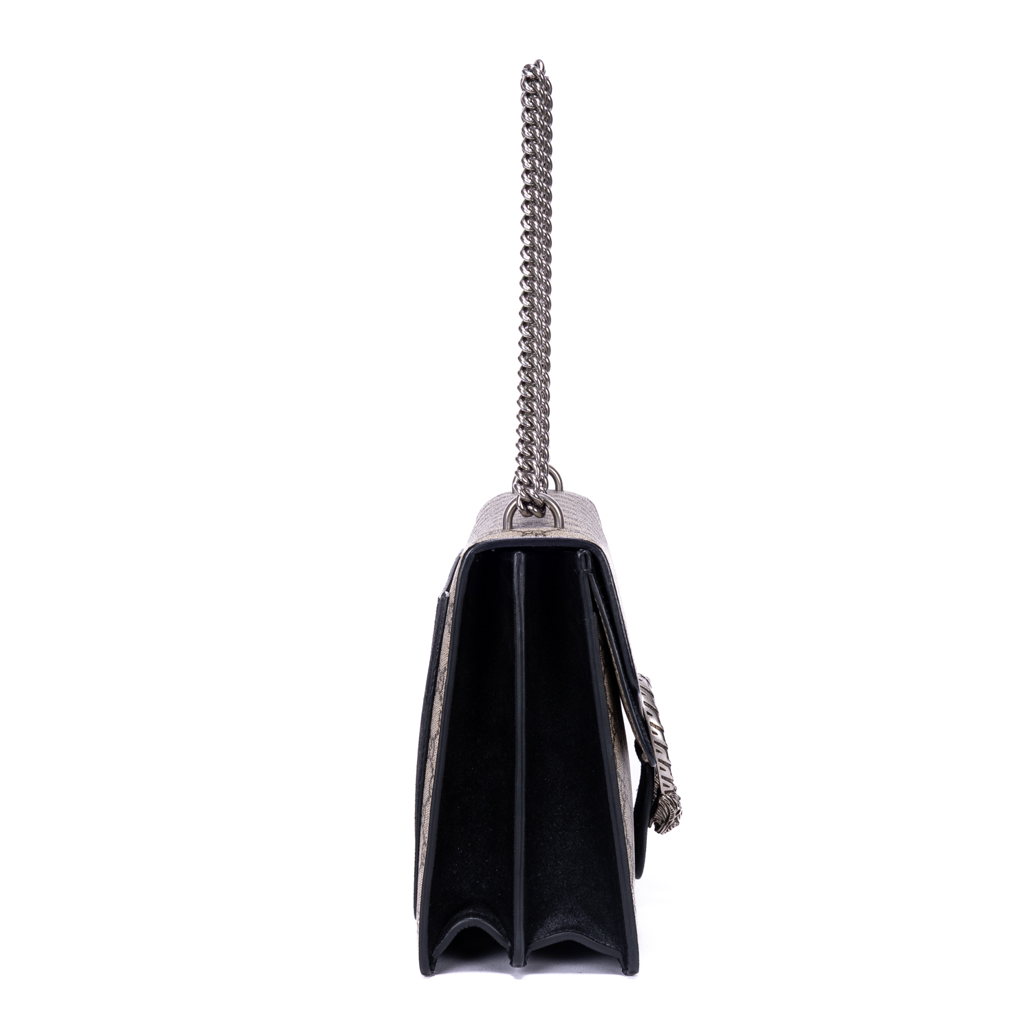 Gucci Sac à bandoulière Dionysus GG Supreme Chain Large en Beige/Noir et Argent. Le produit est en Excellent état (A).
