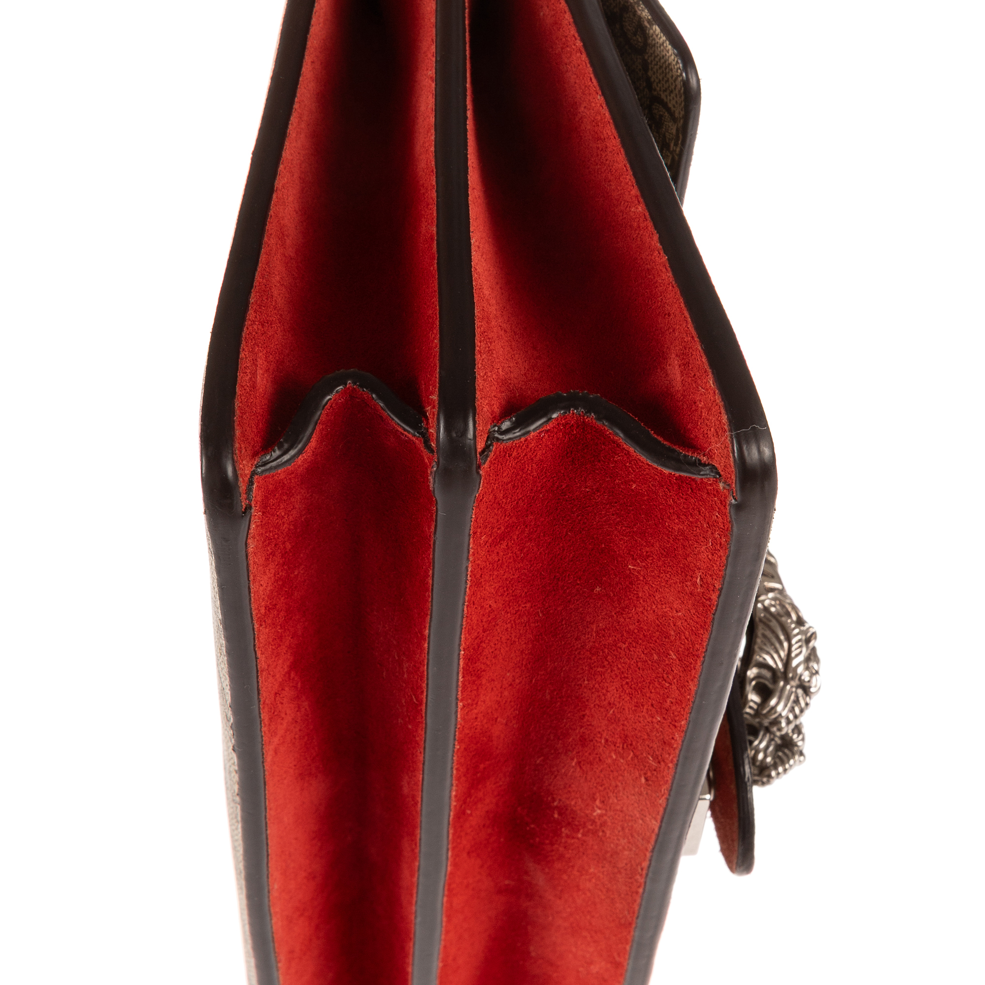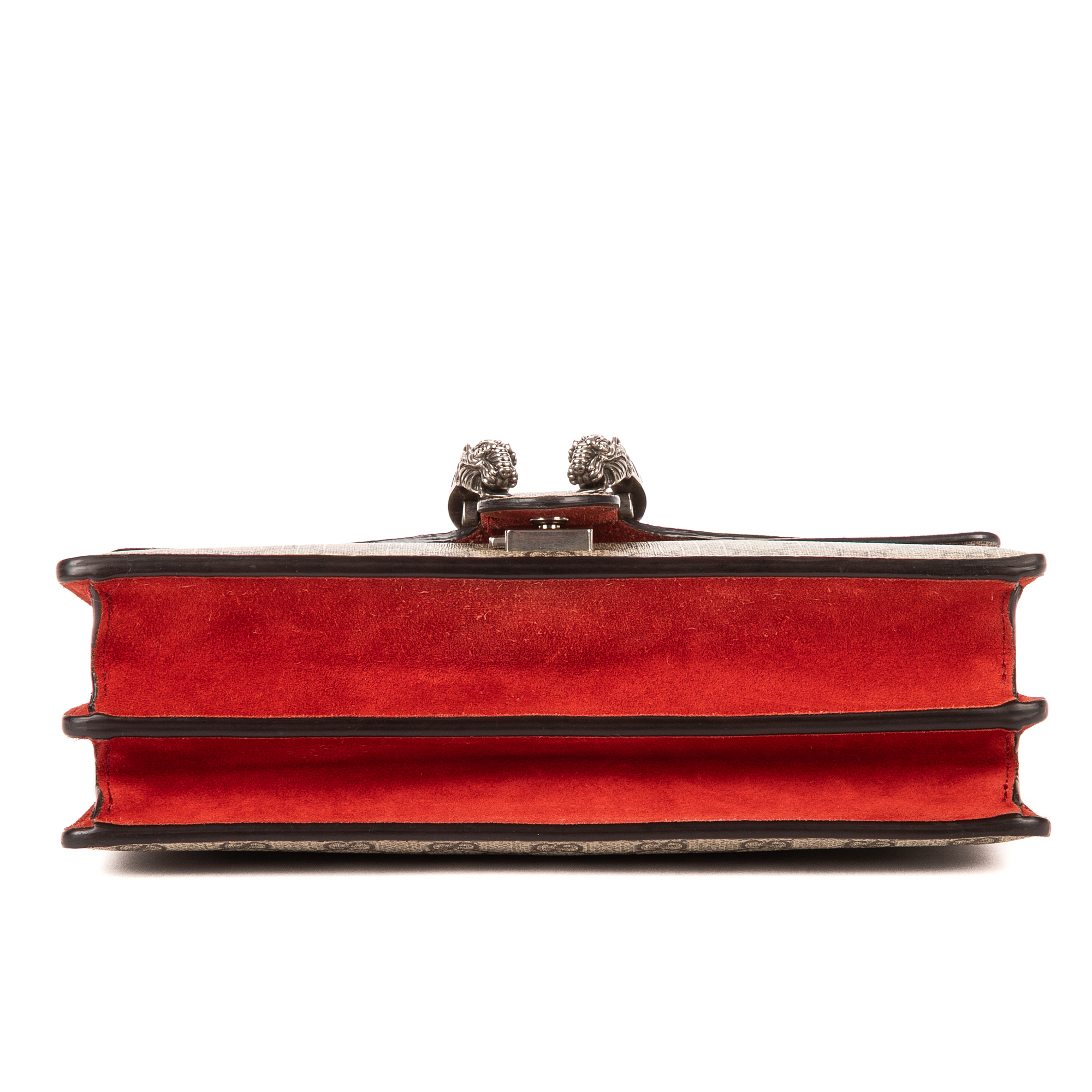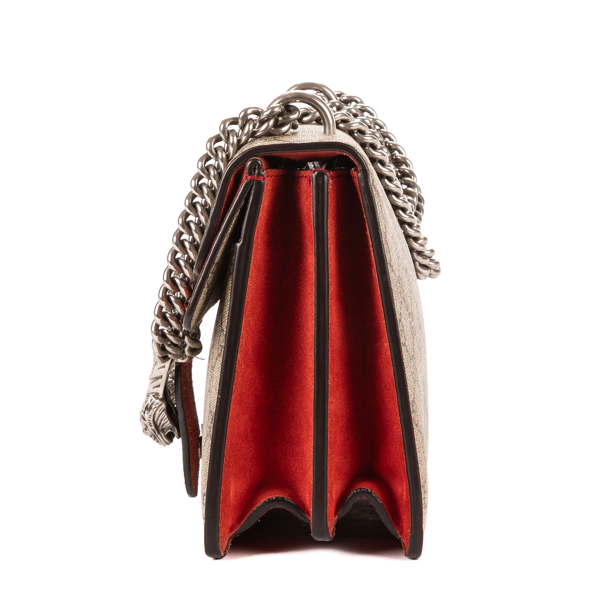 Gucci Sac à bandoulière Dionysus Small en Beige/Rouge et Argent. Le produit est en Parfait état (AA).