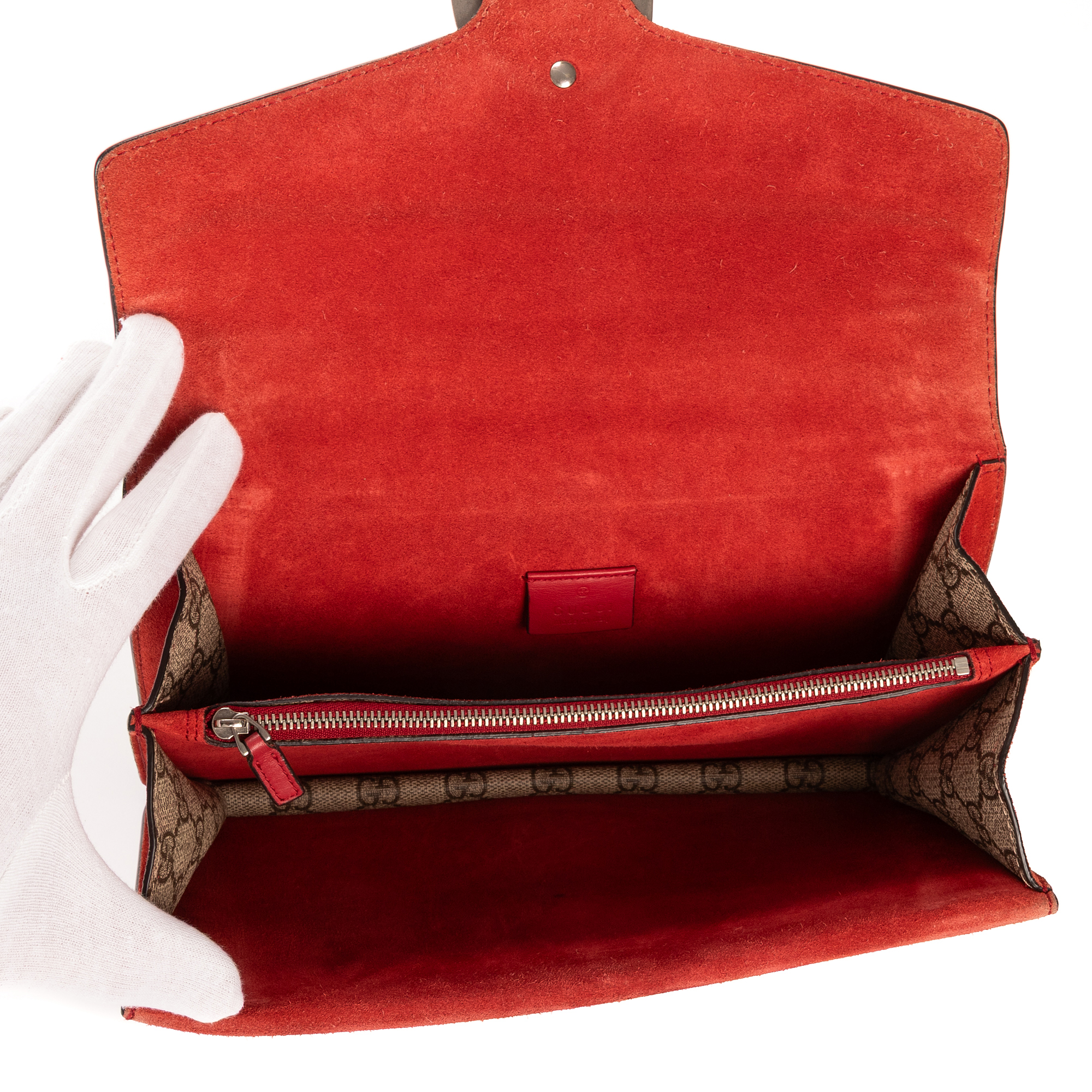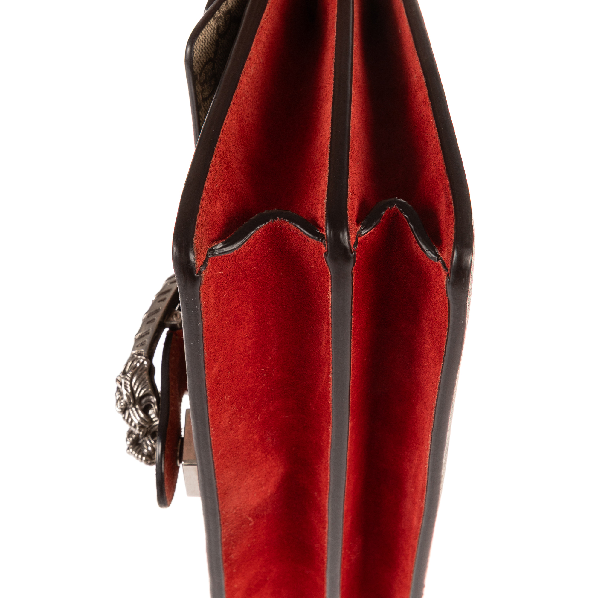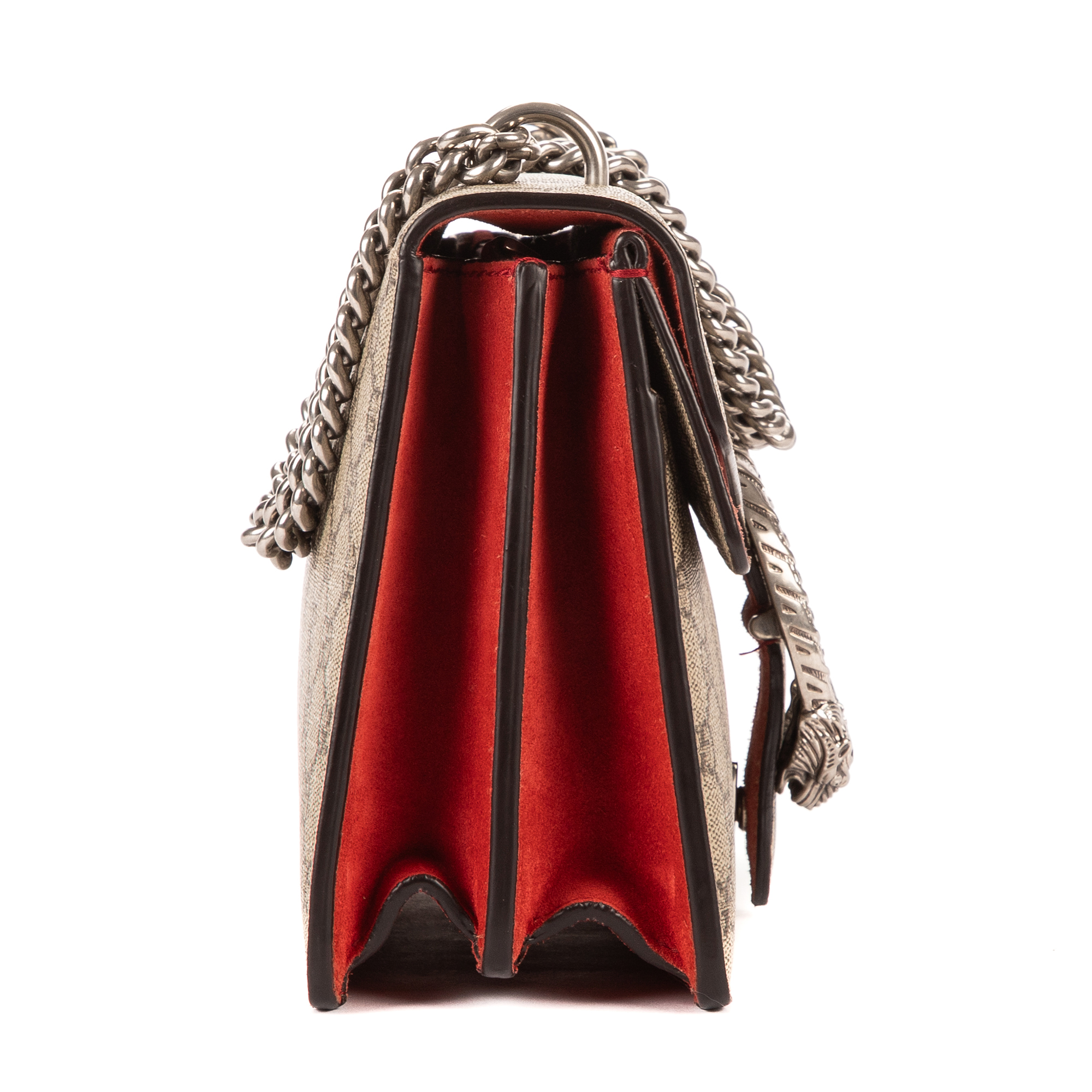 Gucci Sac à bandoulière Dionysus Small en Beige/Rouge et Argent. Le produit est en Parfait état (AA).