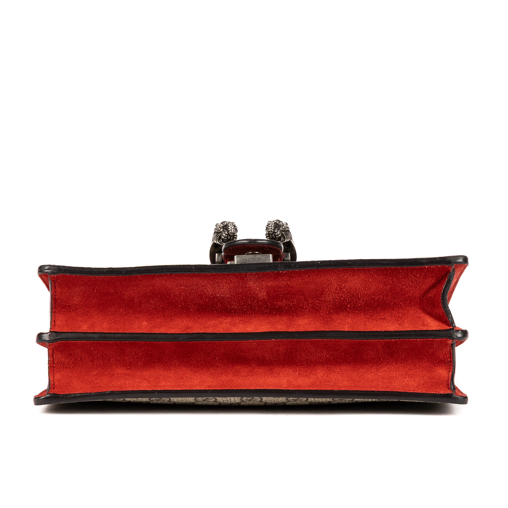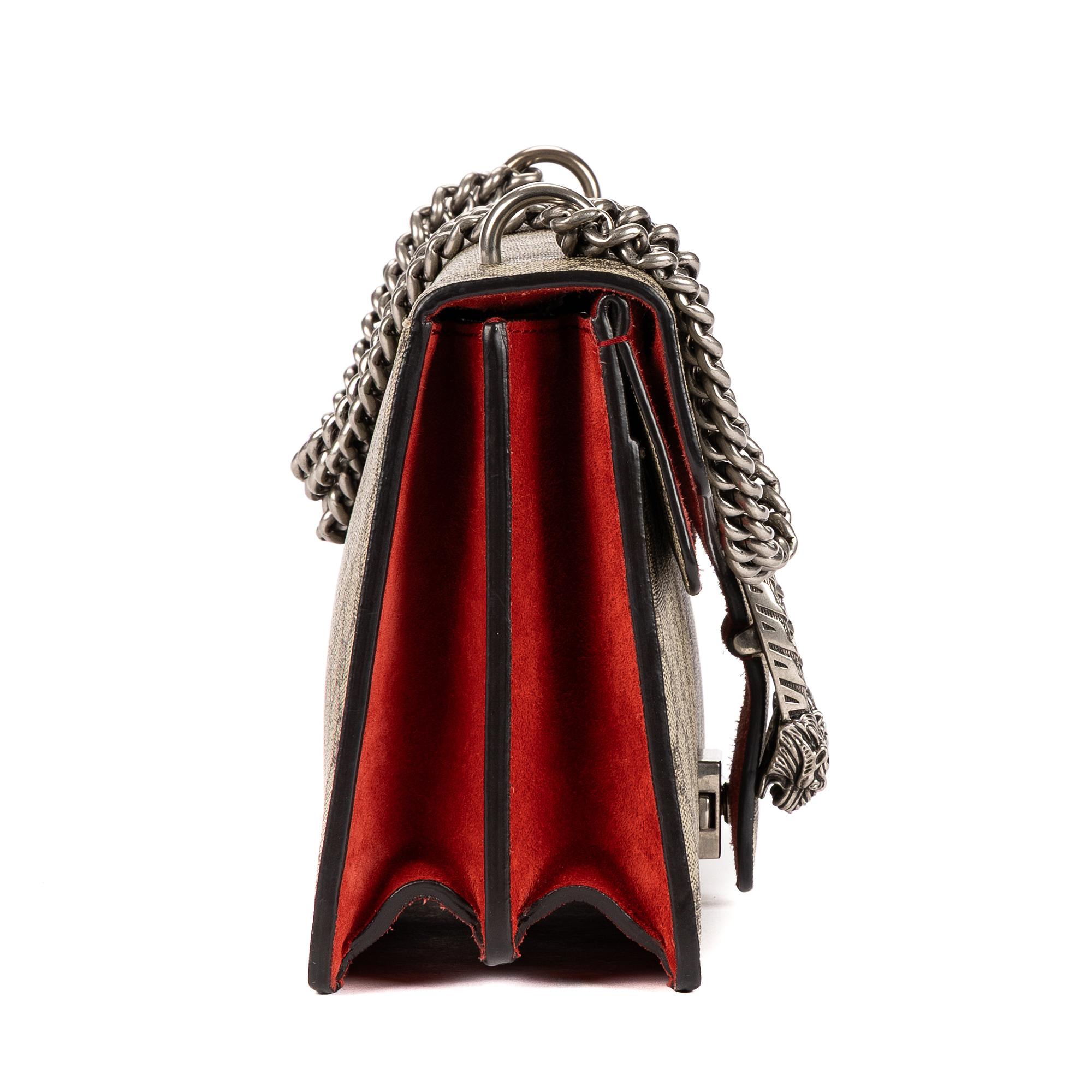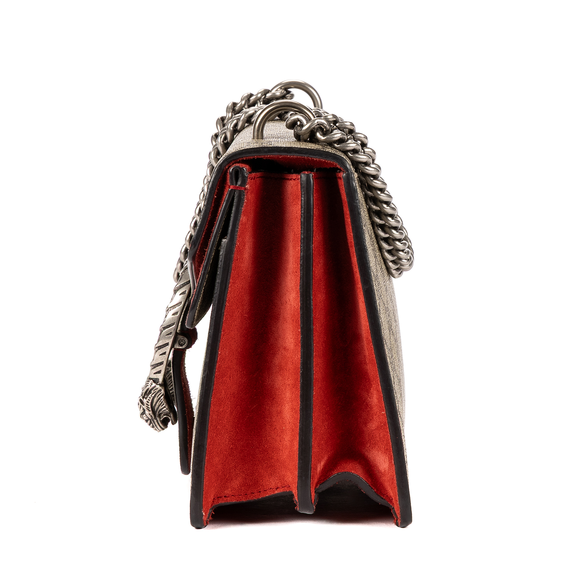 Gucci Sac à bandoulière Dionysus Small en Beige/Rouge et Argent. Le produit est en Parfait état (AA).