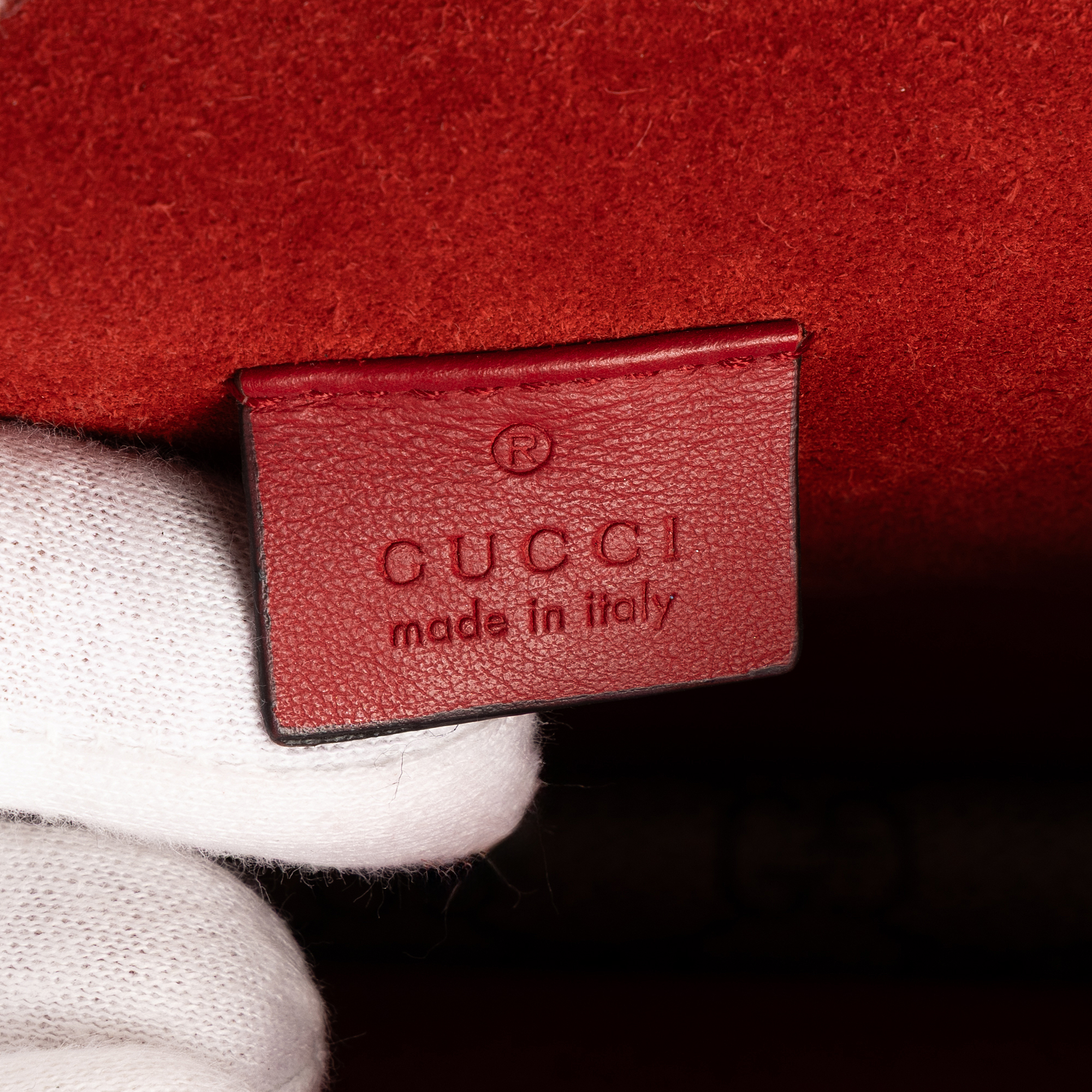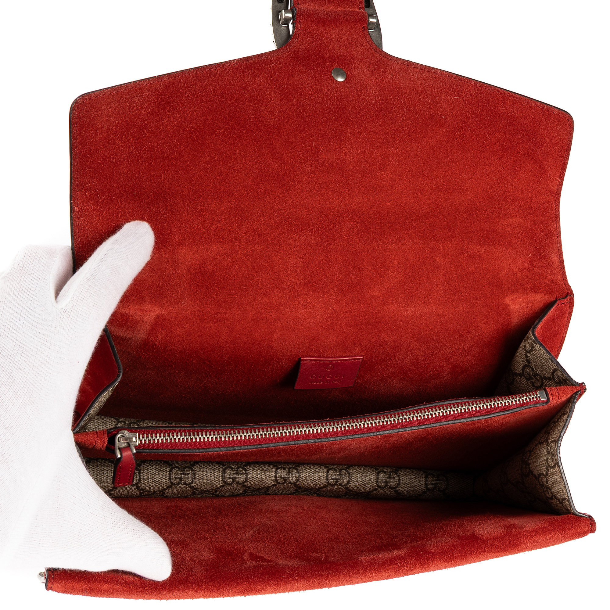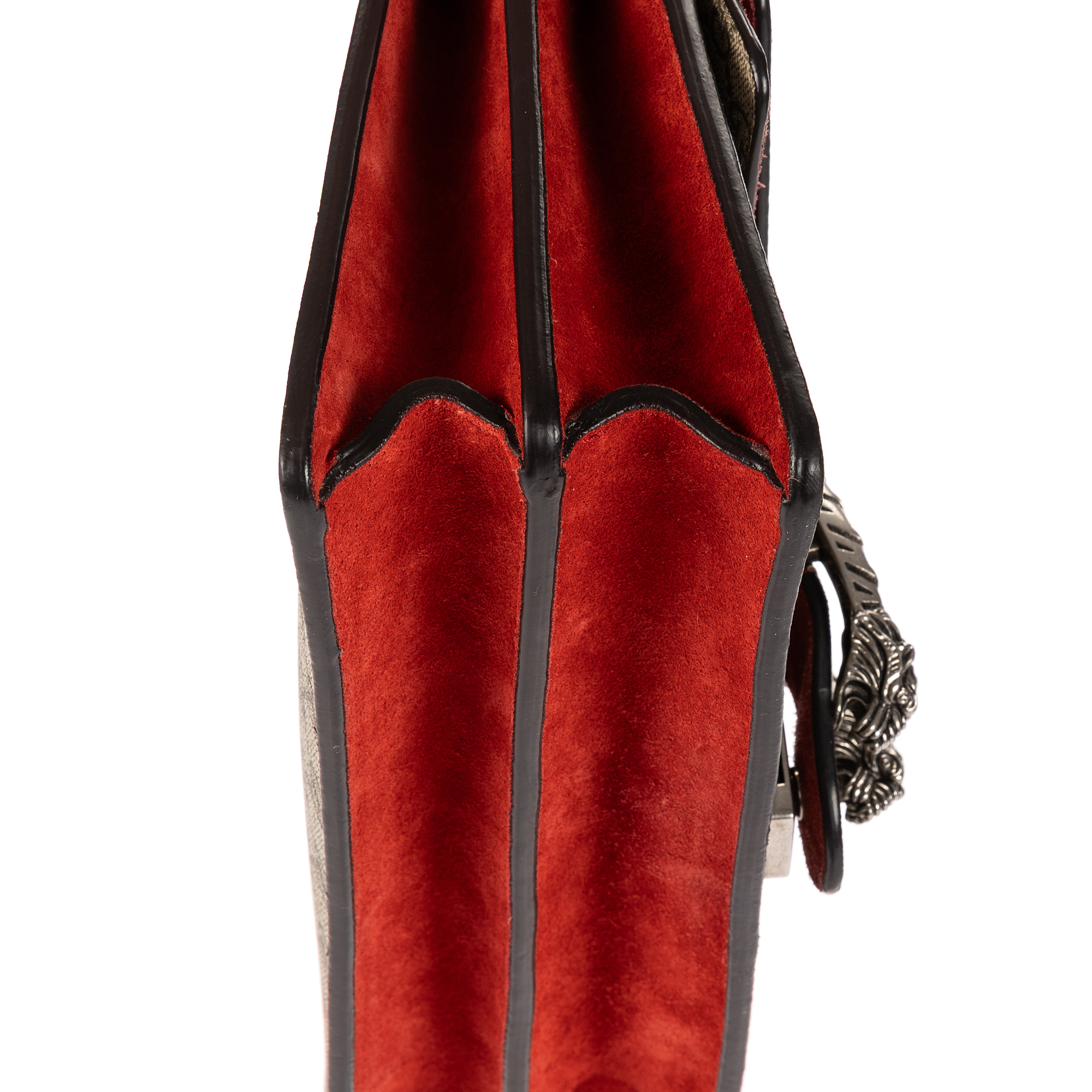 Gucci Sac à bandoulière Dionysus Small en Beige/Rouge et Argent. Le produit est en Parfait état (AA).