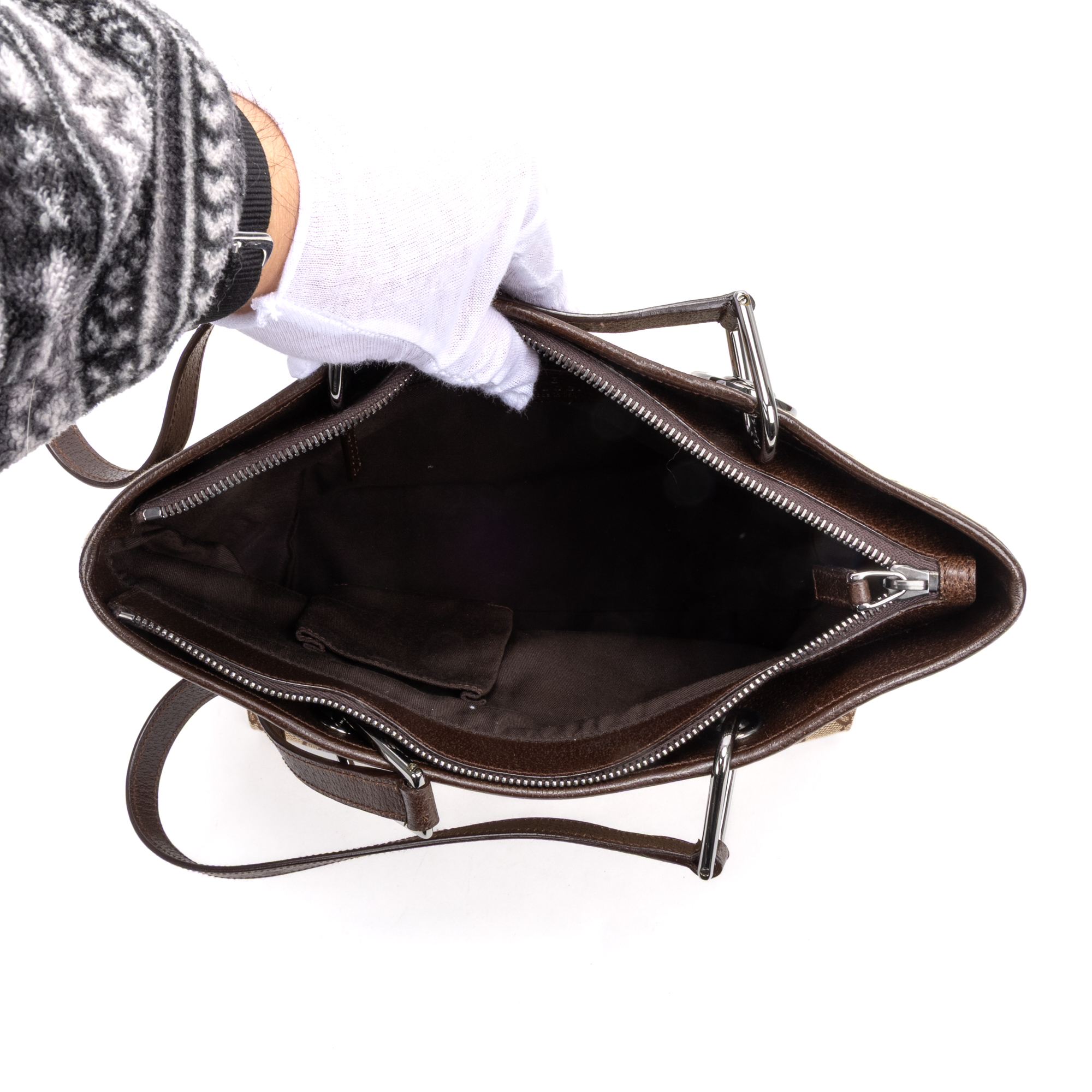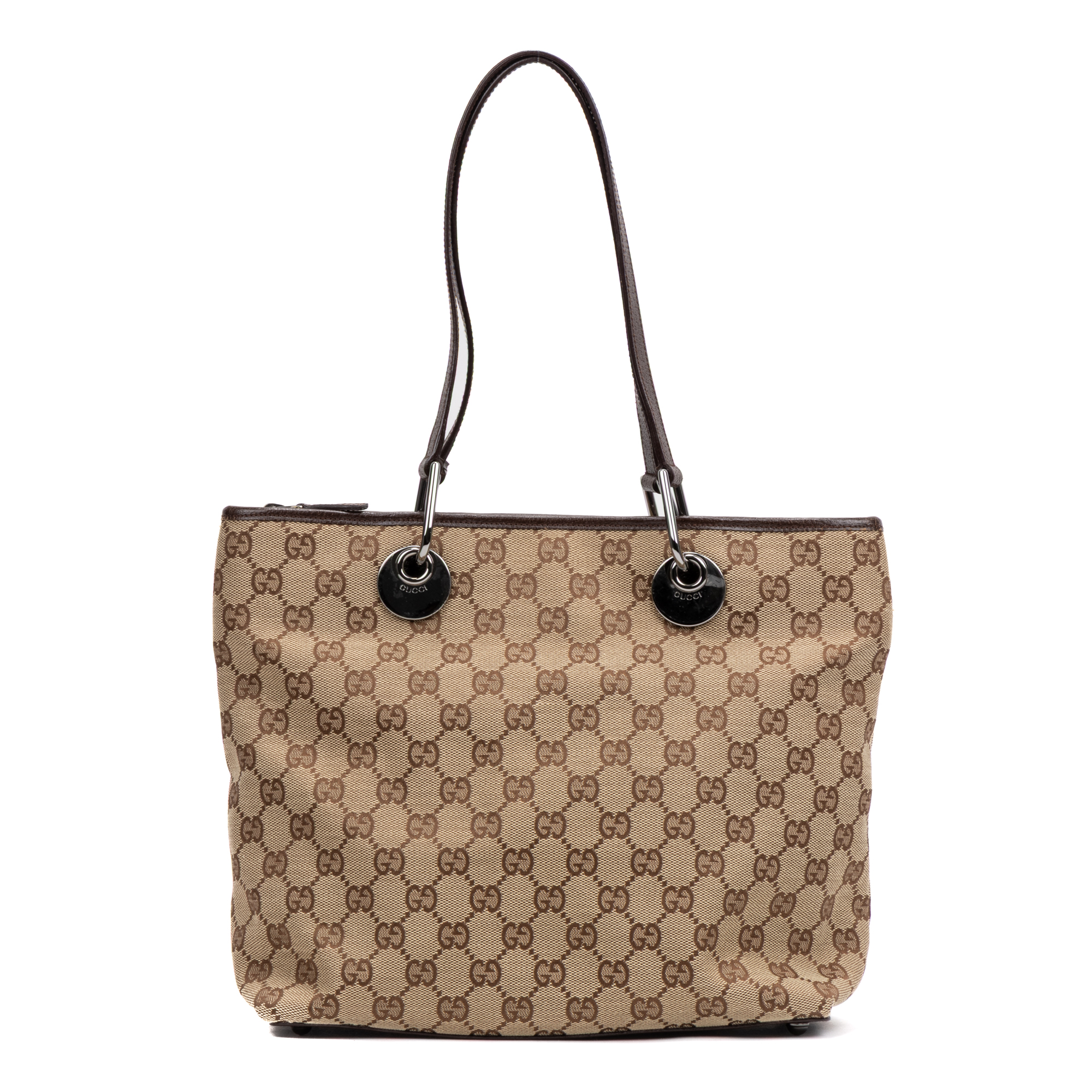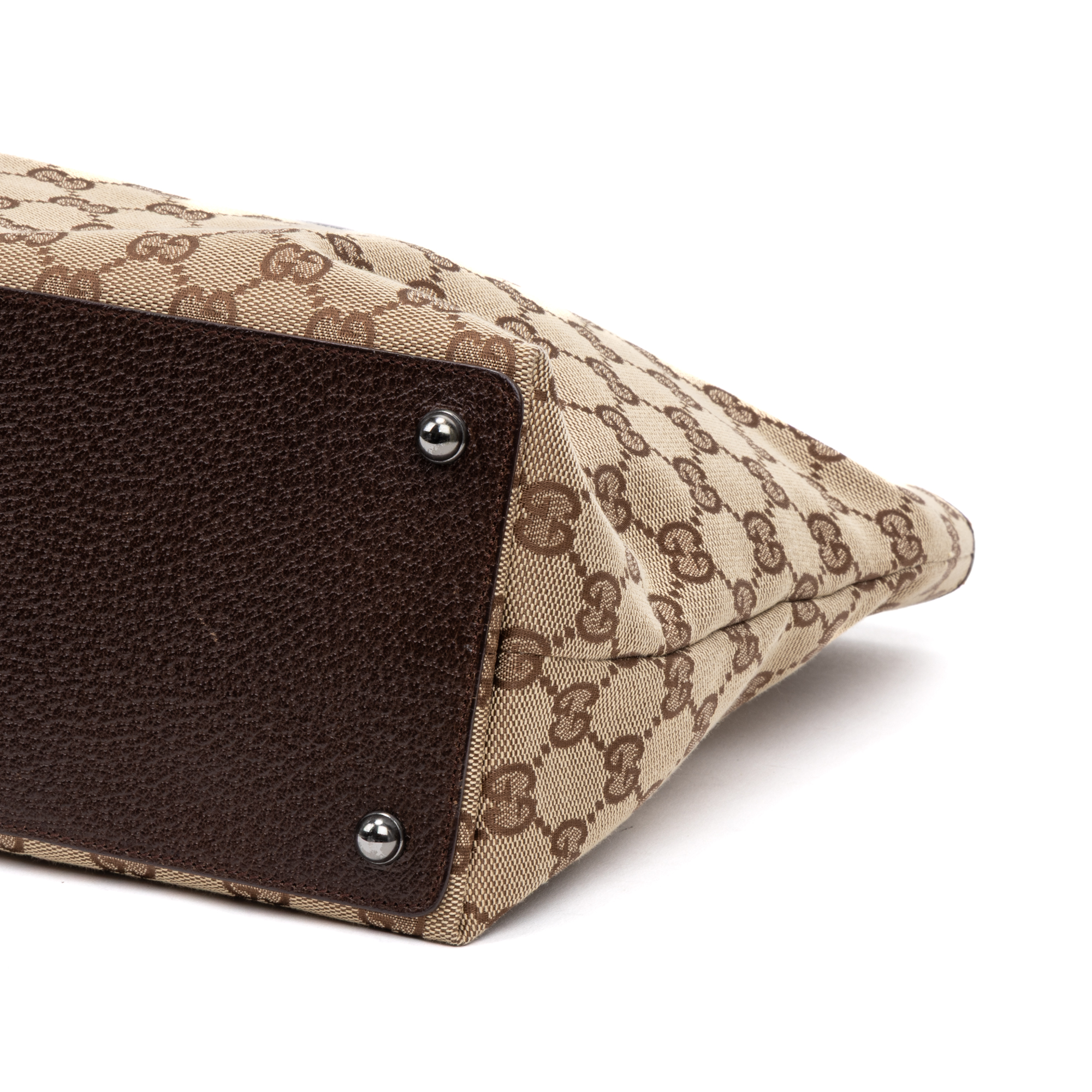 Gucci Sac à bandoulière Eclipse Medium Tote en Beige/Marron foncé et Argent. Le produit est en Excellent état (A).