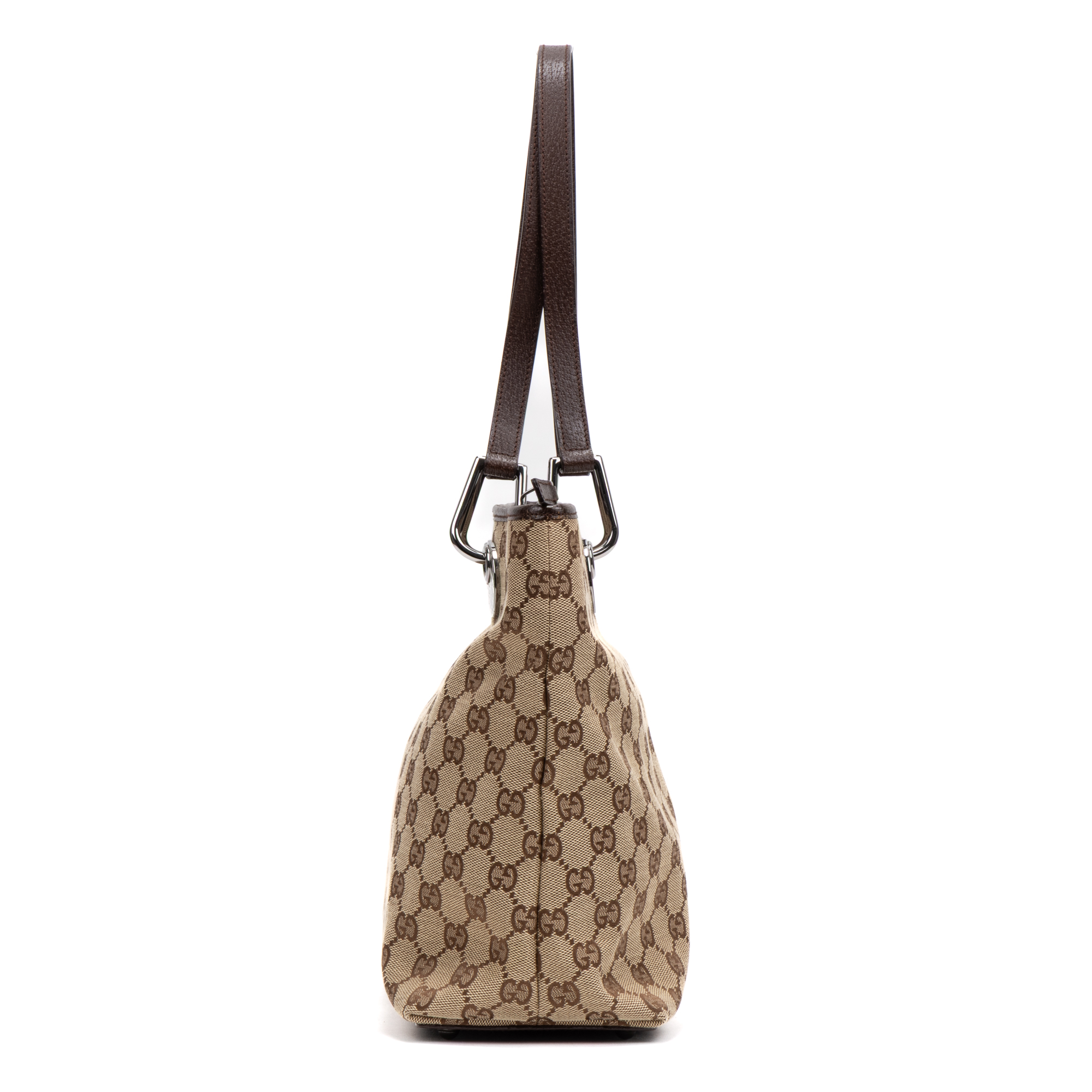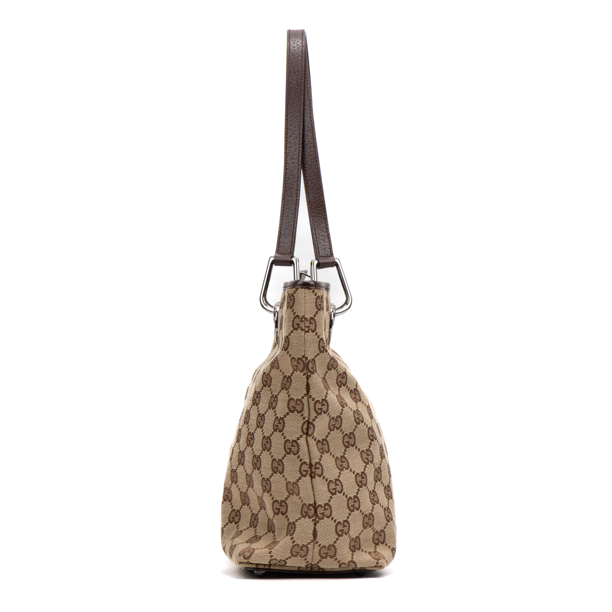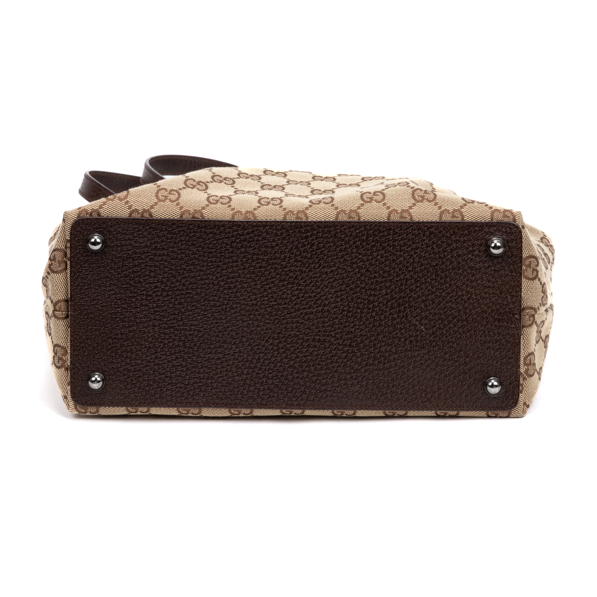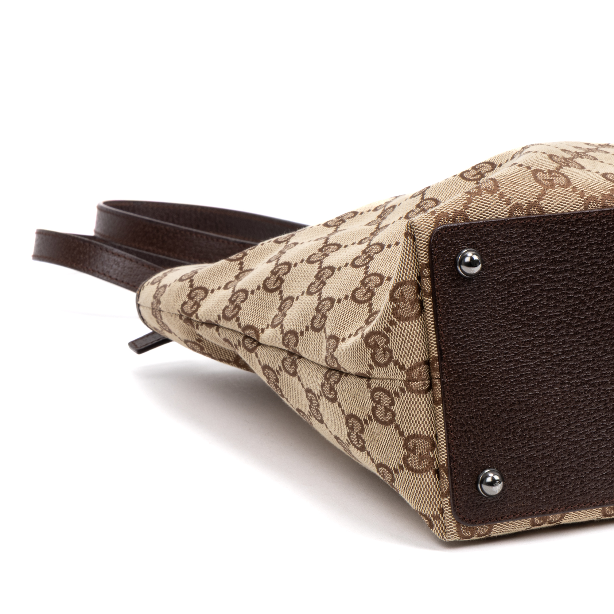 Gucci Sac à bandoulière Eclipse Medium Tote en Beige/Marron foncé et Argent. Le produit est en Excellent état (A).