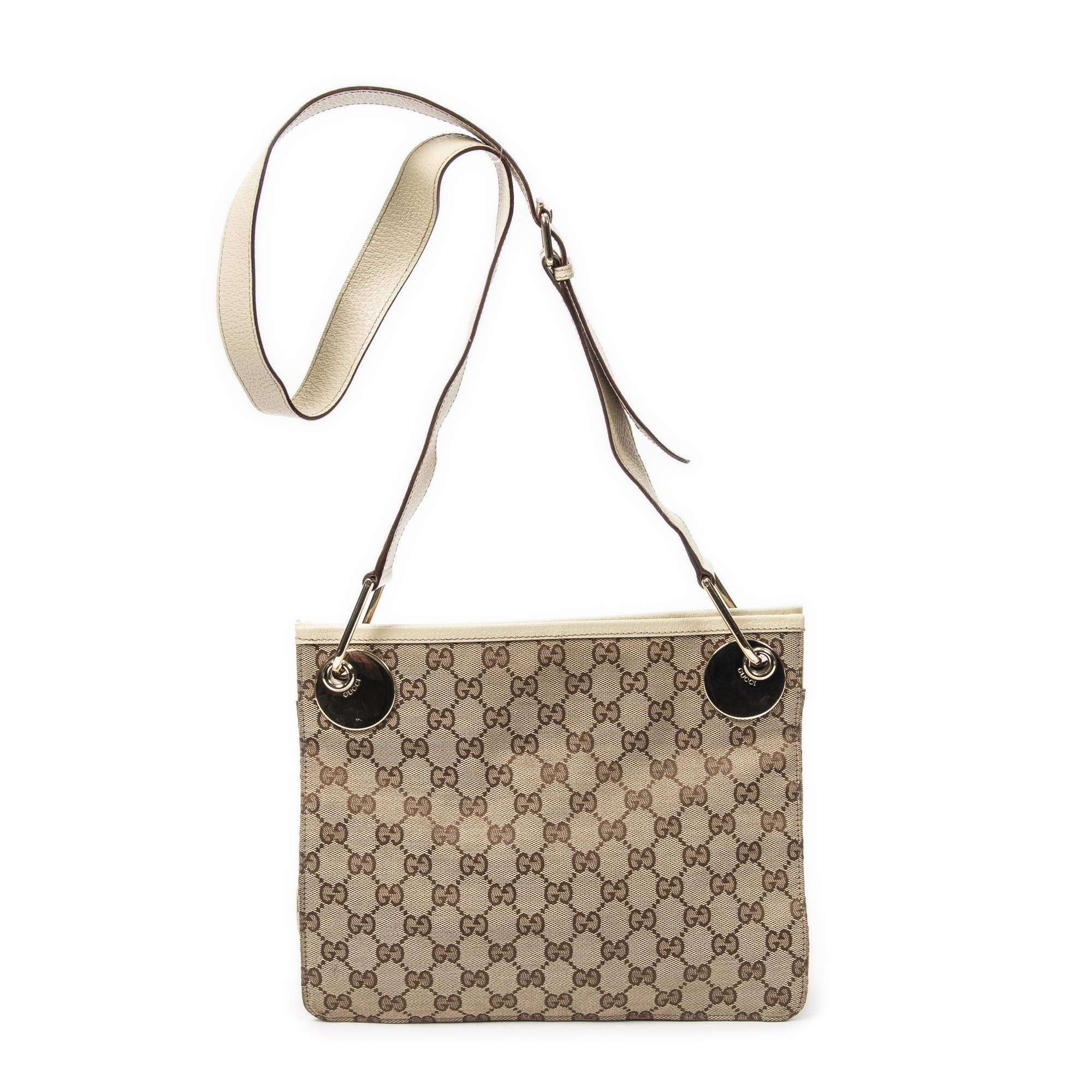 Gucci Sac à bandoulière Eclipse Square Crossbody en Beige/Ivoire et Gold. Le produit est en Excellent état (A).