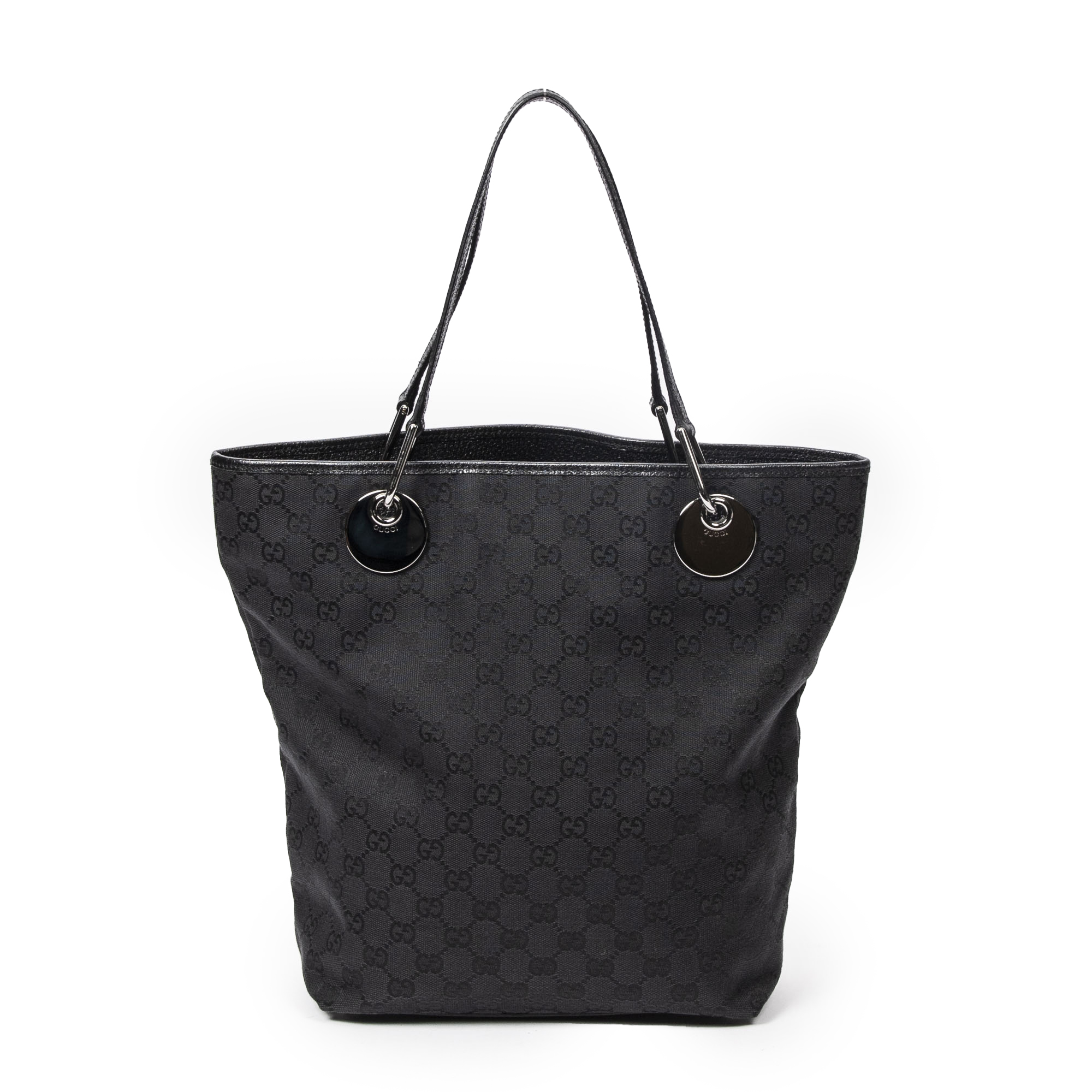 Gucci Sac à bandoulière Eclipse Tall Tote en Black et Ruthénium. Le produit est en Parfait état (AA).